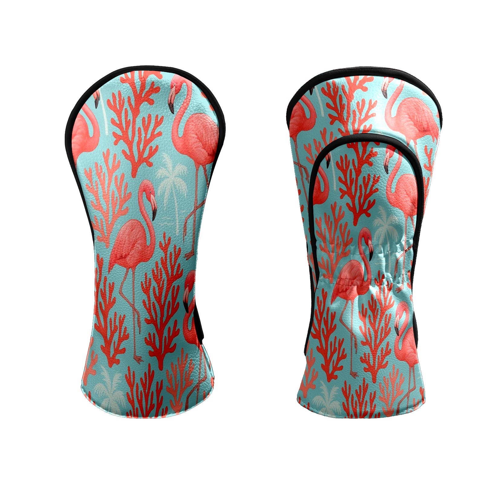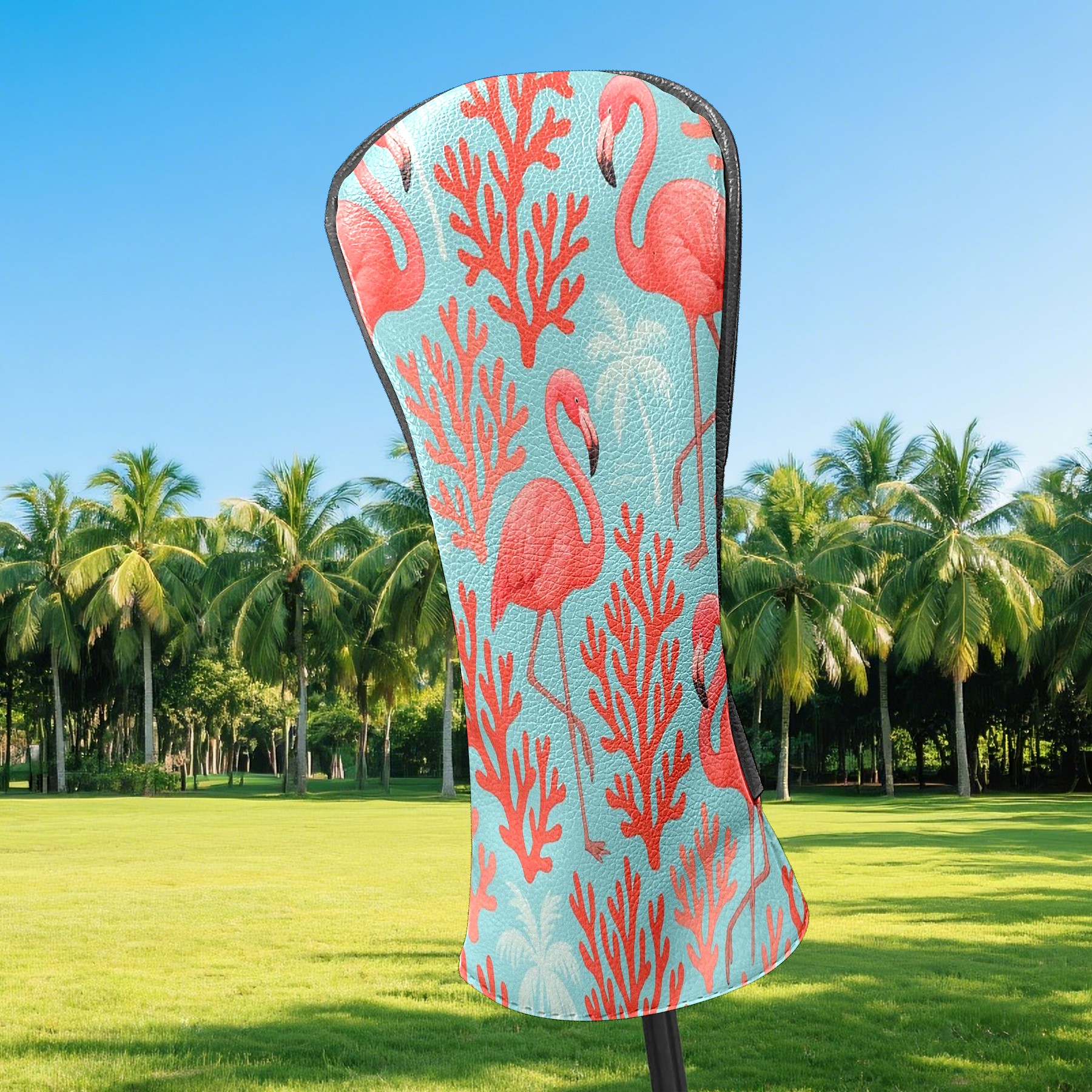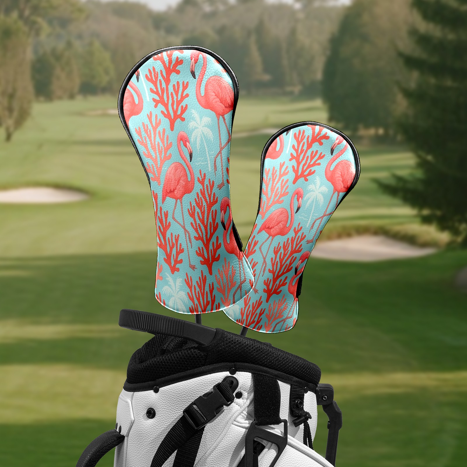 Counullo Golf Head Covers - Pink Flamingos Corals Driver Fairway Headcover, Durable PU Leather & Soft Velvet Lining, Secure Elastic Band, Perfect Christmas Golf Gift for Men