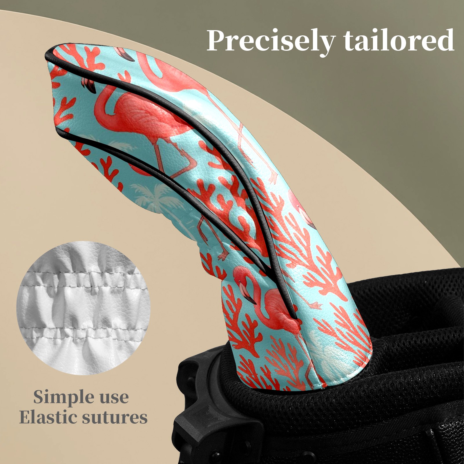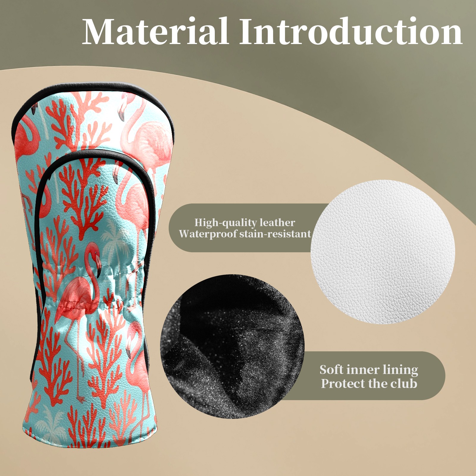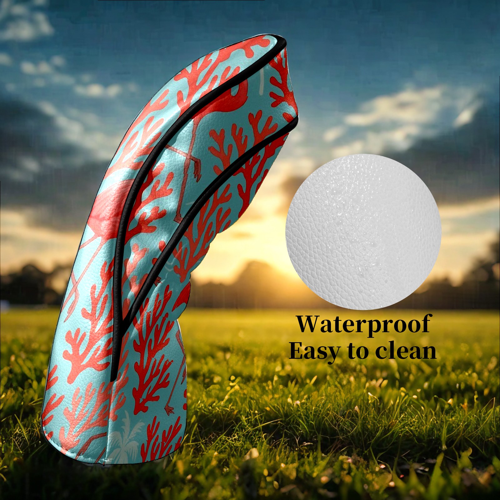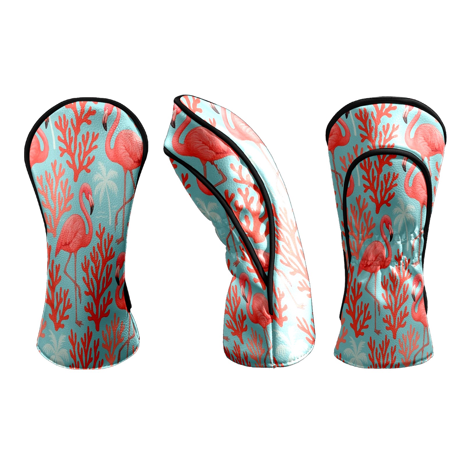 Counullo Golf Head Covers - Pink Flamingos Corals Driver Fairway Headcover, Durable PU Leather & Soft Velvet Lining, Secure Elastic Band, Perfect Christmas Golf Gift for Men