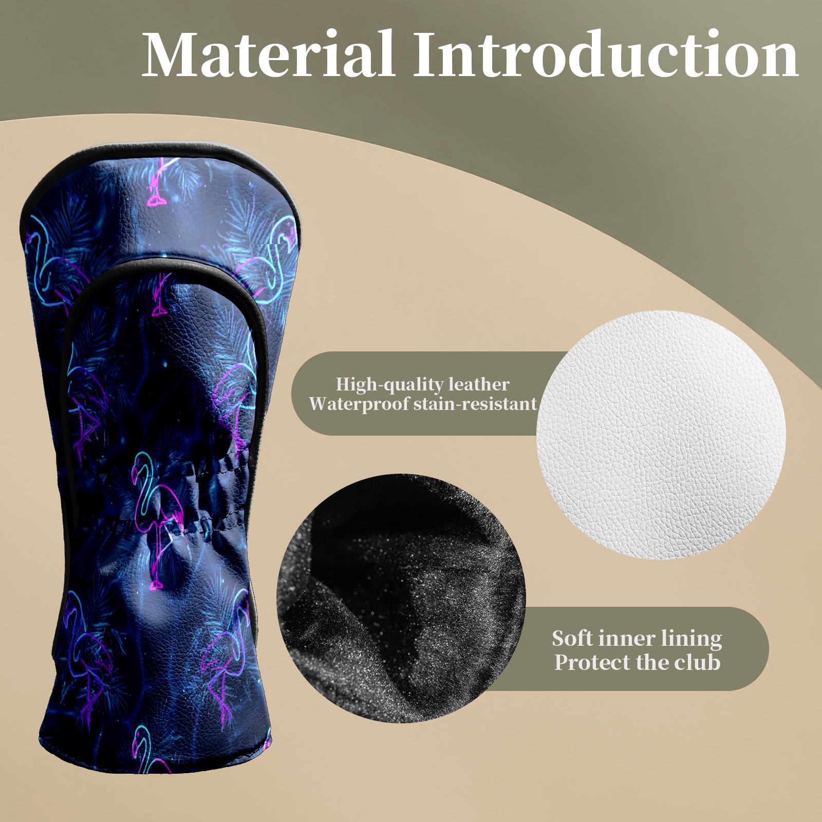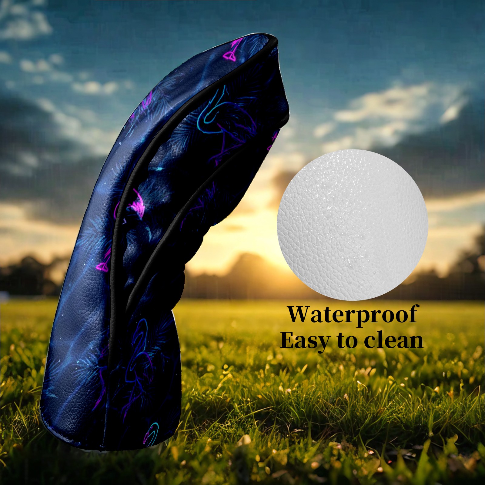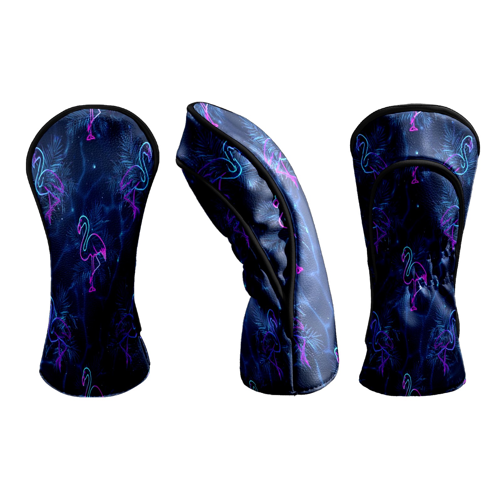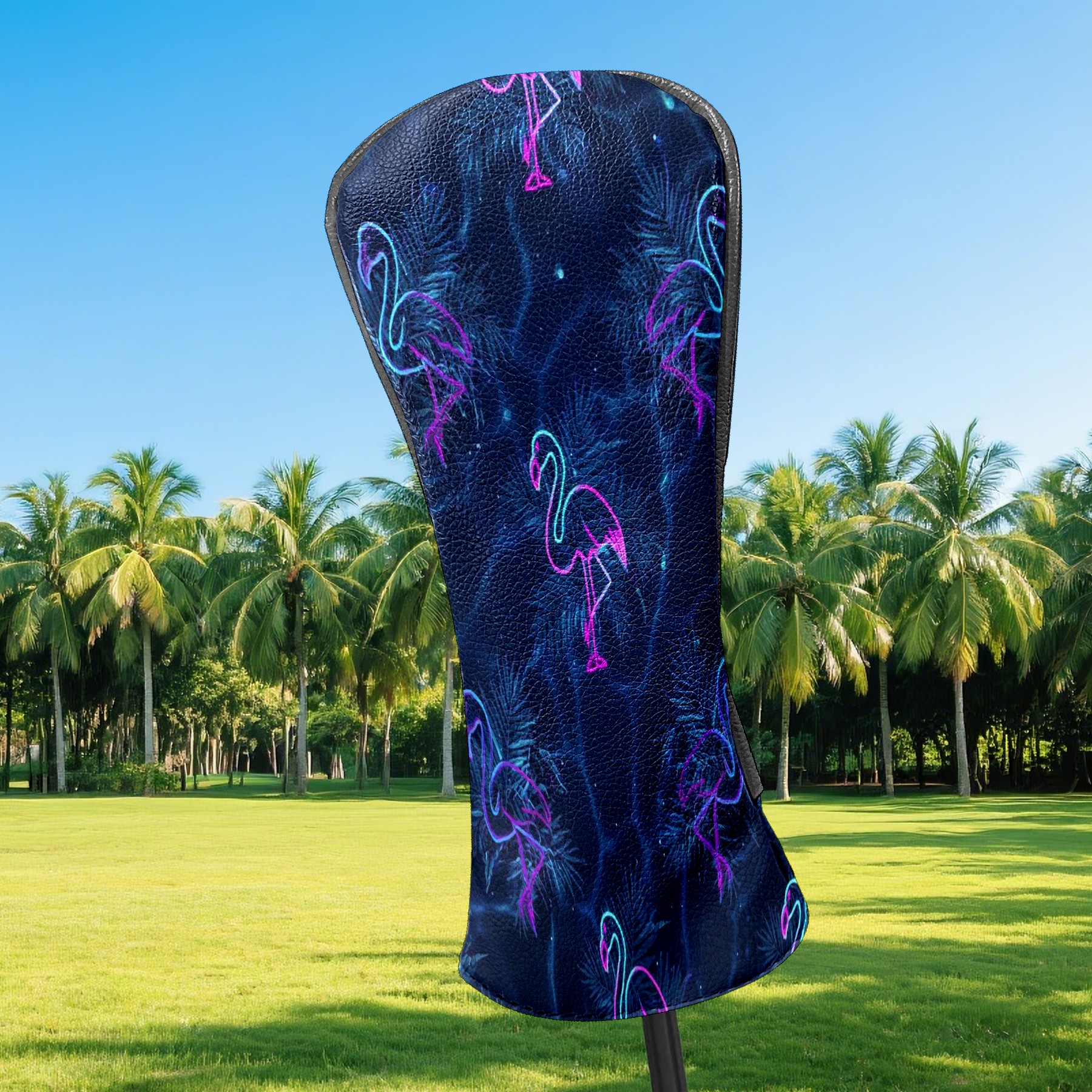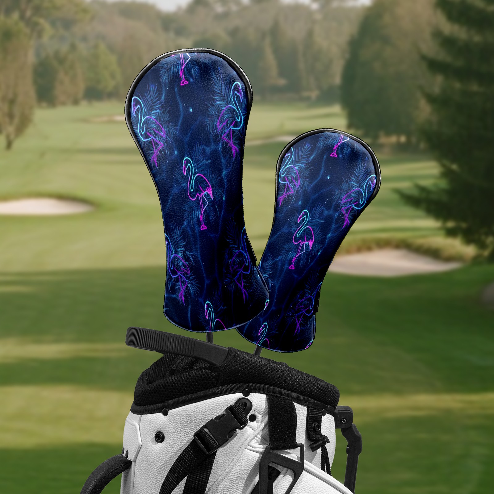 Counullo Golf Head Covers - Flamingos Blue Driver Fairway Headcover, Durable PU Leather & Soft Velvet Lining, Secure Elastic Band, Perfect Christmas Golf Gift for Men