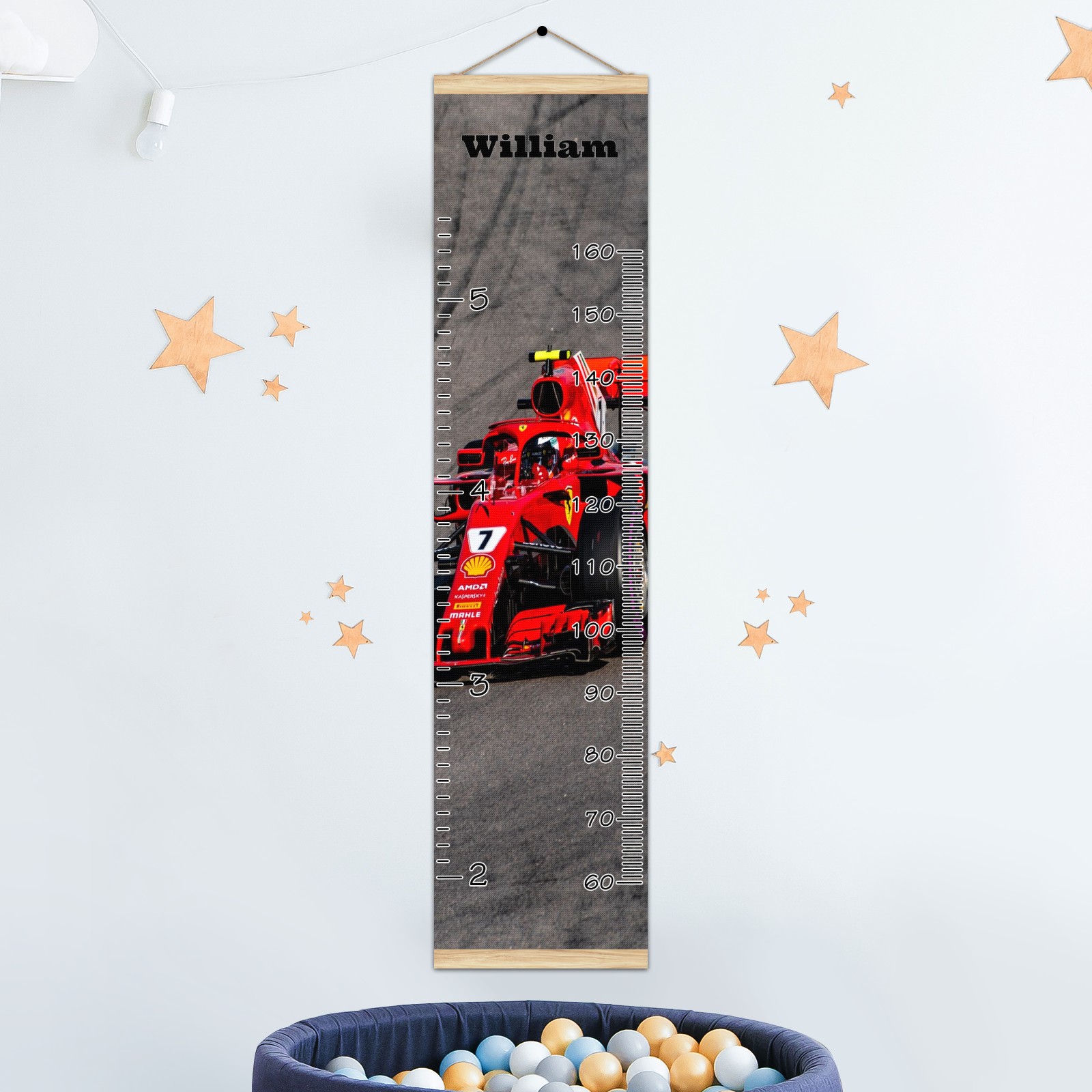 Personalized Kids Name Growth Chart Ruler for Wall Wood Frame Canvas Height Measure Chart 13.4x56 in Hanging Growth Chart RACE CAR11.17 Boys Girls Room Decor