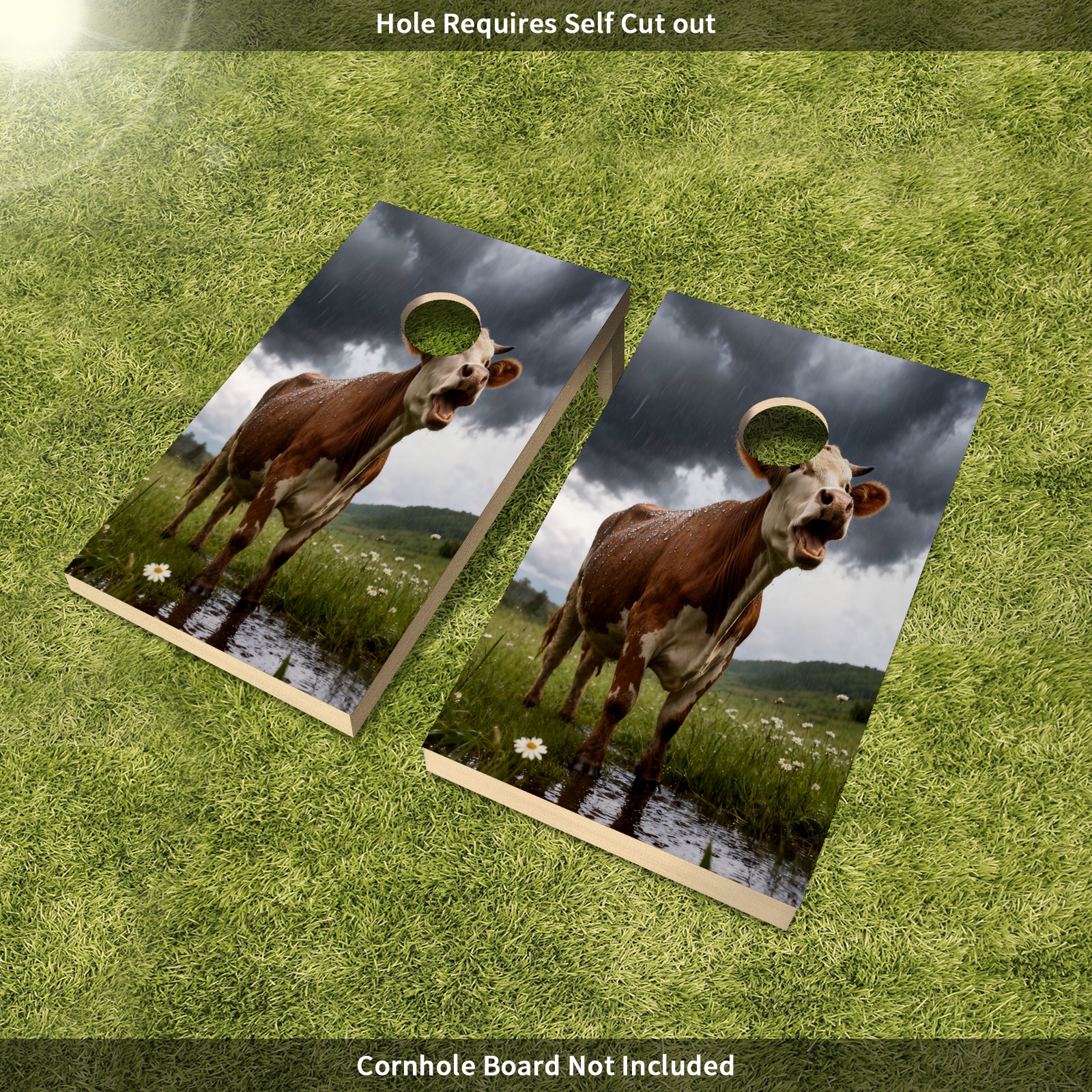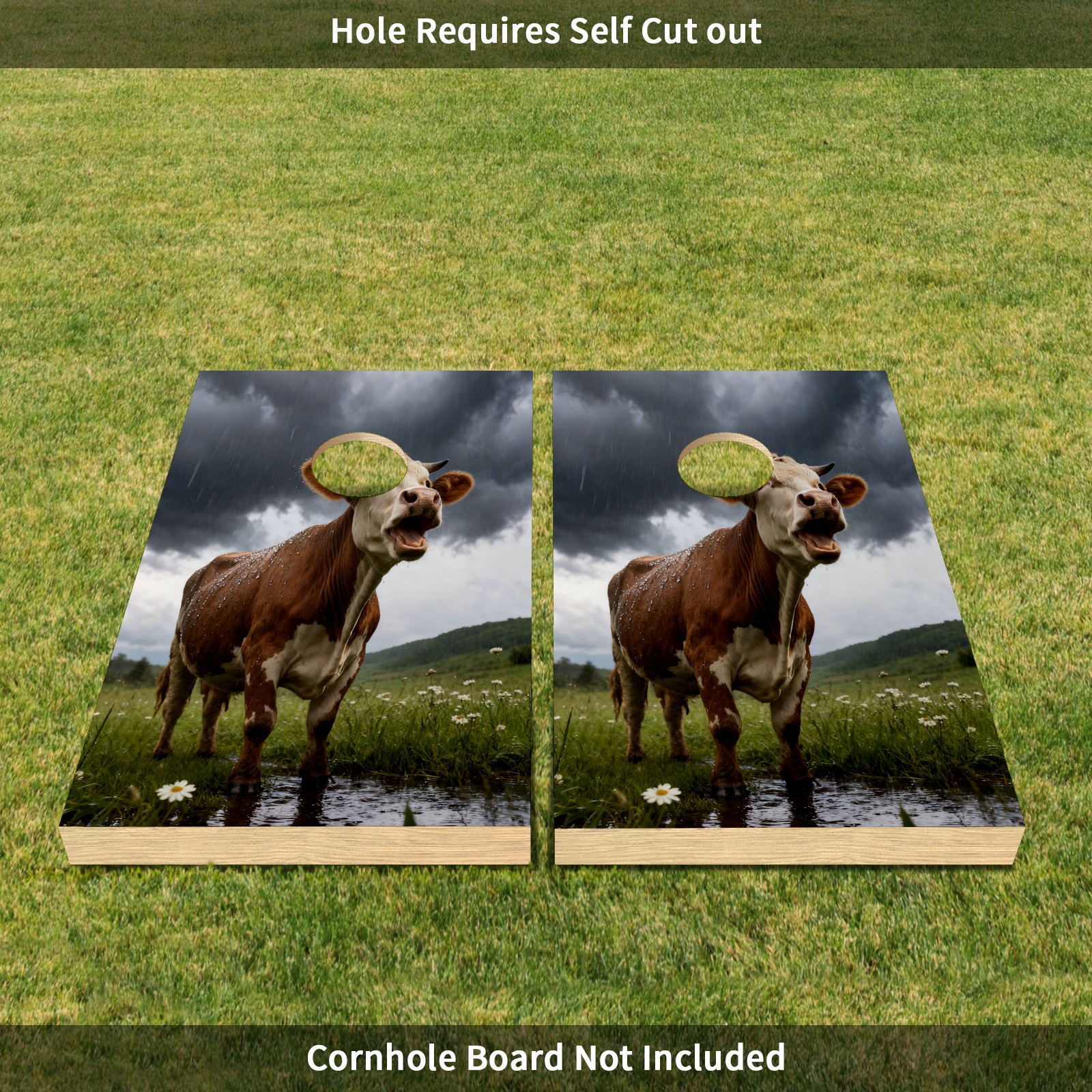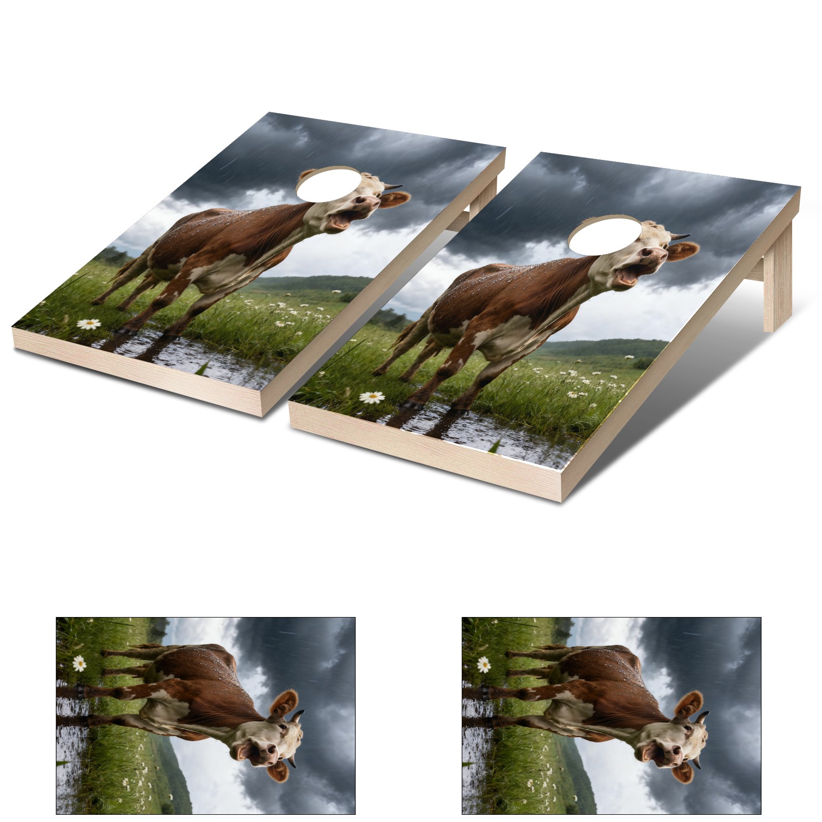 Cornhole Game Stickers For Boards Funny Cornhole Board Decals 24x36Inch Cornhole Board Wraps Weatherproof Vinyl Decal Easy Bubble Free Bean Toss Christmas Games Cow