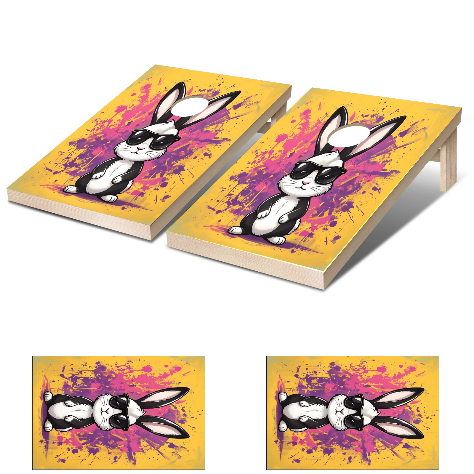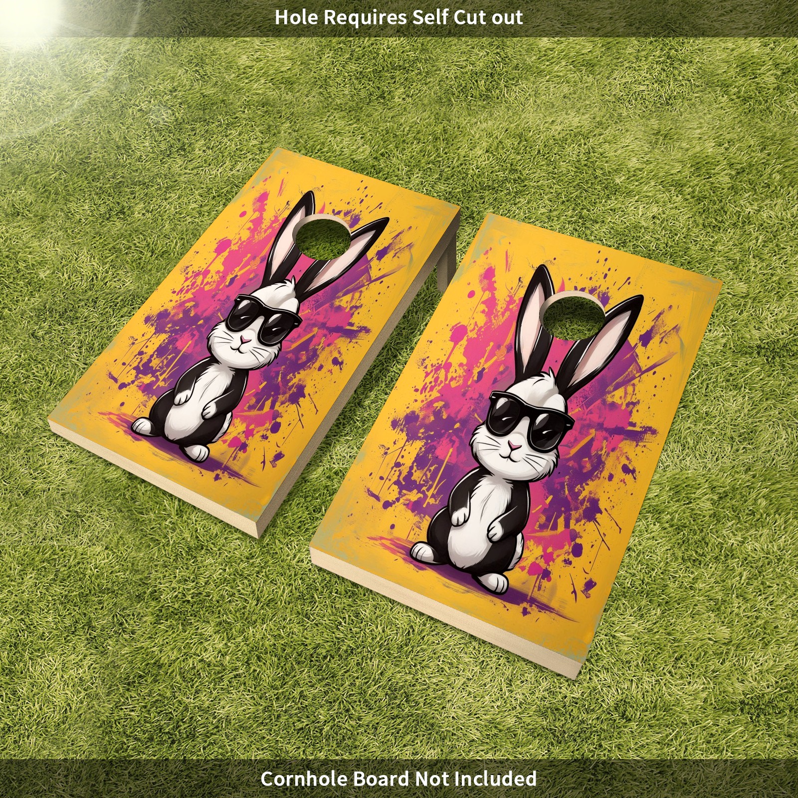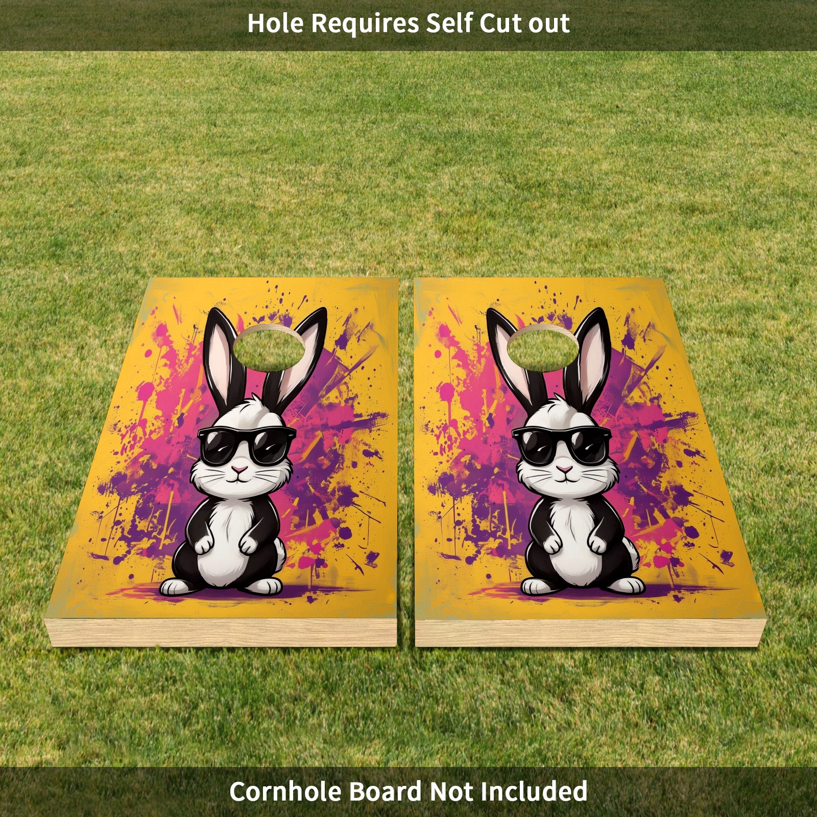 Cornhole Game Stickers For Boards Funny Cornhole Board Decals 24x36Inch Cornhole Board Wraps Weatherproof Vinyl Decal Easy Bubble Free Bean Toss Christmas Games Yellow Rabbit