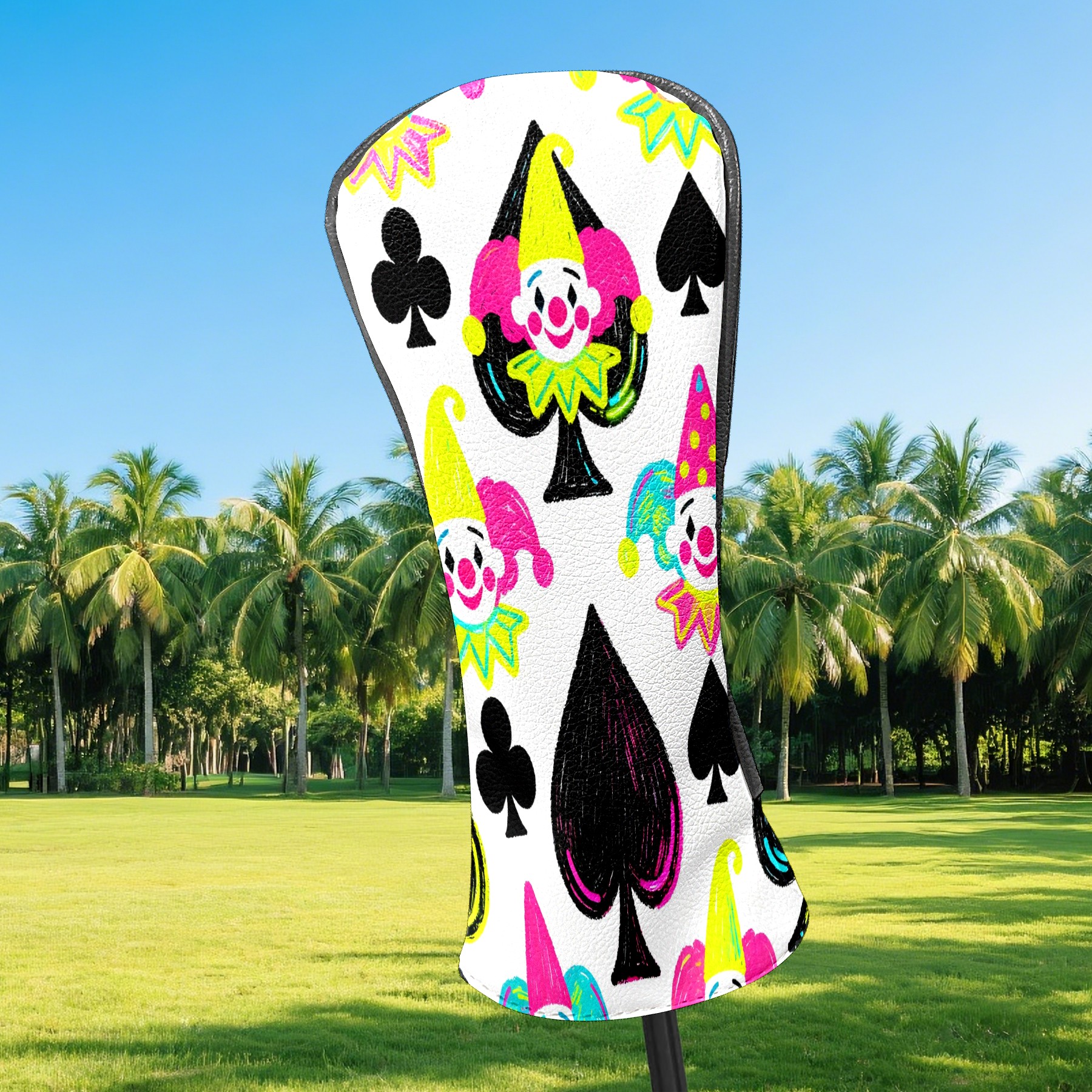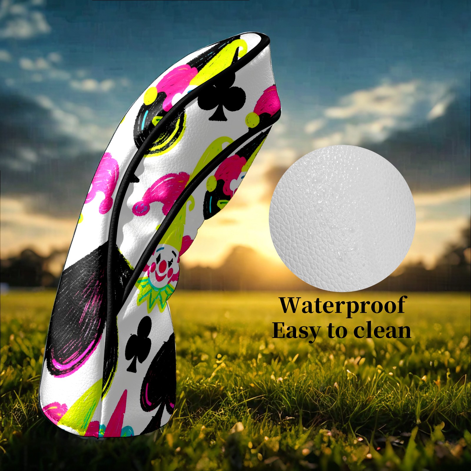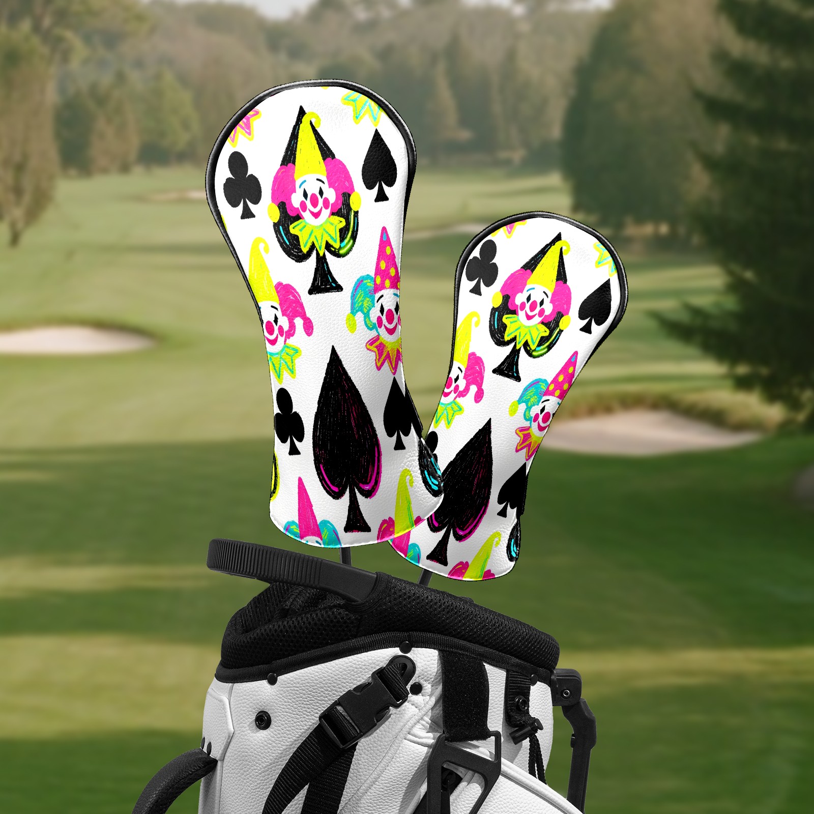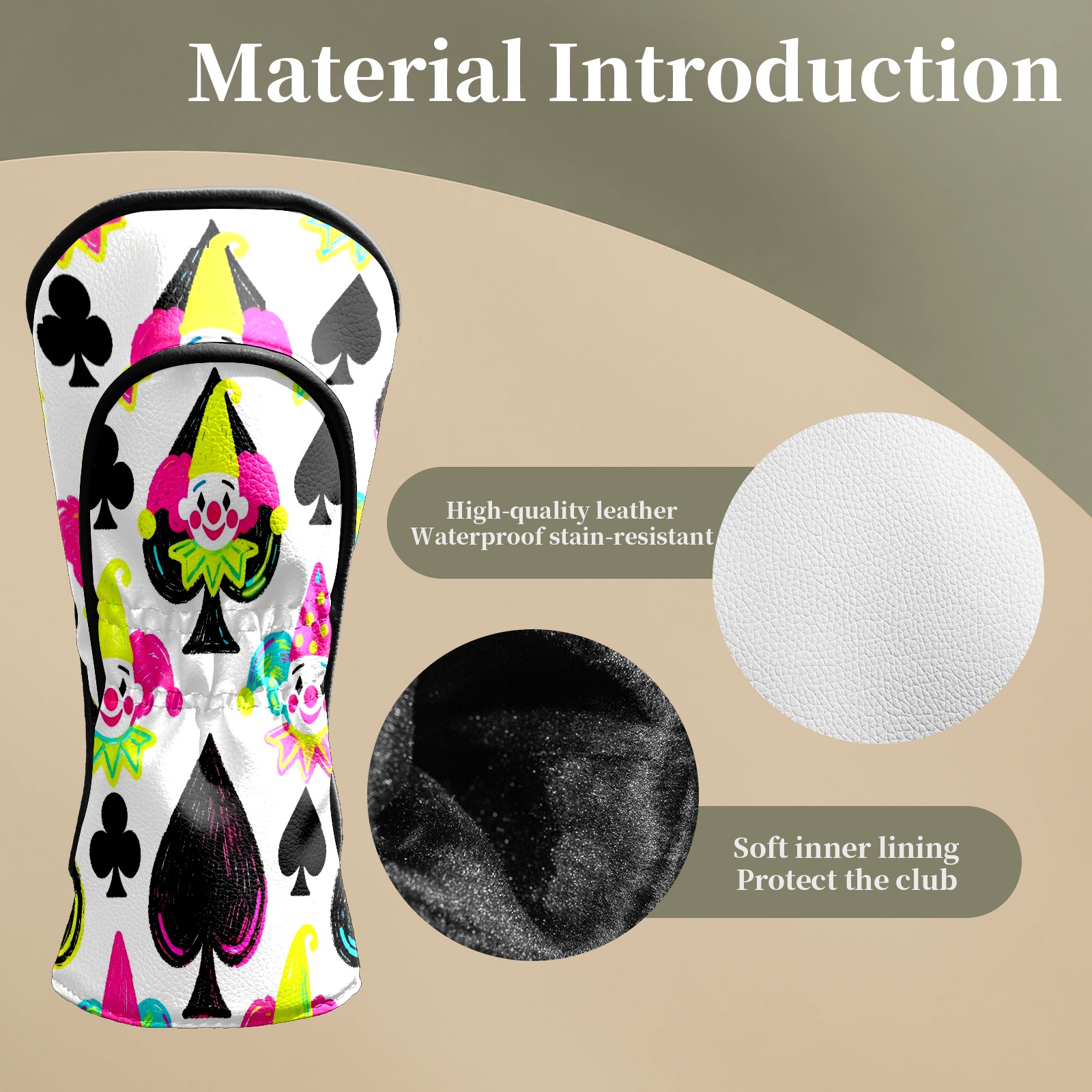 Counullo Golf Head Covers - White Poker Clowns Driver Fairway Headcover, Durable PU Leather & Soft Velvet Lining, Secure Elastic Band, Perfect Christmas Golf Gift for Men