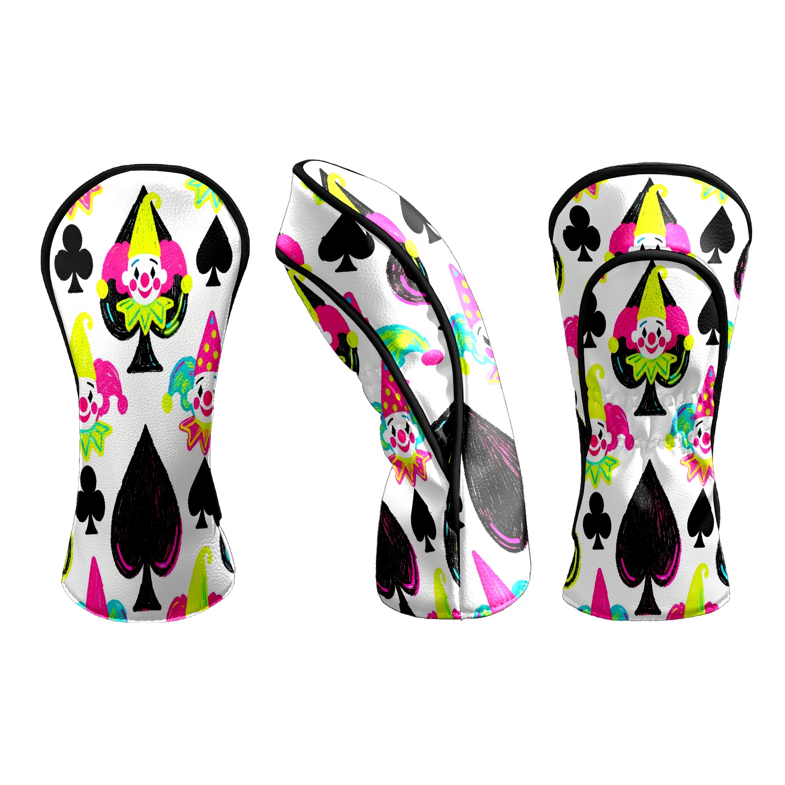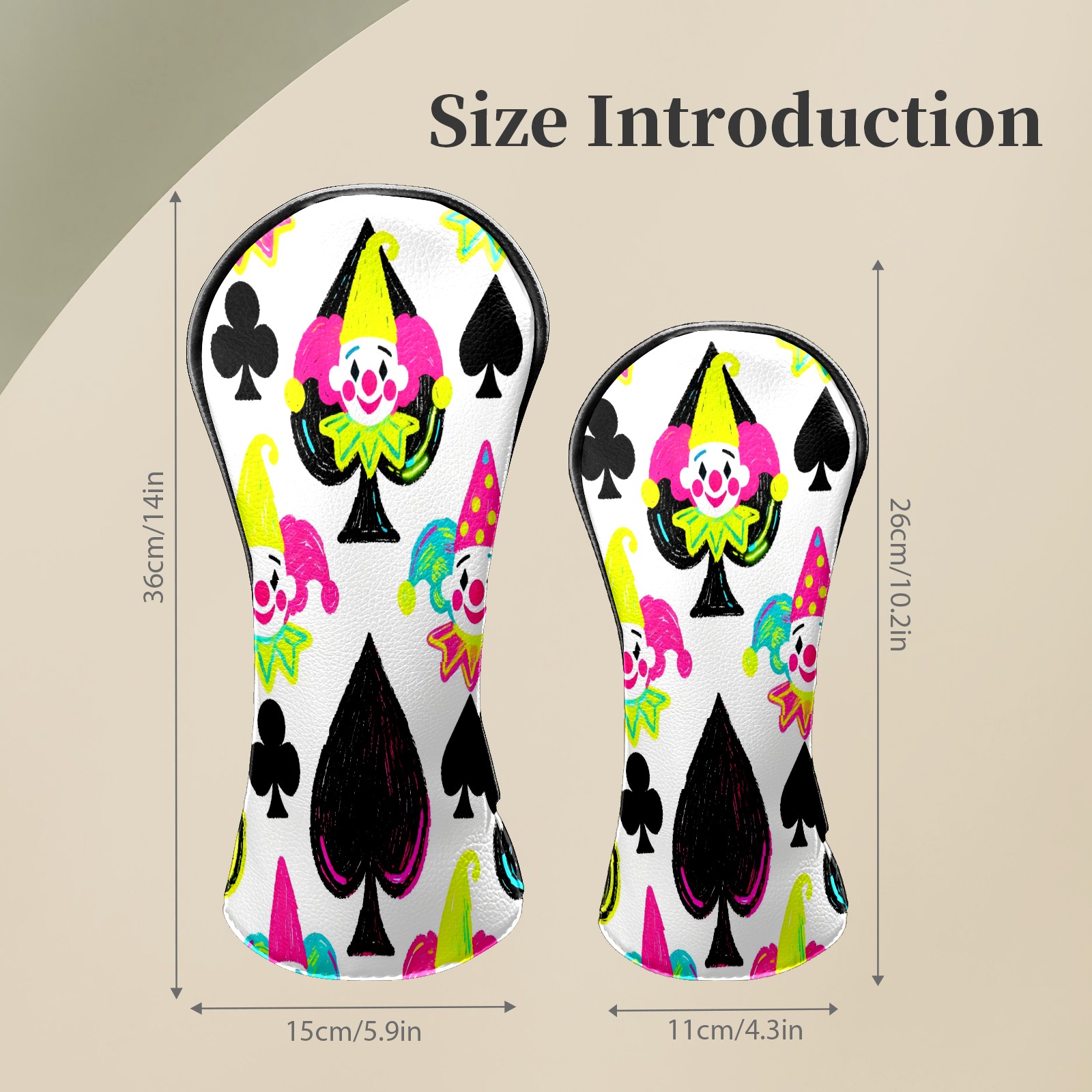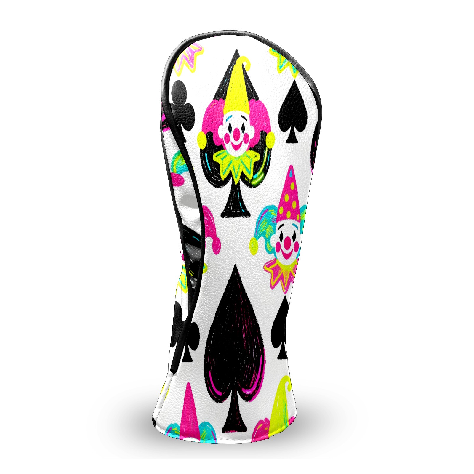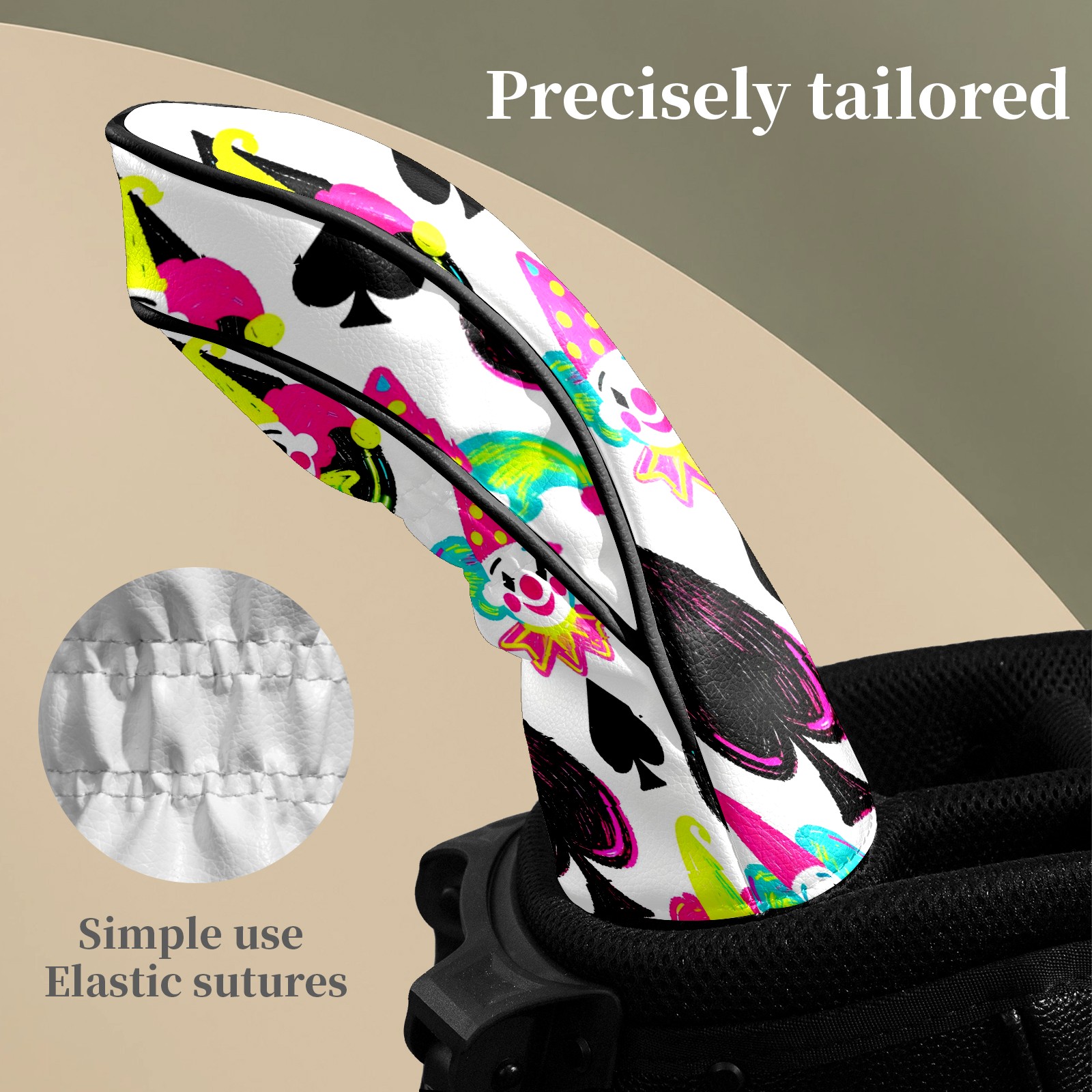 Counullo Golf Head Covers - White Poker Clowns Driver Fairway Headcover, Durable PU Leather & Soft Velvet Lining, Secure Elastic Band, Perfect Christmas Golf Gift for Men