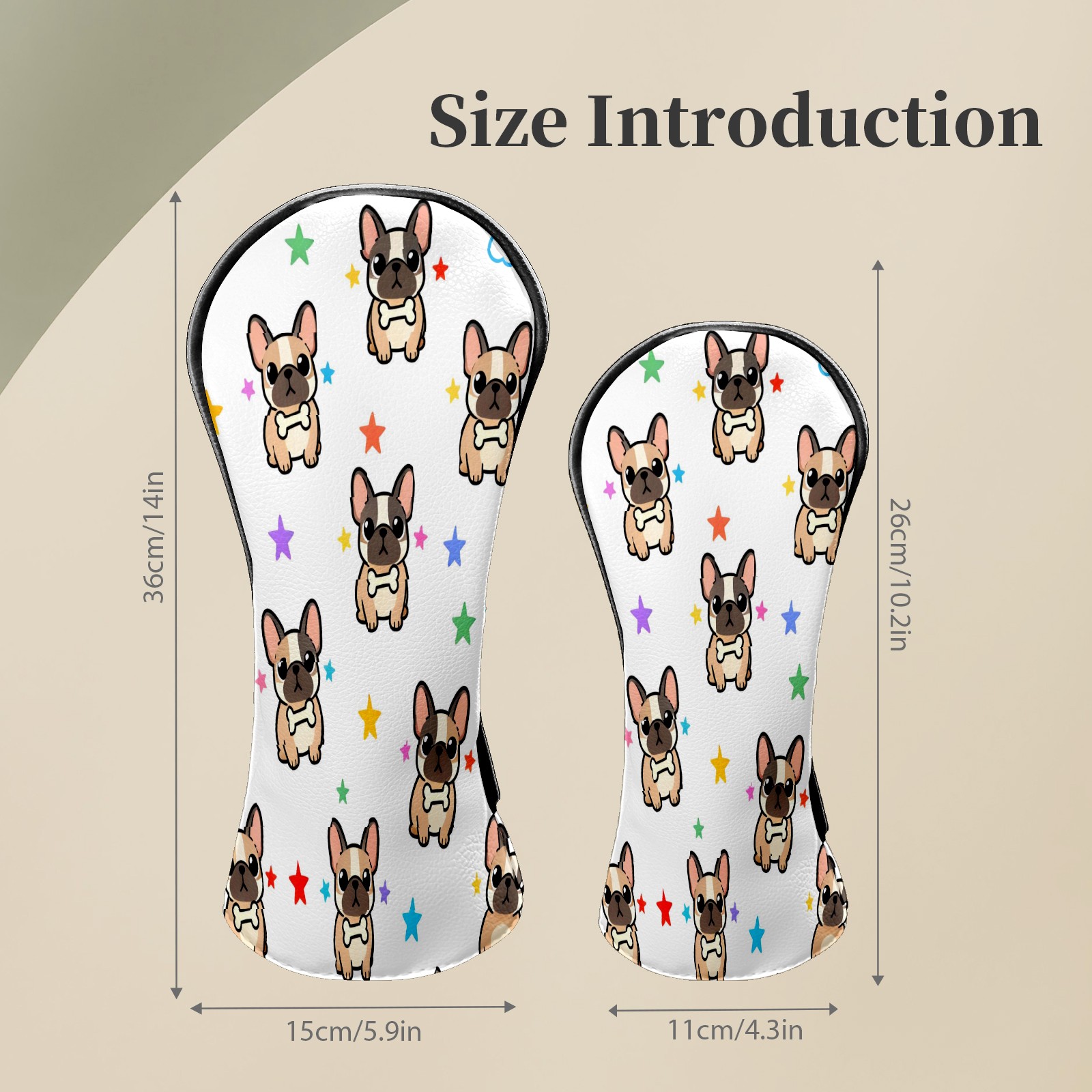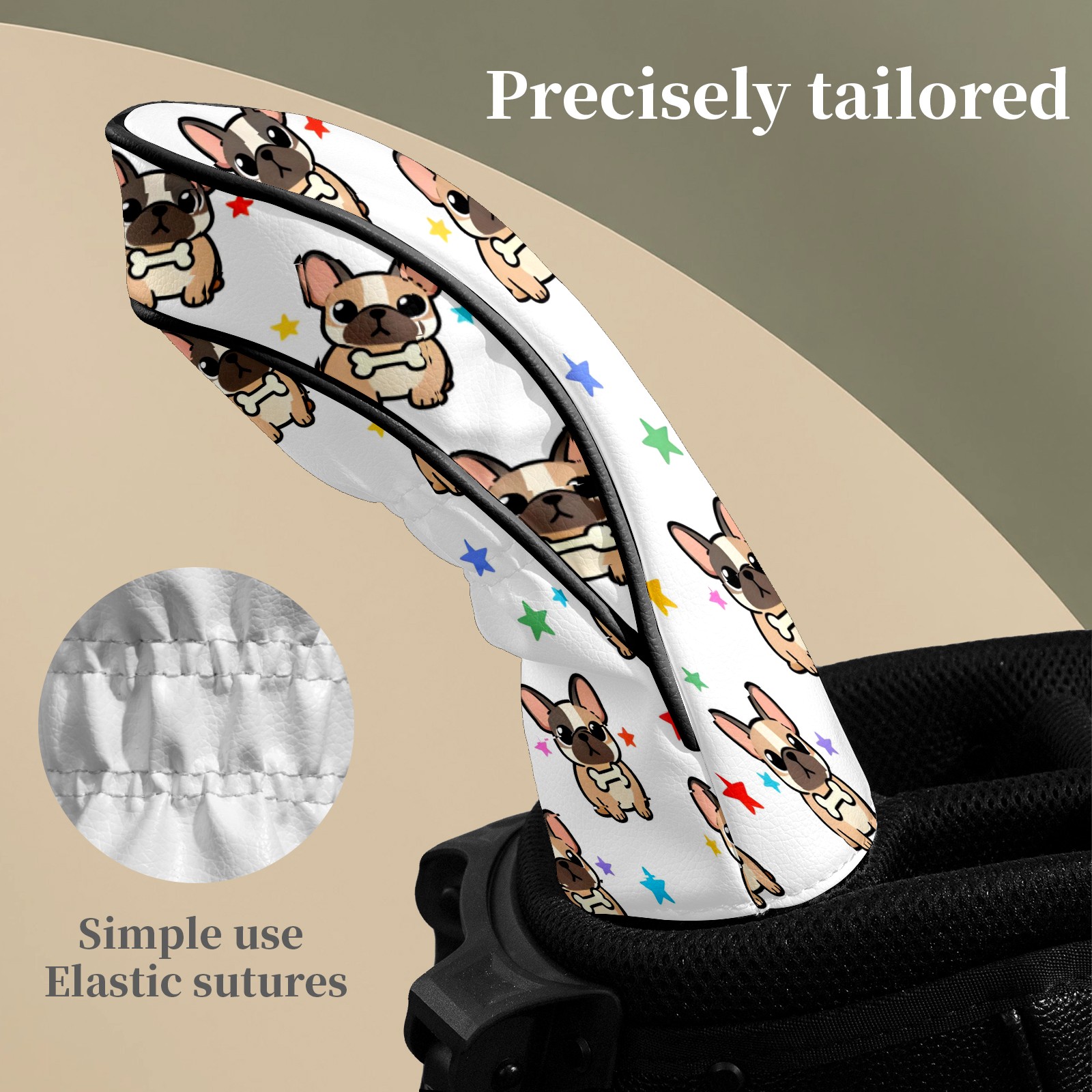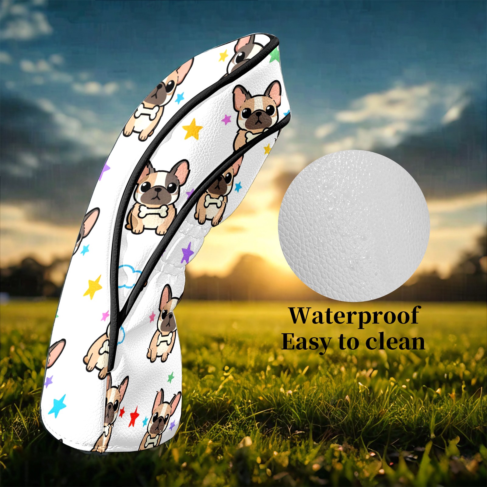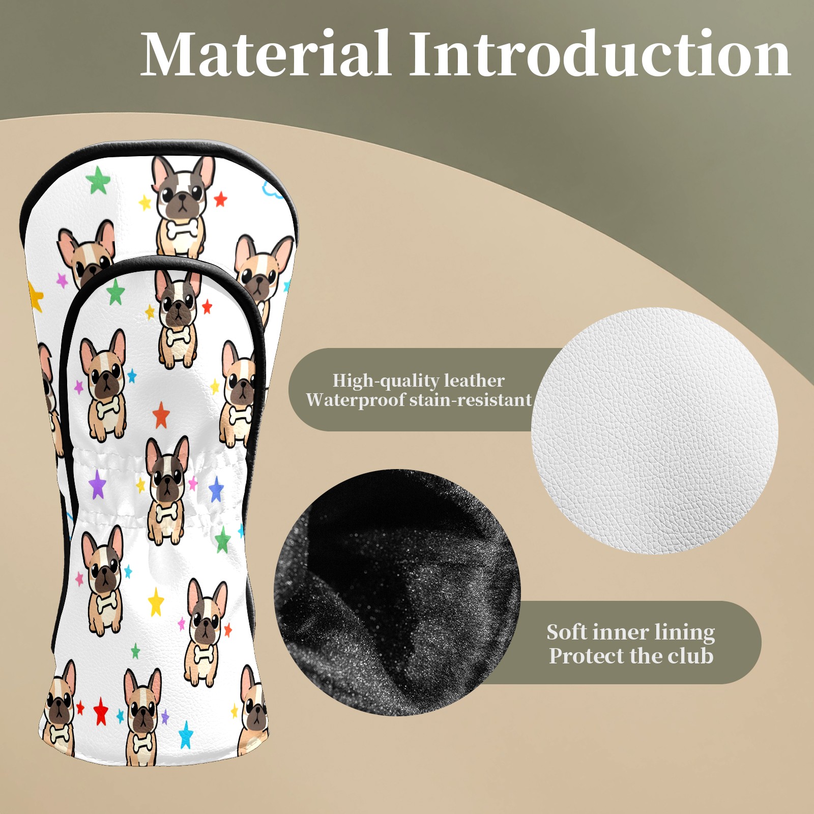 Counullo Golf Head Covers - White French Bulldogs Driver Fairway Headcover, Durable PU Leather & Soft Velvet Lining, Secure Elastic Band, Perfect Christmas Golf Gift for Men
