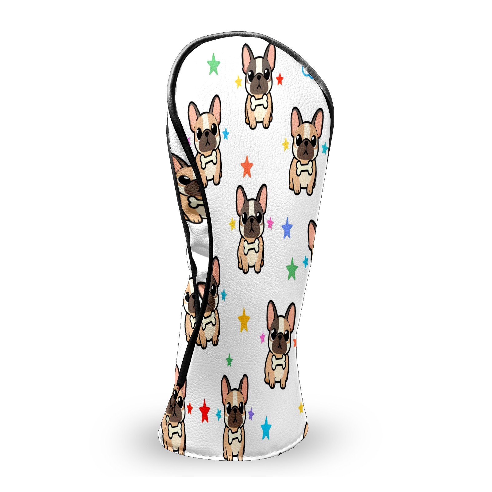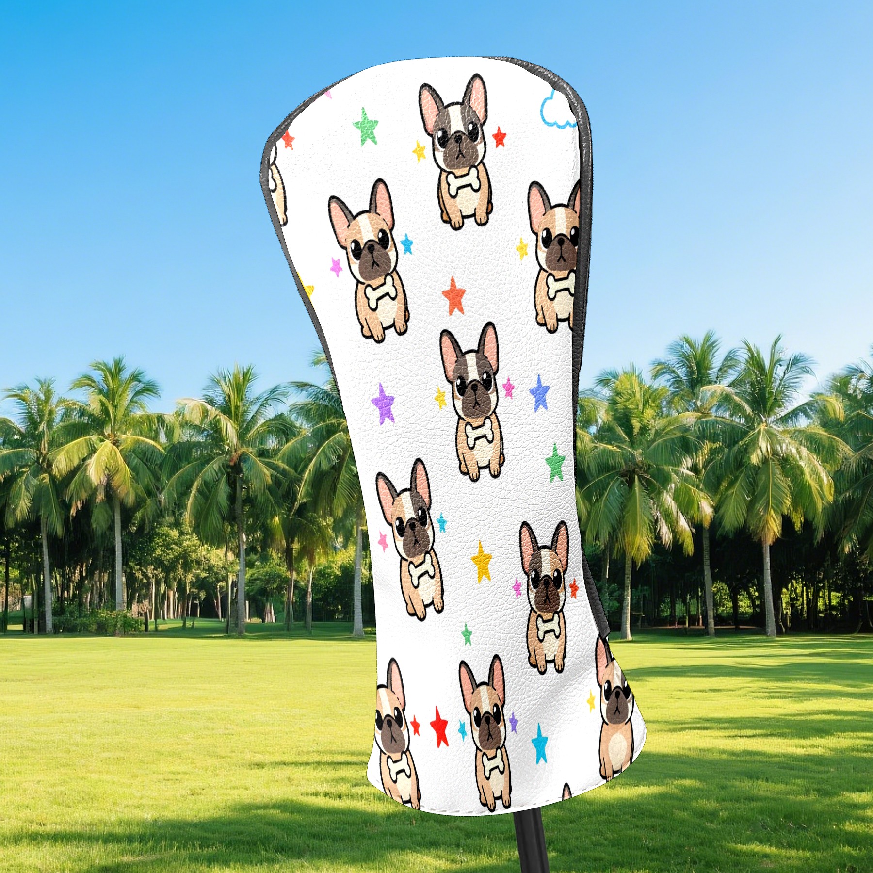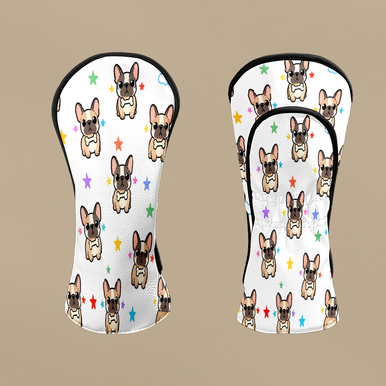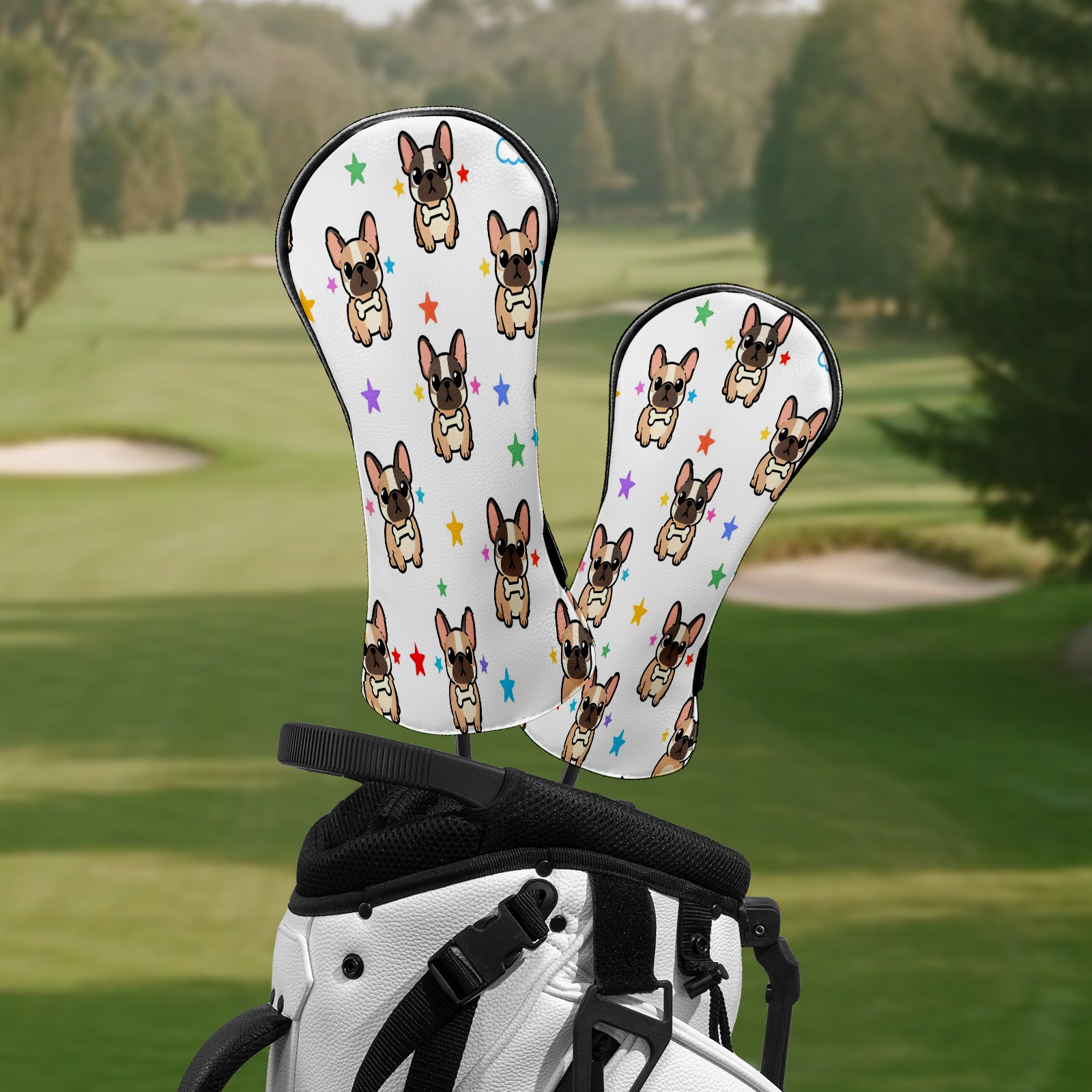 Counullo Golf Head Covers - White French Bulldogs Driver Fairway Headcover, Durable PU Leather & Soft Velvet Lining, Secure Elastic Band, Perfect Christmas Golf Gift for Men