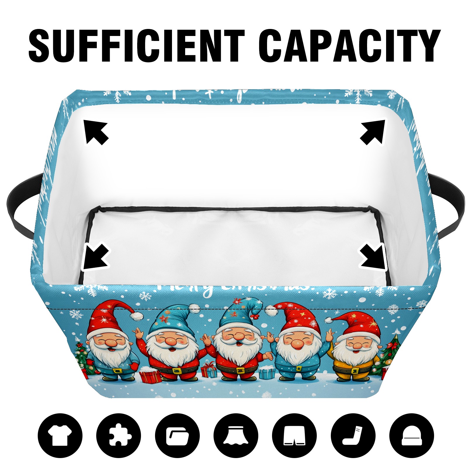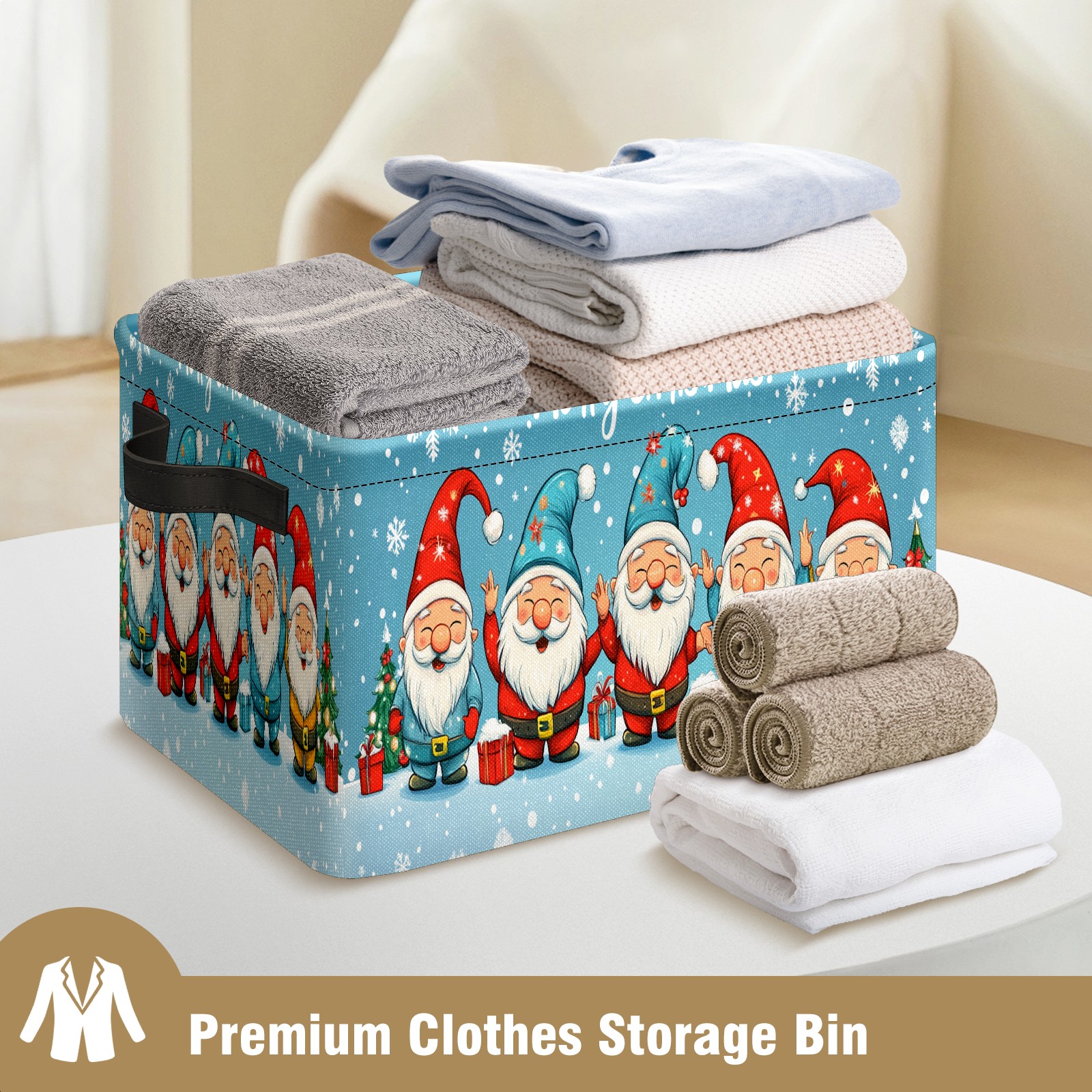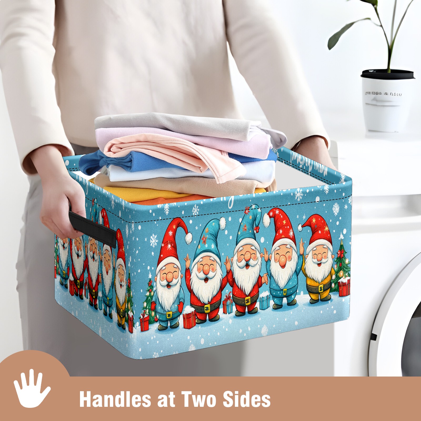Gnome For The Holidays Large Storage Box, Foldable Toy Basket with Handle, for Organizing Clothes, Christmas Gift Storage Box, Children's Toys.