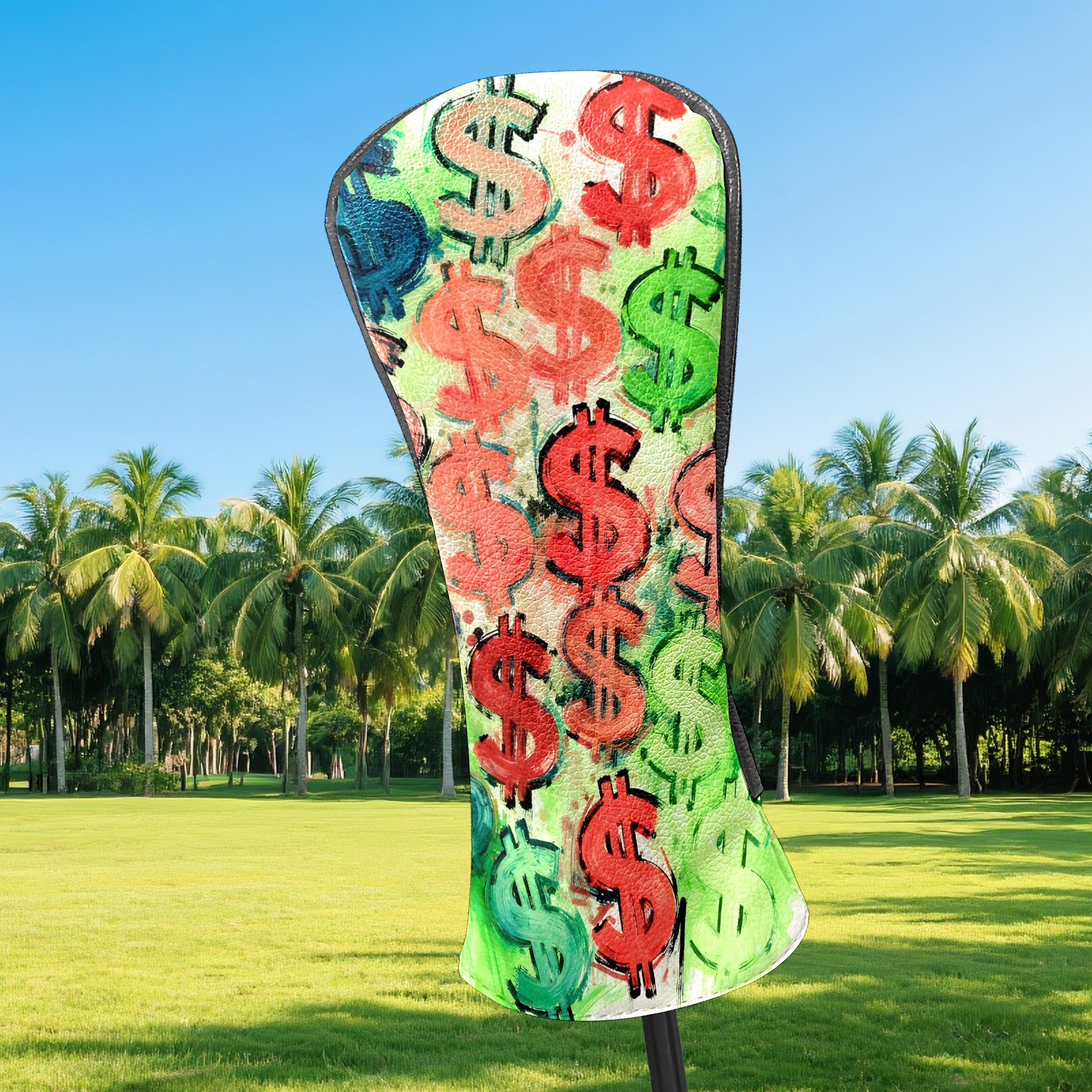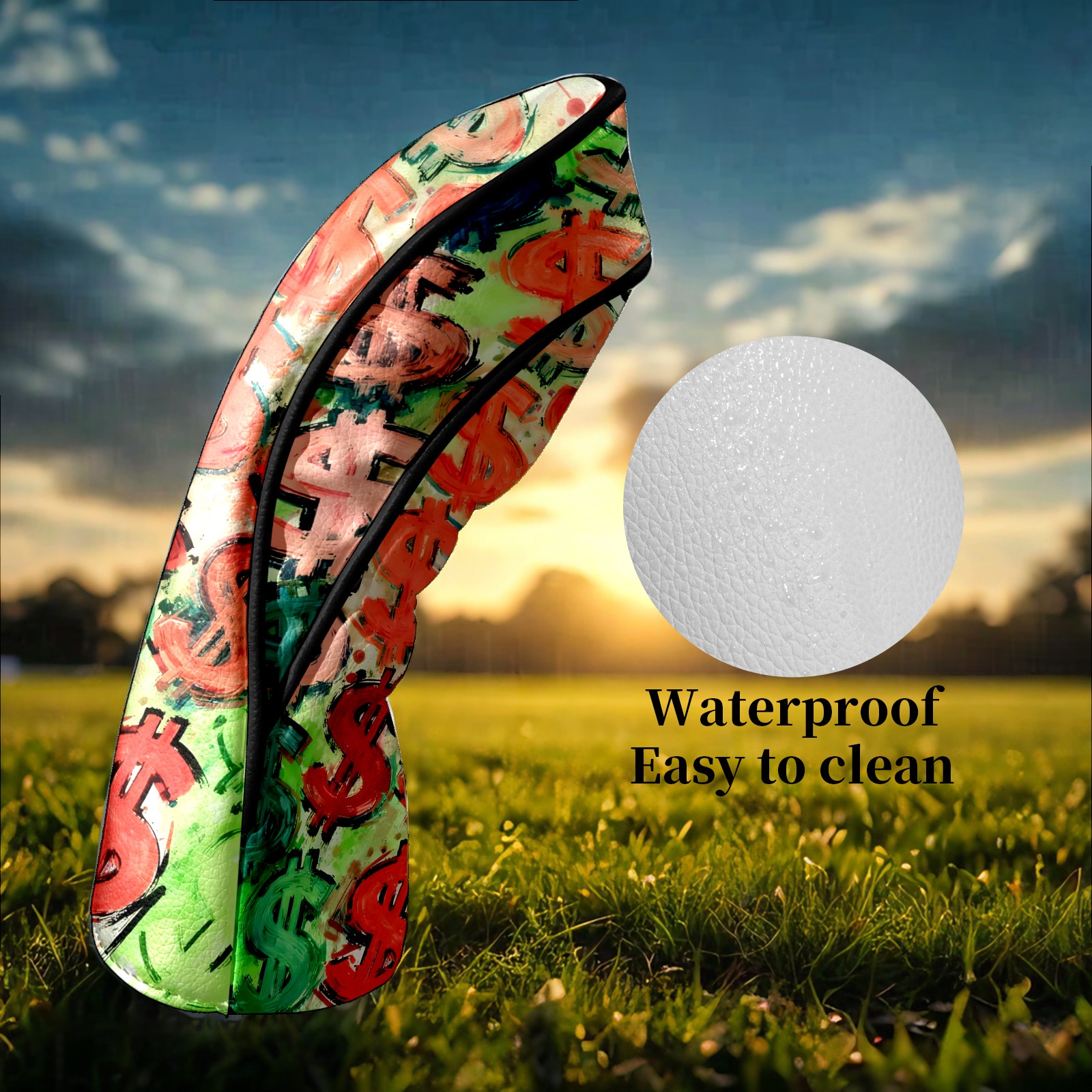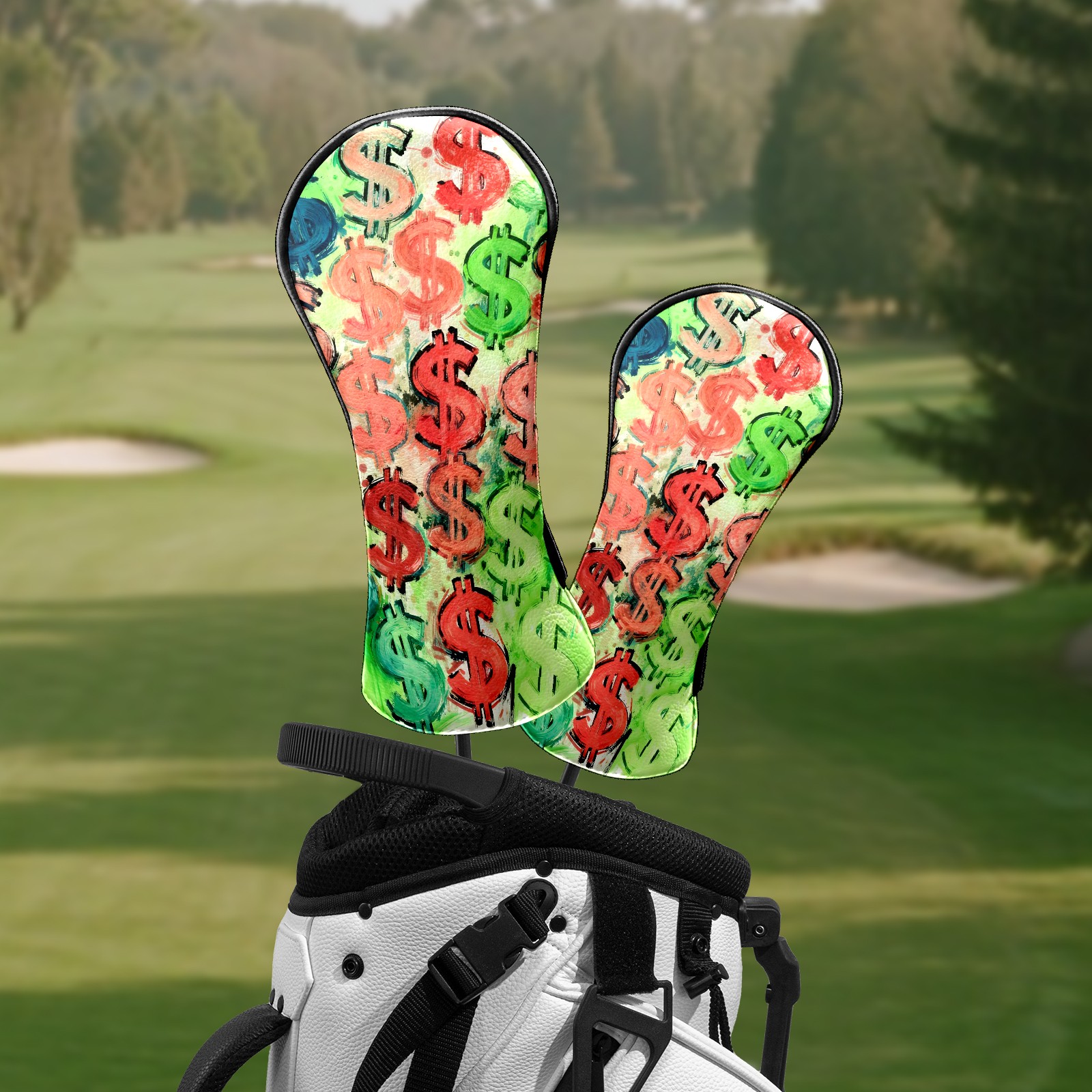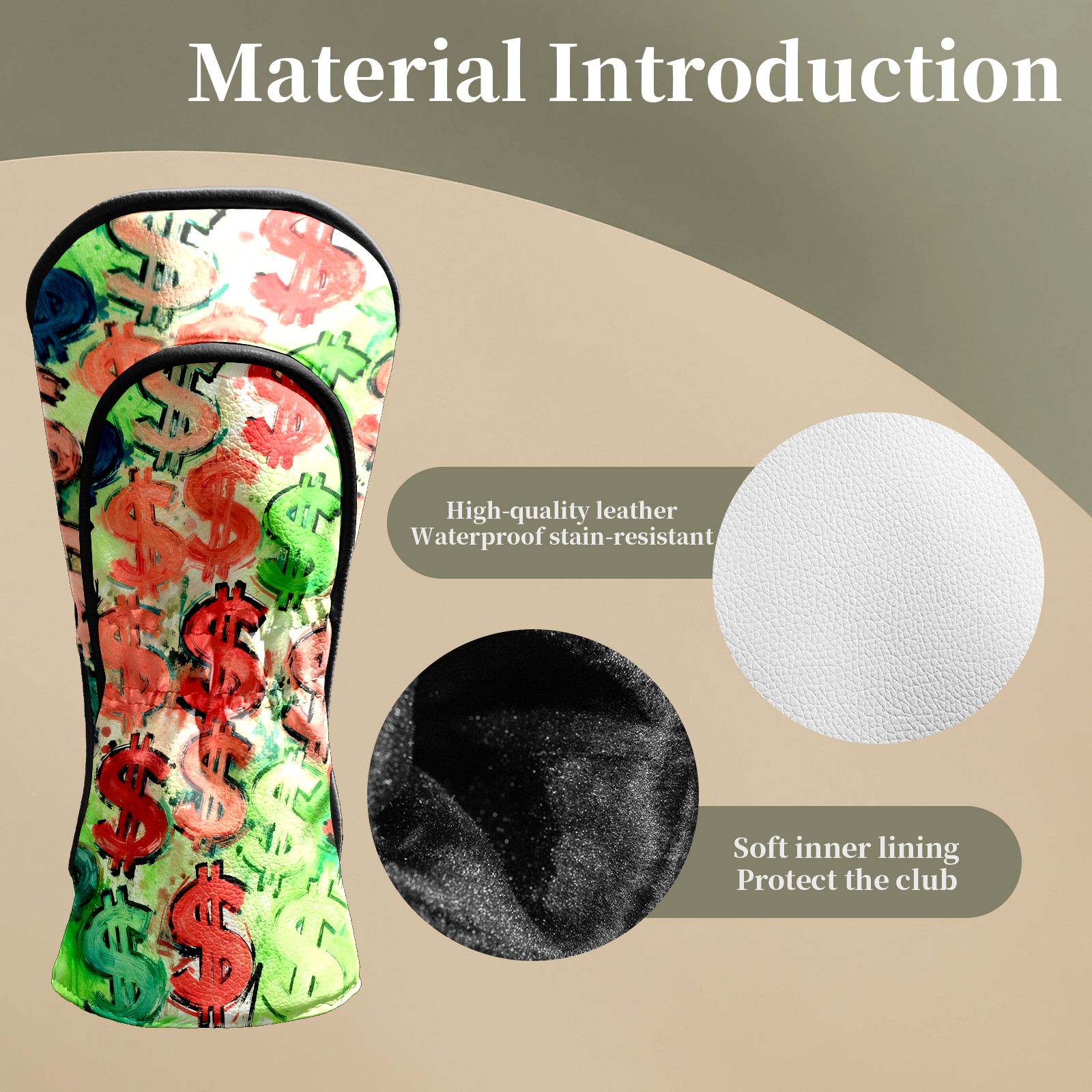 Counullo Golf Head Covers - Green Dollar Signs Colorful Driver Fairway Headcover, Durable PU Leather & Soft Velvet Lining, Secure Elastic Band, Perfect Christmas Golf Gift for Men