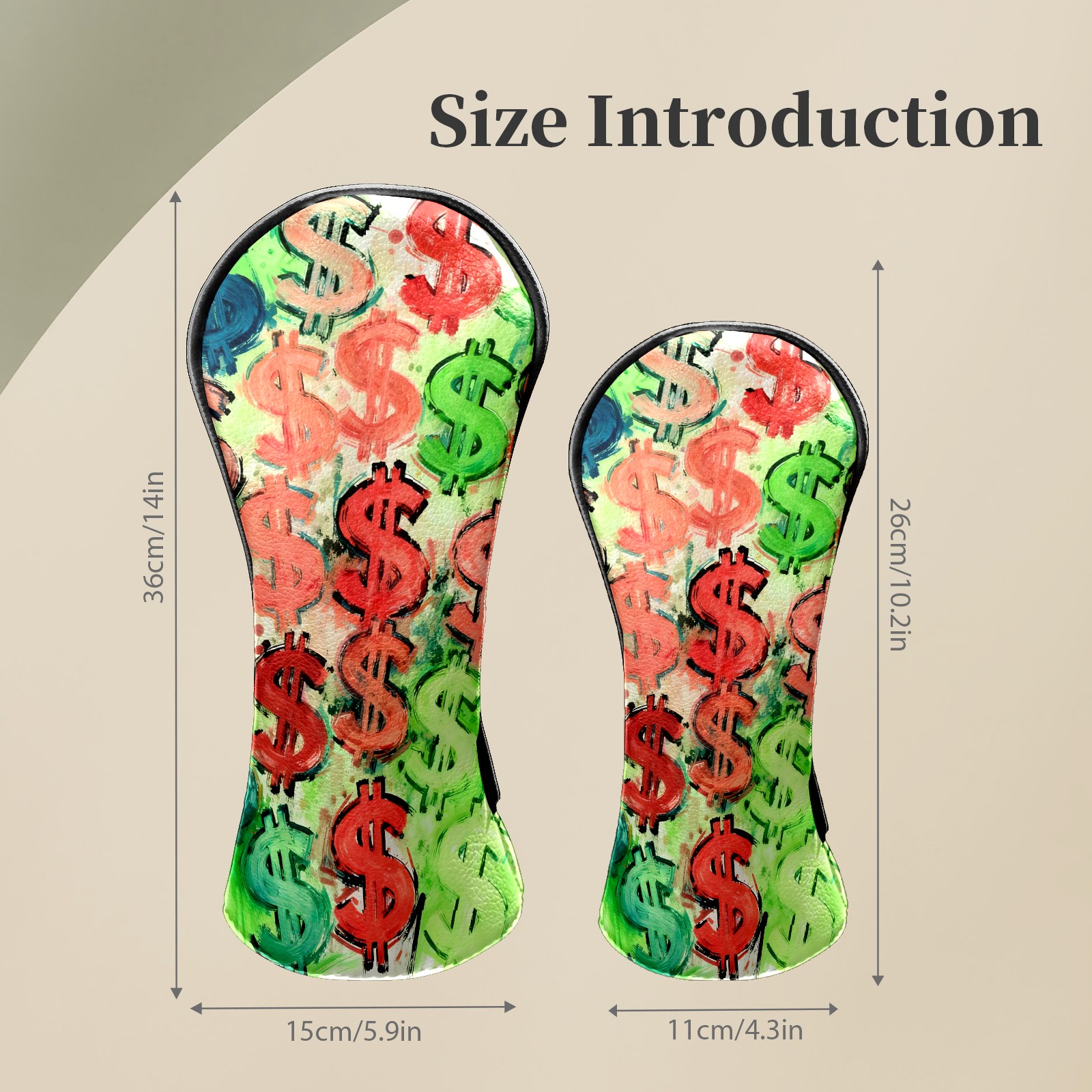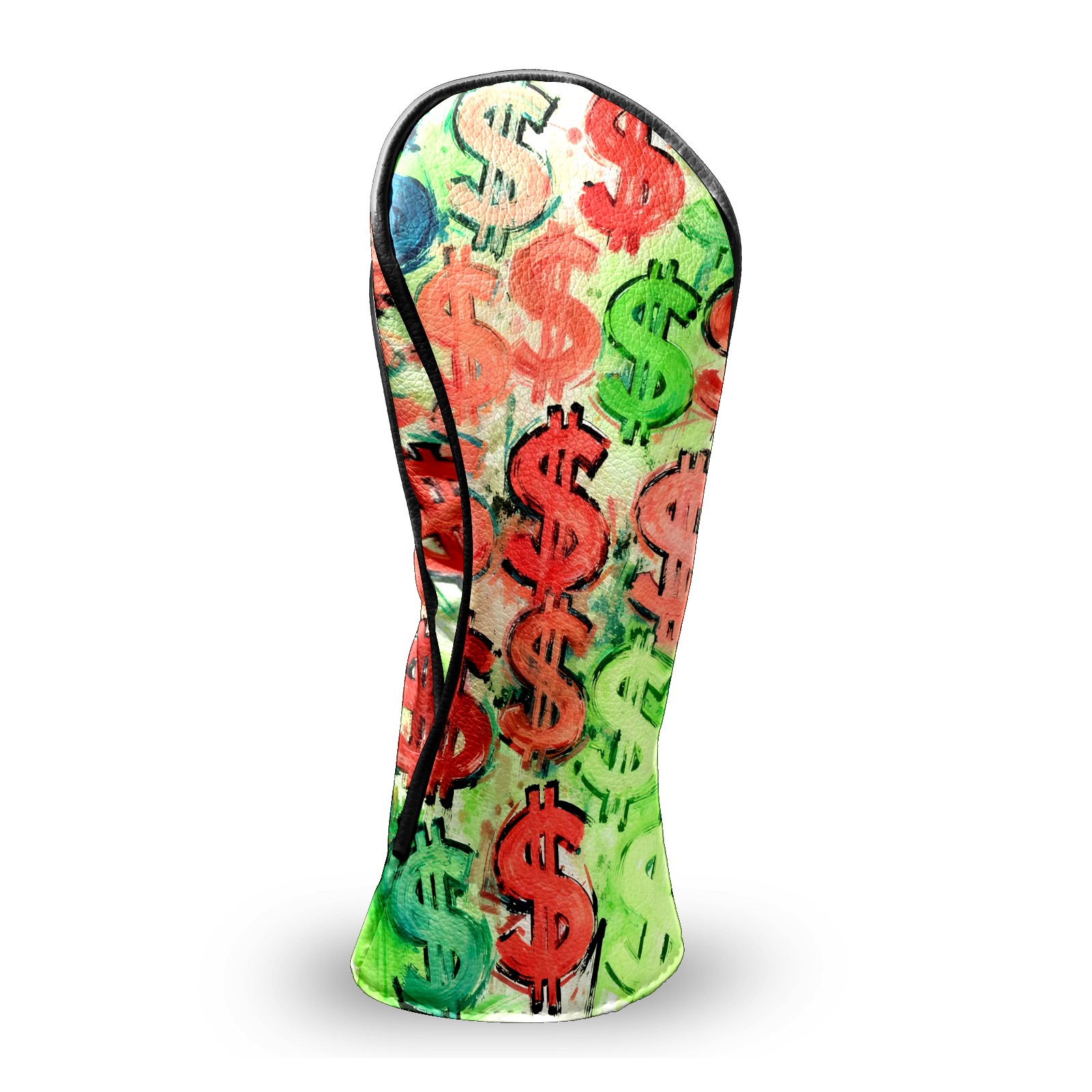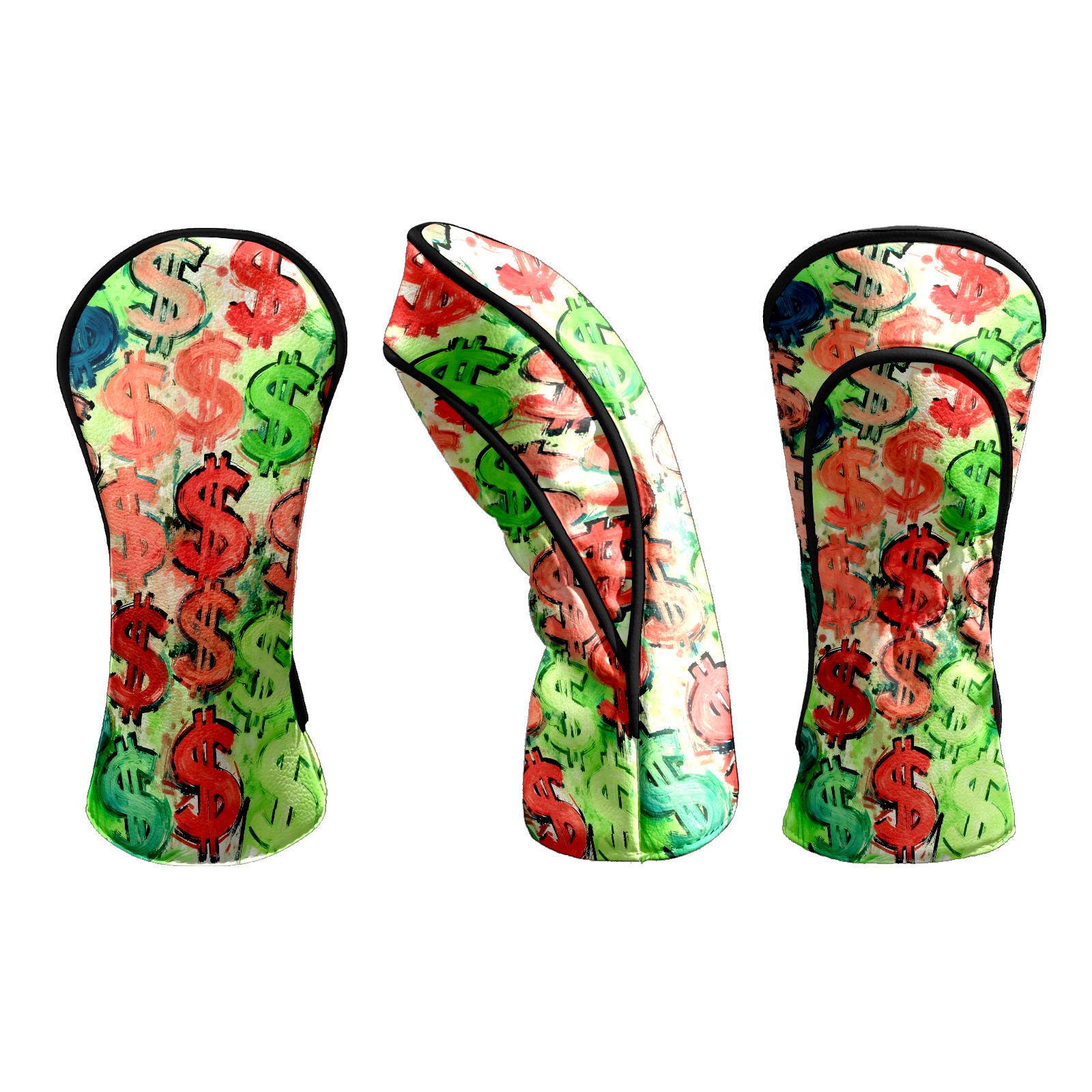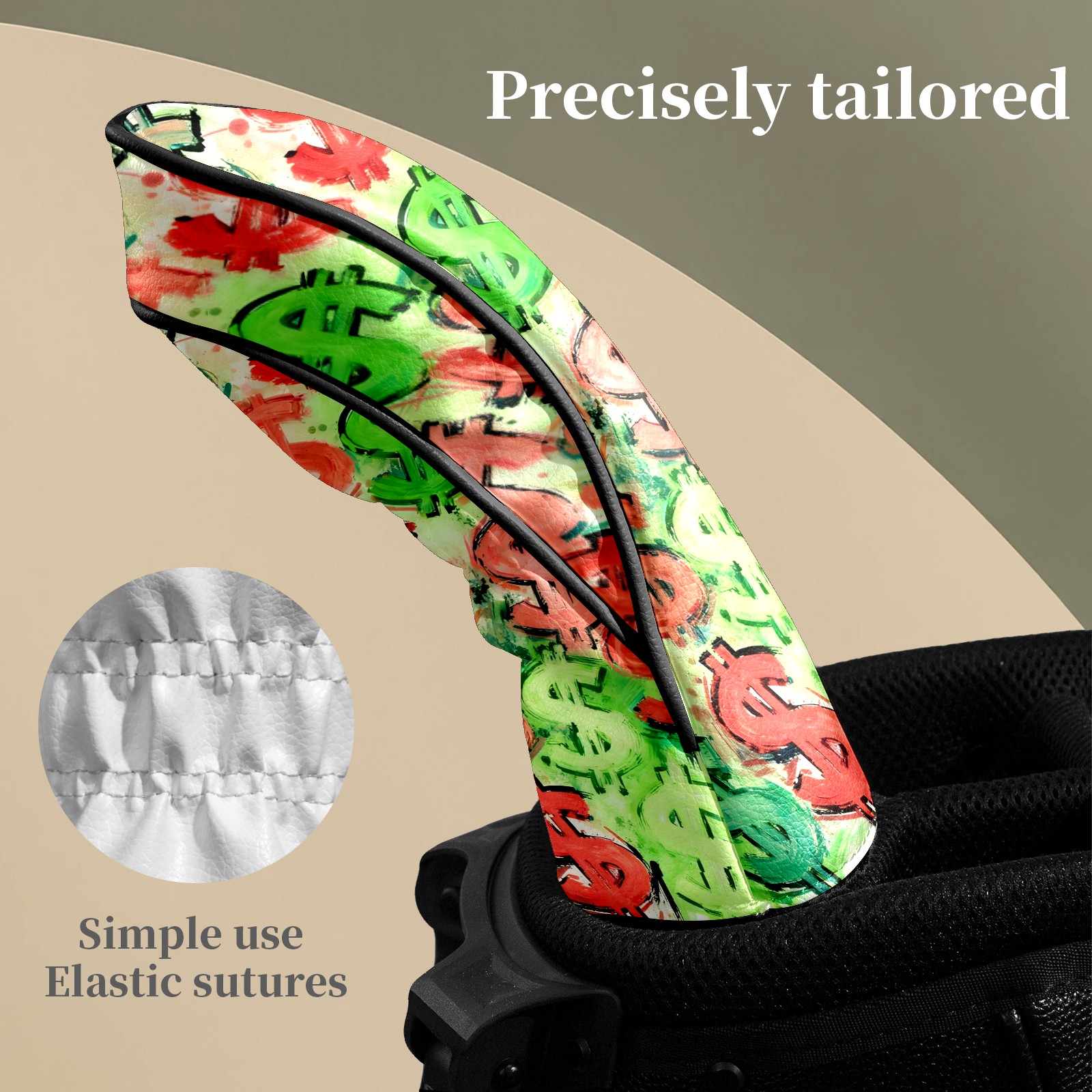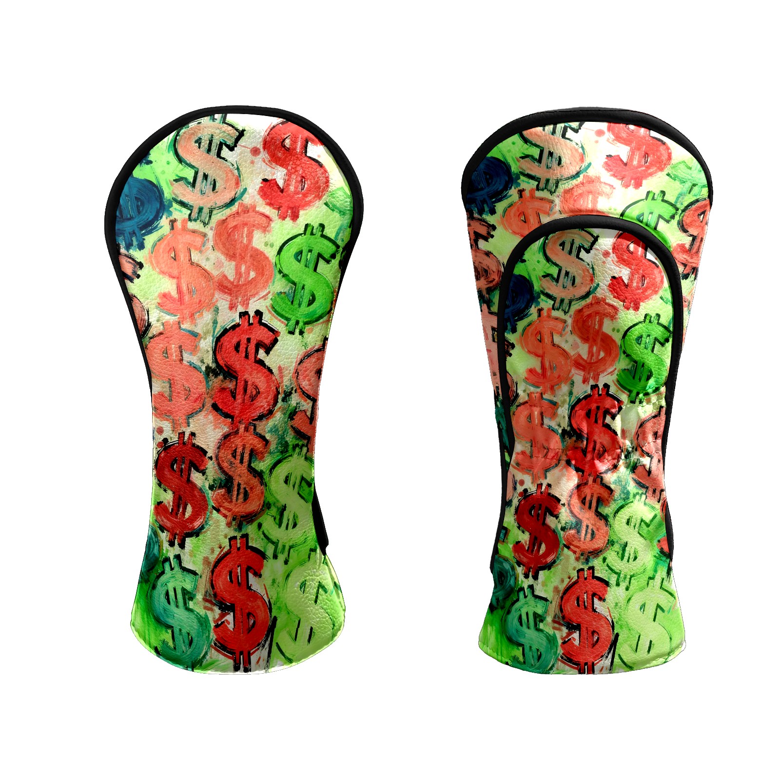 Counullo Golf Head Covers - Green Dollar Signs Colorful Driver Fairway Headcover, Durable PU Leather & Soft Velvet Lining, Secure Elastic Band, Perfect Christmas Golf Gift for Men