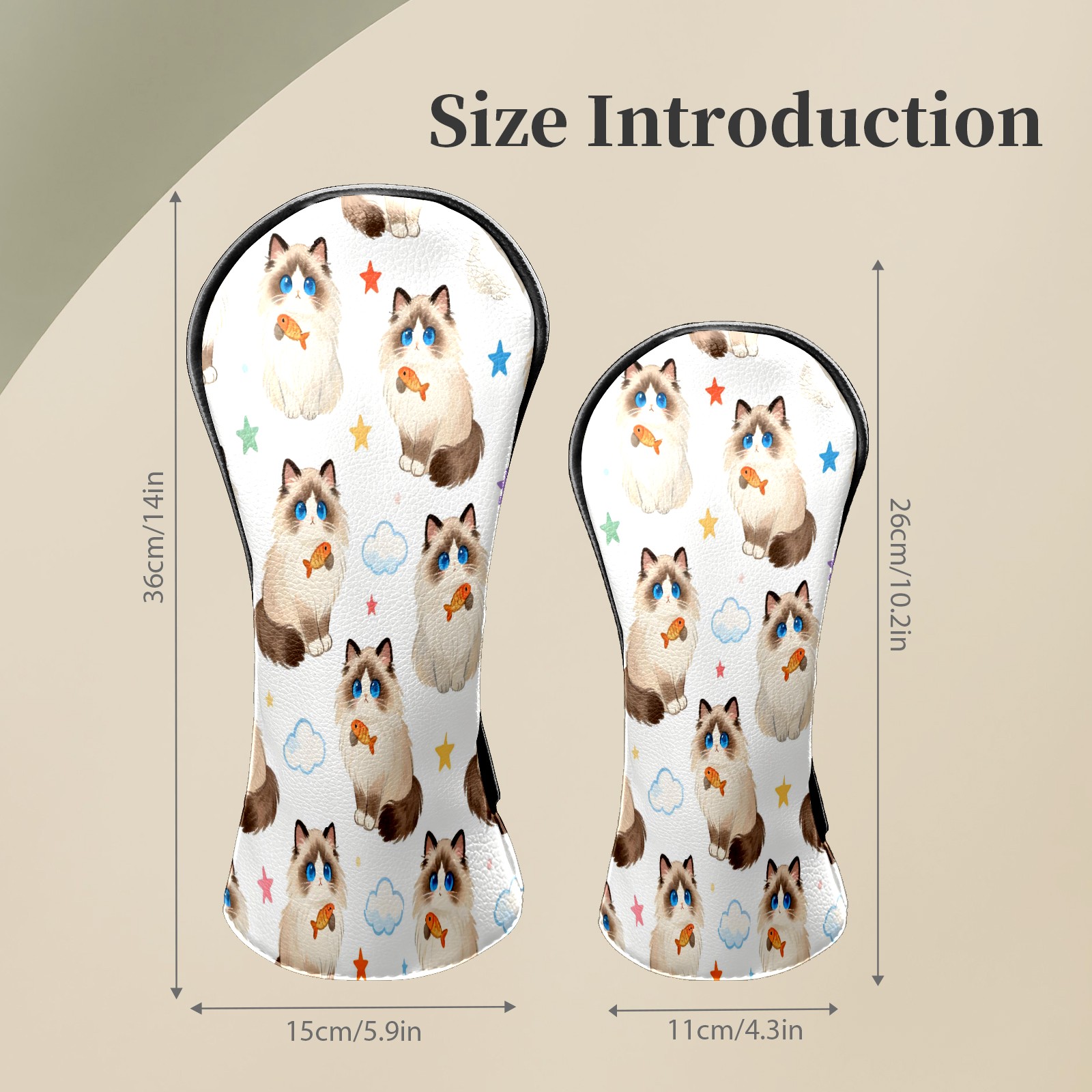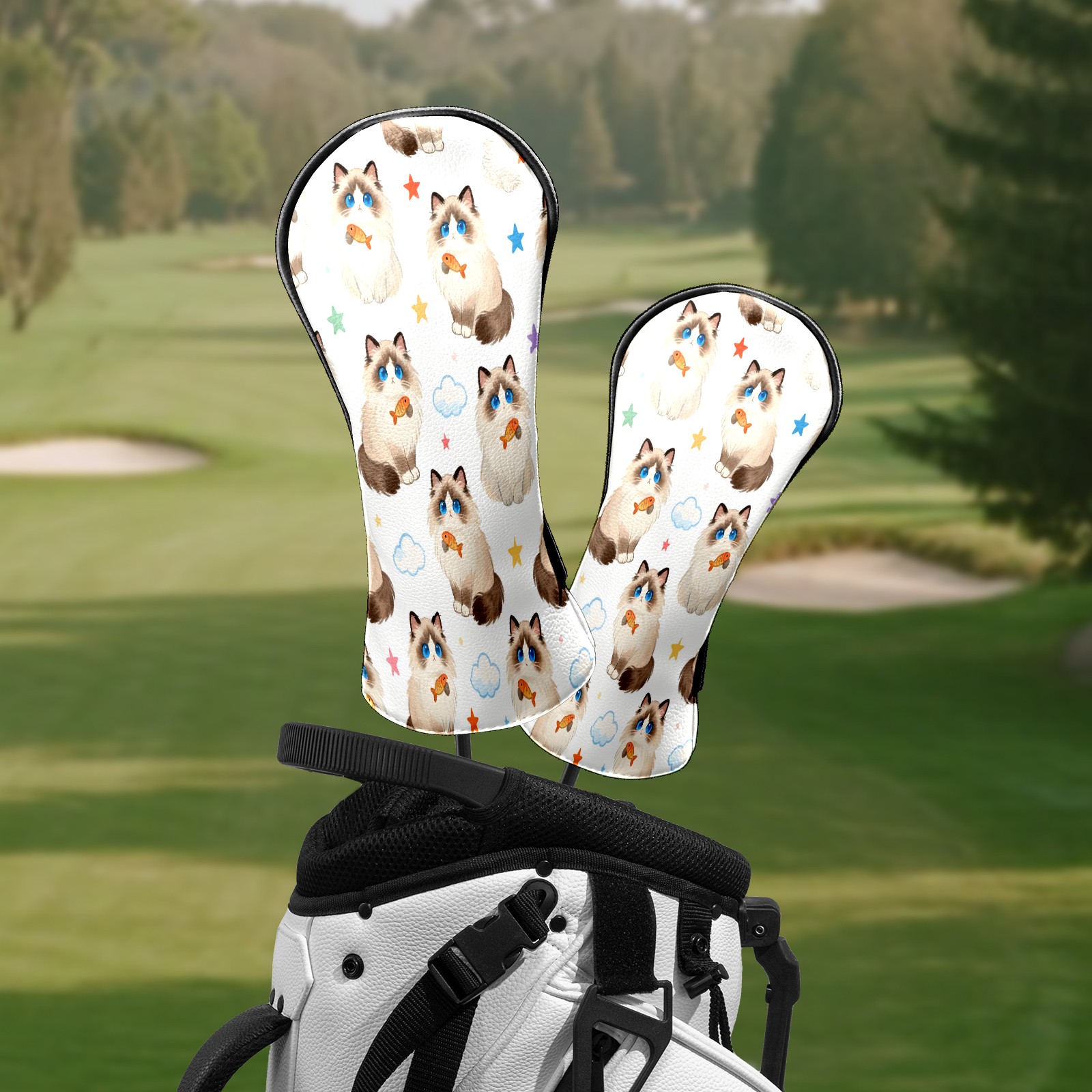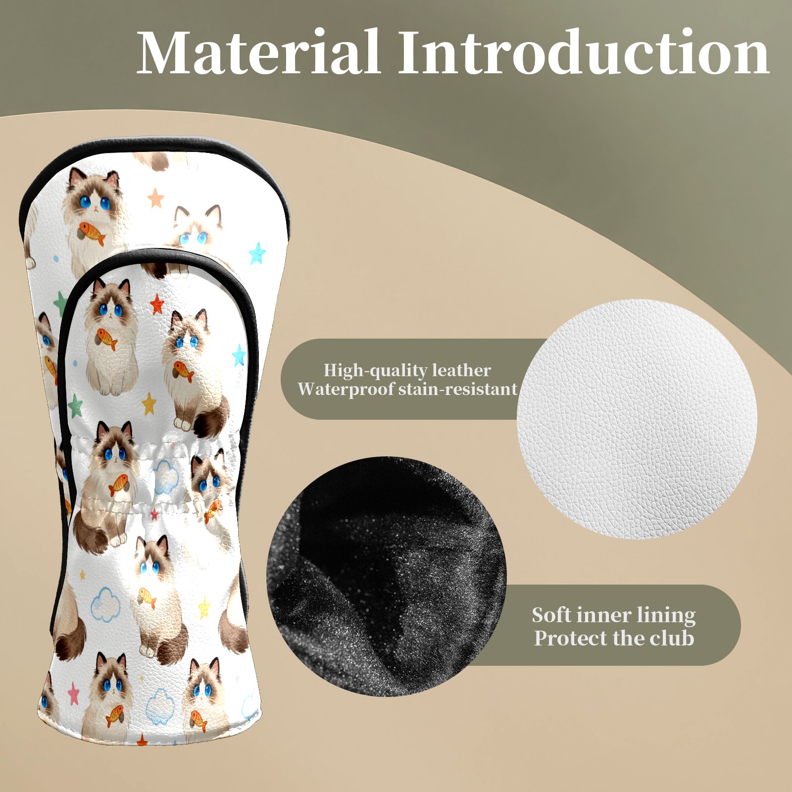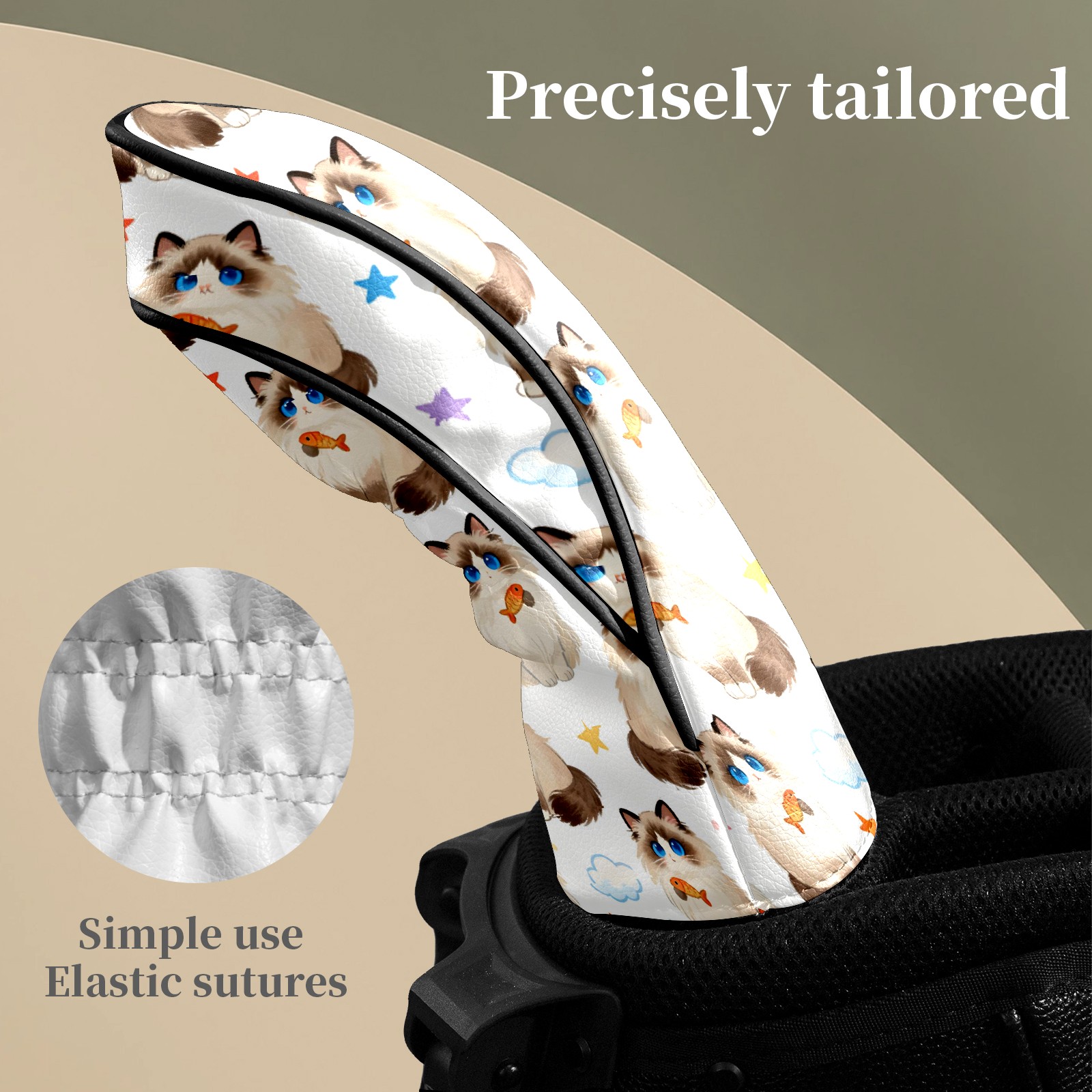 Counullo Golf Head Covers - Beige Cats Driver Fairway Headcover, Durable PU Leather & Soft Velvet Lining, Secure Elastic Band, Perfect Christmas Golf Gift for Men