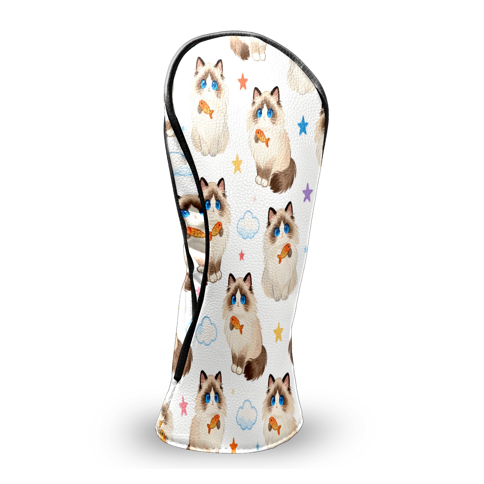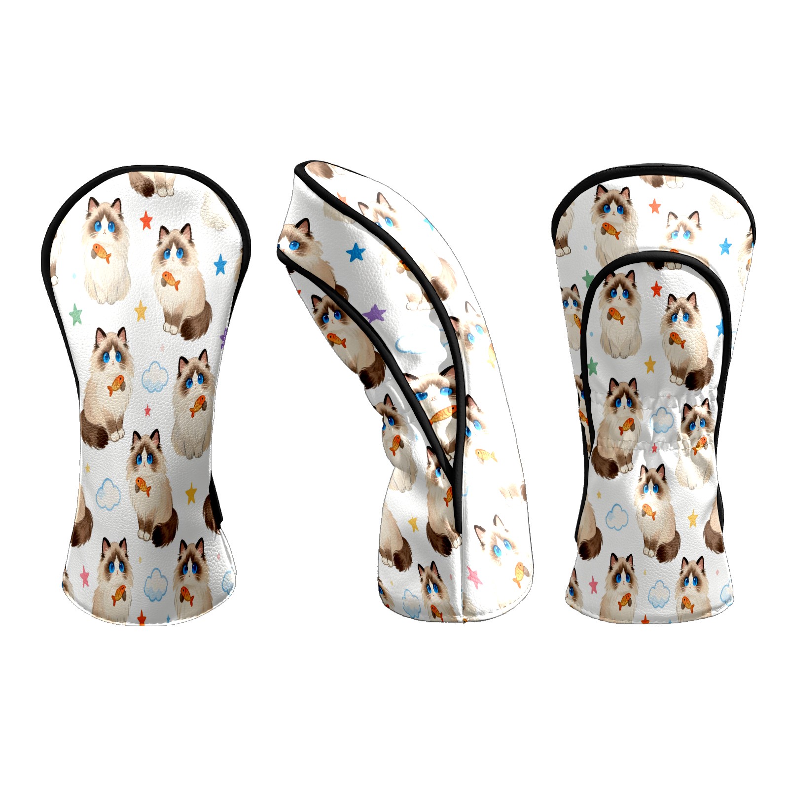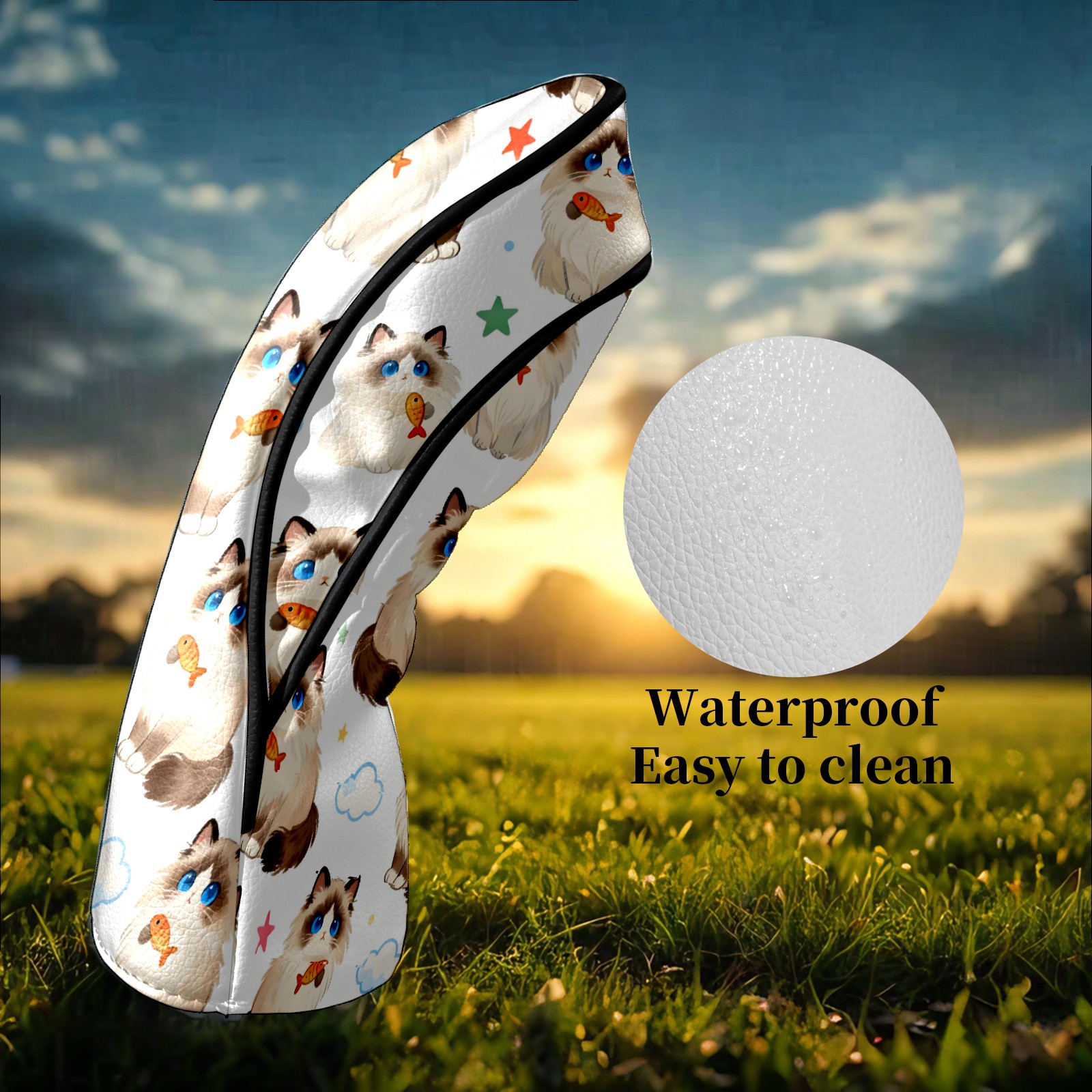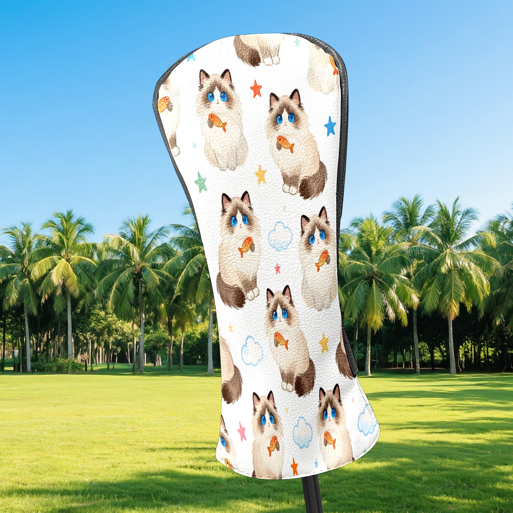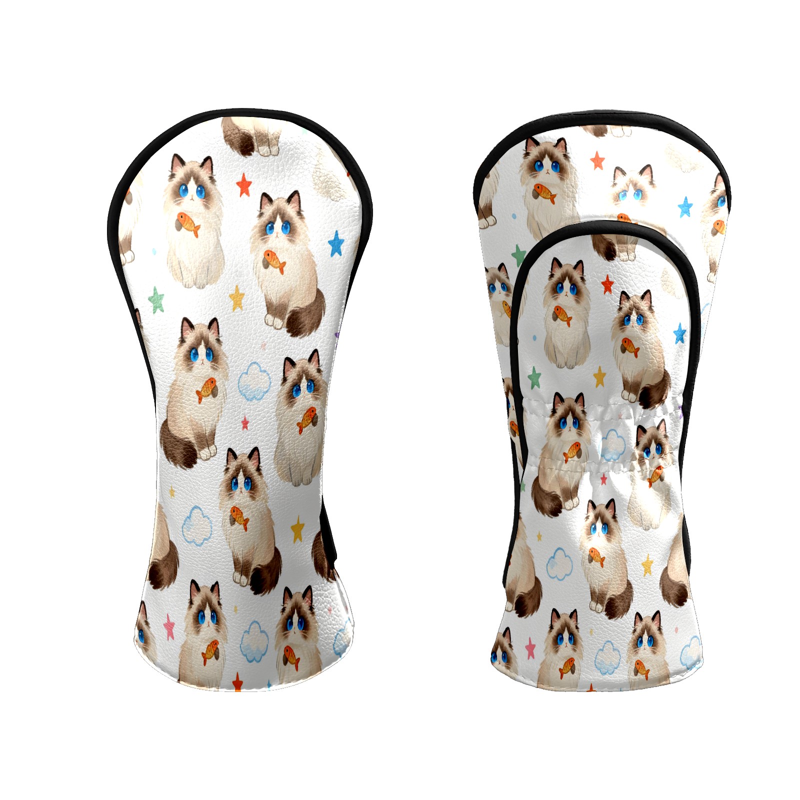 Counullo Golf Head Covers - Beige Cats Driver Fairway Headcover, Durable PU Leather & Soft Velvet Lining, Secure Elastic Band, Perfect Christmas Golf Gift for Men