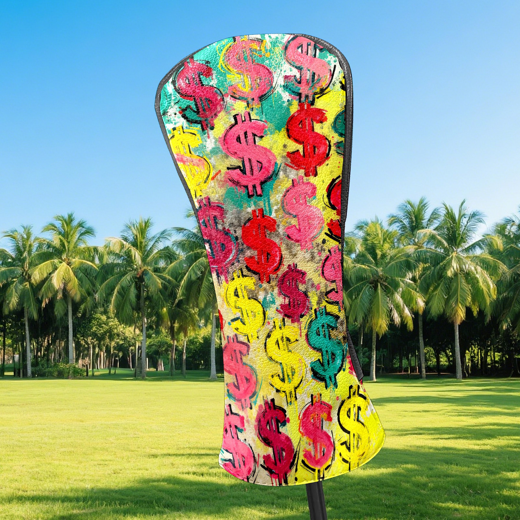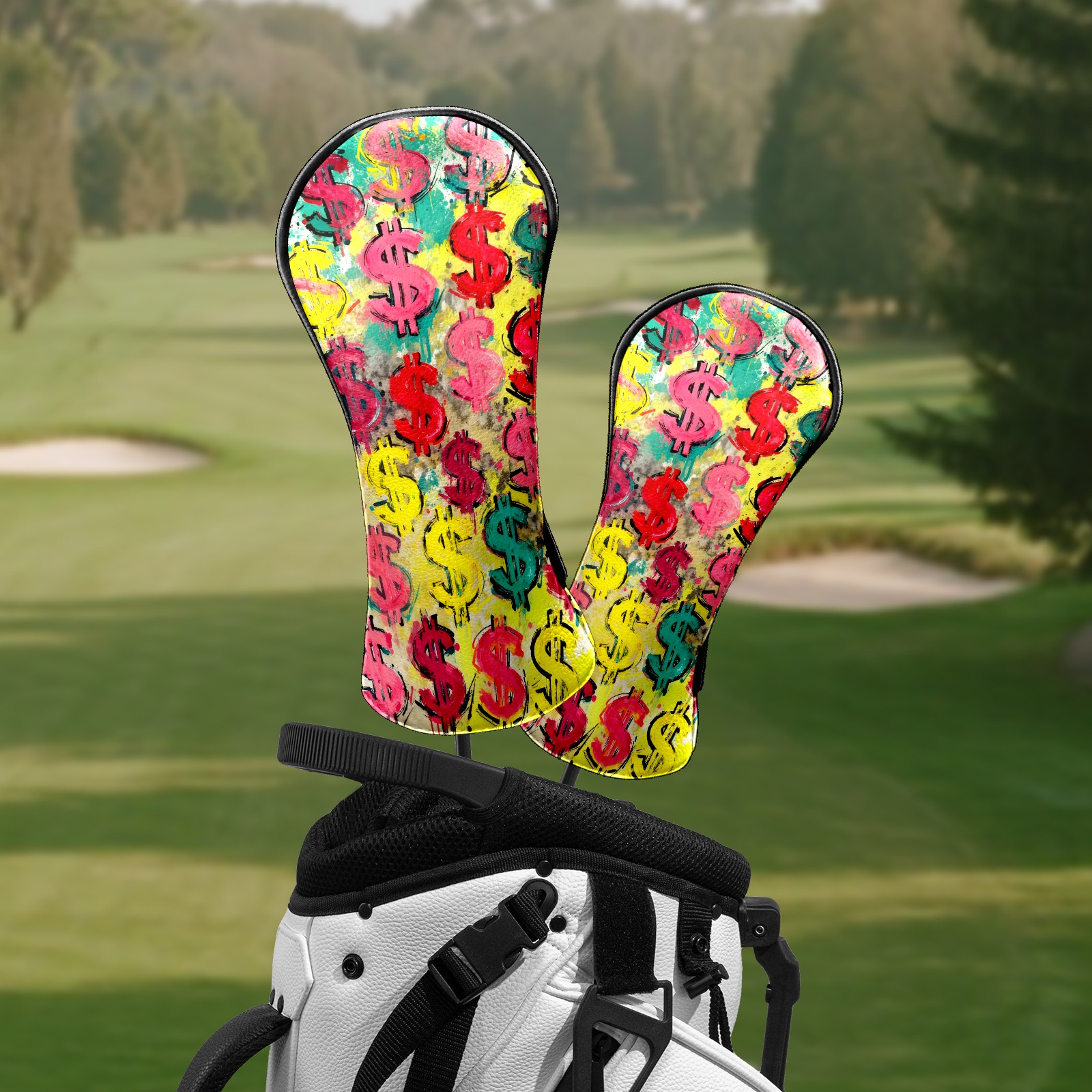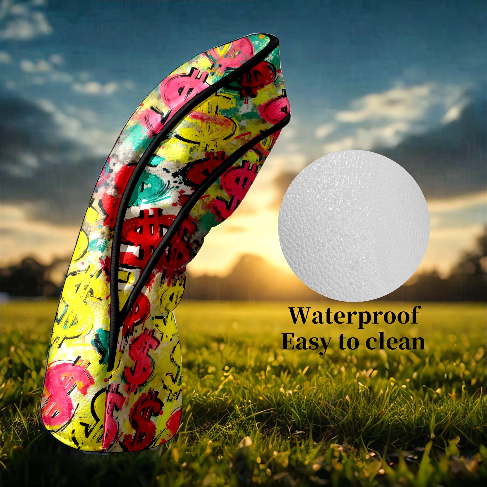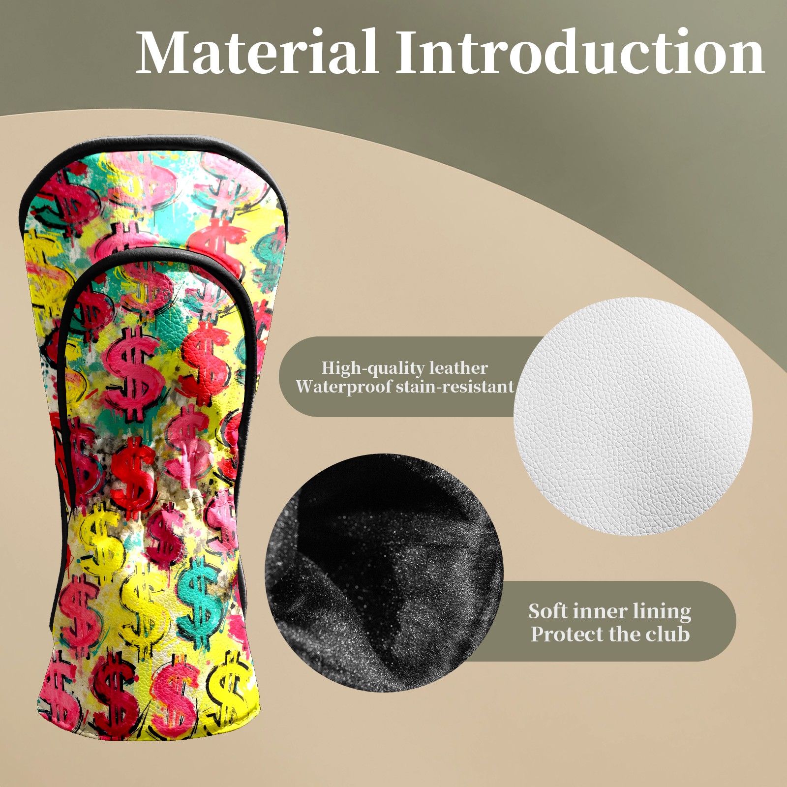Counullo Golf Head Covers - Multicolor Dollar Signs Driver Fairway Headcover, Durable PU Leather & Soft Velvet Lining, Secure Elastic Band, Perfect Christmas Golf Gift for Men