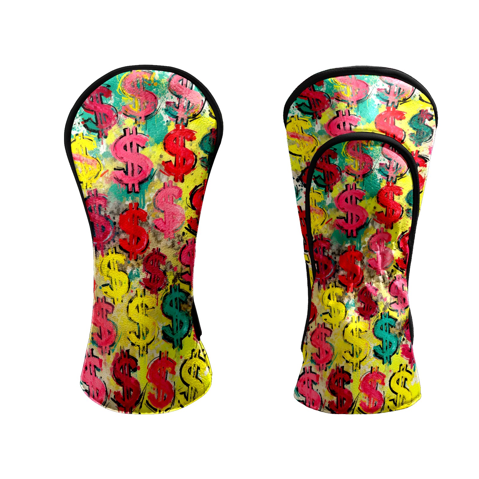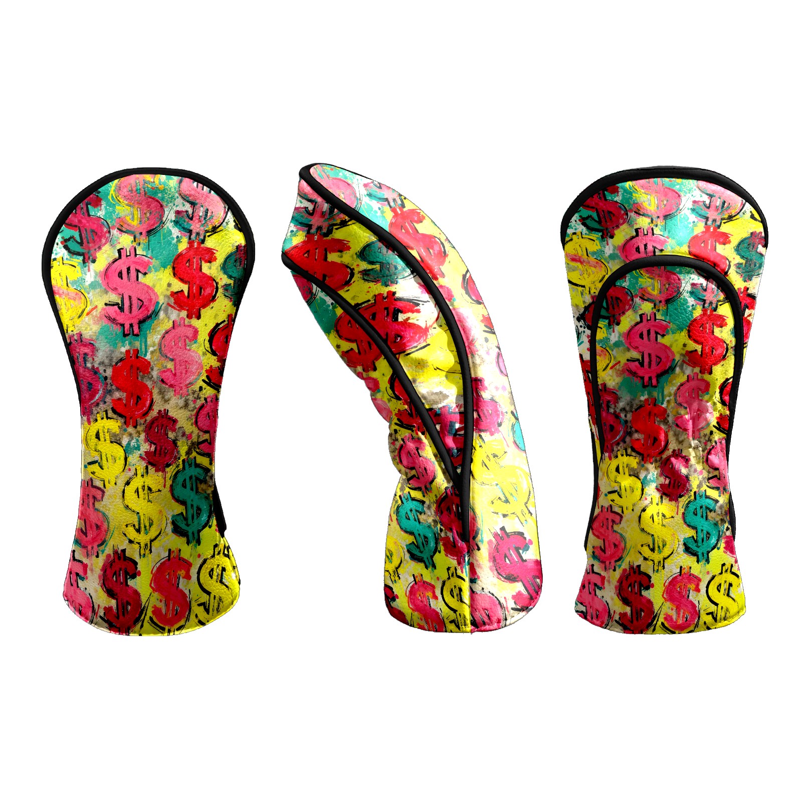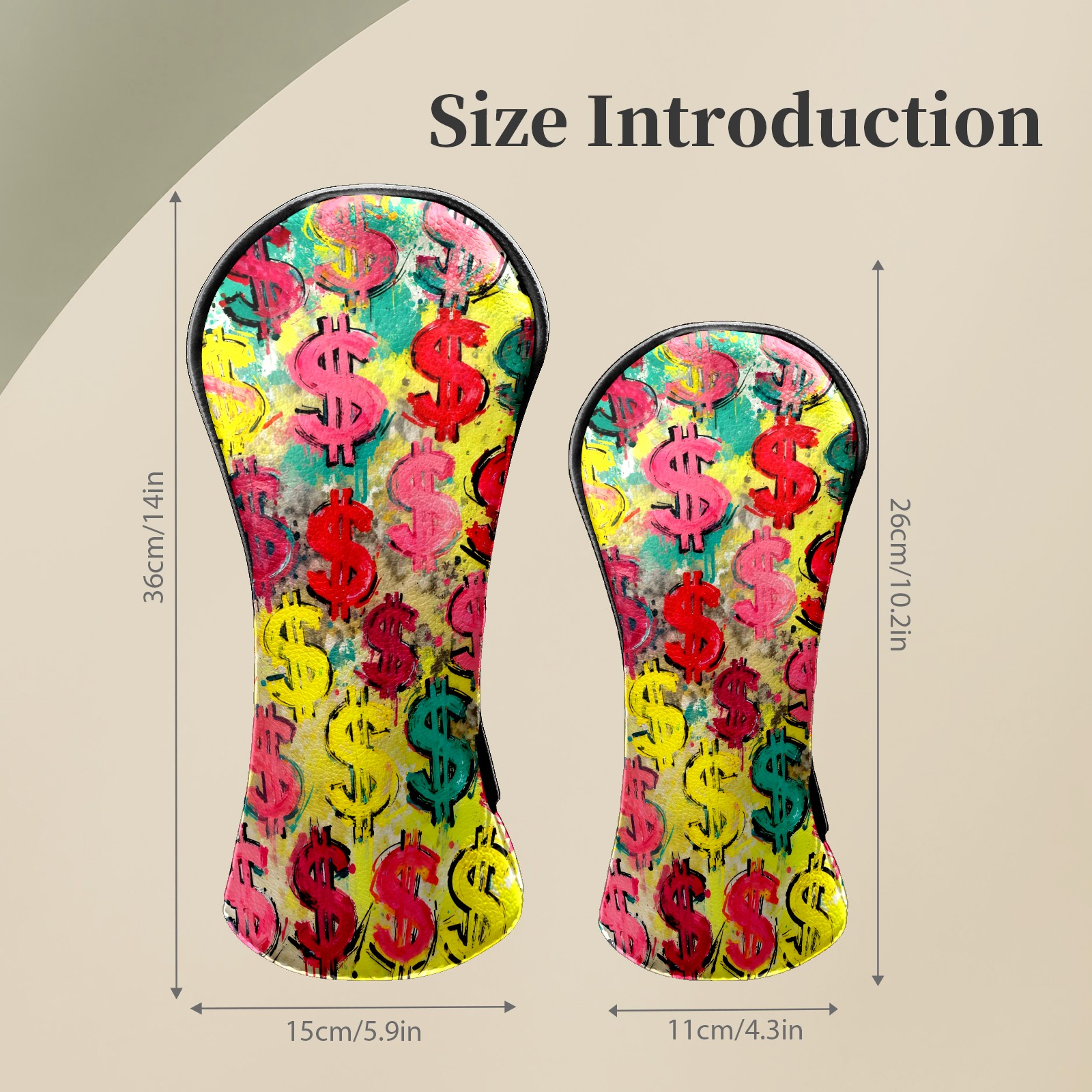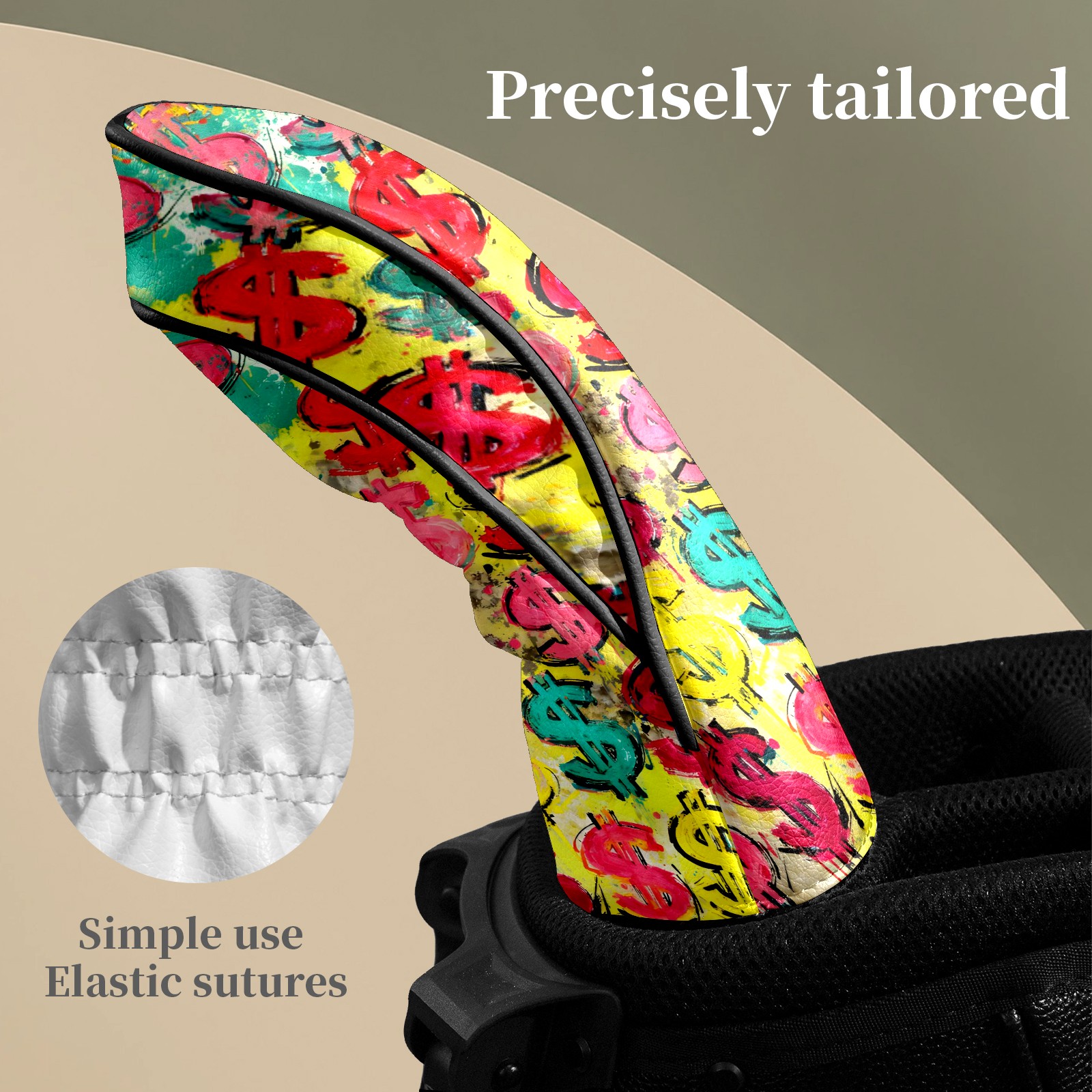 Counullo Golf Head Covers - Multicolor Dollar Signs Driver Fairway Headcover, Durable PU Leather & Soft Velvet Lining, Secure Elastic Band, Perfect Christmas Golf Gift for Men