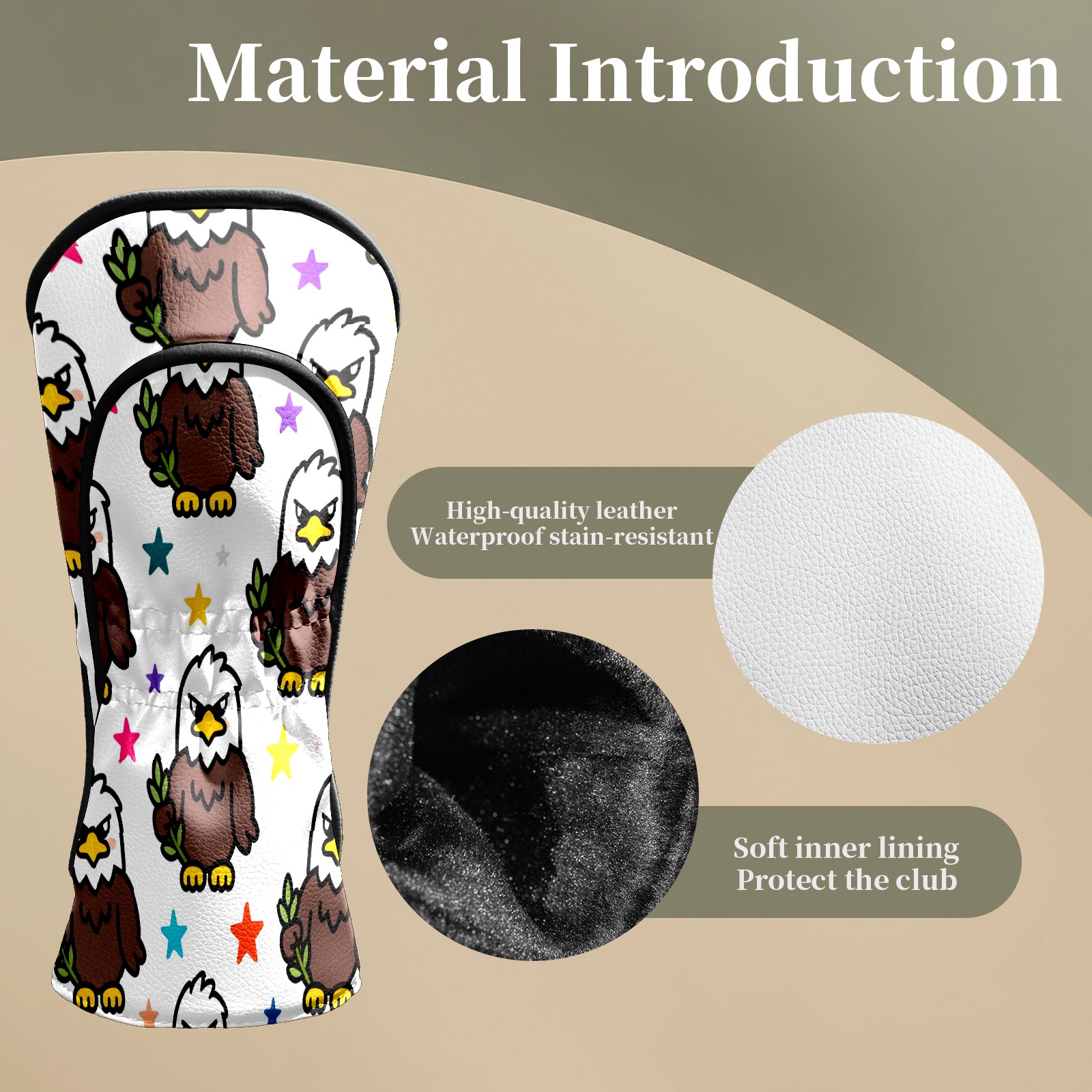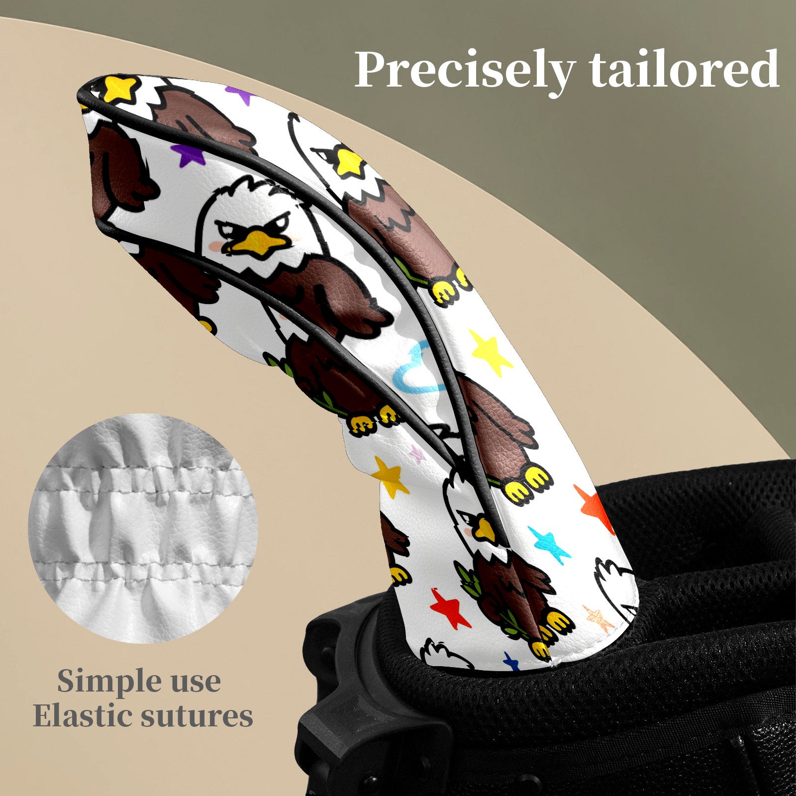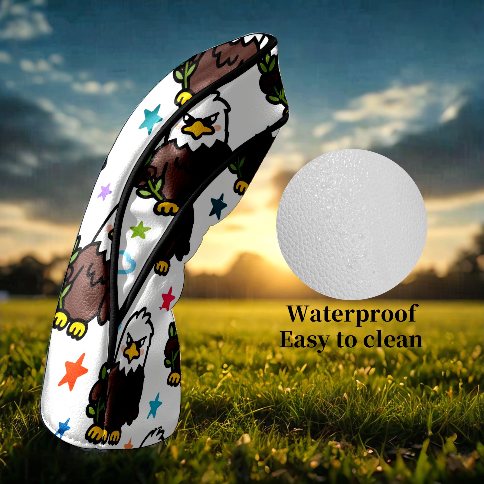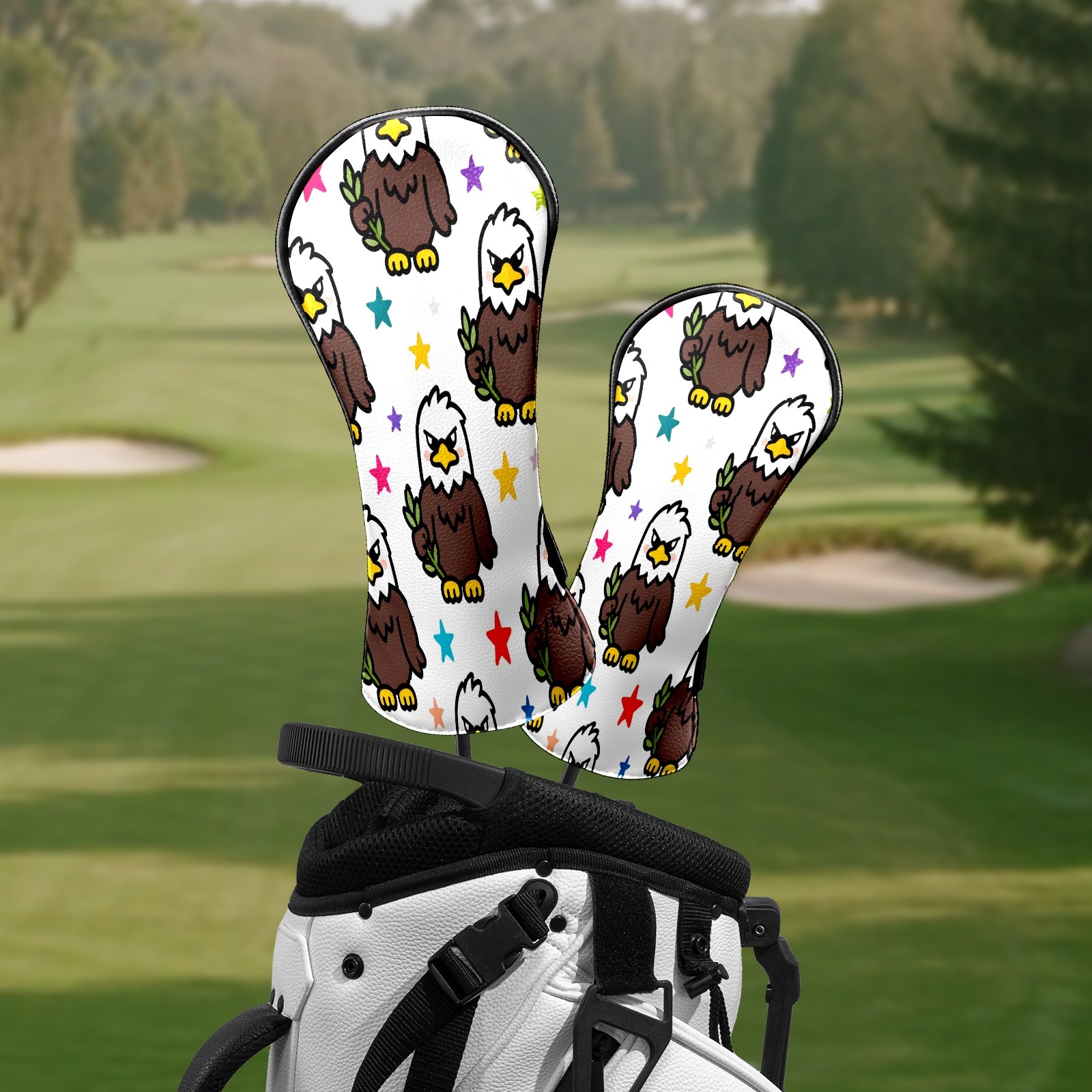 Counullo Golf Head Covers - Brown Eagles Driver Fairway Headcover, Durable PU Leather & Soft Velvet Lining, Secure Elastic Band, Perfect Christmas Golf Gift for Men