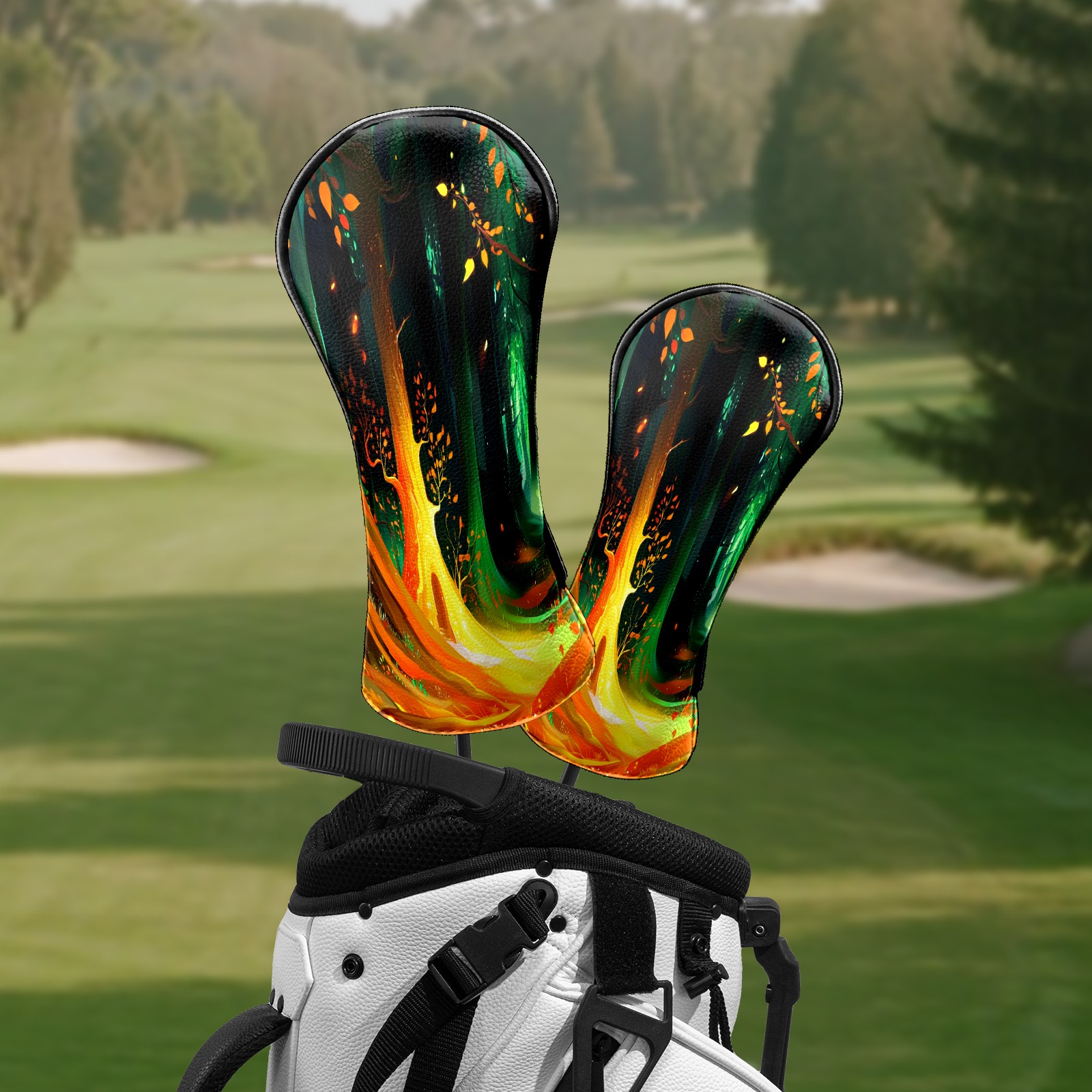 Counullo Golf Head Covers - Black Forest Light Driver Fairway Headcover, Durable PU Leather & Soft Velvet Lining, Secure Elastic Band, Perfect Christmas Golf Gift for Men