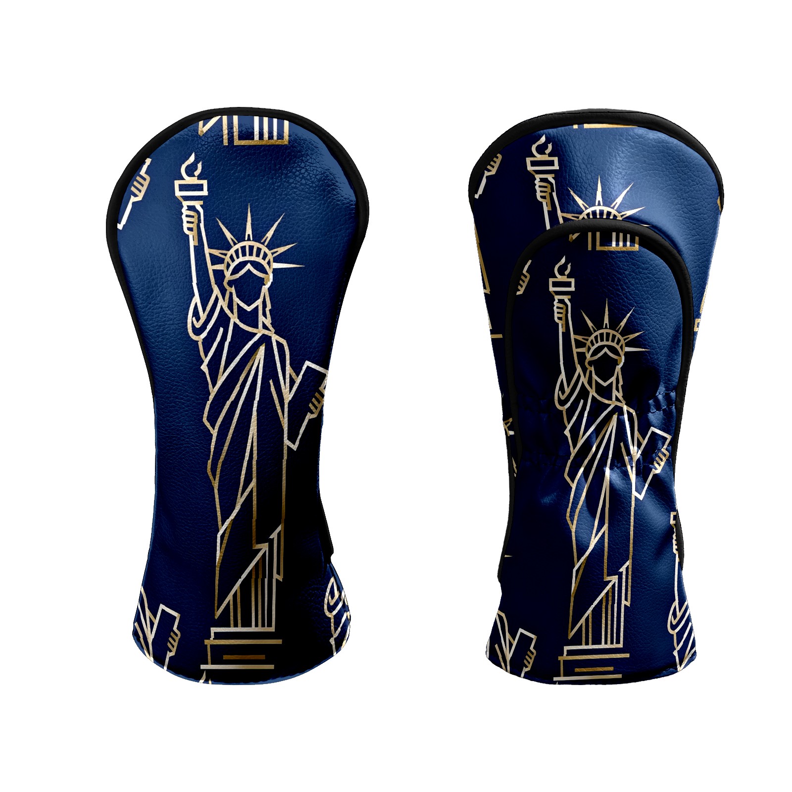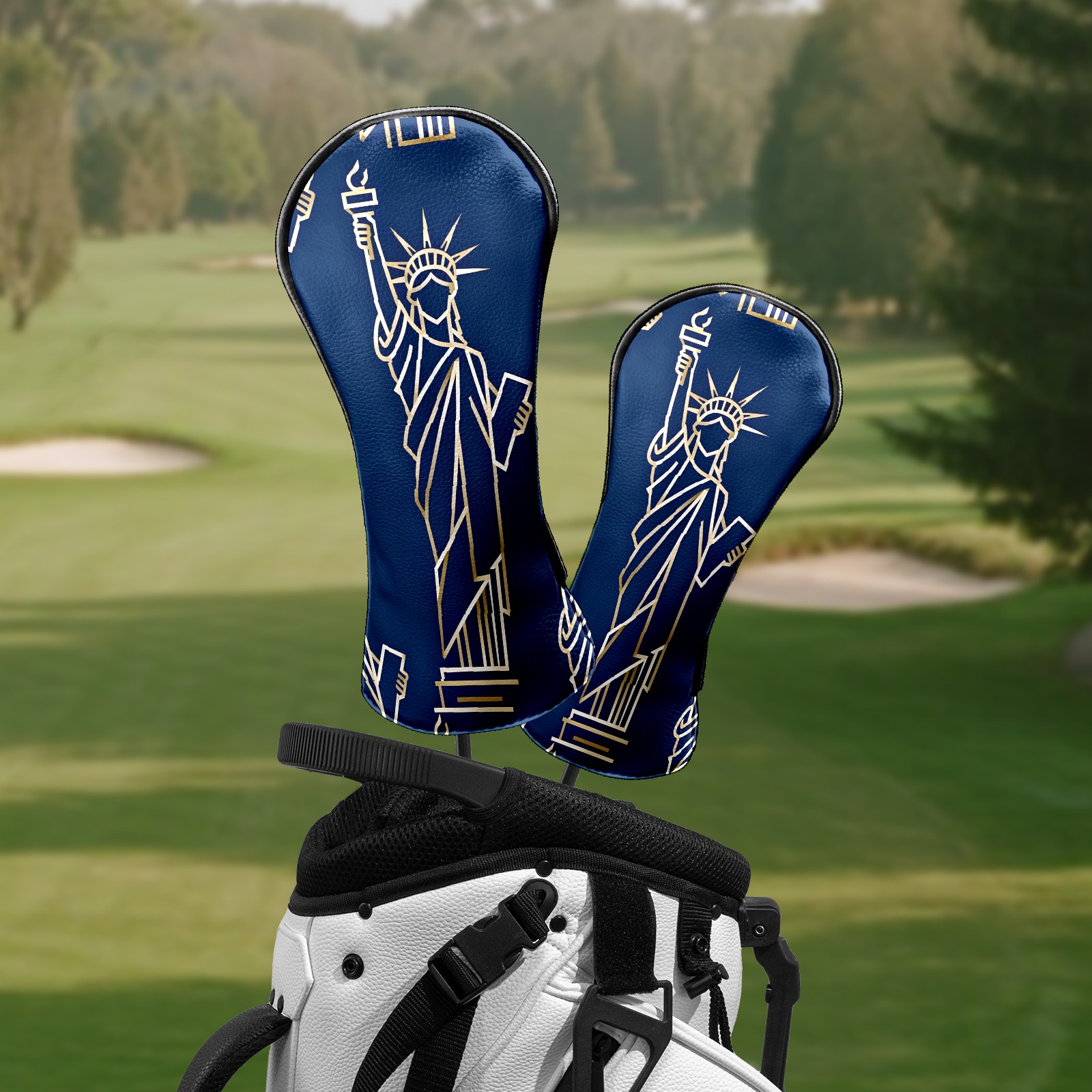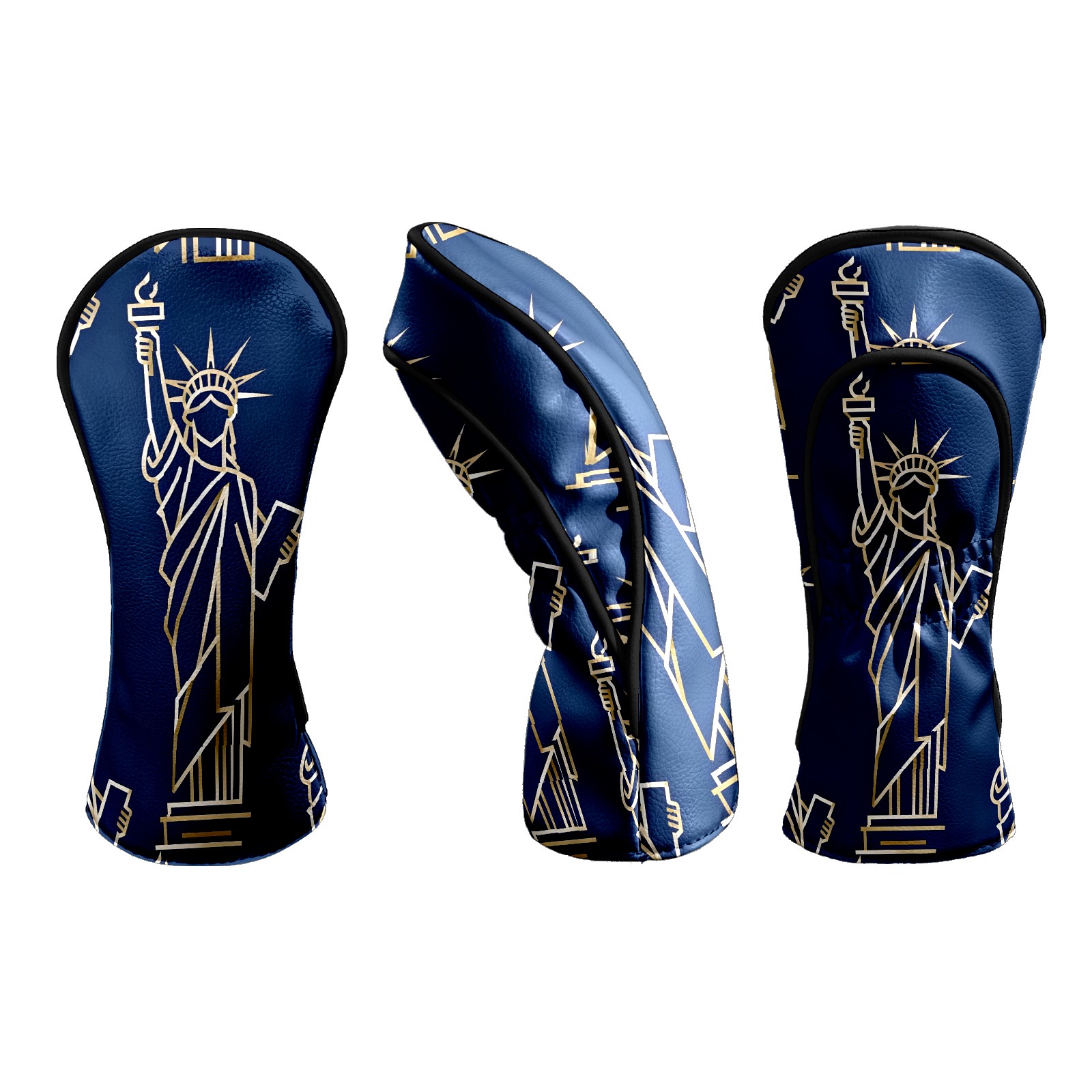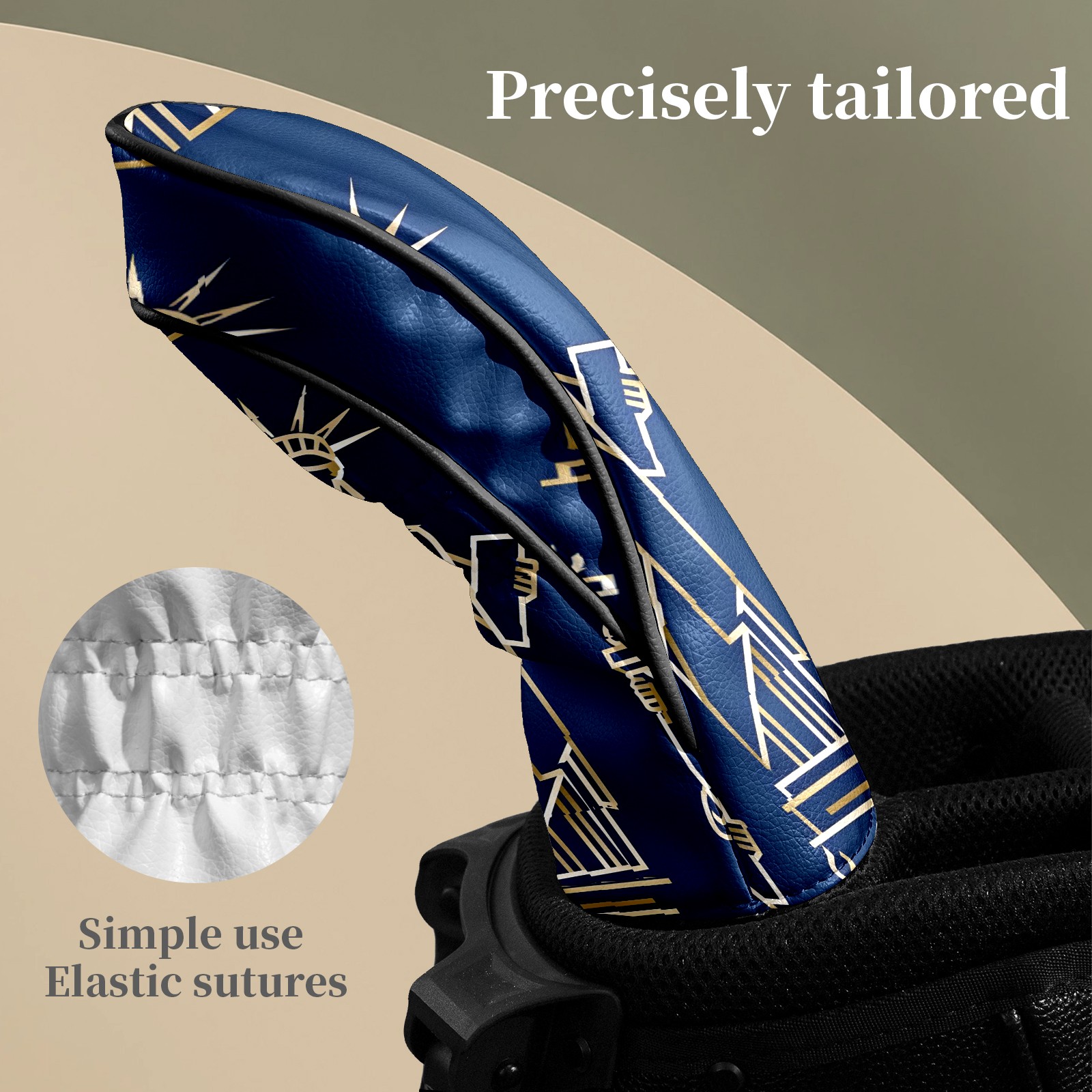 Counullo Golf Head Covers - Dark Blue Eagle Driver Fairway Headcover, Durable PU Leather & Soft Velvet Lining, Secure Elastic Band, Perfect Christmas Golf Gift for Men