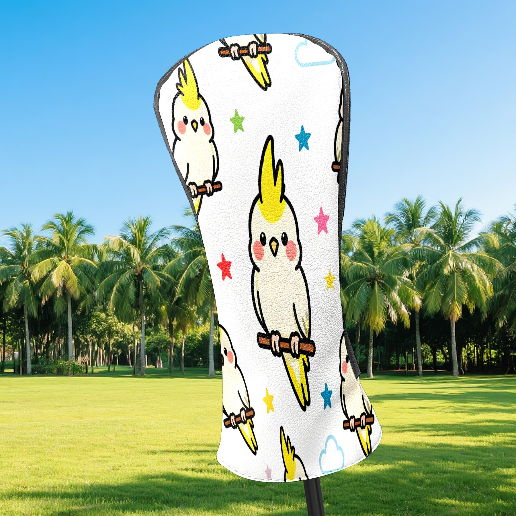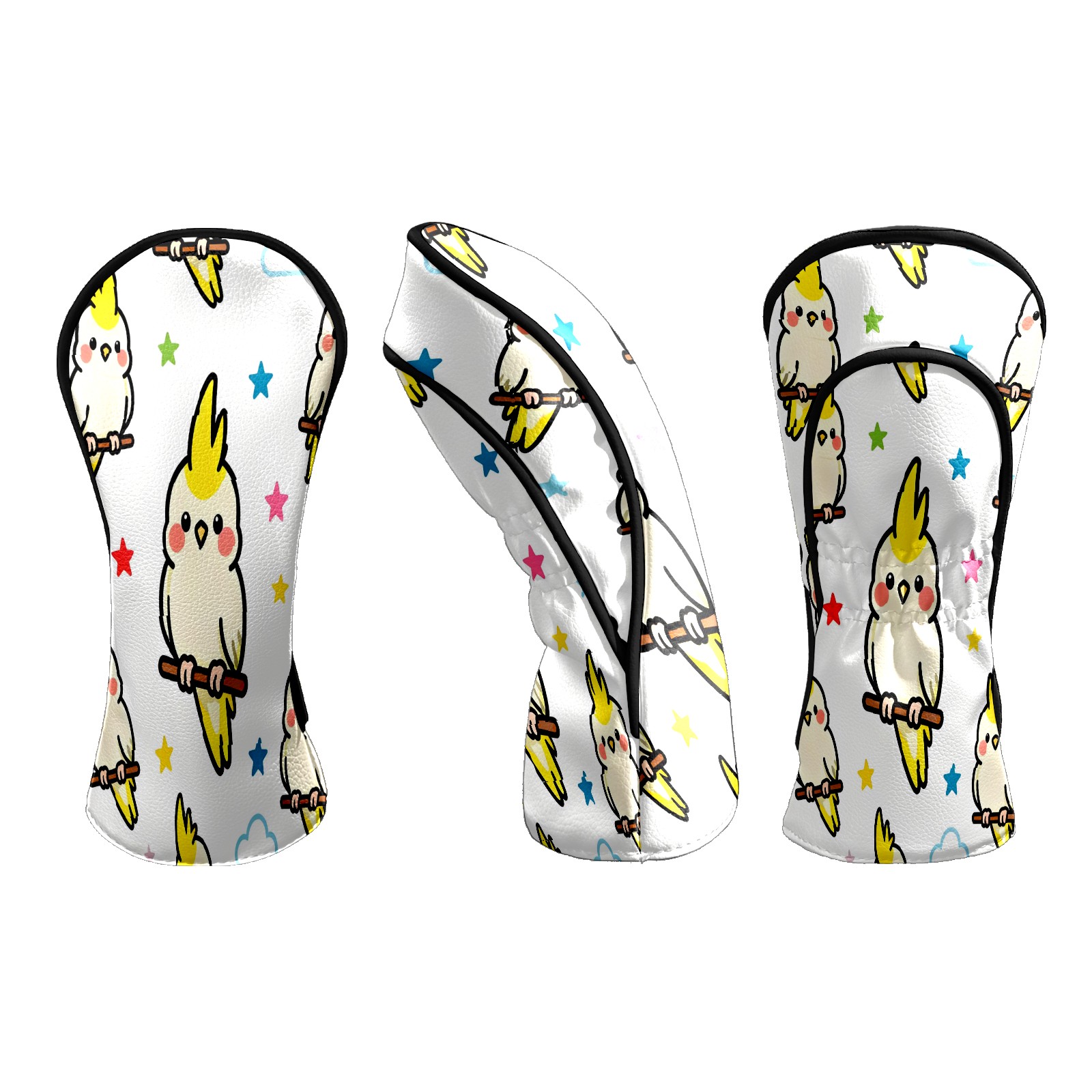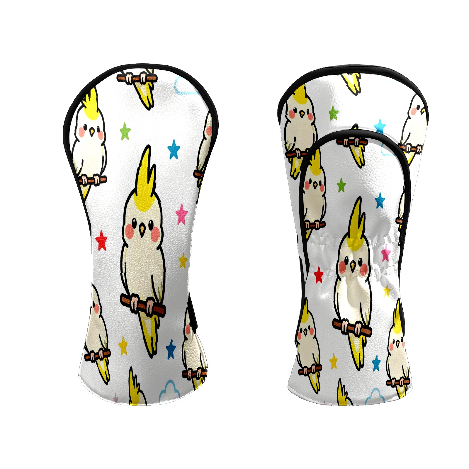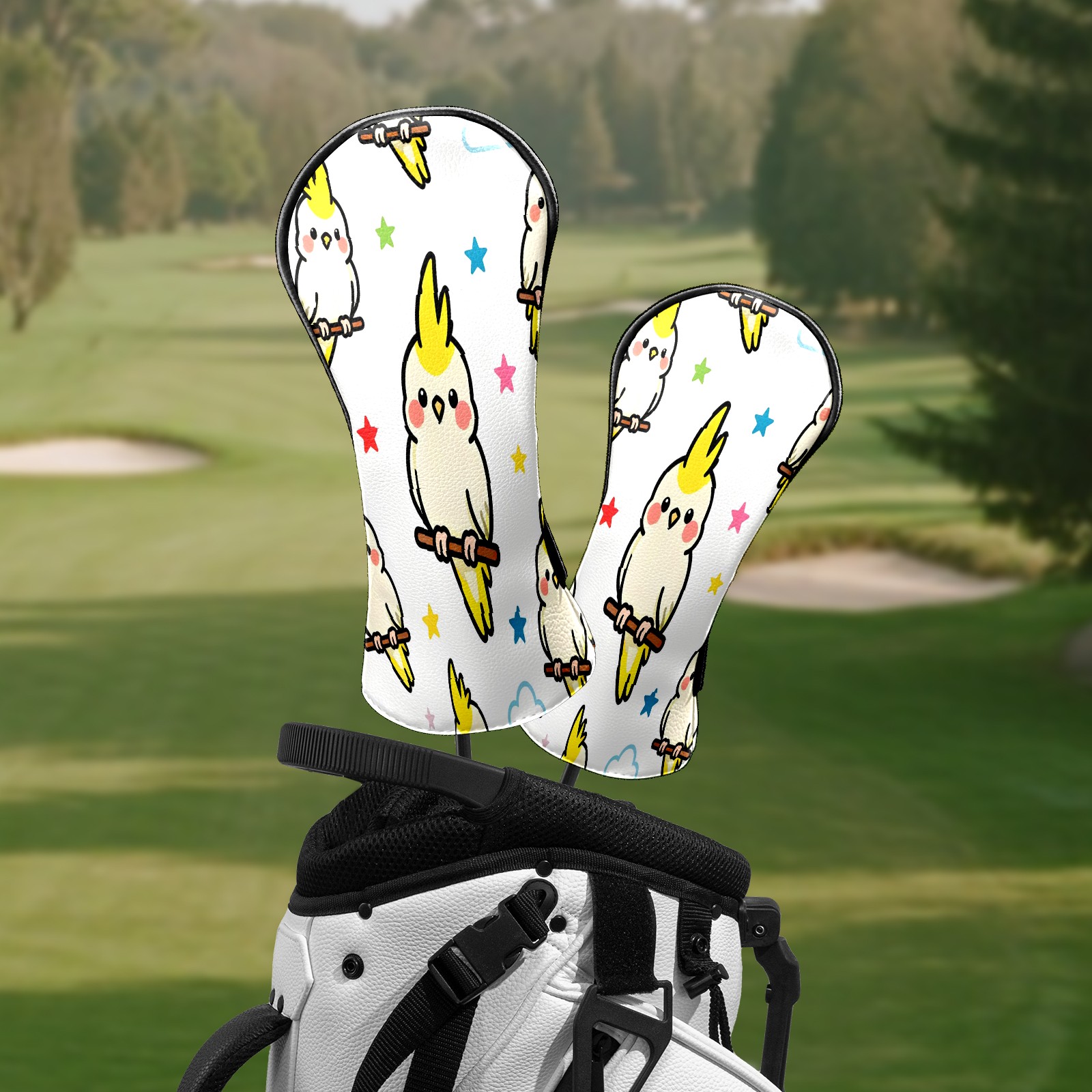 Counullo Golf Head Covers - White Parrots Driver Fairway Headcover, Durable PU Leather & Soft Velvet Lining, Secure Elastic Band, Perfect Christmas Golf Gift for Men
