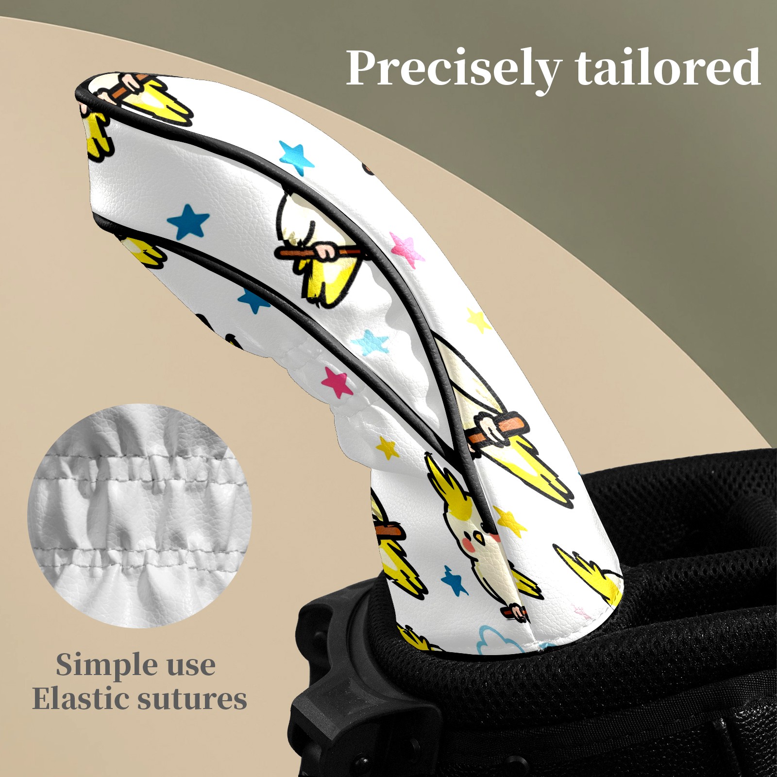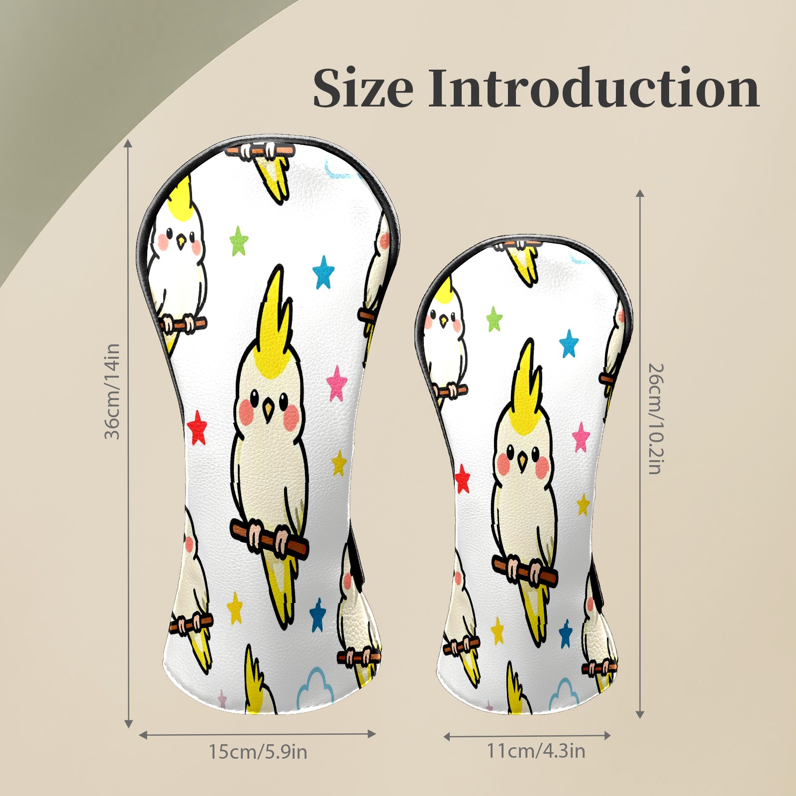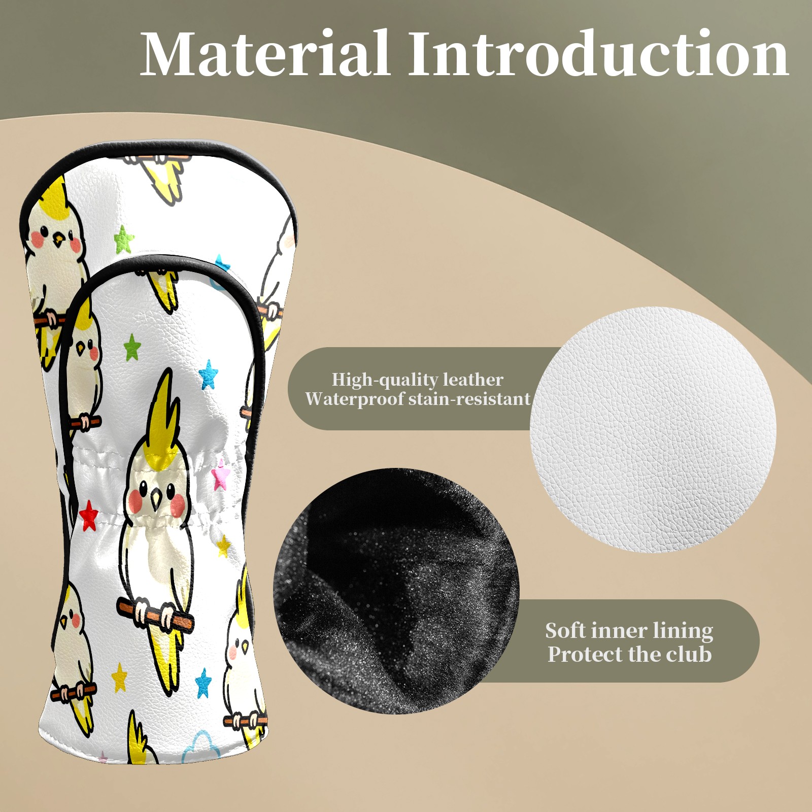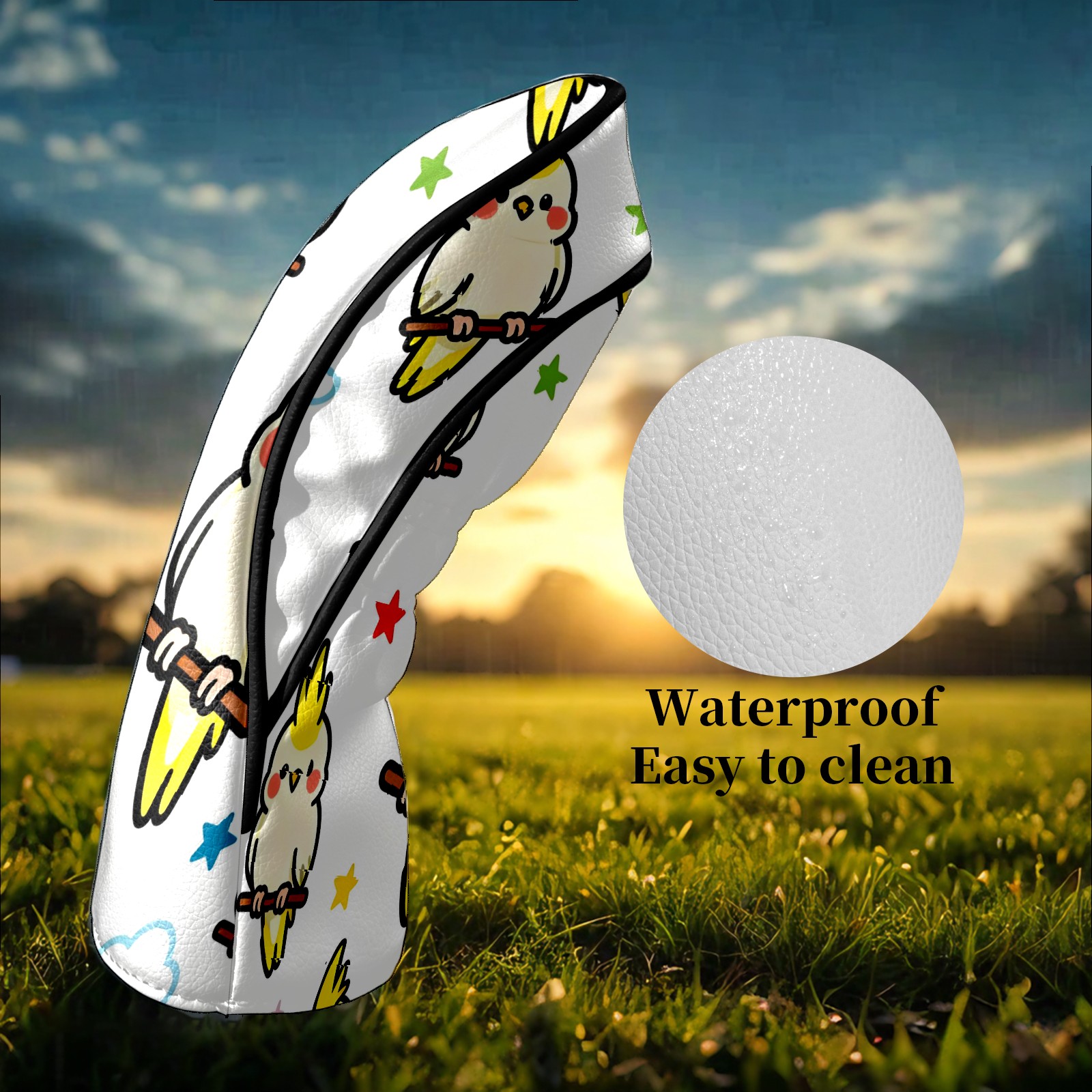 Counullo Golf Head Covers - White Parrots Driver Fairway Headcover, Durable PU Leather & Soft Velvet Lining, Secure Elastic Band, Perfect Christmas Golf Gift for Men