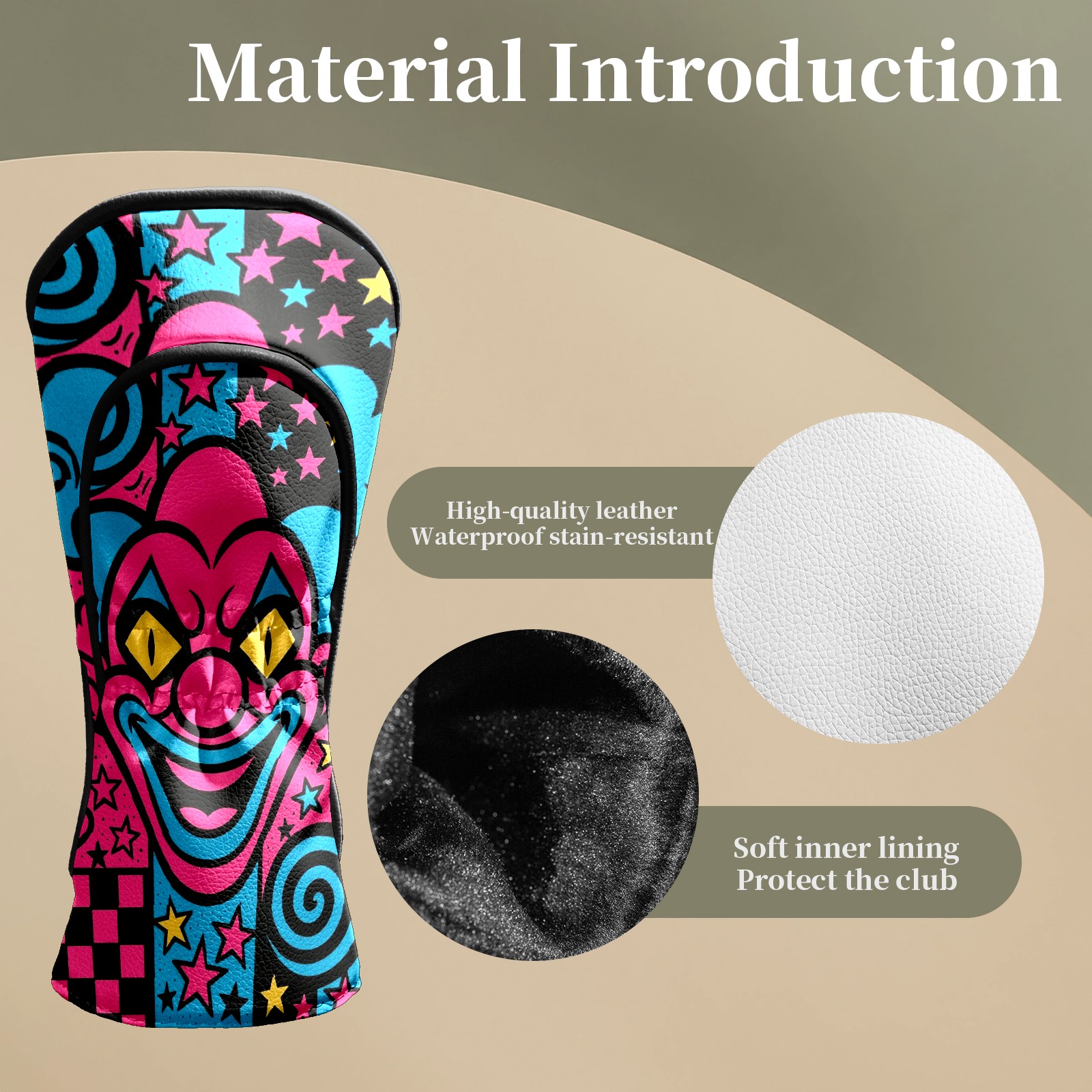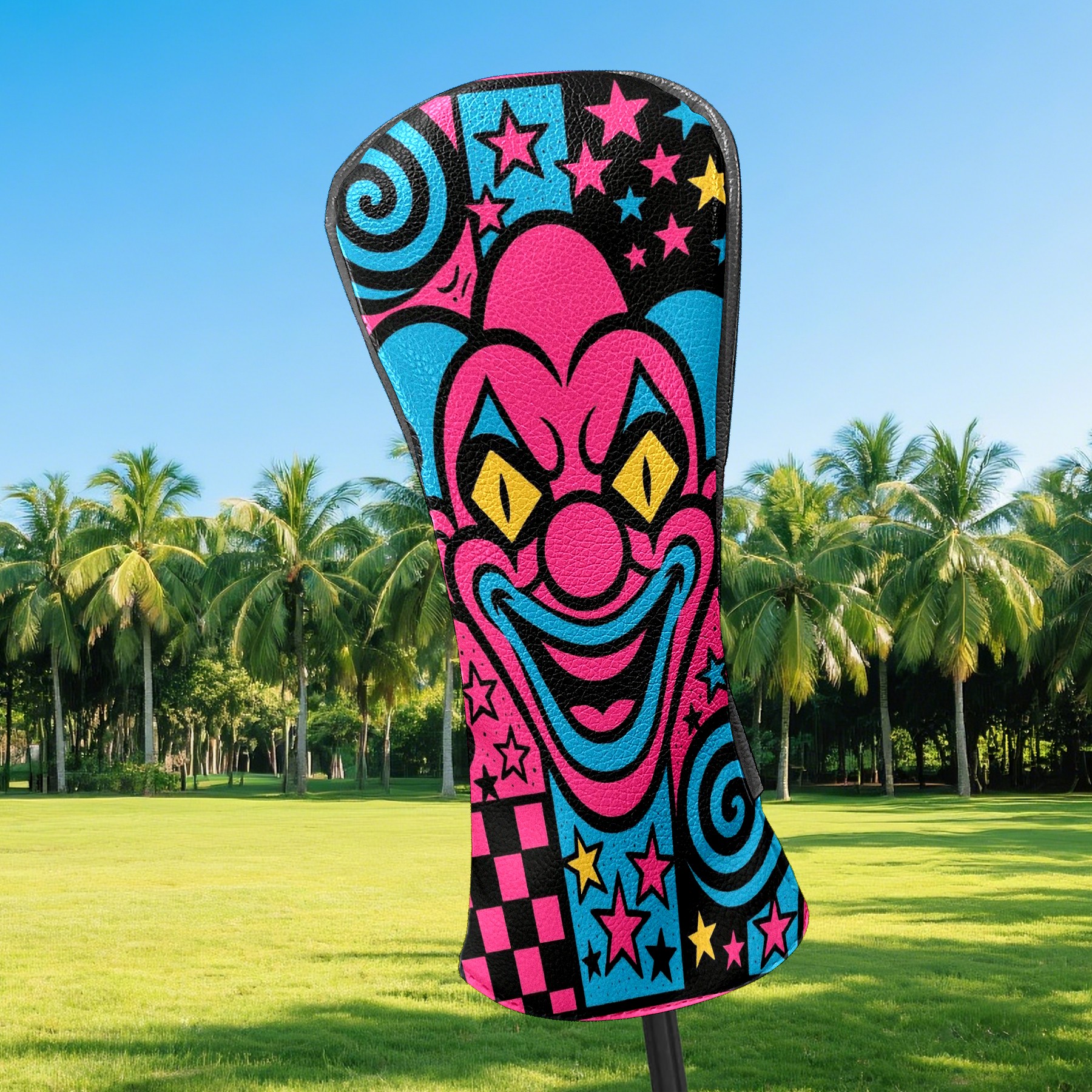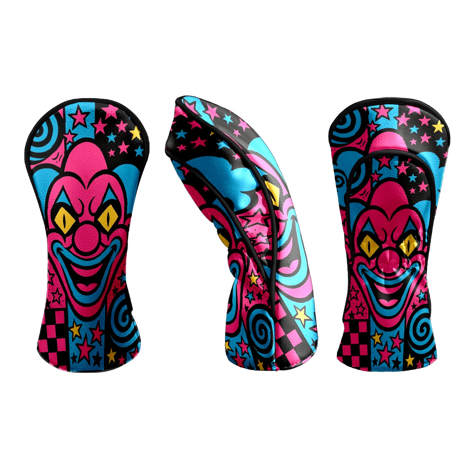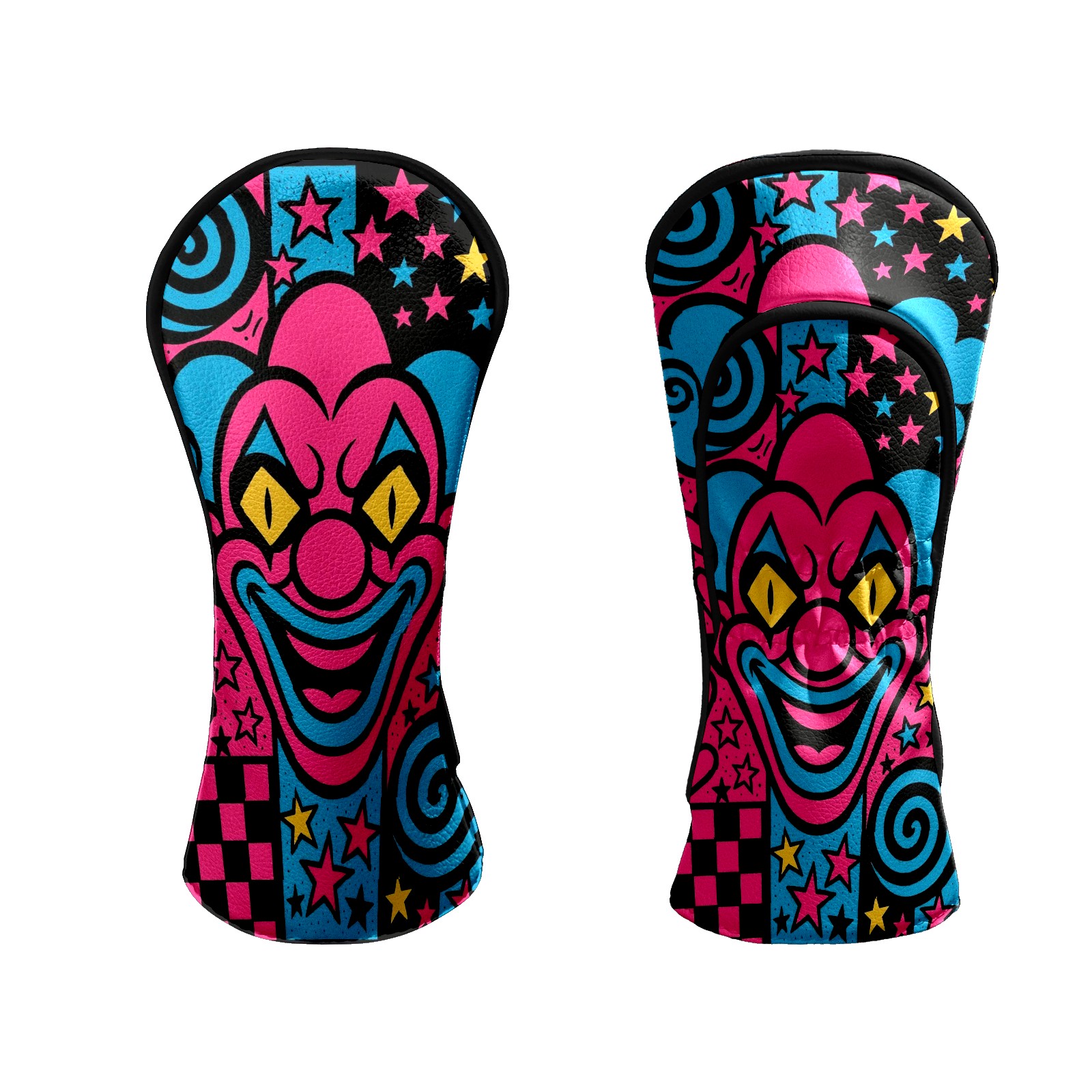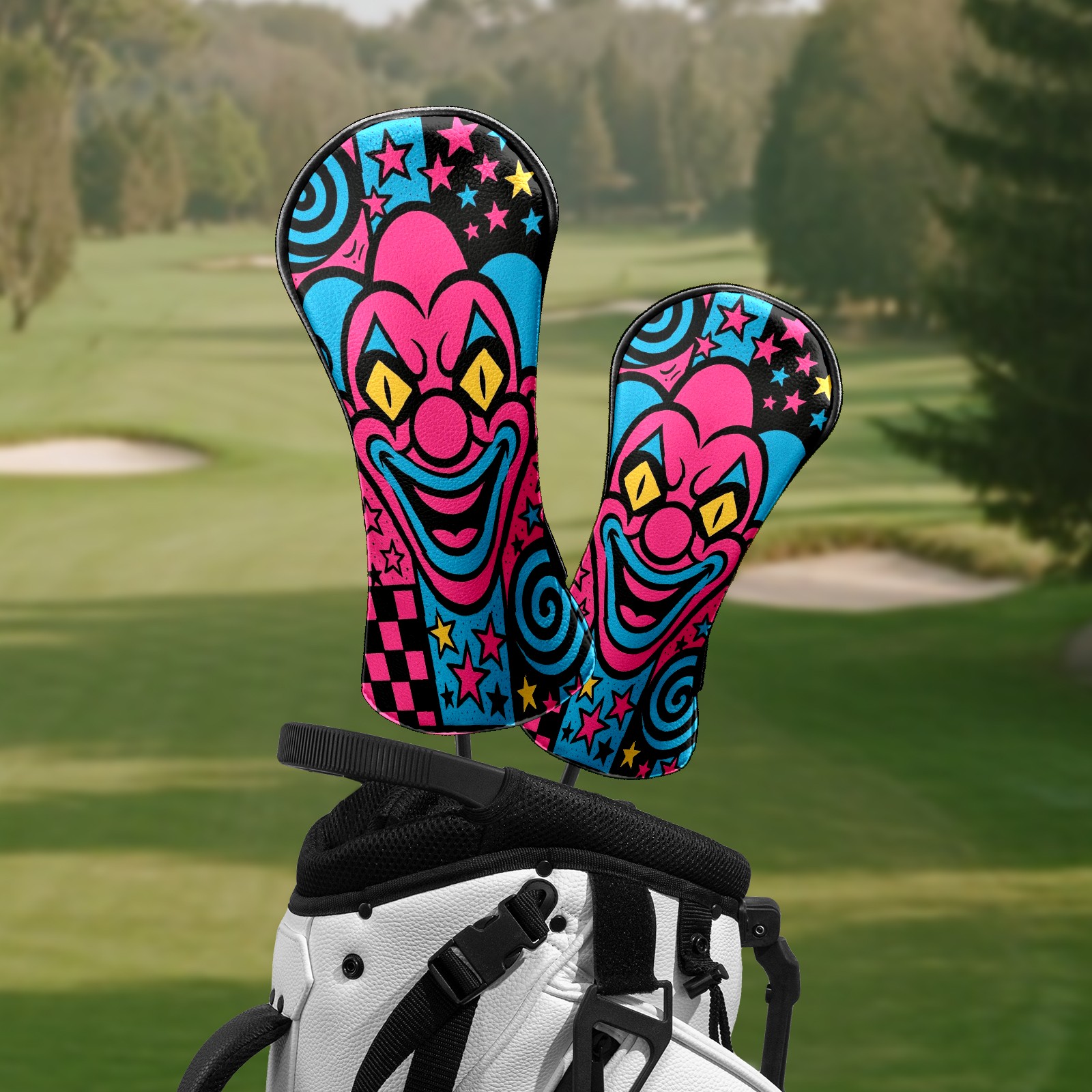 Counullo Golf Head Covers - Pink Clown Driver Fairway Headcover, Durable PU Leather & Soft Velvet Lining, Secure Elastic Band, Perfect Christmas Golf Gift for Men
