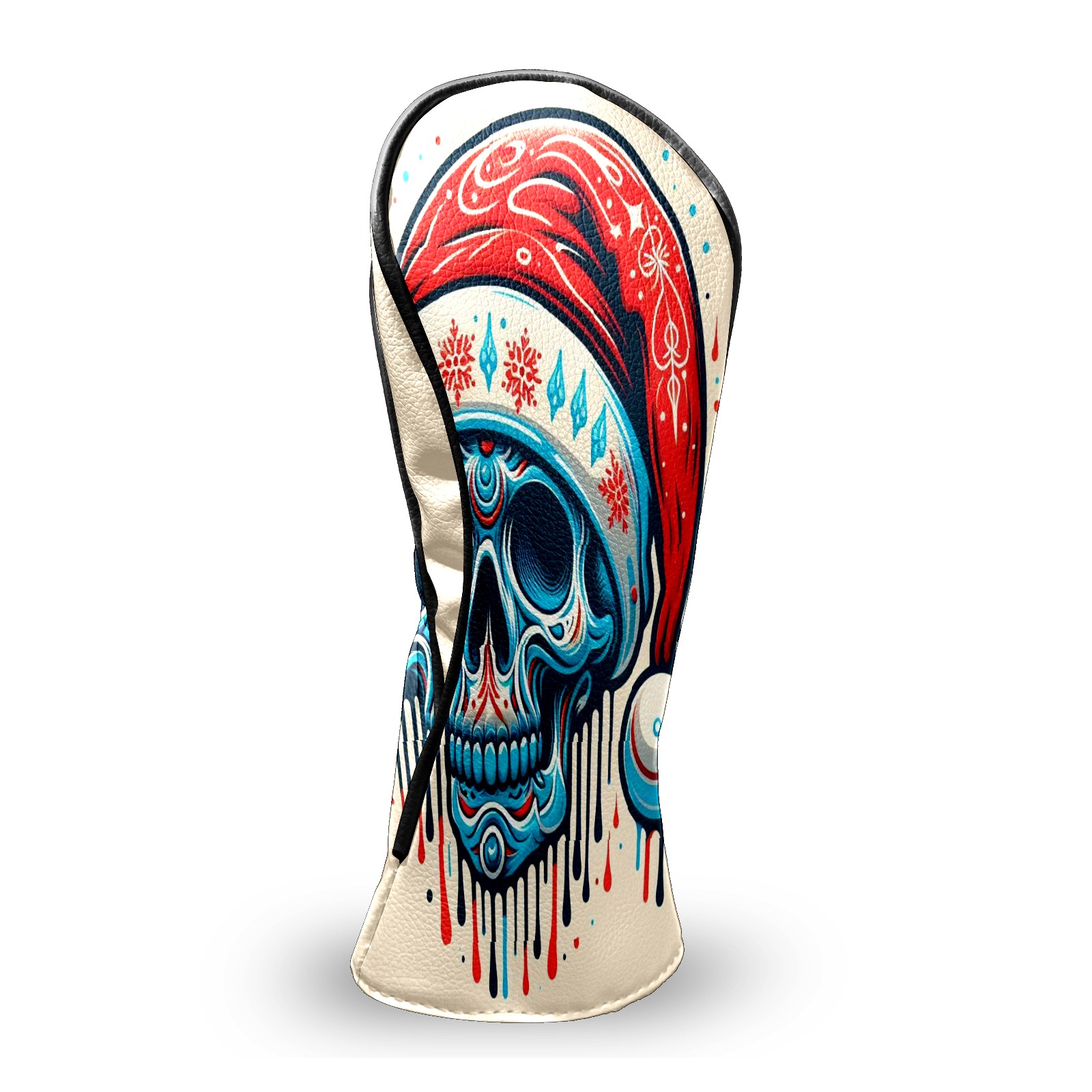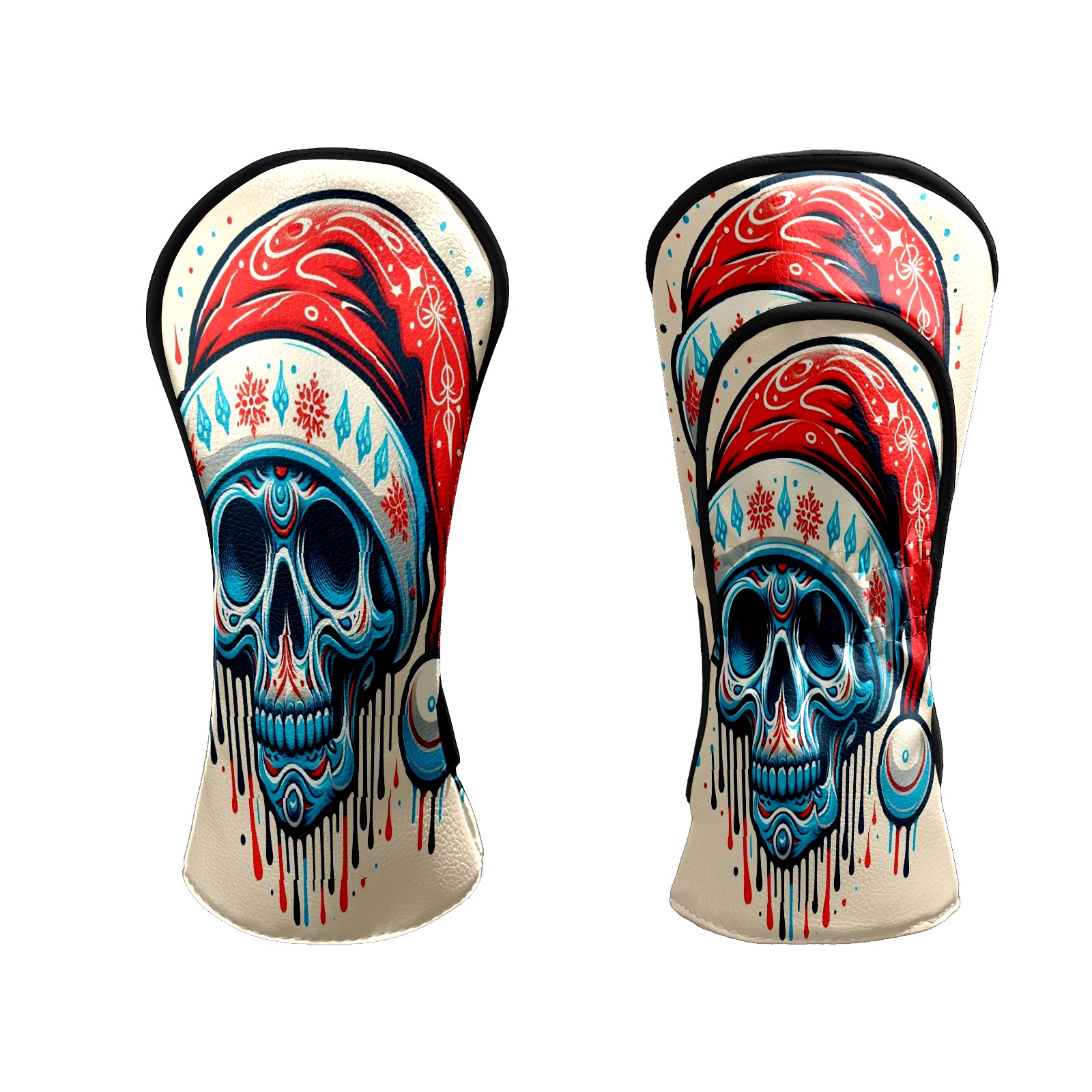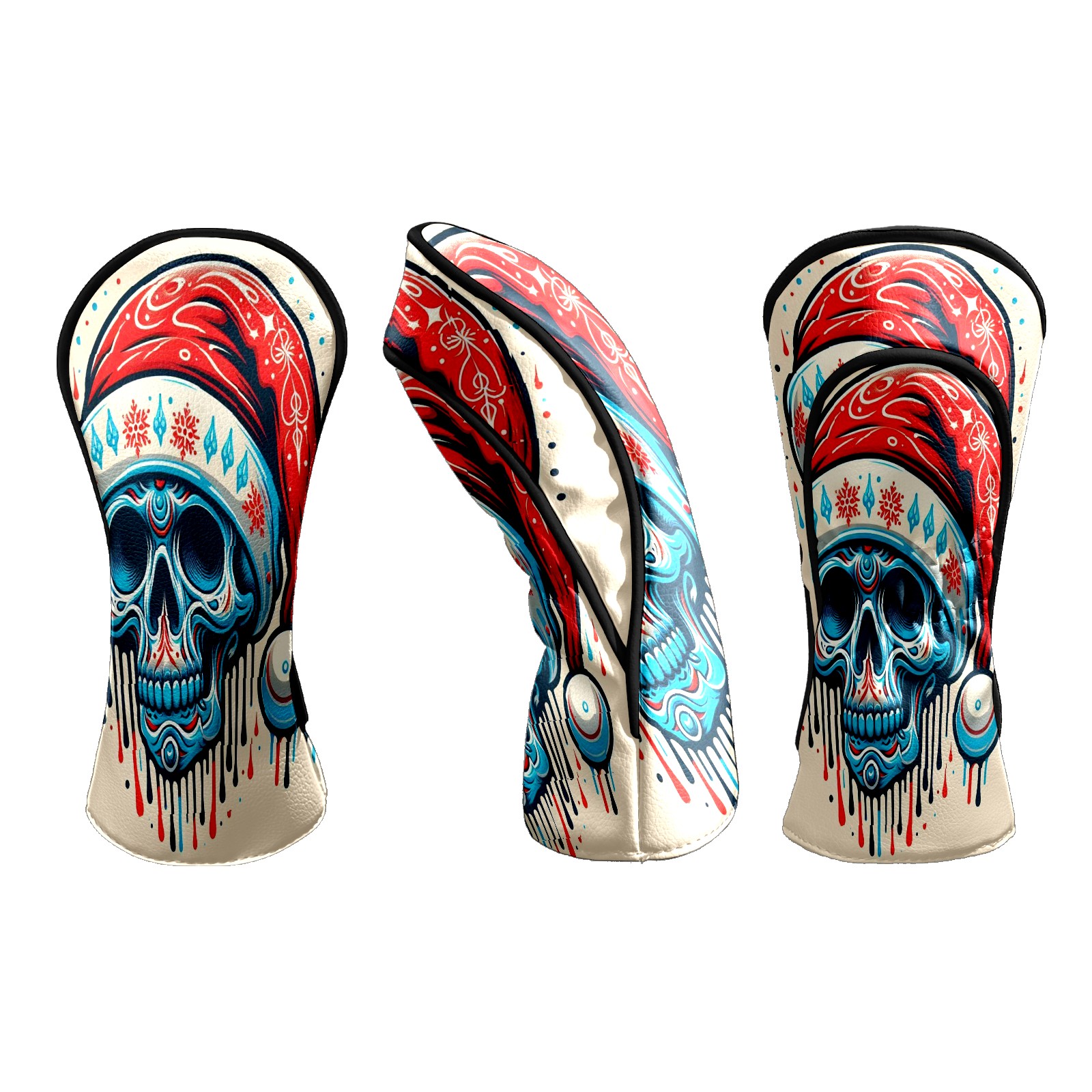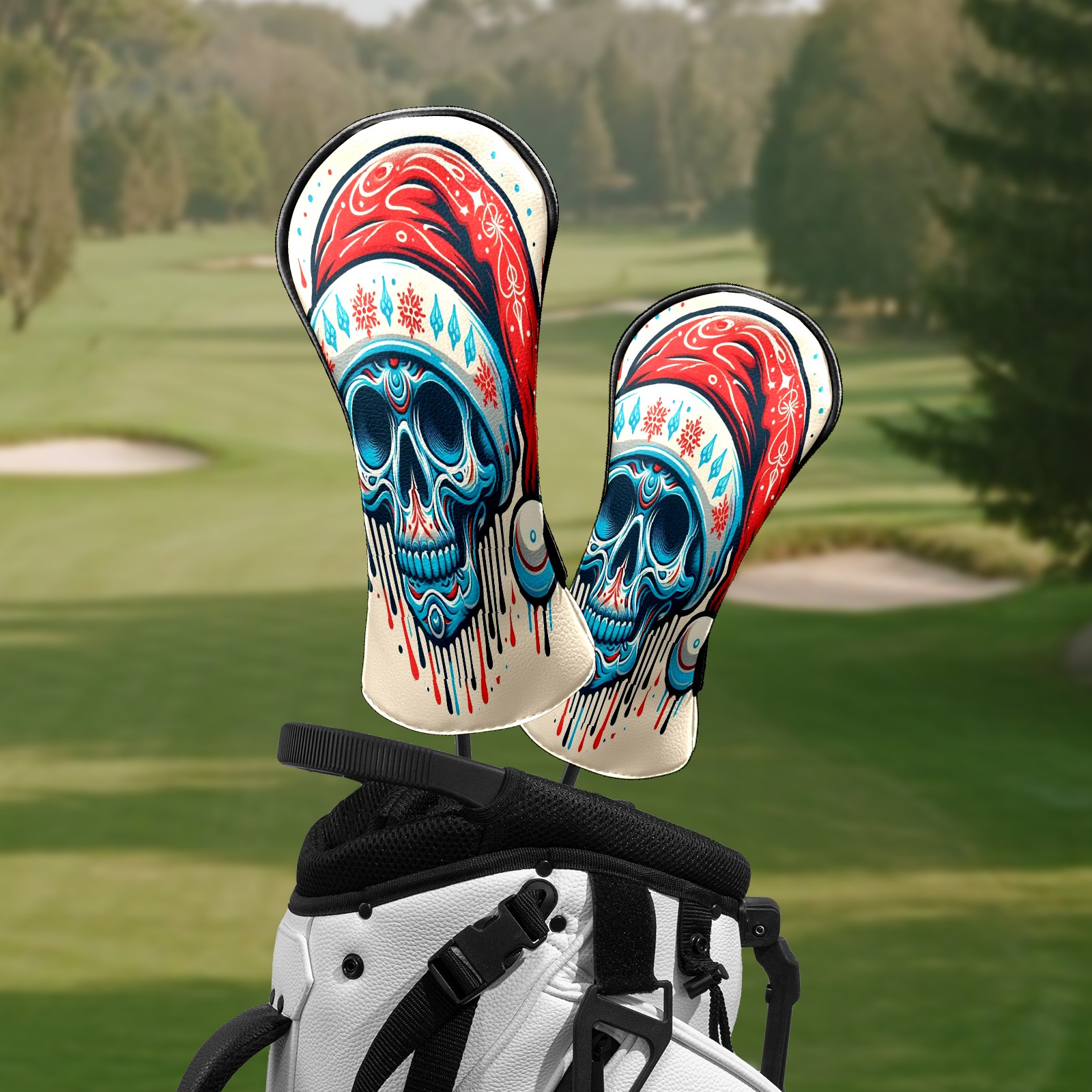 Counullo Golf Head Covers - Beige Christmas Skull Driver Fairway Headcover, Durable PU Leather & Soft Velvet Lining, Secure Elastic Band, Perfect Christmas Golf Gift for Men