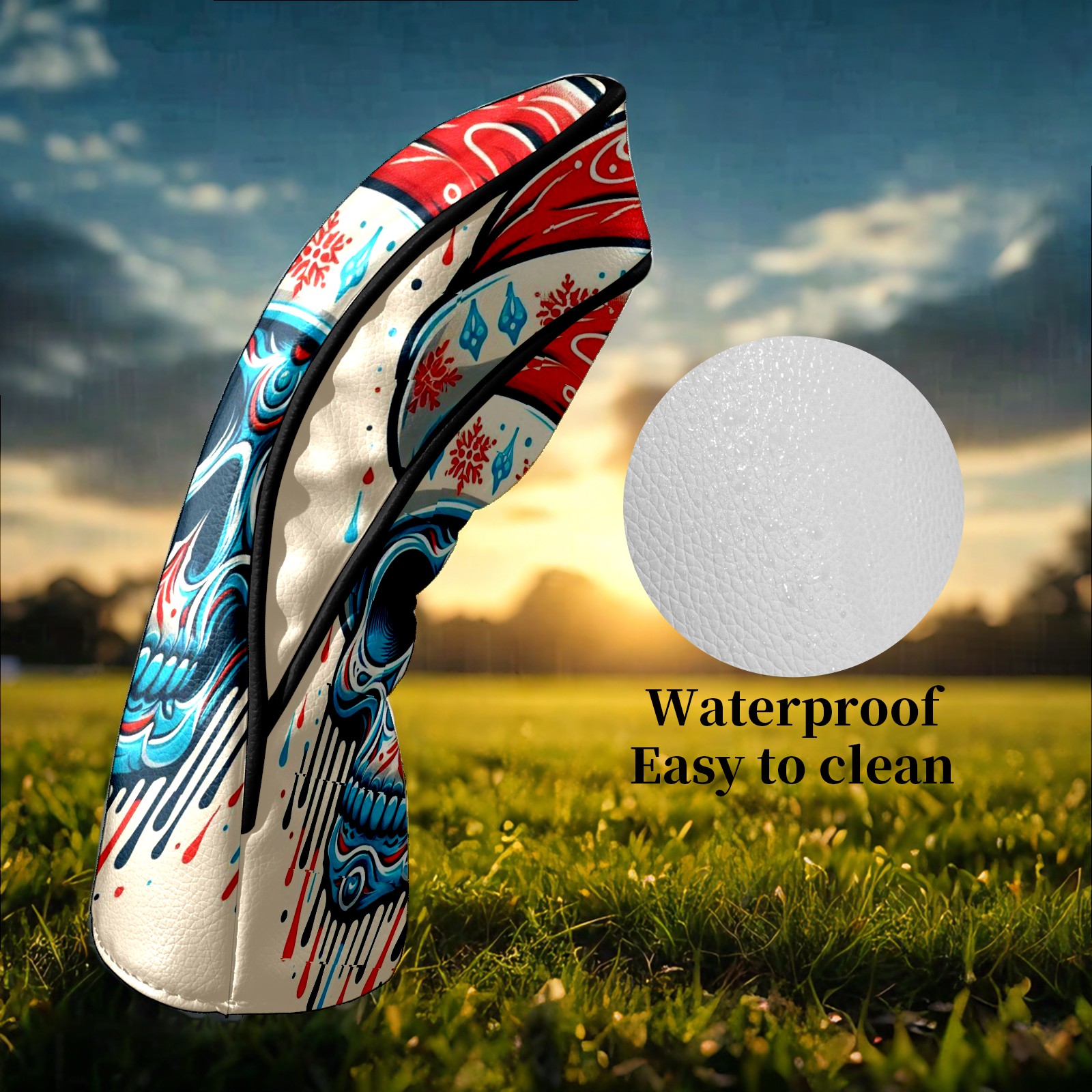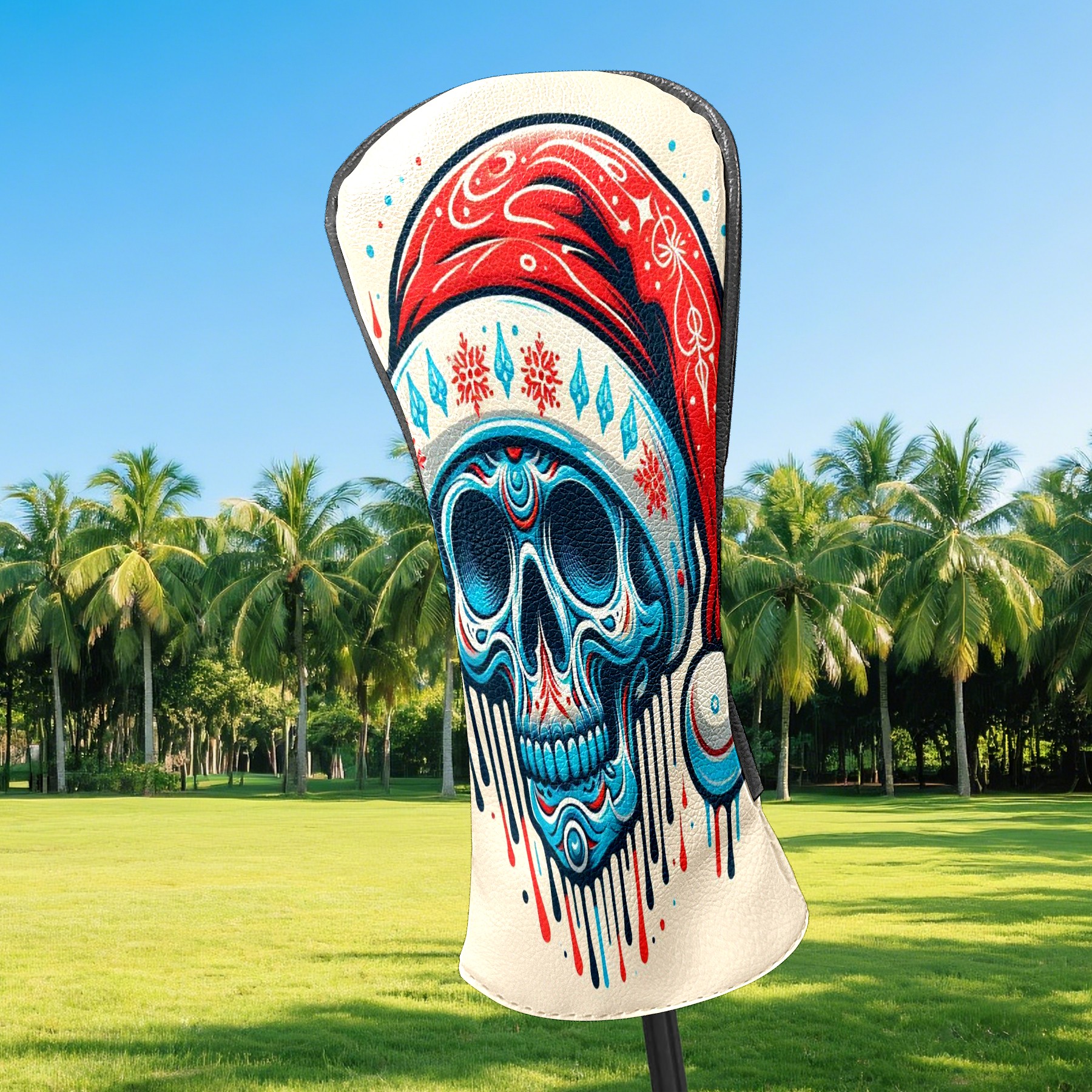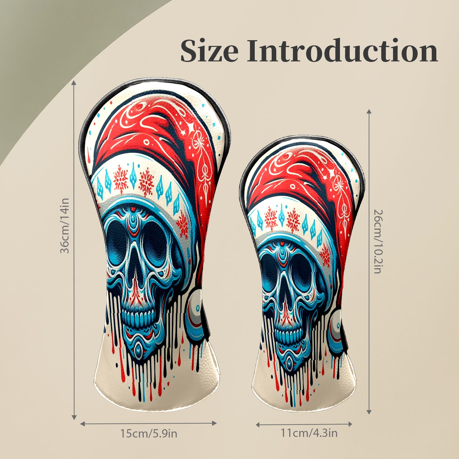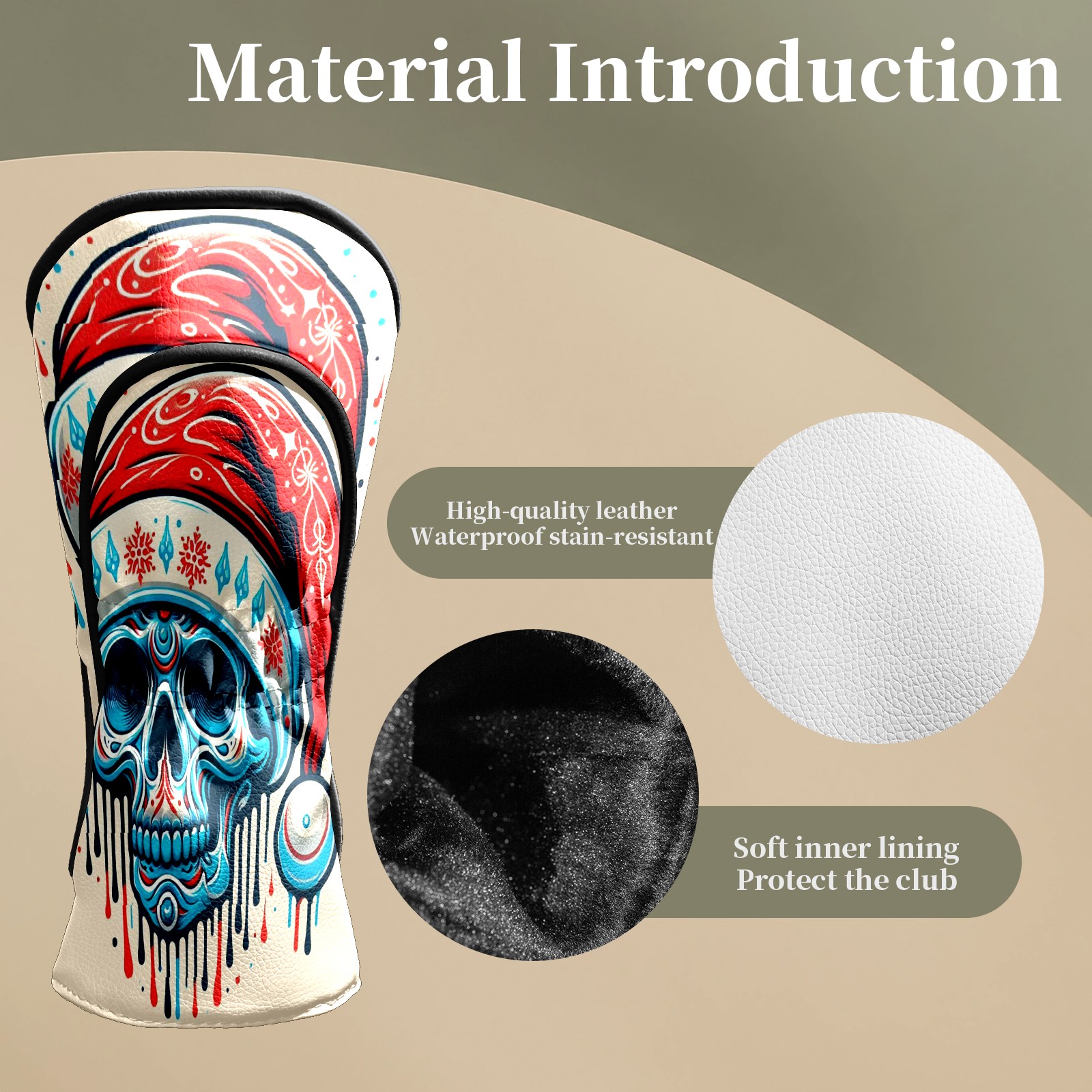 Counullo Golf Head Covers - Beige Christmas Skull Driver Fairway Headcover, Durable PU Leather & Soft Velvet Lining, Secure Elastic Band, Perfect Christmas Golf Gift for Men
