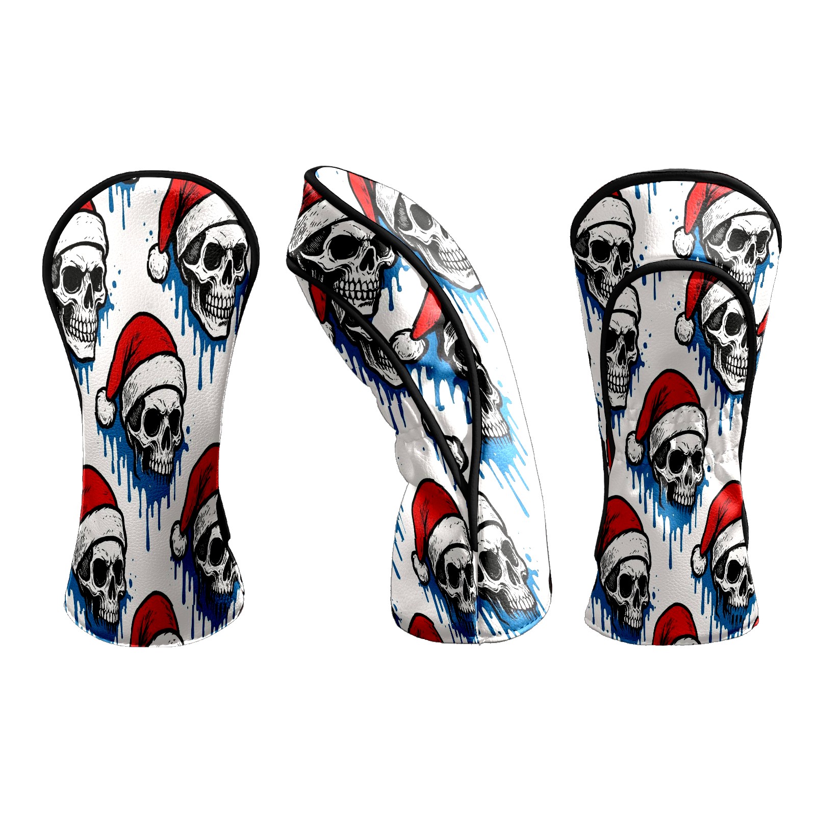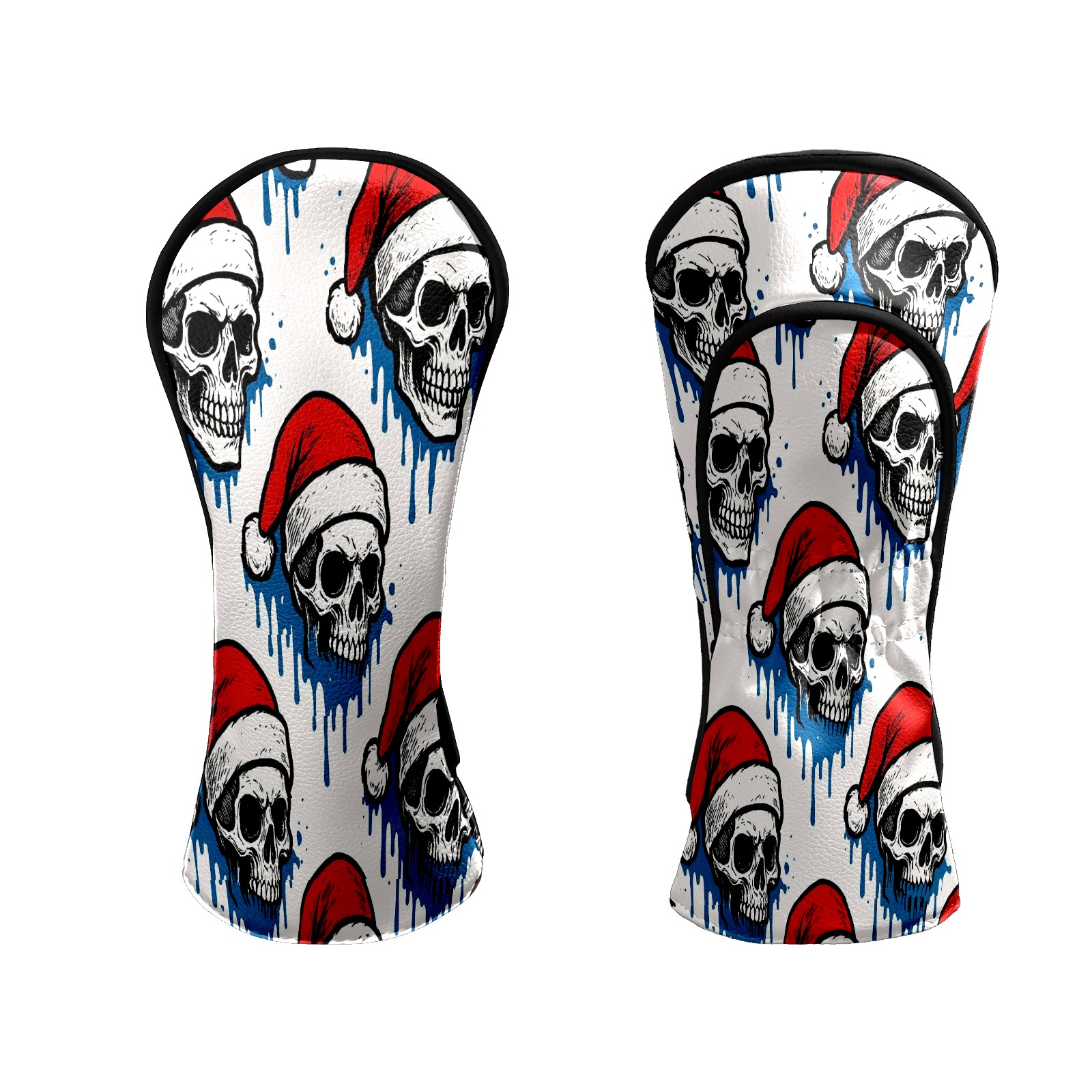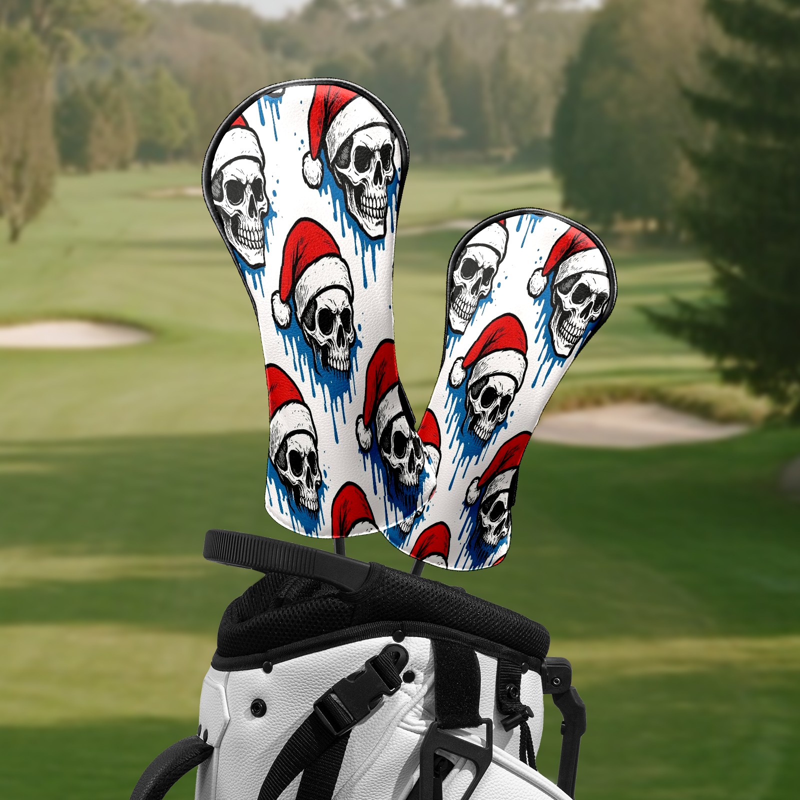 Counullo Golf Head Covers - White Christmas Skulls Driver Fairway Headcover, Durable PU Leather & Soft Velvet Lining, Secure Elastic Band, Perfect Christmas Golf Gift for Men