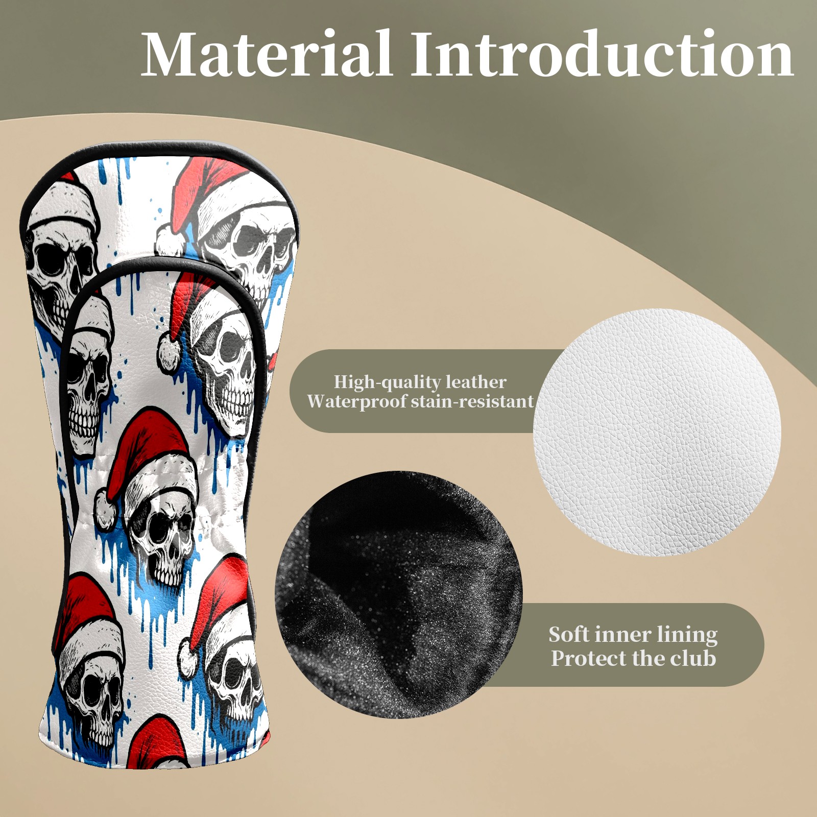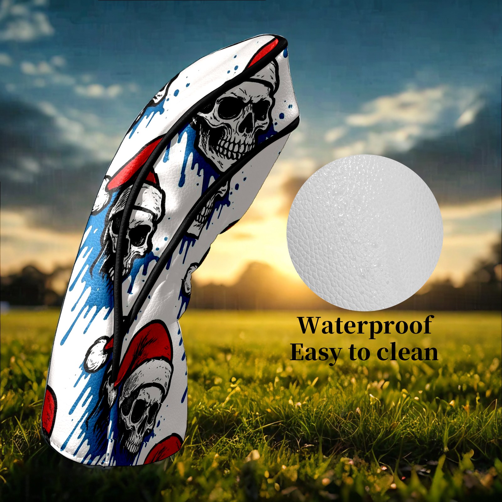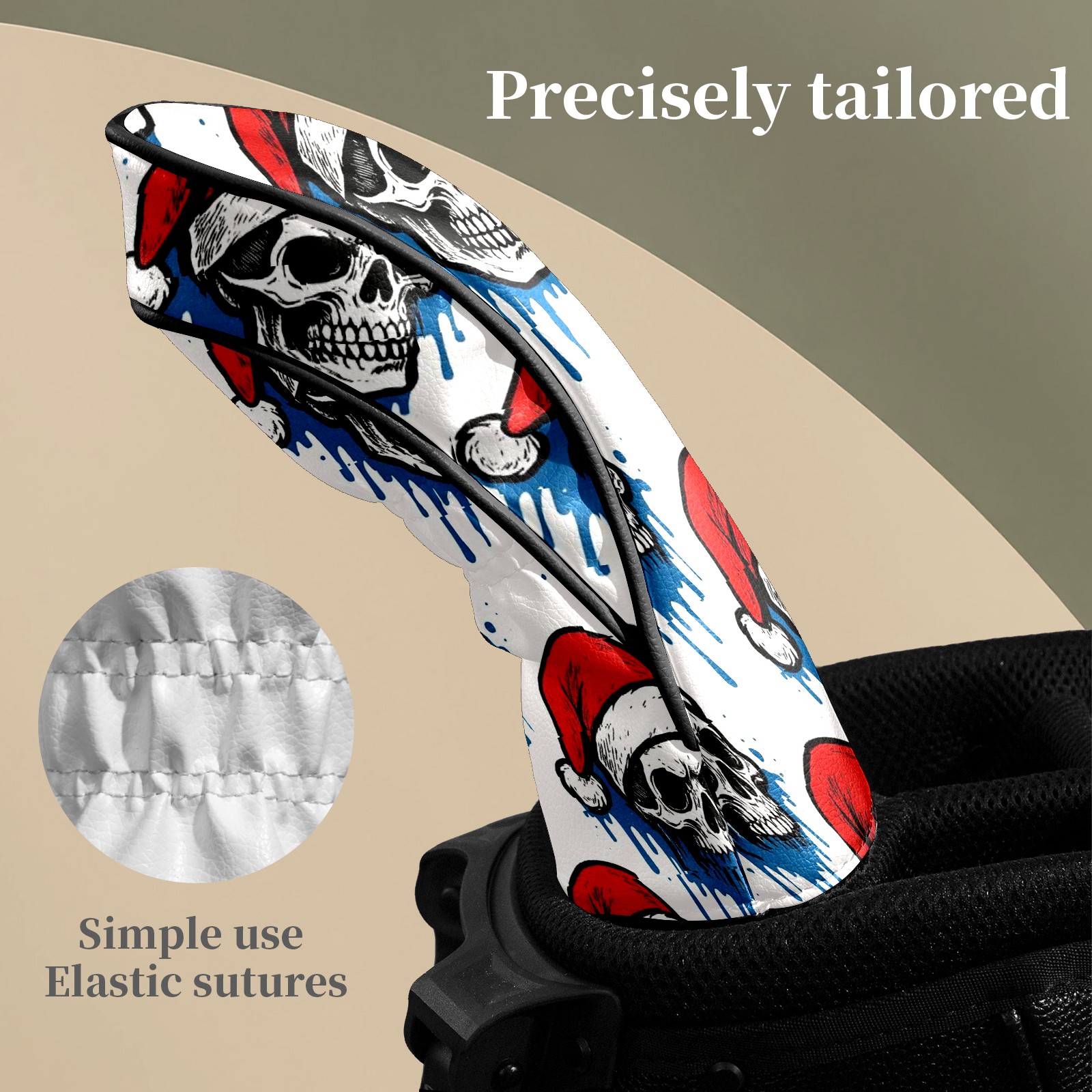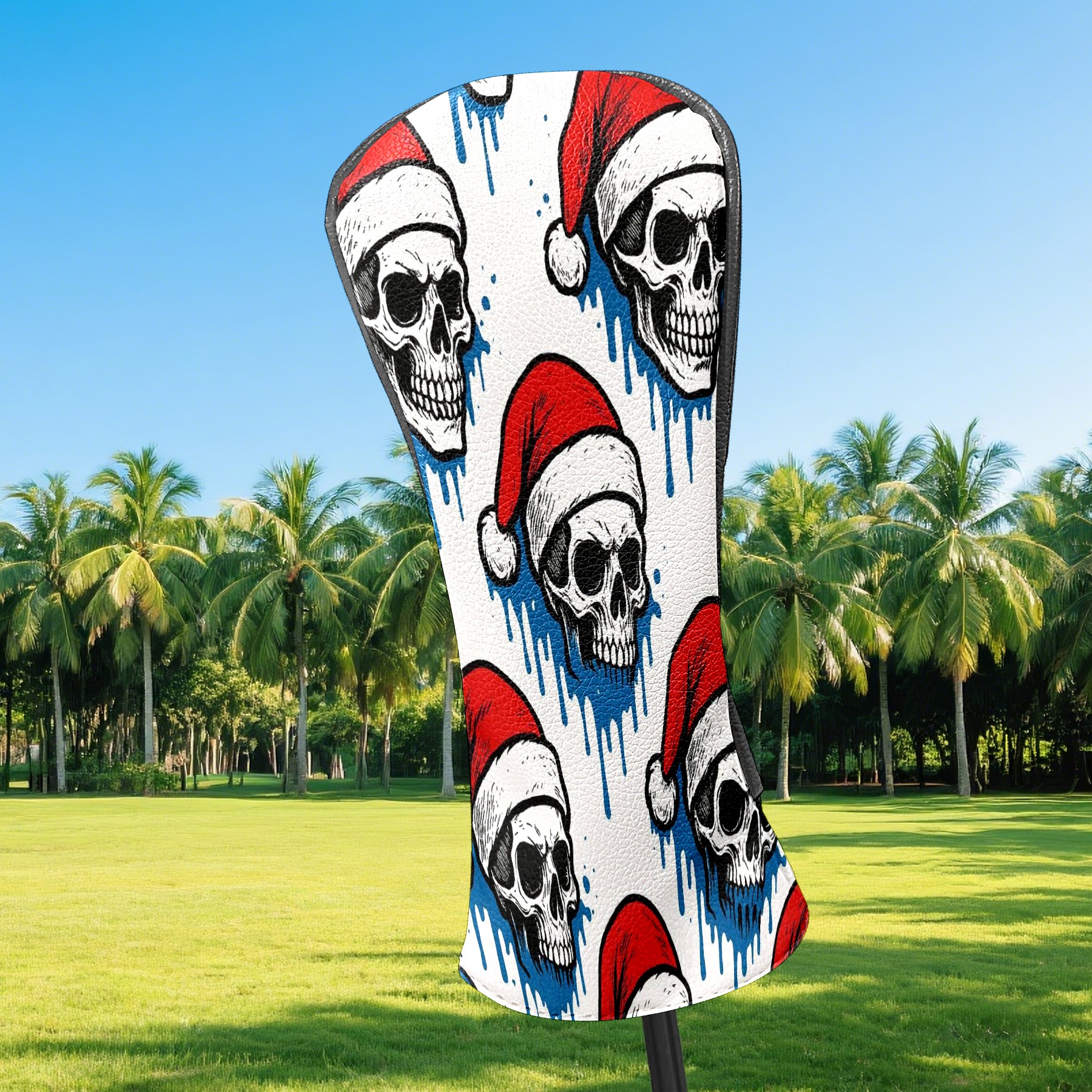 Counullo Golf Head Covers - White Christmas Skulls Driver Fairway Headcover, Durable PU Leather & Soft Velvet Lining, Secure Elastic Band, Perfect Christmas Golf Gift for Men