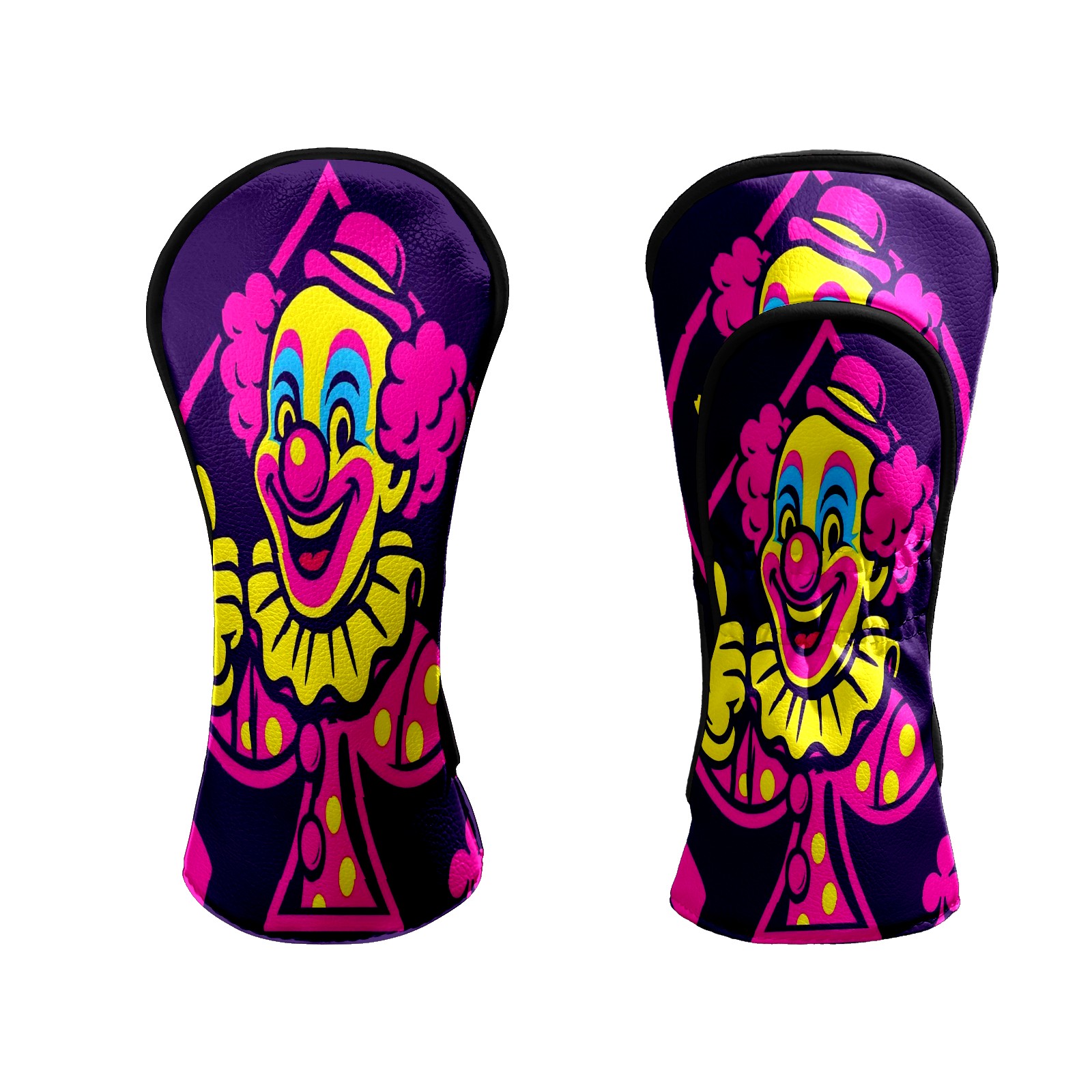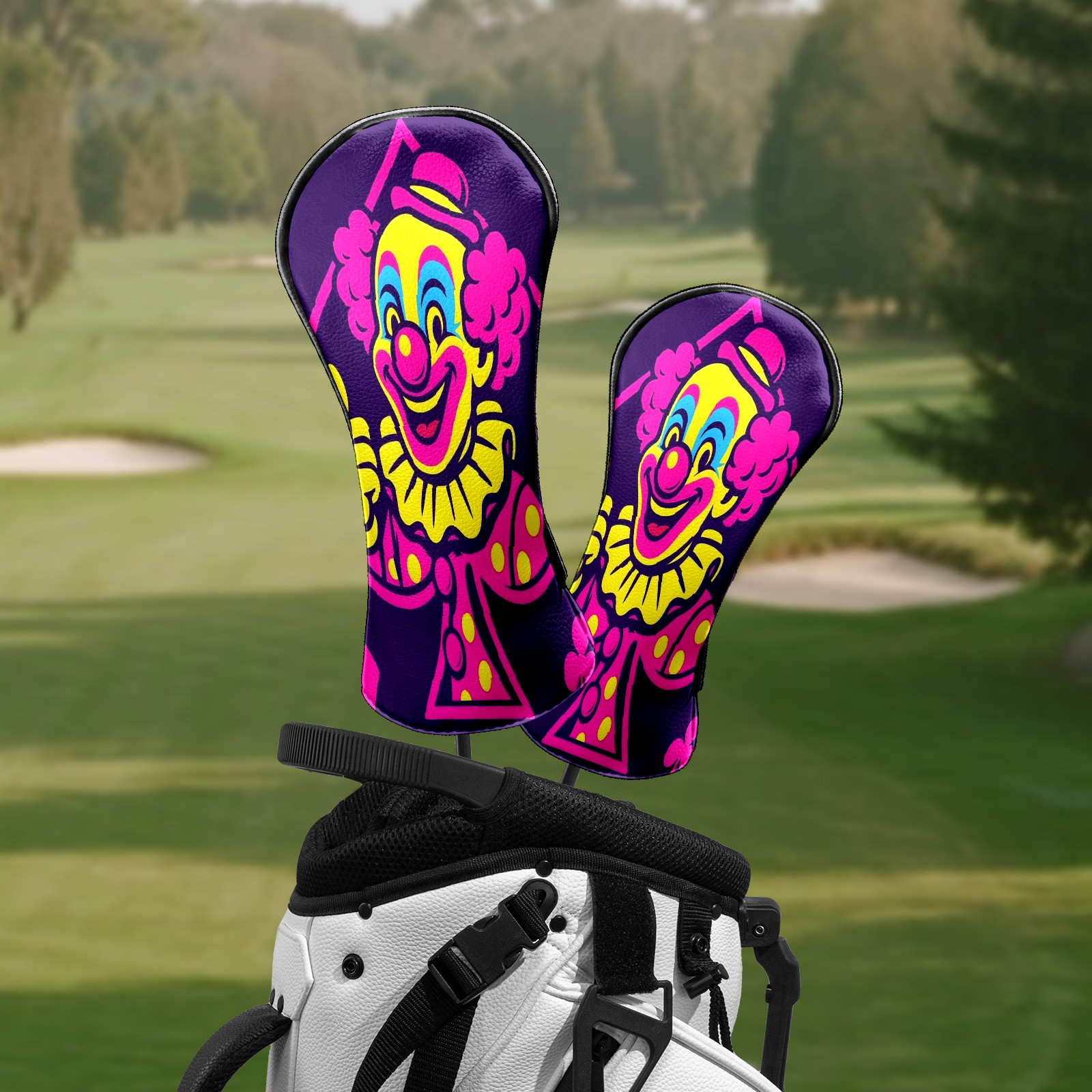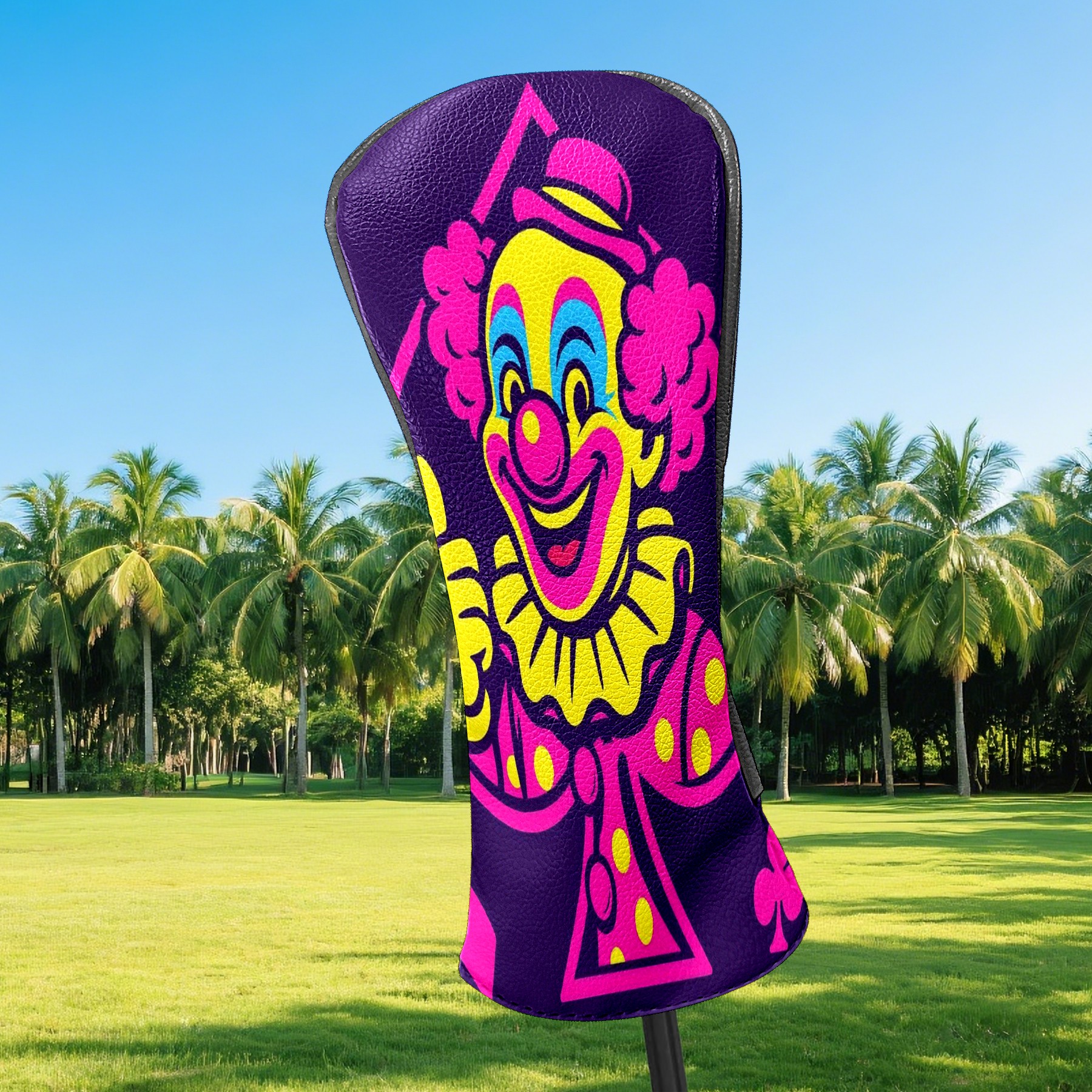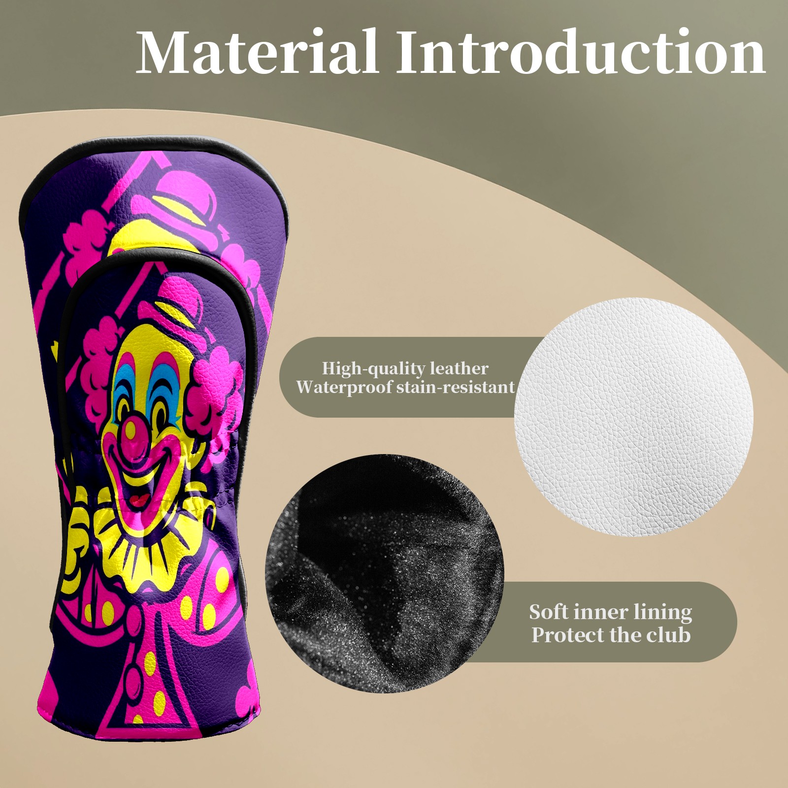 Counullo Golf Head Covers - Purple Poker Clown Driver Fairway Headcover, Durable PU Leather & Soft Velvet Lining, Secure Elastic Band, Perfect Christmas Golf Gift for Men