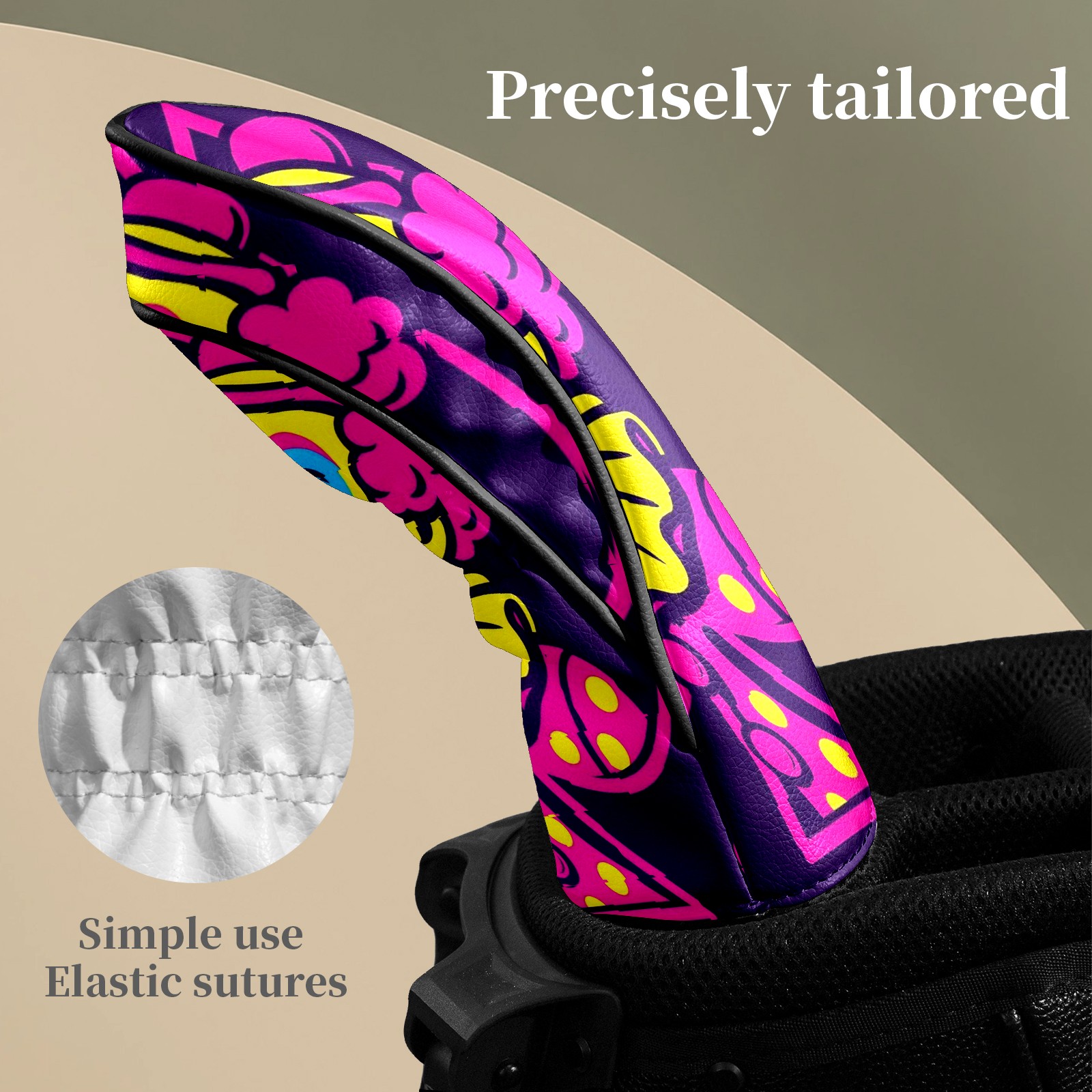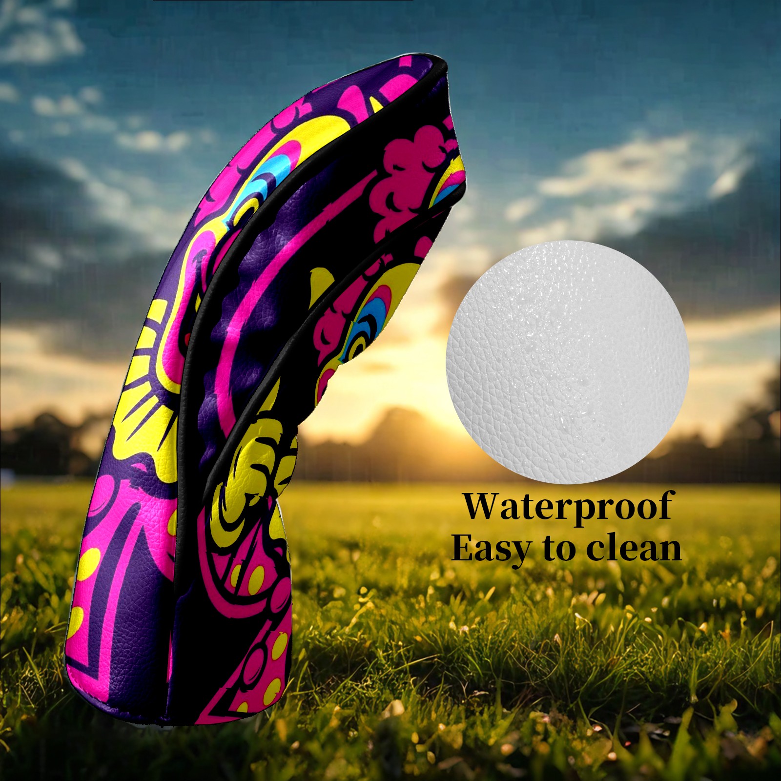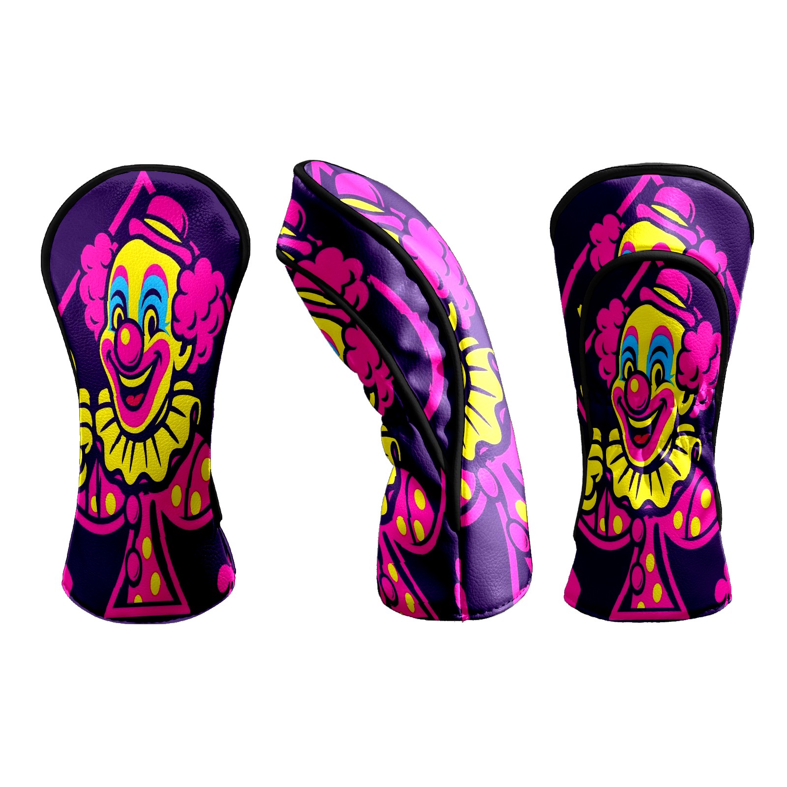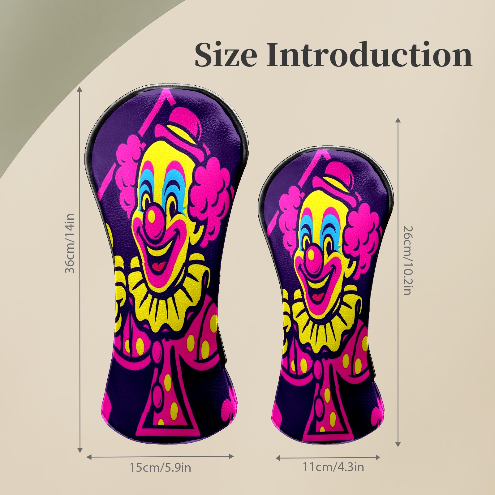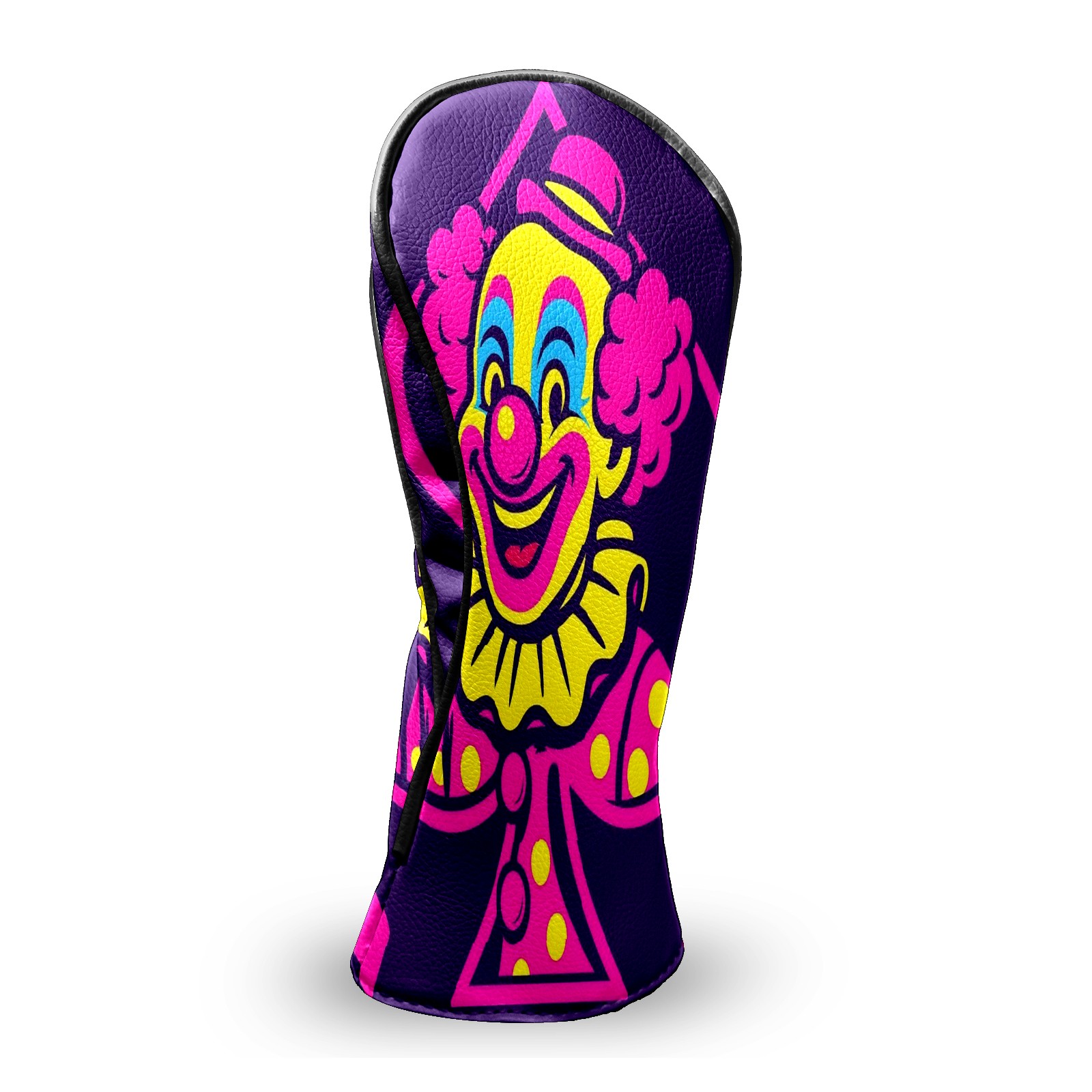 Counullo Golf Head Covers - Purple Poker Clown Driver Fairway Headcover, Durable PU Leather & Soft Velvet Lining, Secure Elastic Band, Perfect Christmas Golf Gift for Men