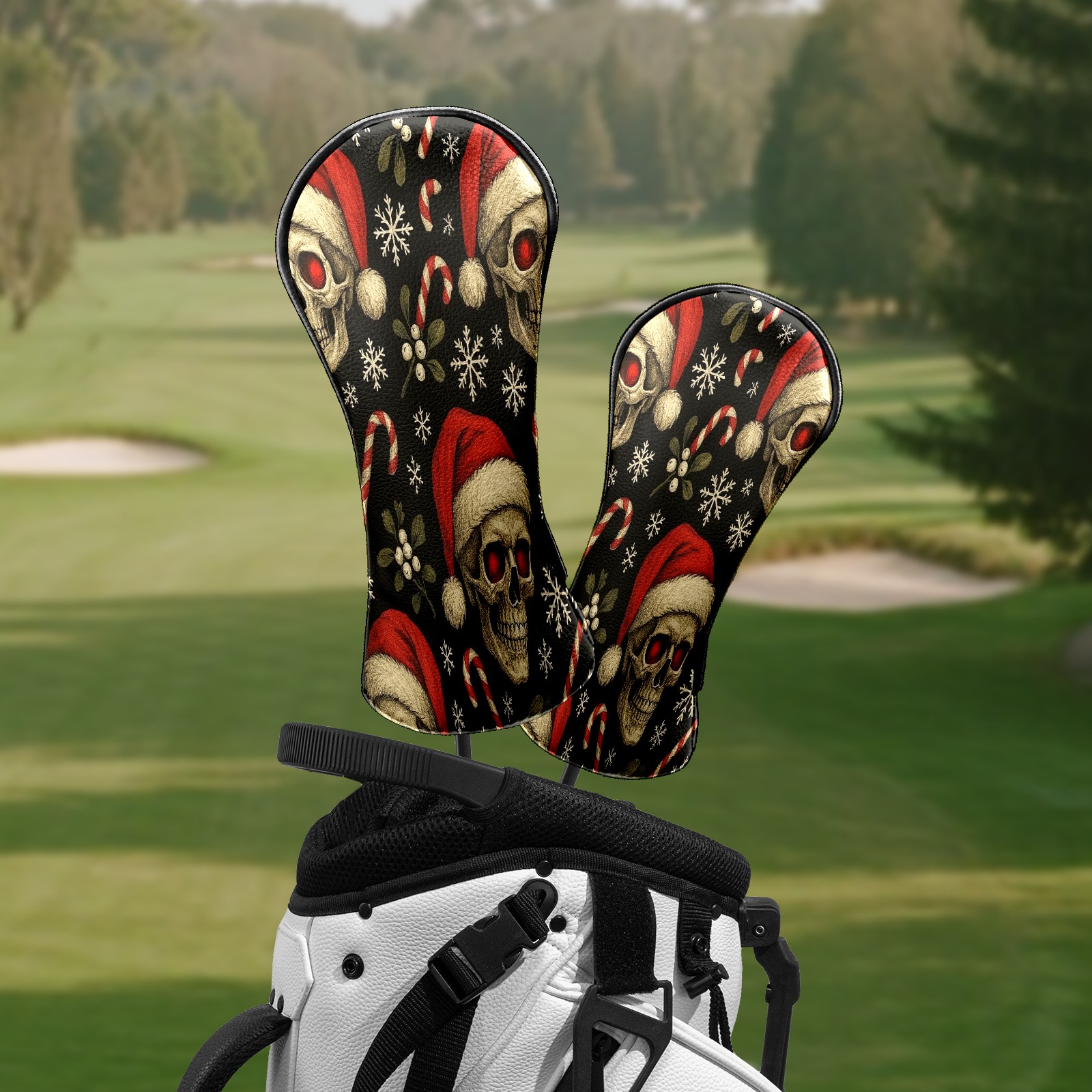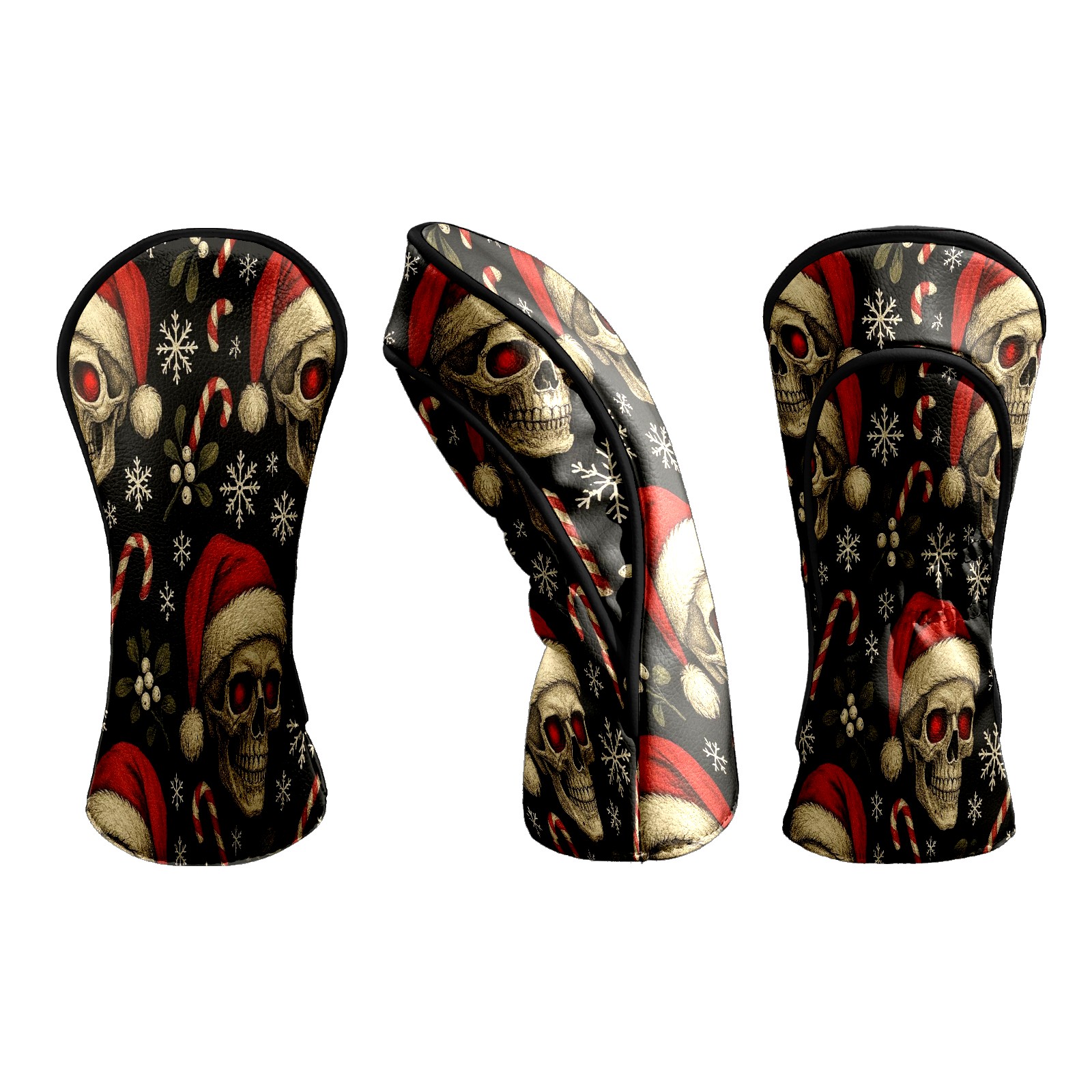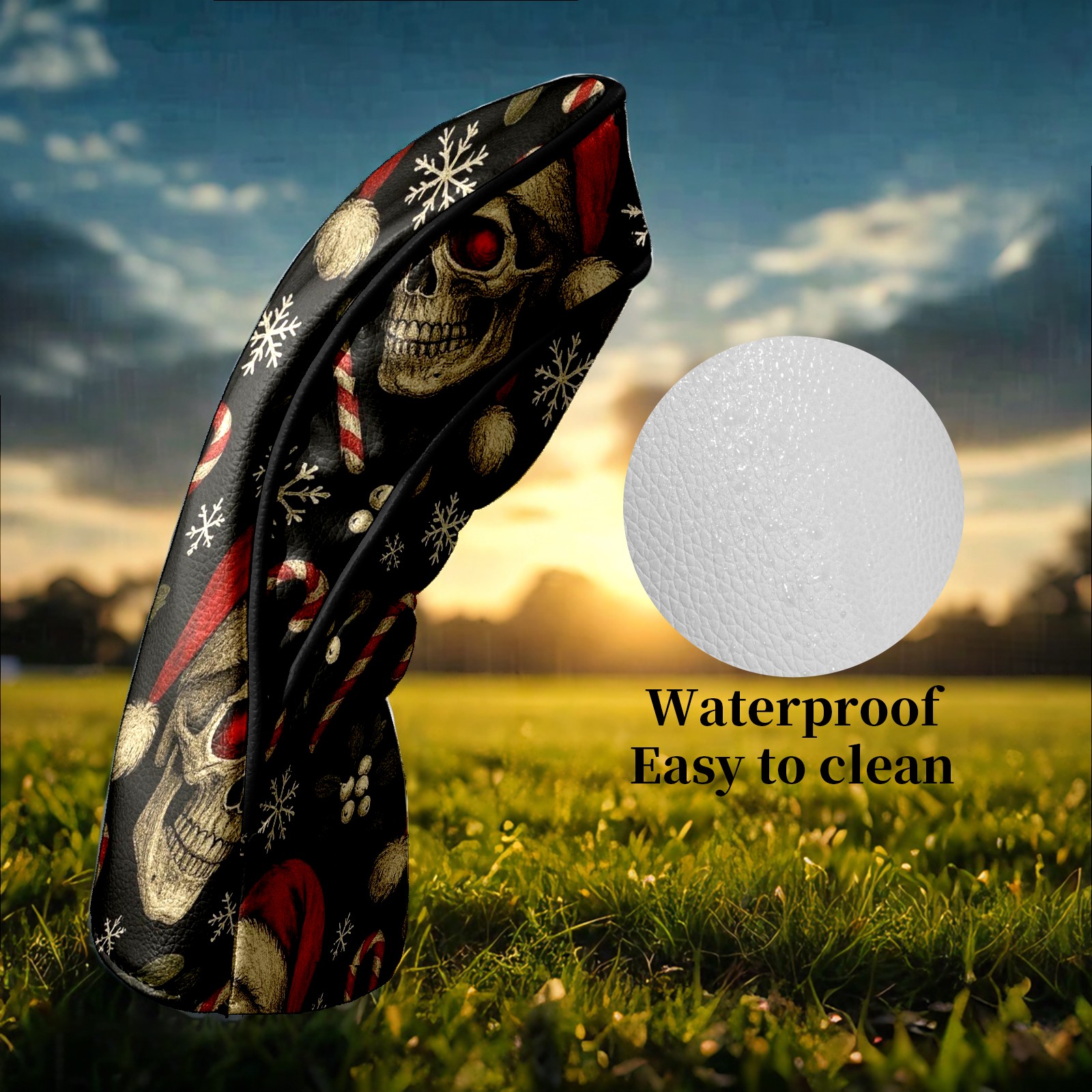 Counullo Golf Head Covers - Black Christmas Skulls Driver Fairway Headcover, Durable PU Leather & Soft Velvet Lining, Secure Elastic Band, Perfect Christmas Golf Gift for Men