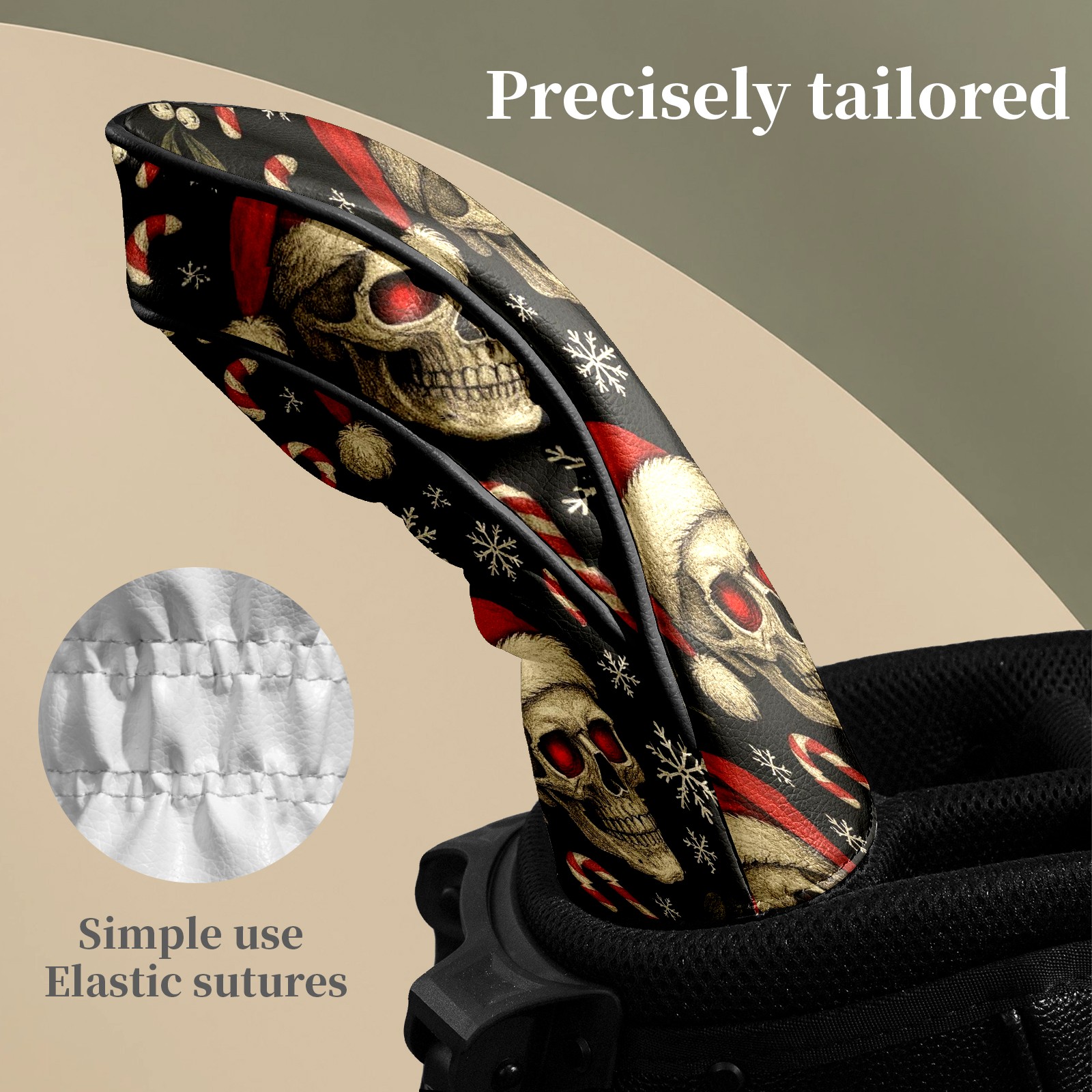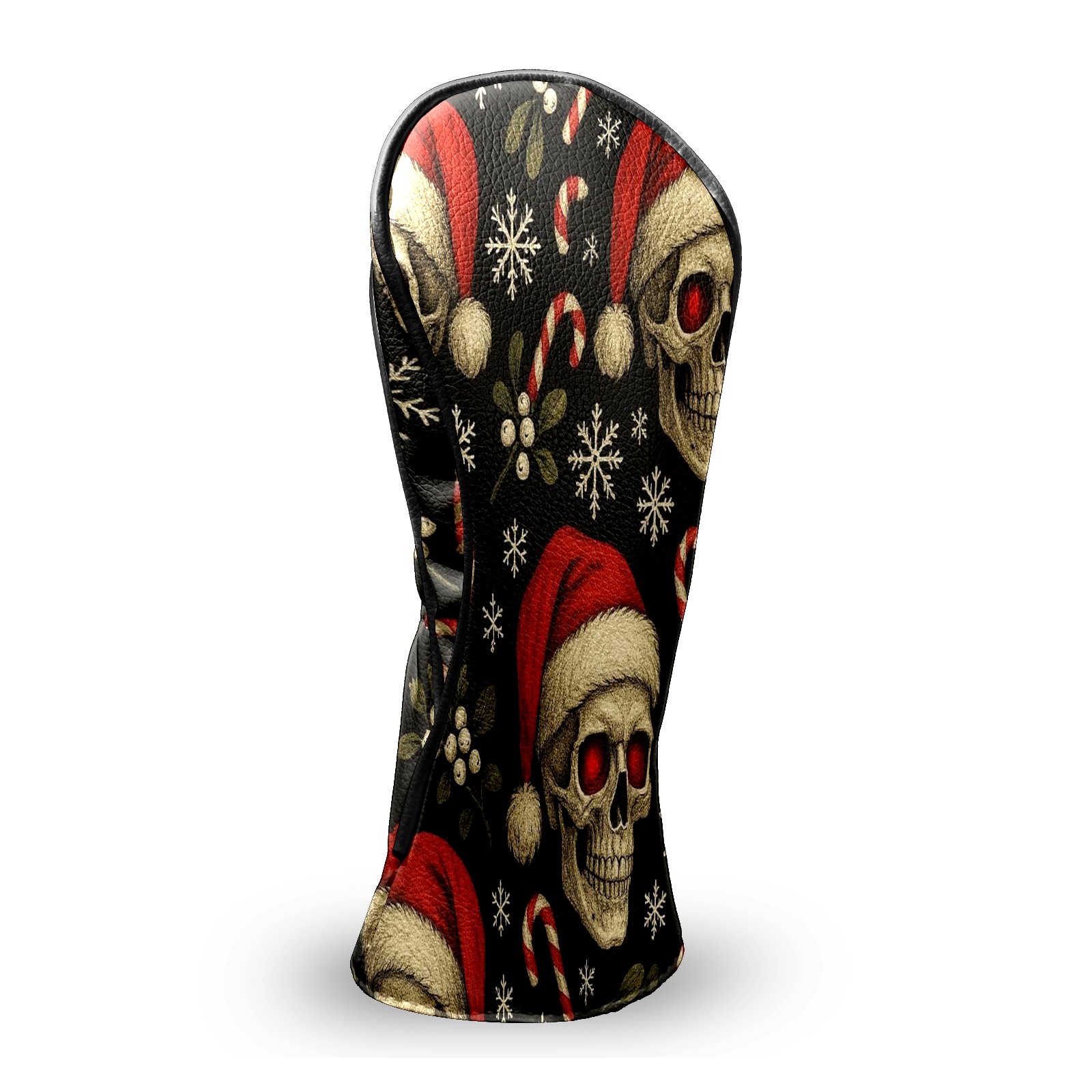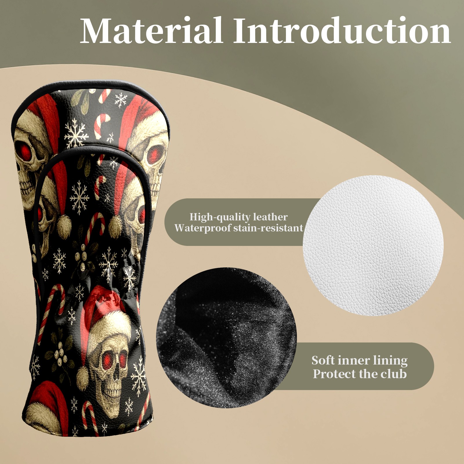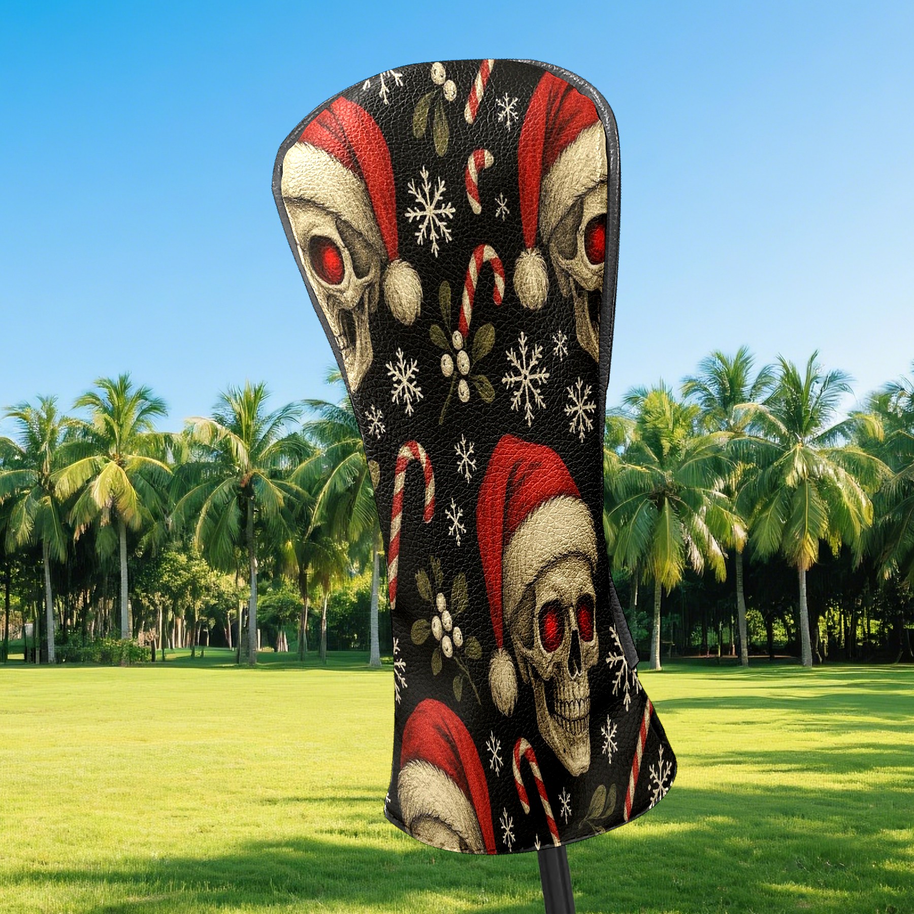 Counullo Golf Head Covers - Black Christmas Skulls Driver Fairway Headcover, Durable PU Leather & Soft Velvet Lining, Secure Elastic Band, Perfect Christmas Golf Gift for Men