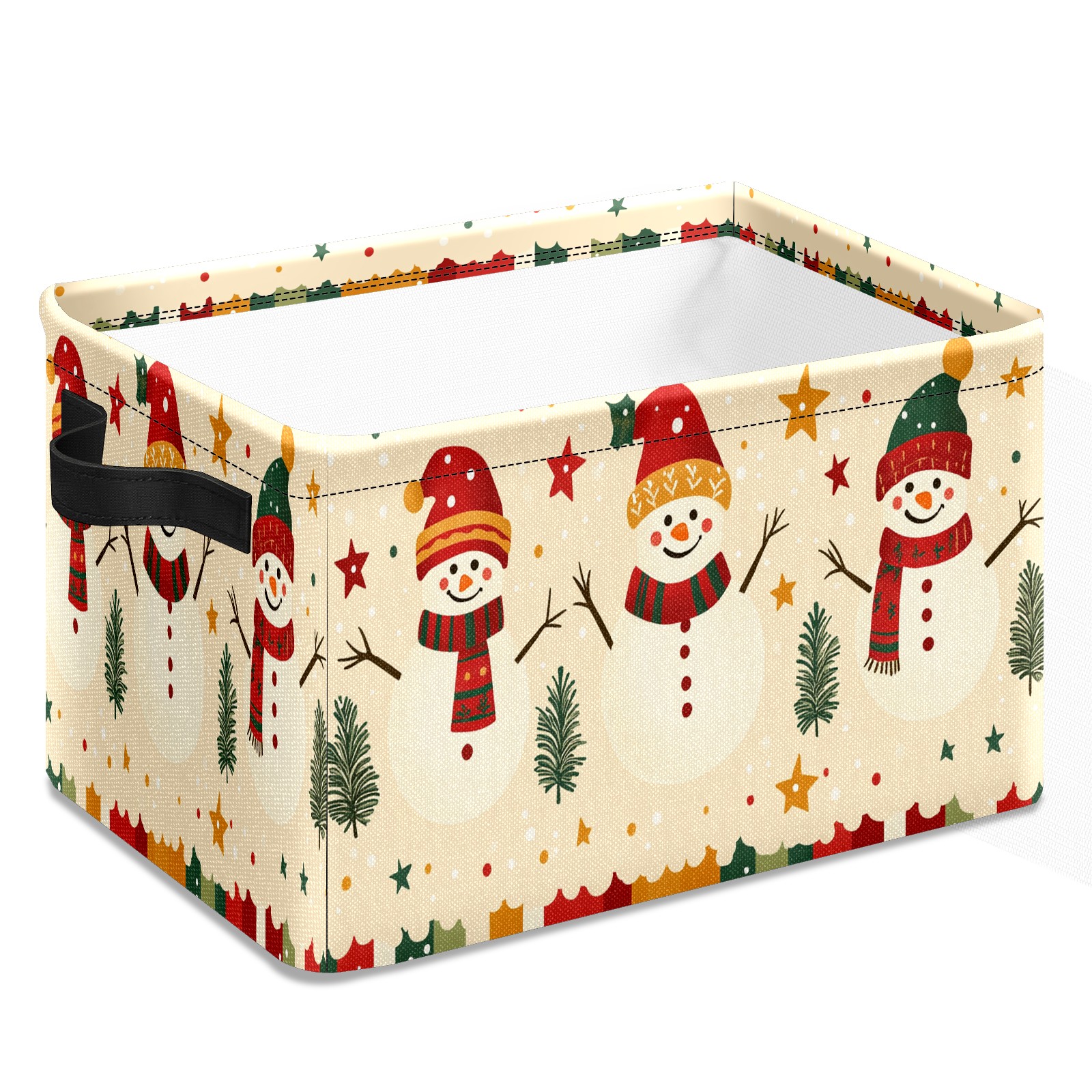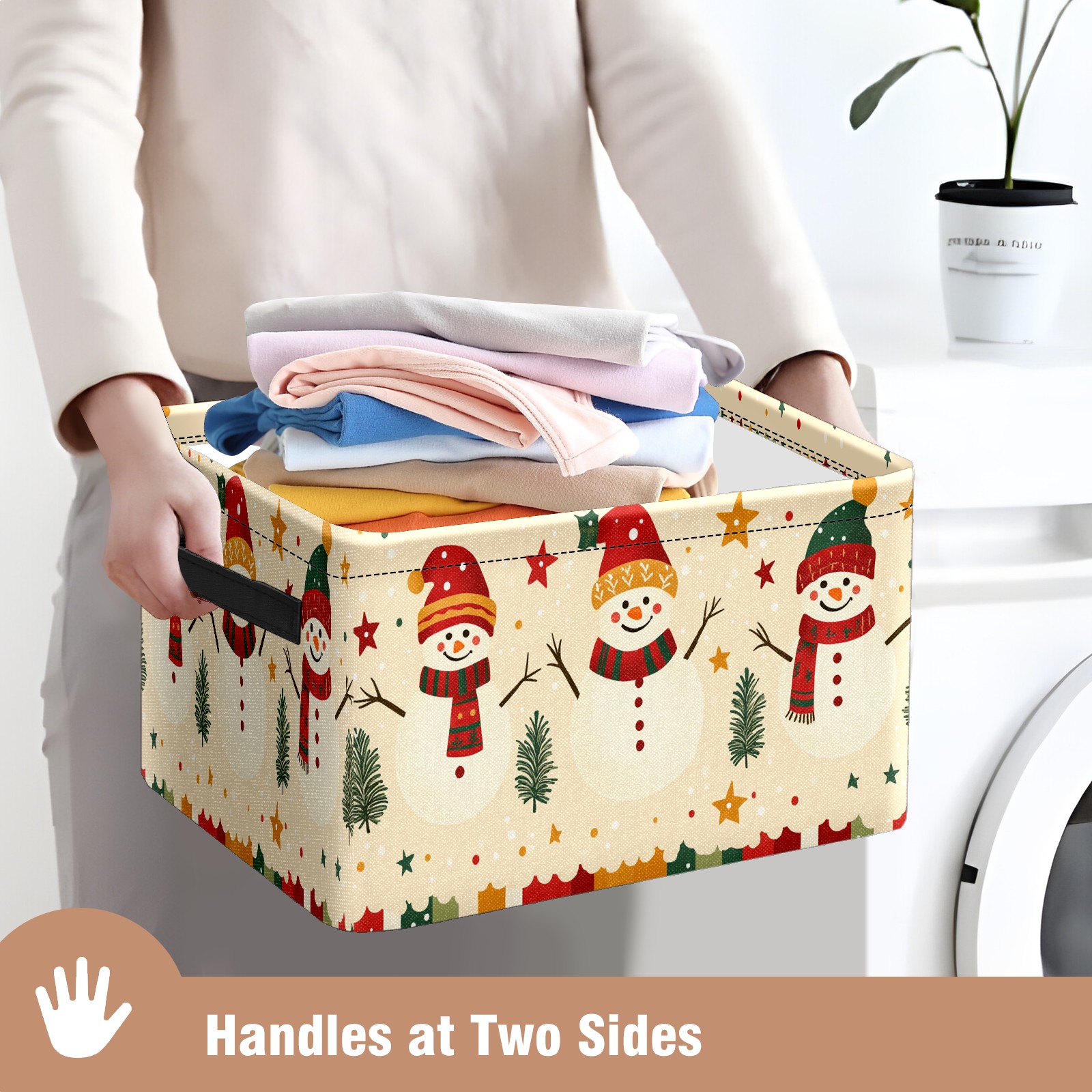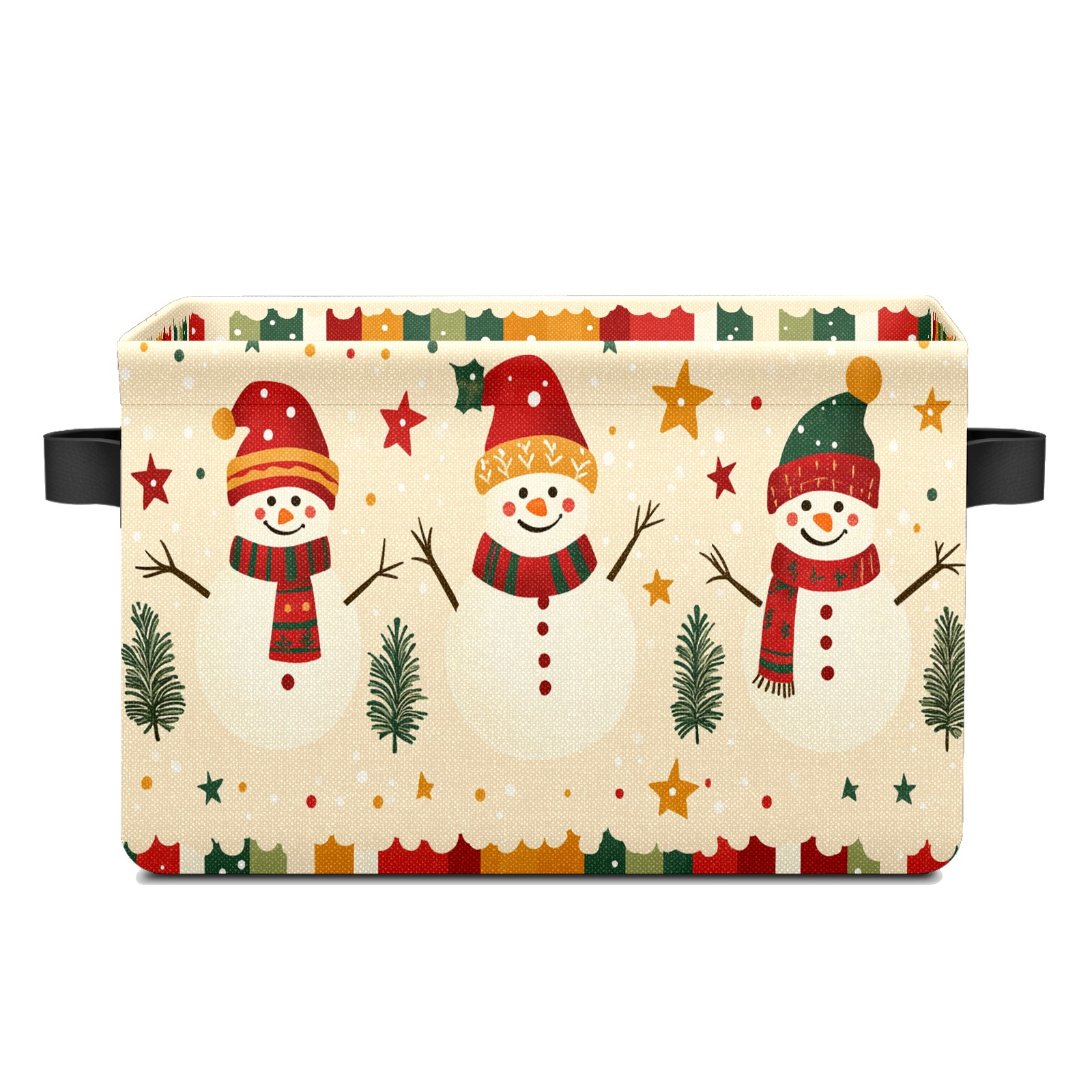 Christmas Snowman Stripes And Star Patterns Large Storage Box, Foldable Toy Basket with Handle, for Organizing Clothes, Christmas Gift Storage Box, Children's Toys.