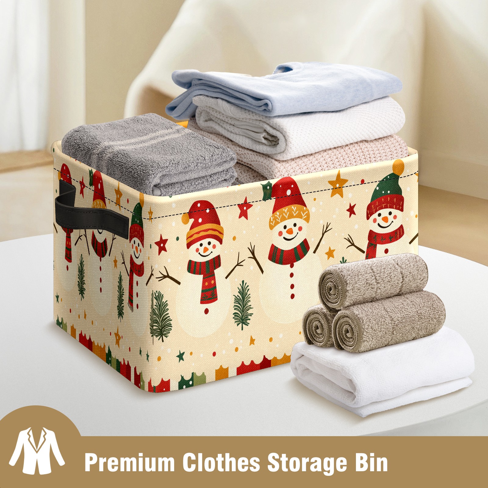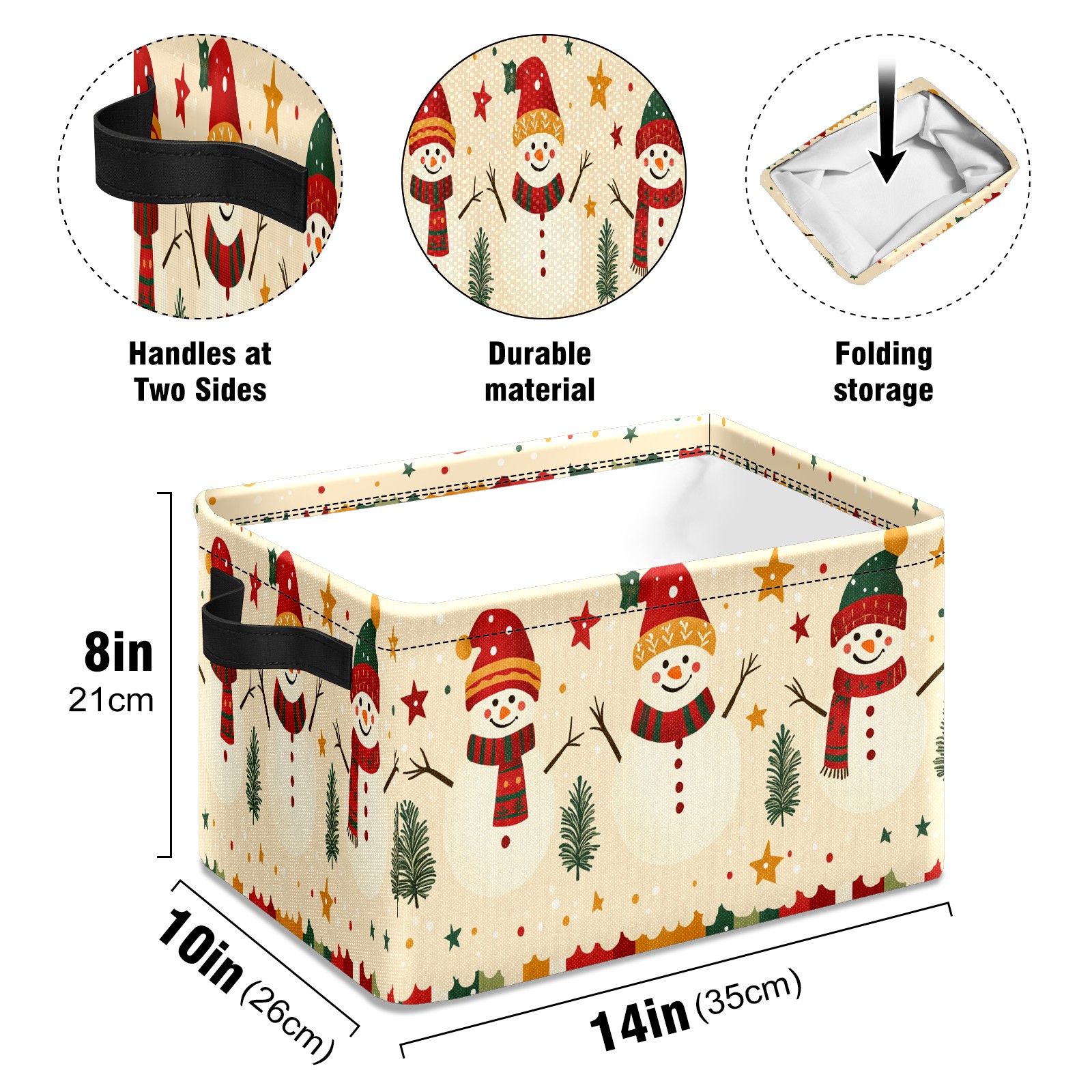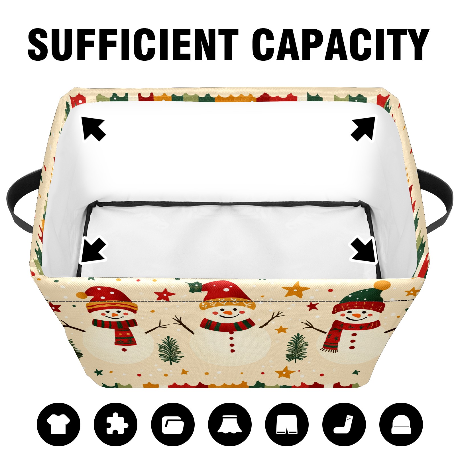 Christmas Snowman Stripes And Star Patterns Large Storage Box, Foldable Toy Basket with Handle, for Organizing Clothes, Christmas Gift Storage Box, Children's Toys.
