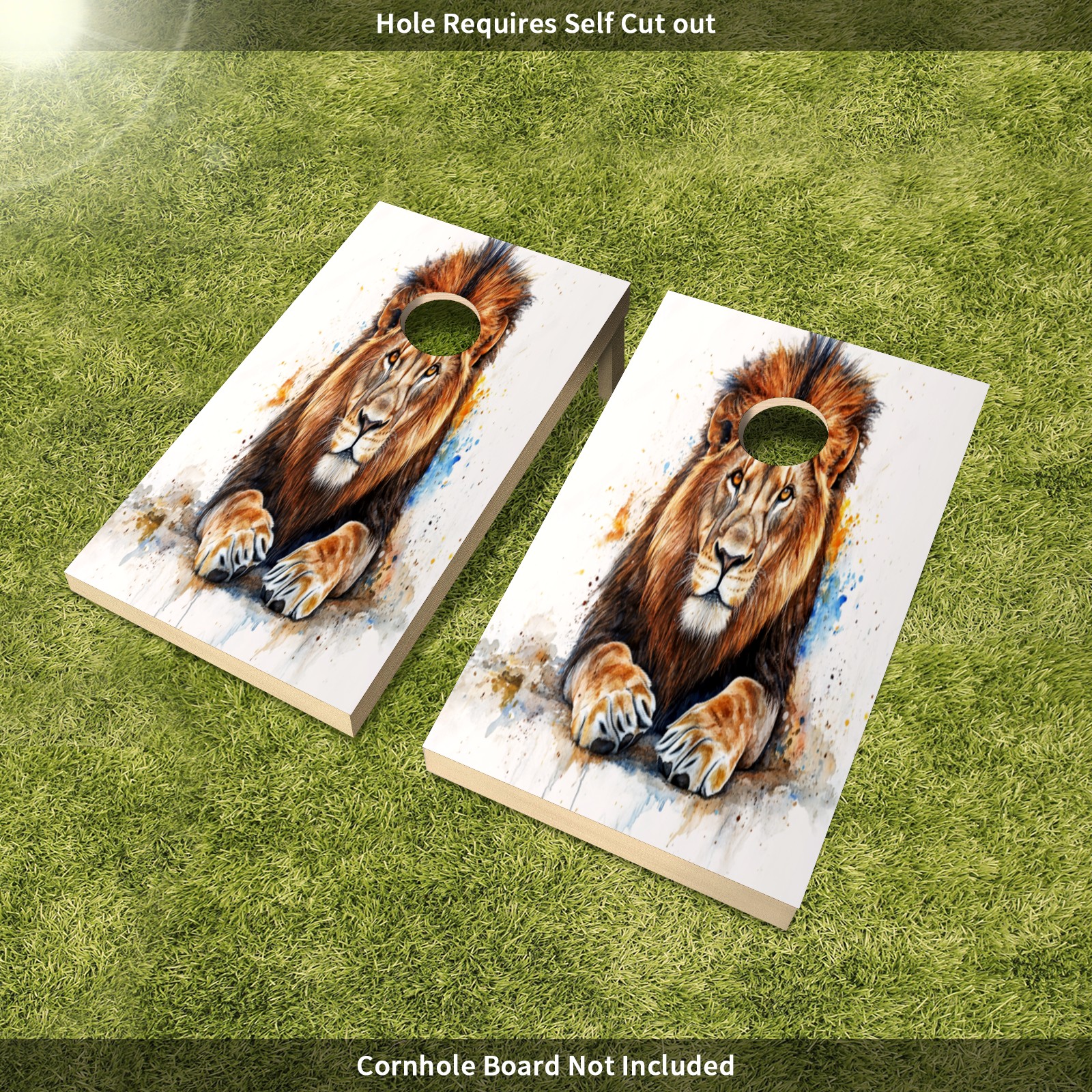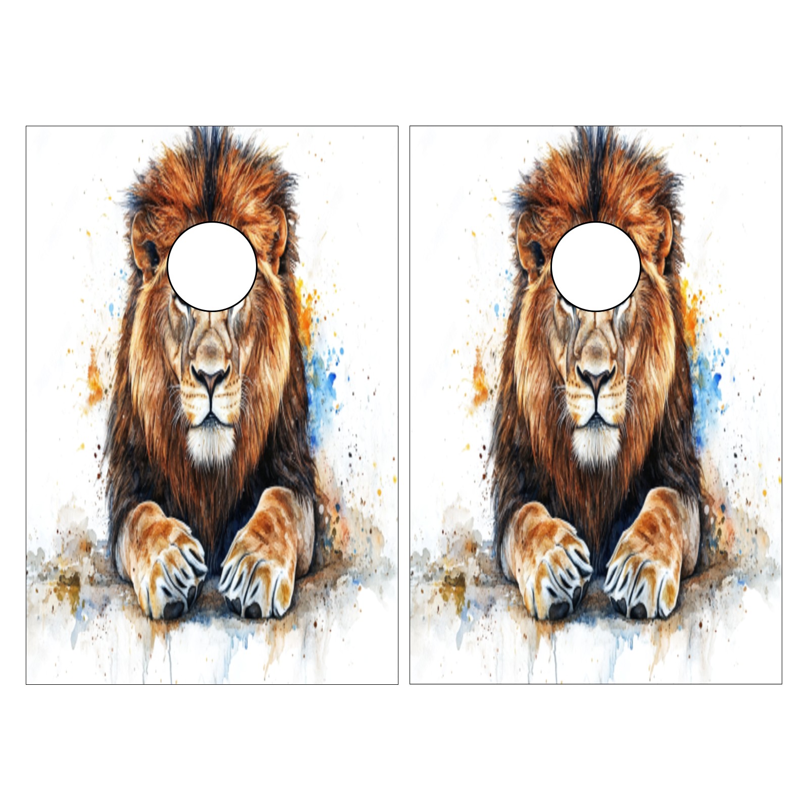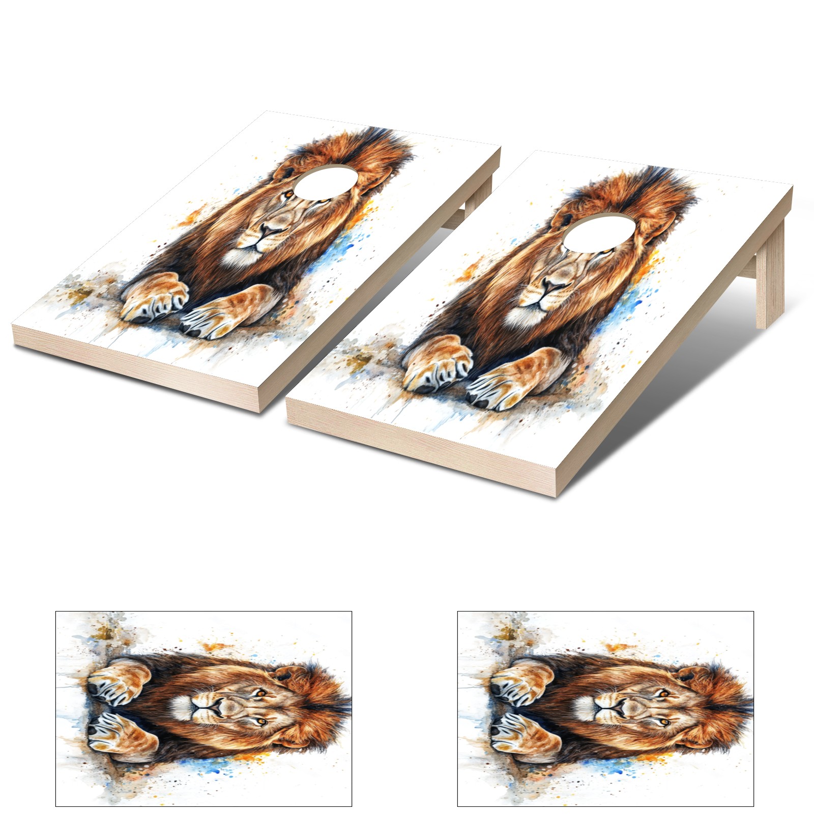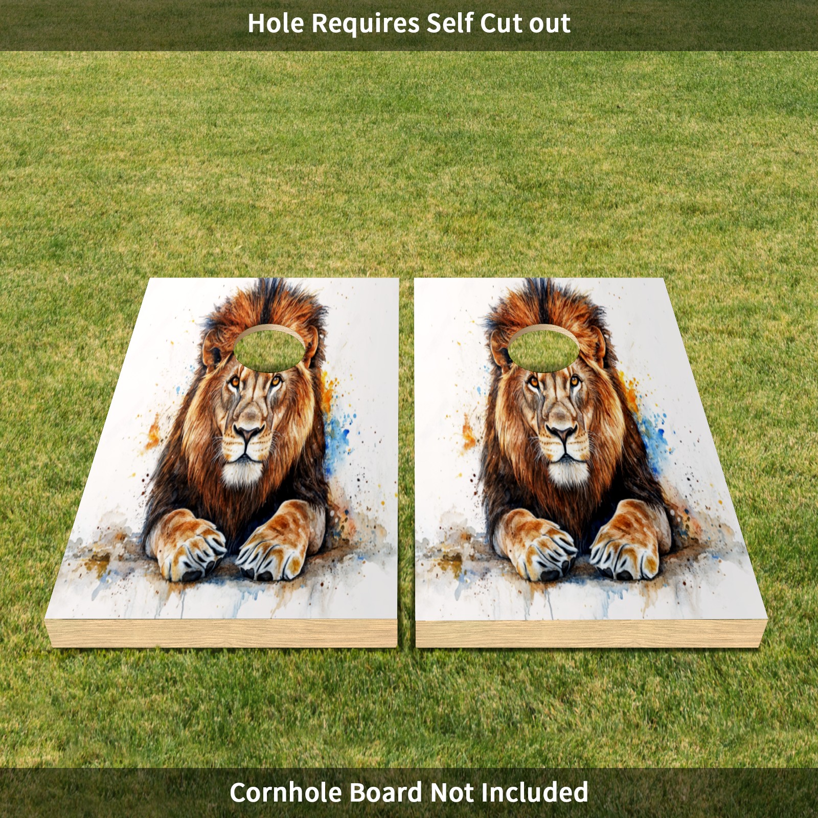 Cornhole Game Stickers For Boards Funny Cornhole Board Decals 24x36Inch Cornhole Board Wraps Weatherproof Vinyl Decal Easy Bubble Free Bean Toss Christmas Games Watercolor Lion
