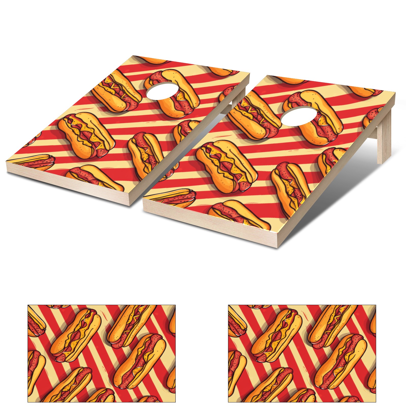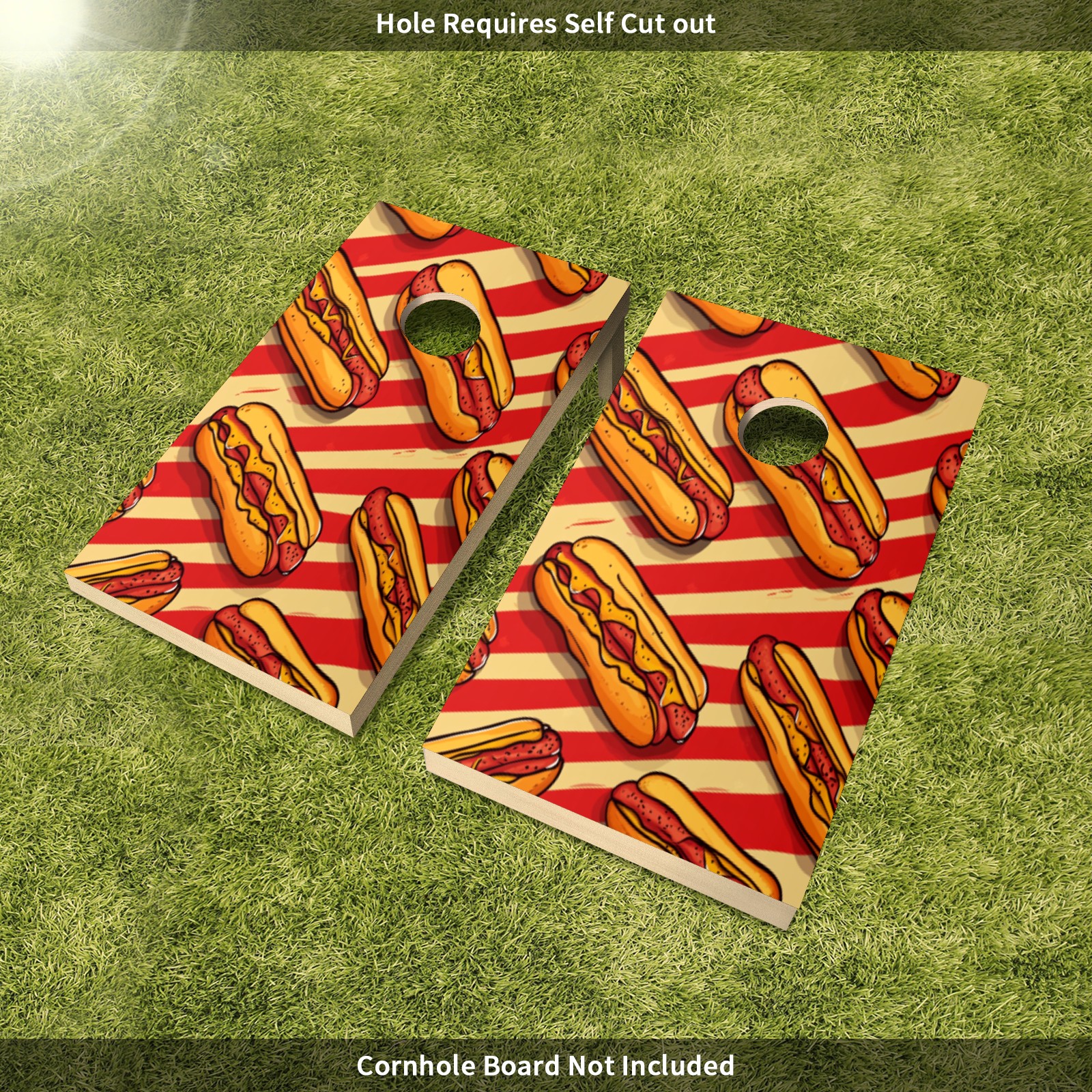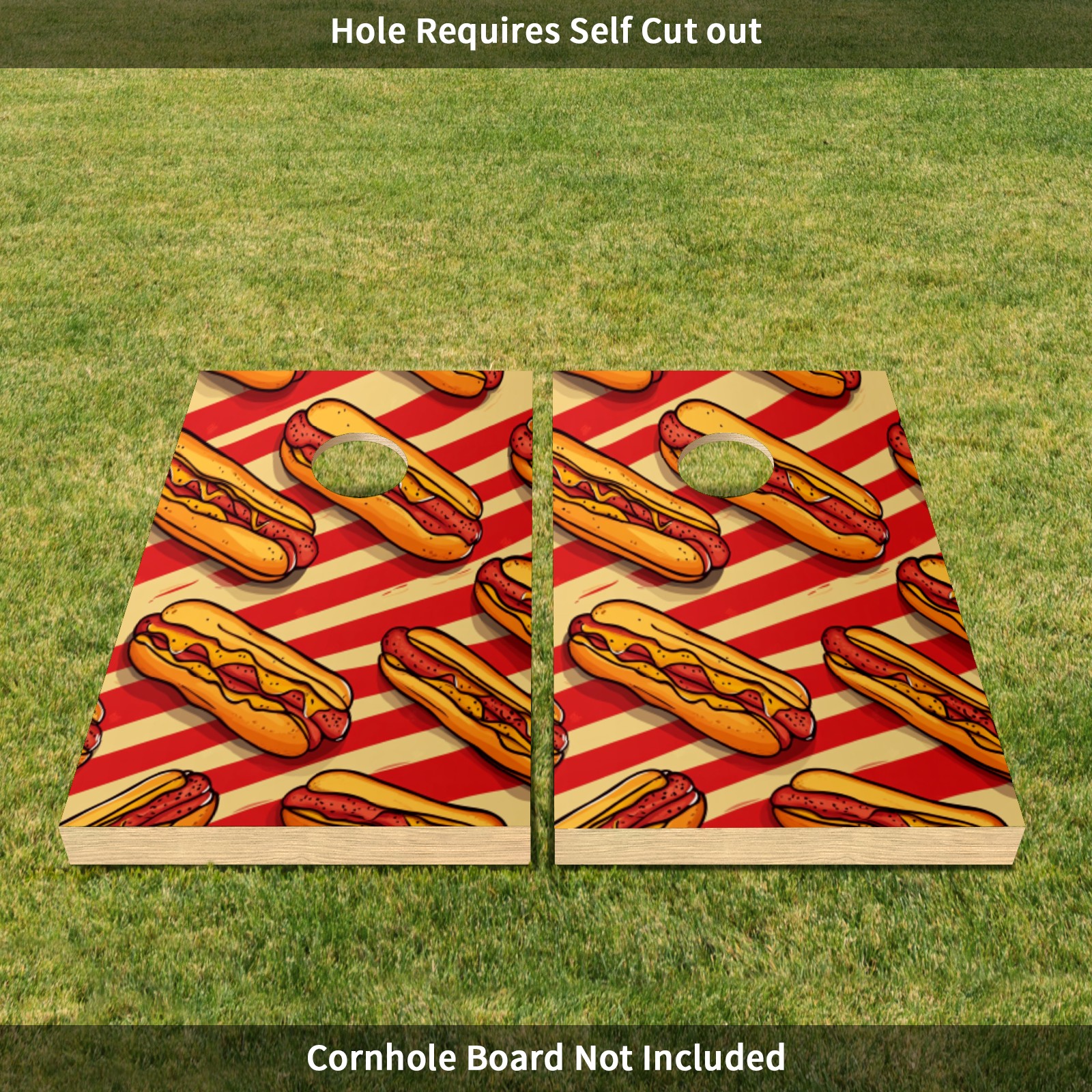 Cornhole Game Stickers For Boards Funny Cornhole Board Decals 24x36Inch Cornhole Board Wraps Weatherproof Vinyl Decal Easy Bubble Free Bean Toss Christmas Games Hot Dog Pattern