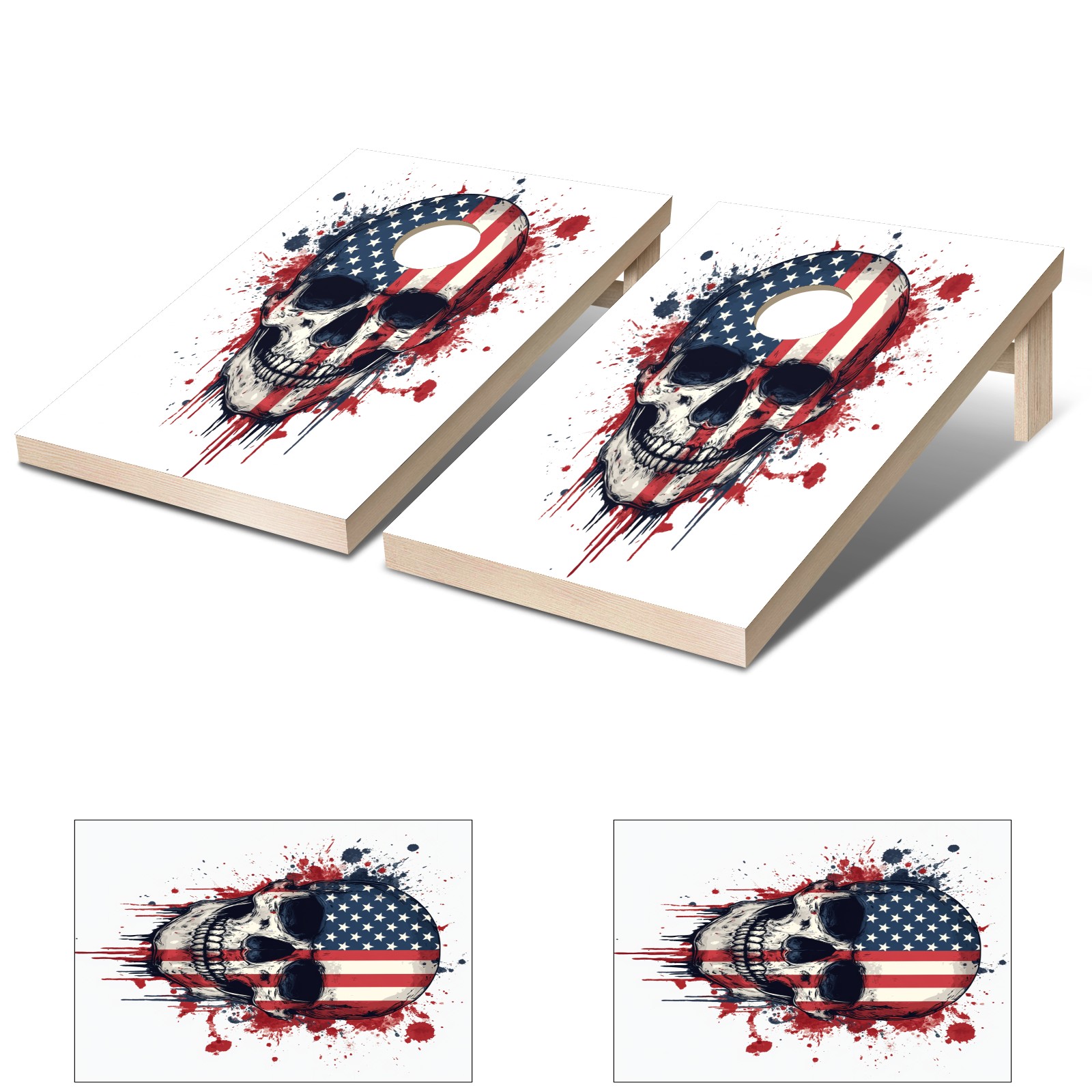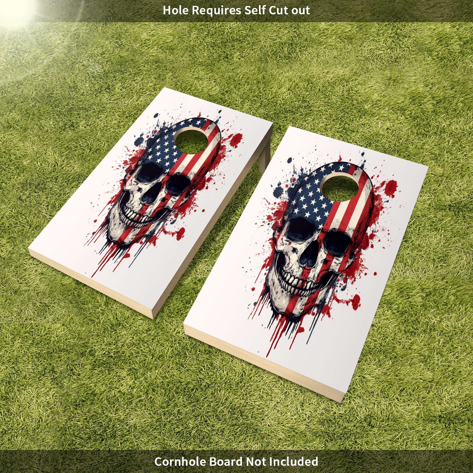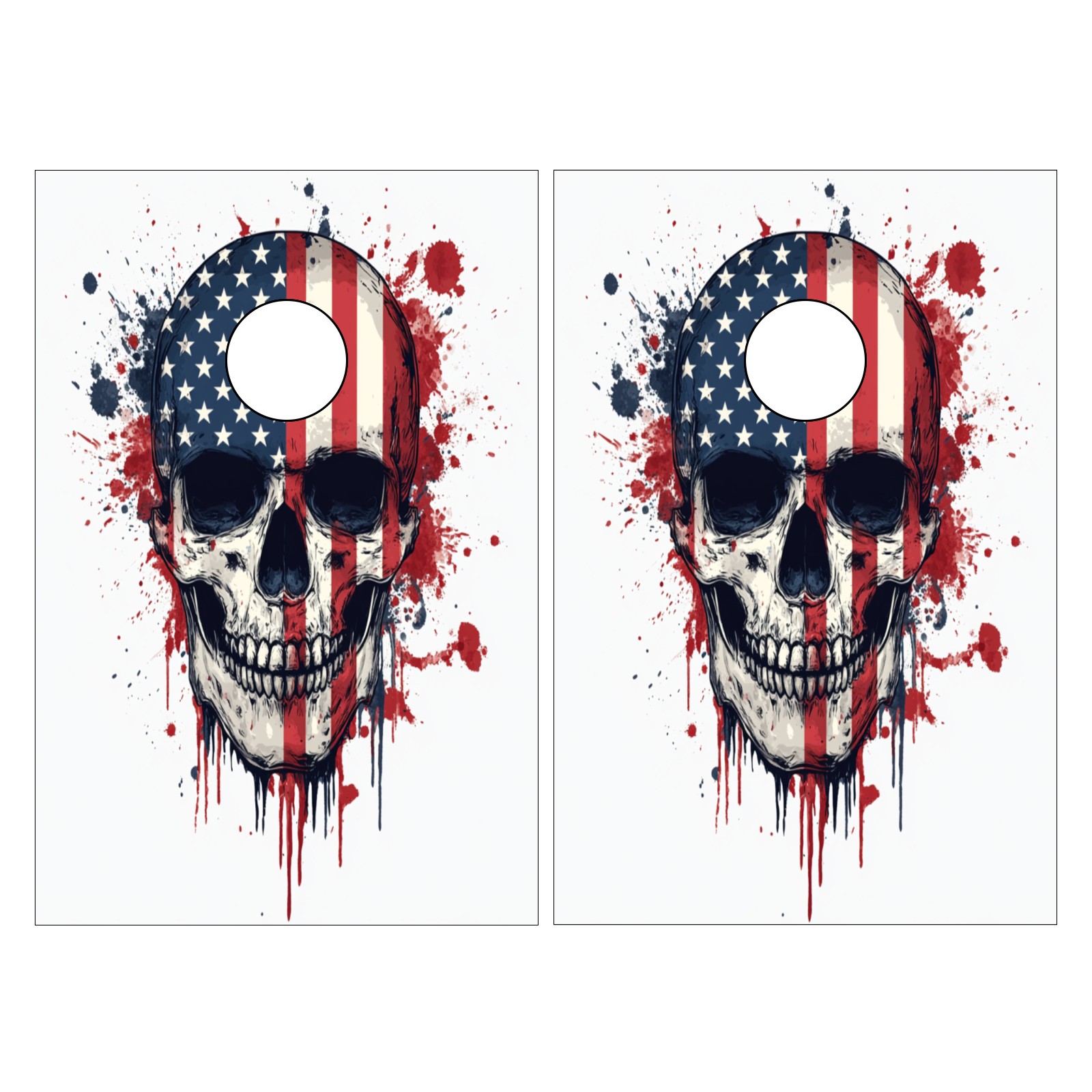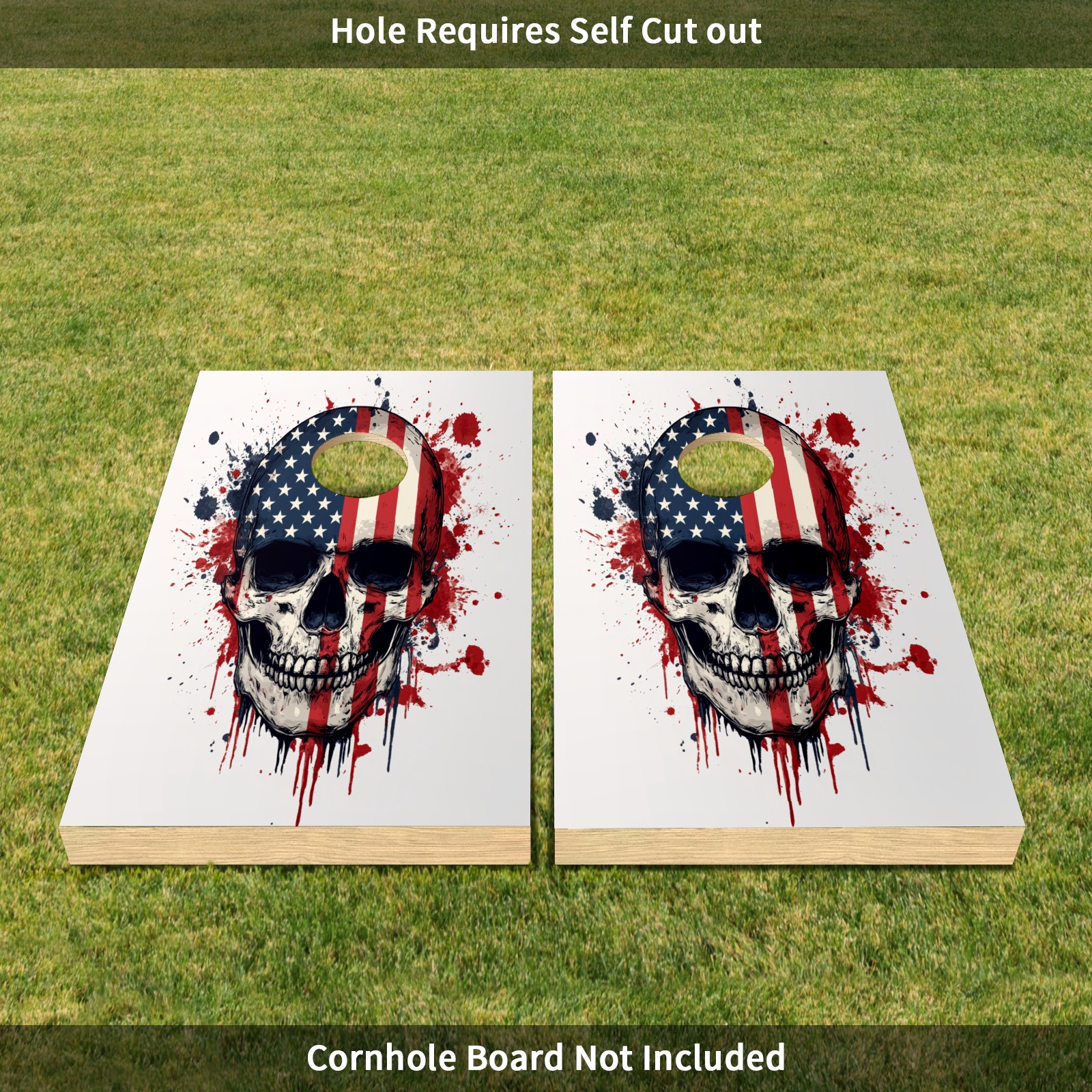 Cornhole Game Stickers For Boards Funny Cornhole Board Decals 24x36Inch Cornhole Board Wraps Weatherproof Vinyl Decal Easy Bubble Free Bean Toss Christmas Games USA Flag Skull Pattern