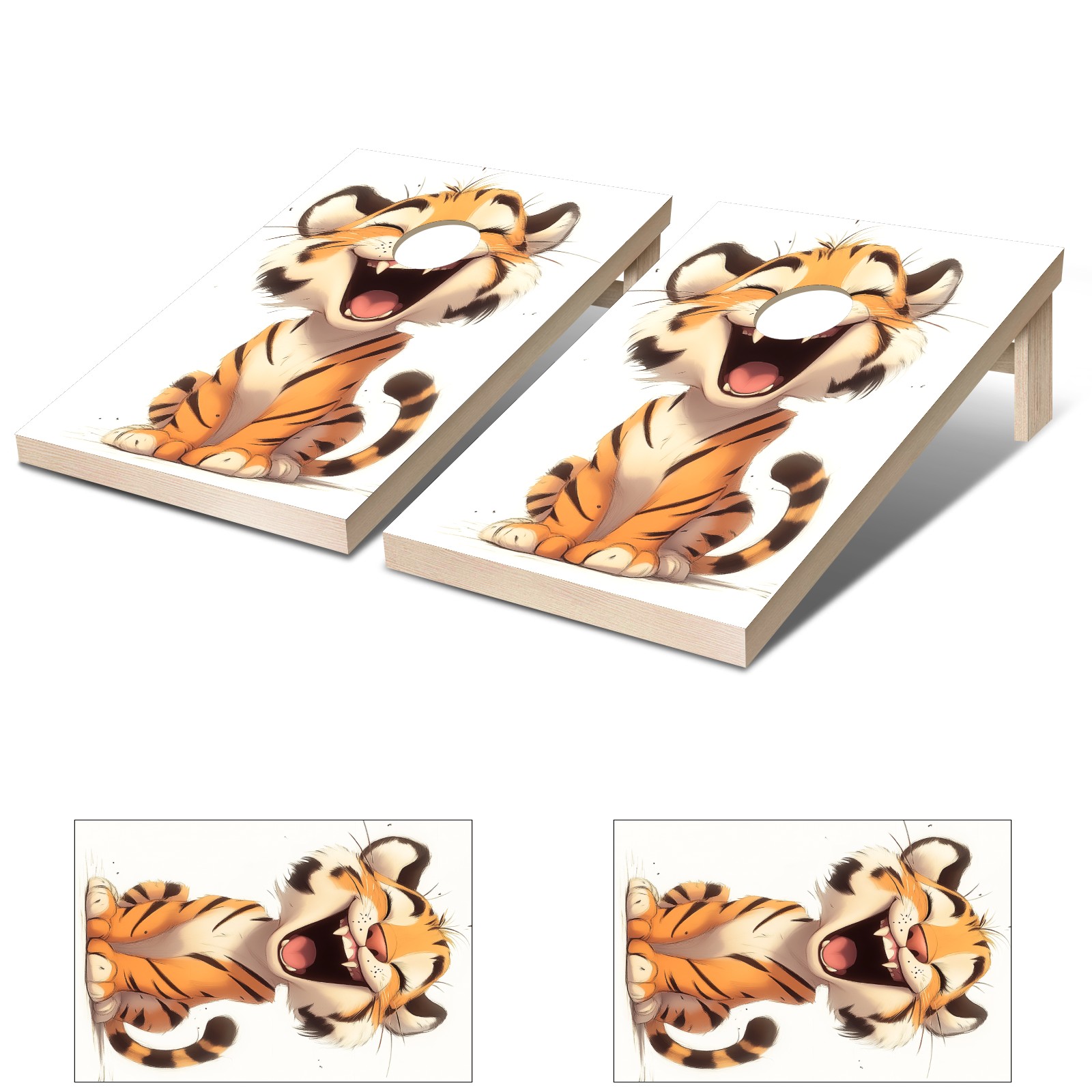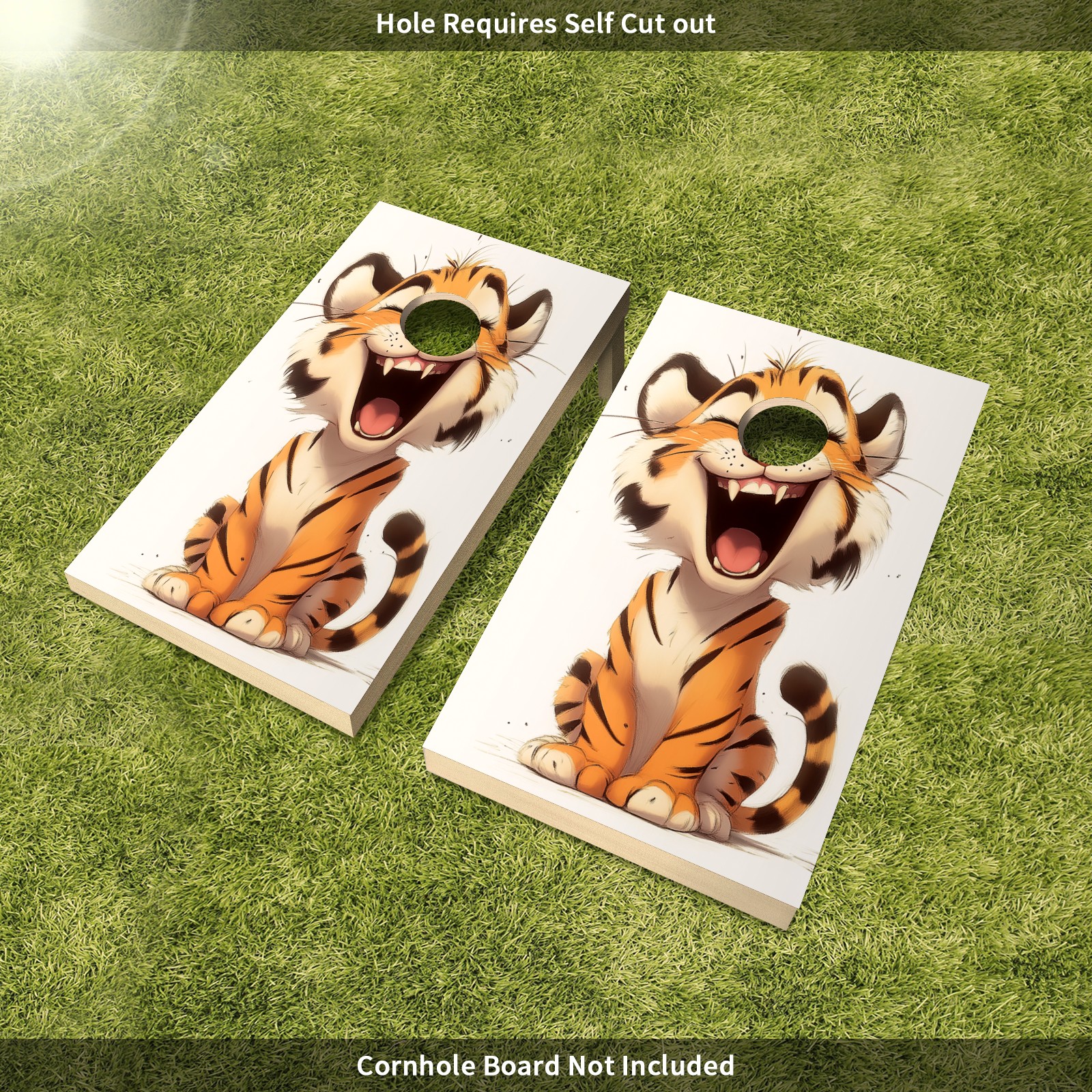 Cornhole Game Stickers For Boards Funny Cornhole Board Decals 24x36Inch Cornhole Board Wraps Weatherproof Vinyl Decal Easy Bubble Free Bean Toss Christmas Games Cute Tiger Pattern