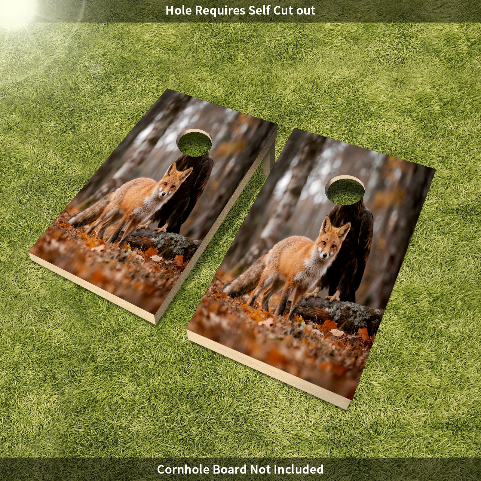Cornhole Game Stickers For Boards Funny Cornhole Board Decals 24x36Inch Cornhole Board Wraps Weatherproof Vinyl Decal Easy Bubble Free Bean Toss Christmas Games Fox And Bird