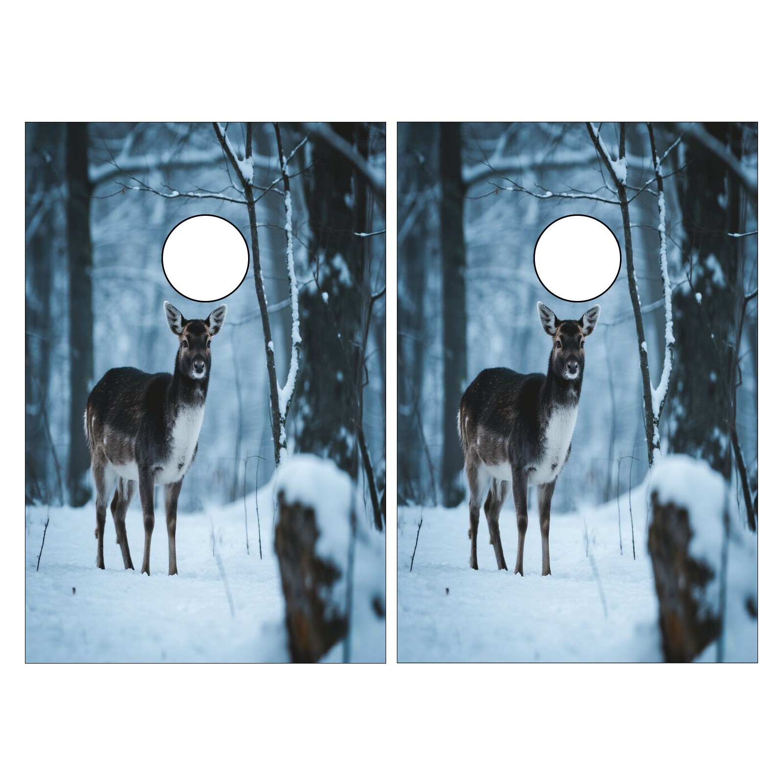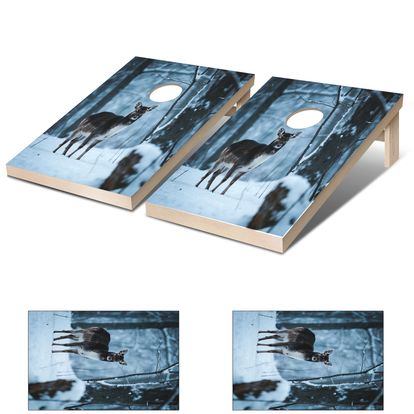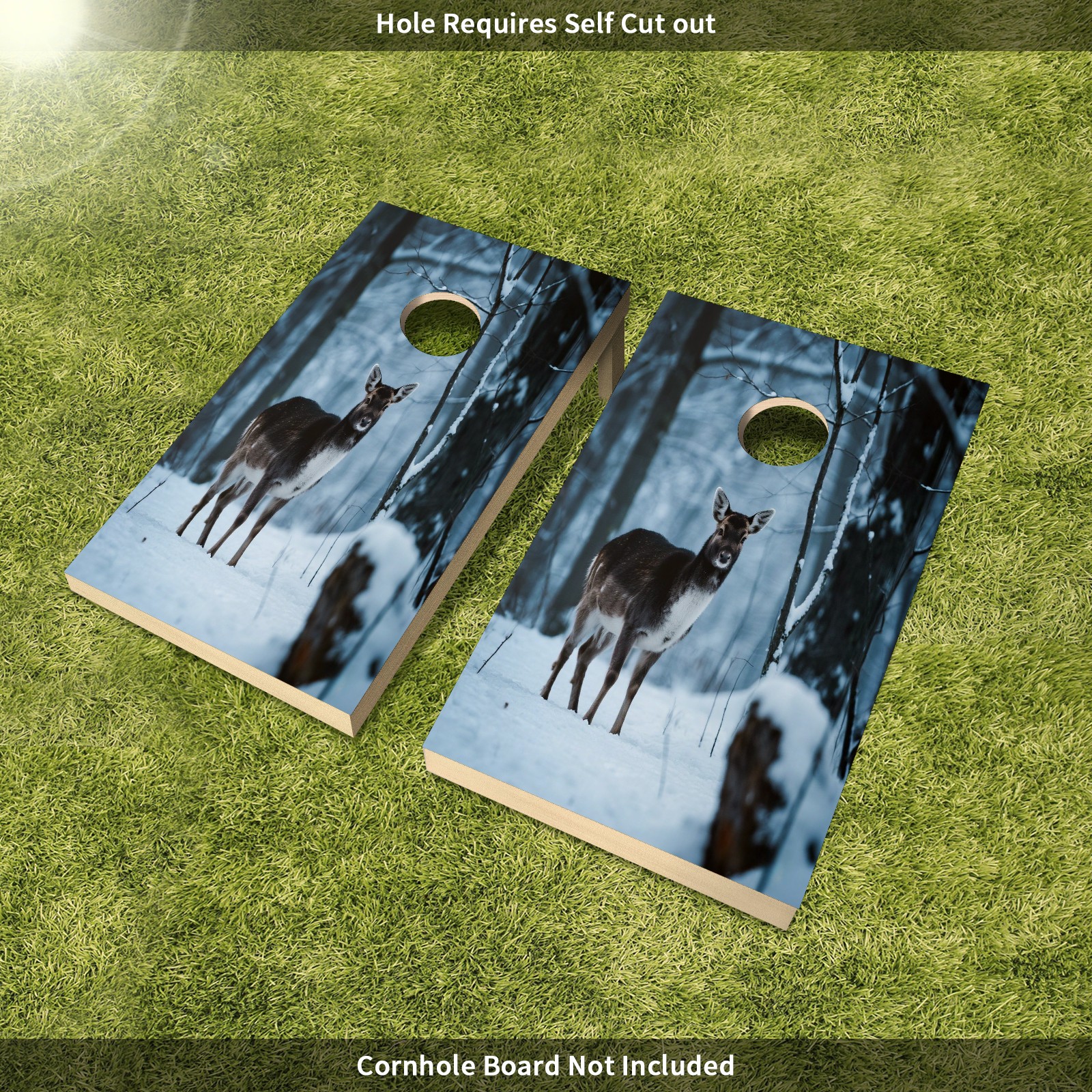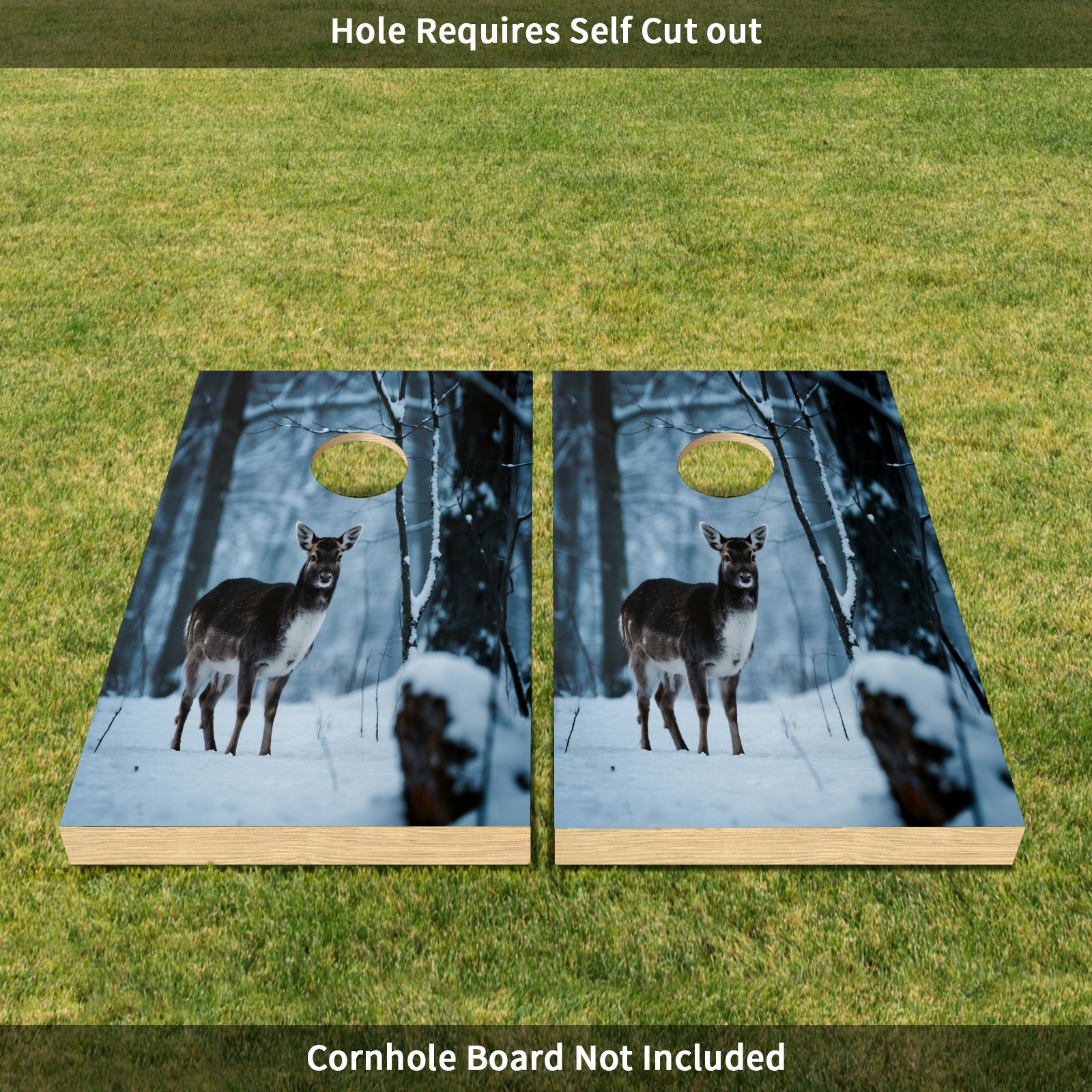 Cornhole Game Stickers For Boards Funny Cornhole Board Decals 24x36Inch Cornhole Board Wraps Weatherproof Vinyl Decal Easy Bubble Free Bean Toss Christmas Games Deer In Winter