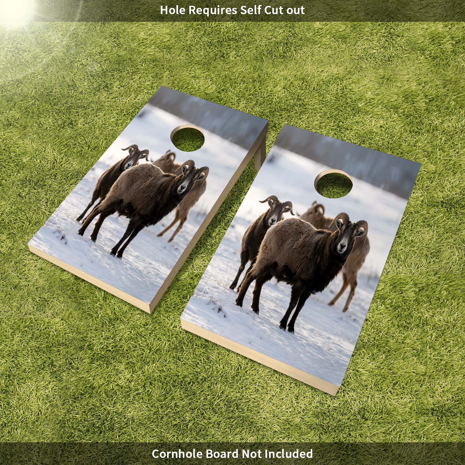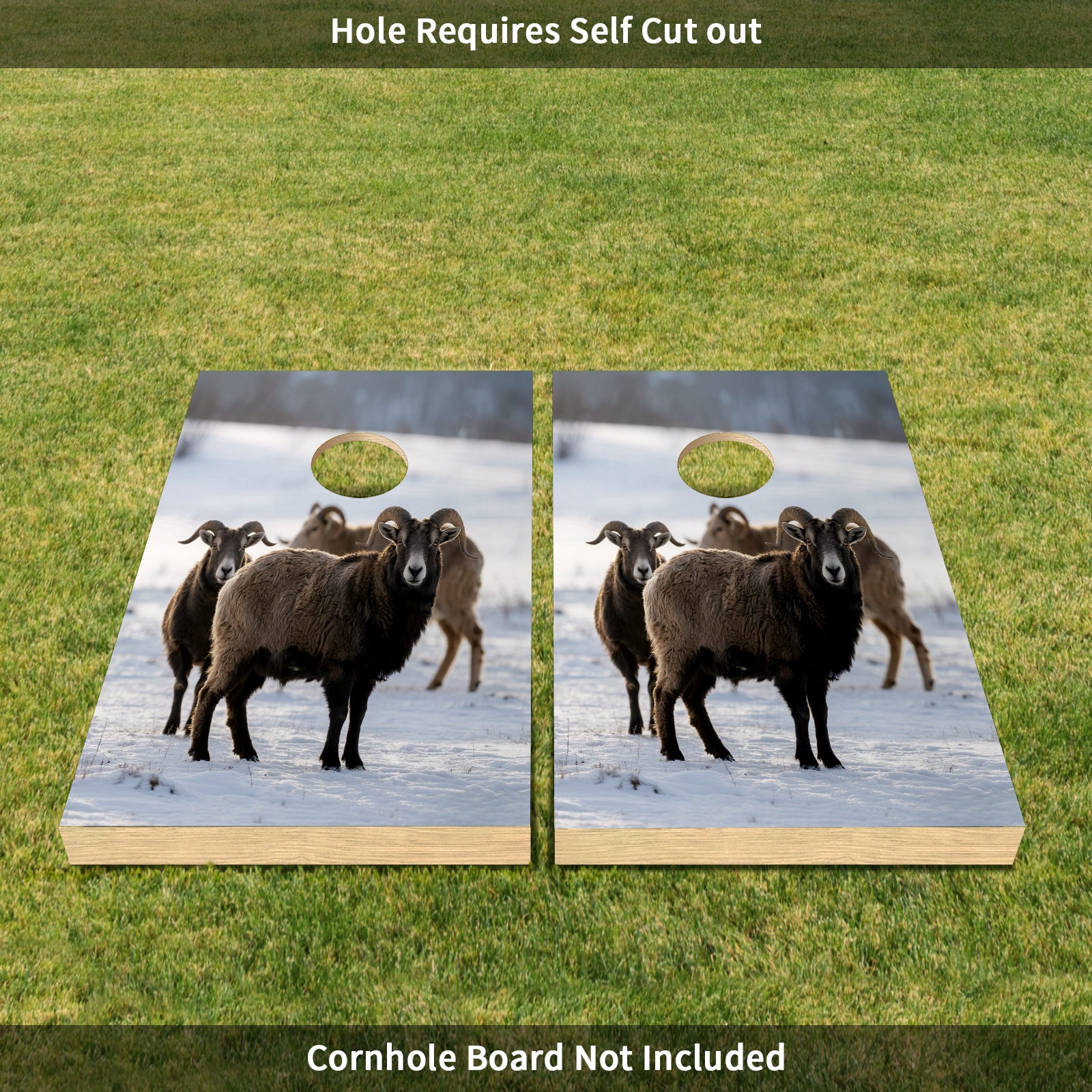 Cornhole Game Stickers For Boards Funny Cornhole Board Decals 24x36Inch Cornhole Board Wraps Weatherproof Vinyl Decal Easy Bubble Free Bean Toss Christmas Games Sheep In Snow