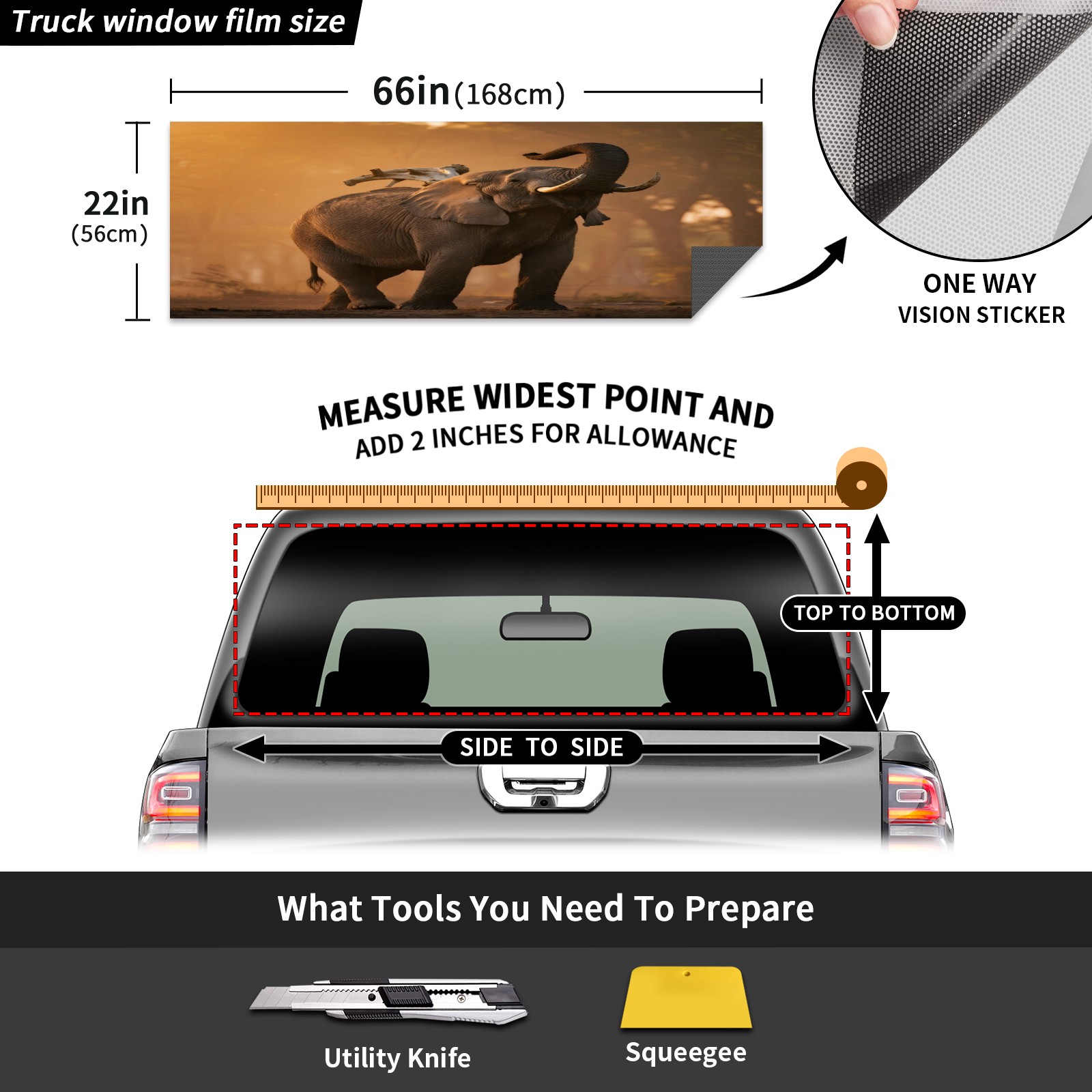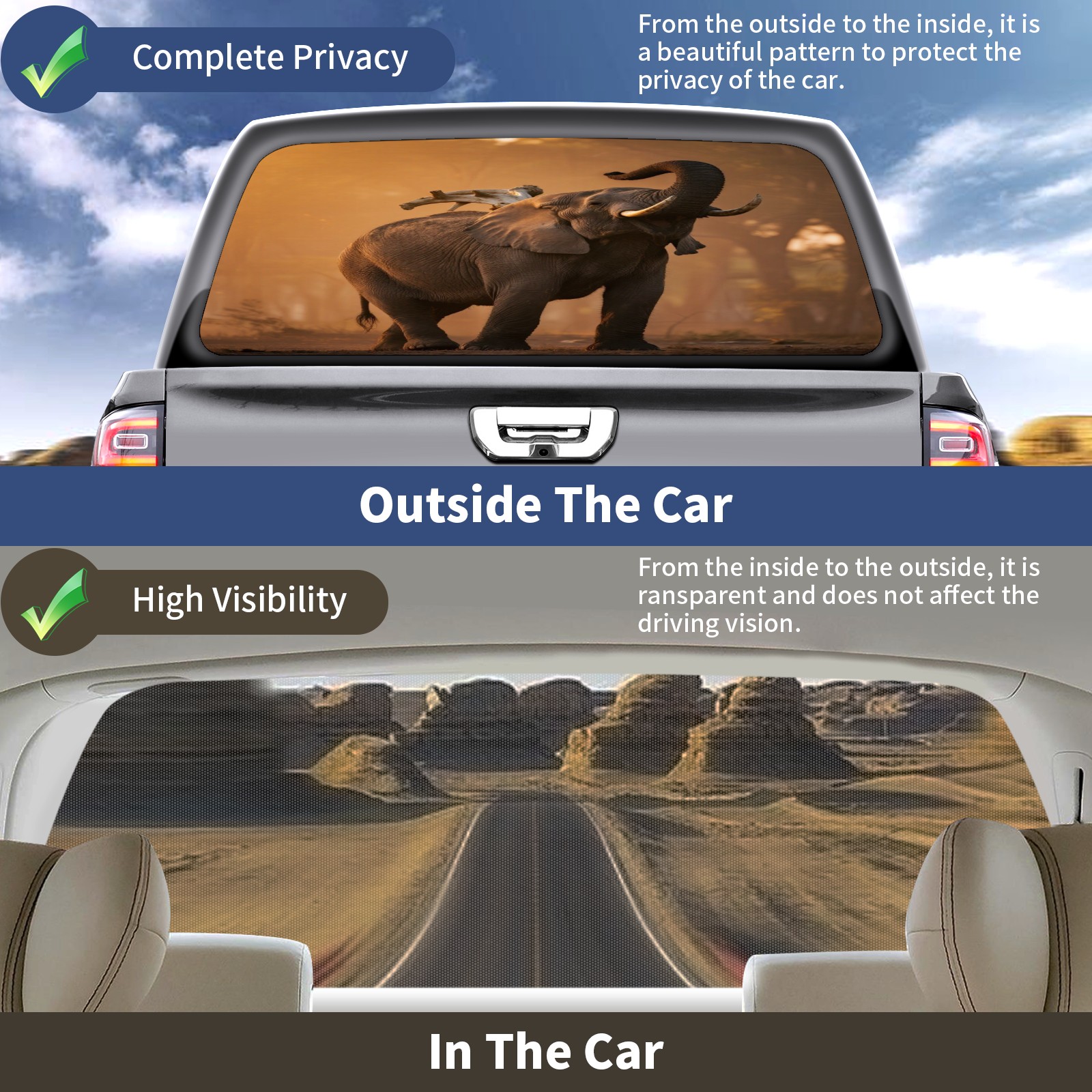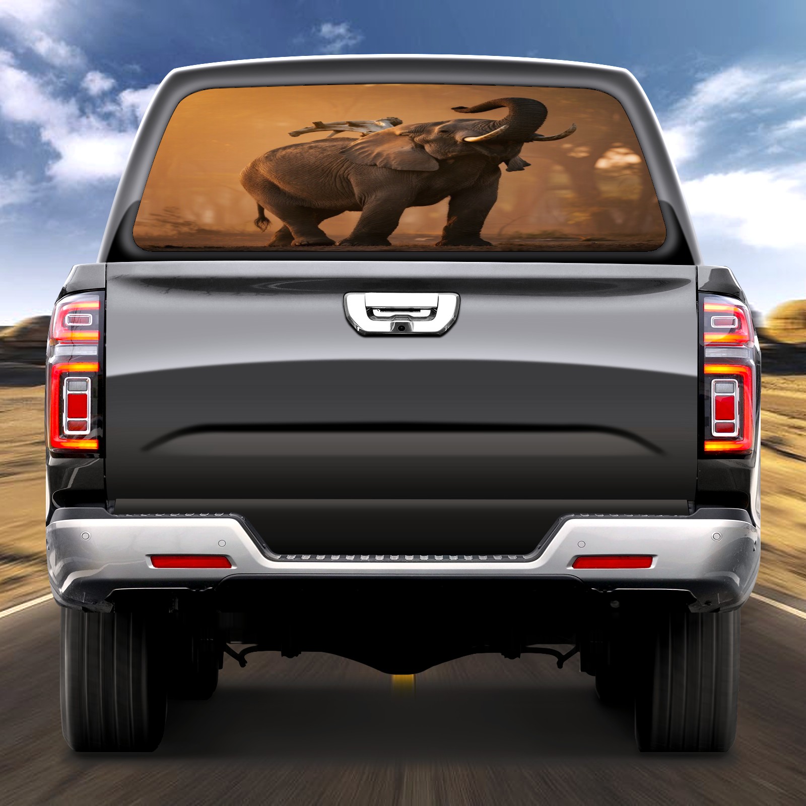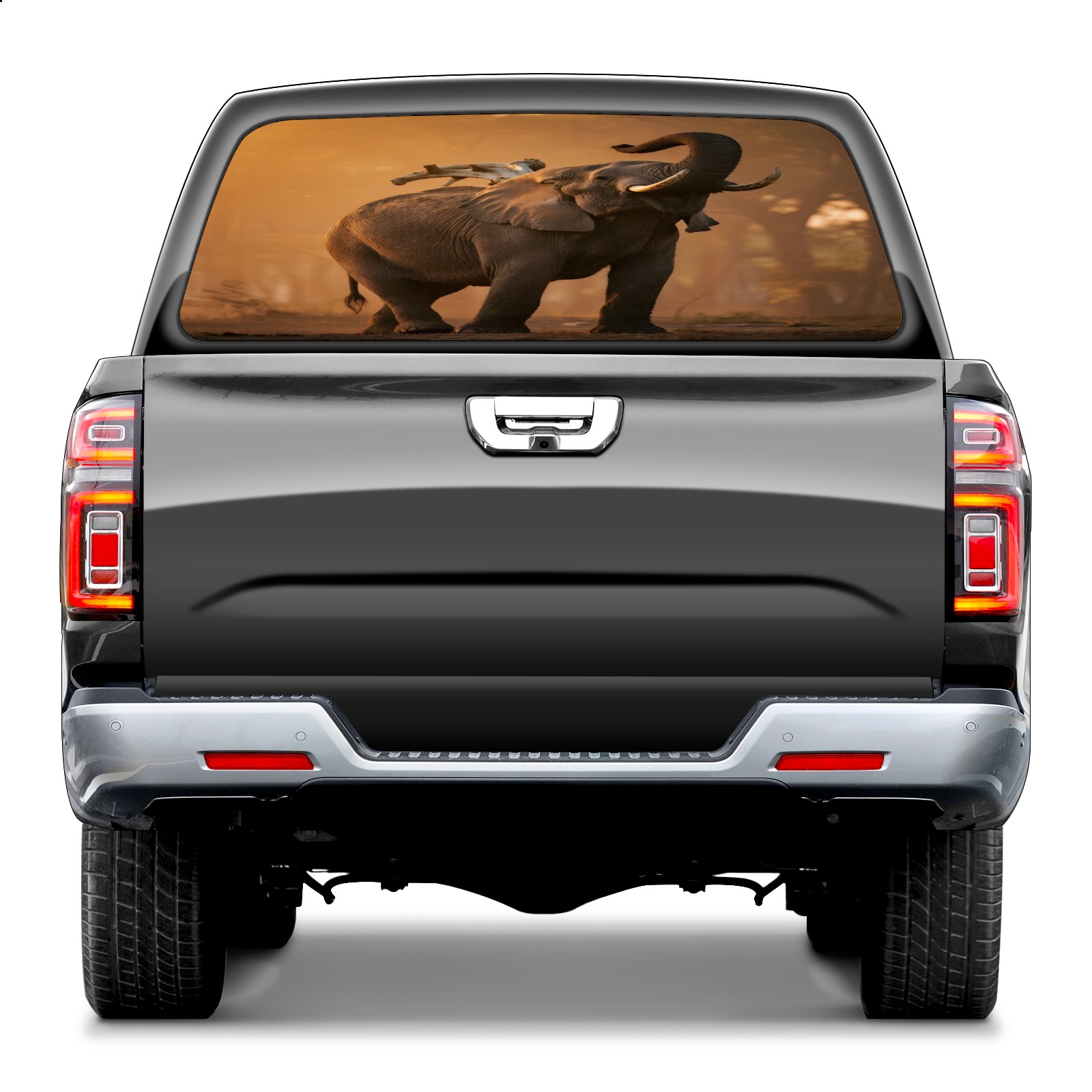Pickup Car Window Stickers Decal Rear Window Decals for Trucks One Way Visual Waterproof Truck Back Window Tint Decal Graphic Perforated Vinyl Truck Stickers 66X 22inch Elephant With Bird