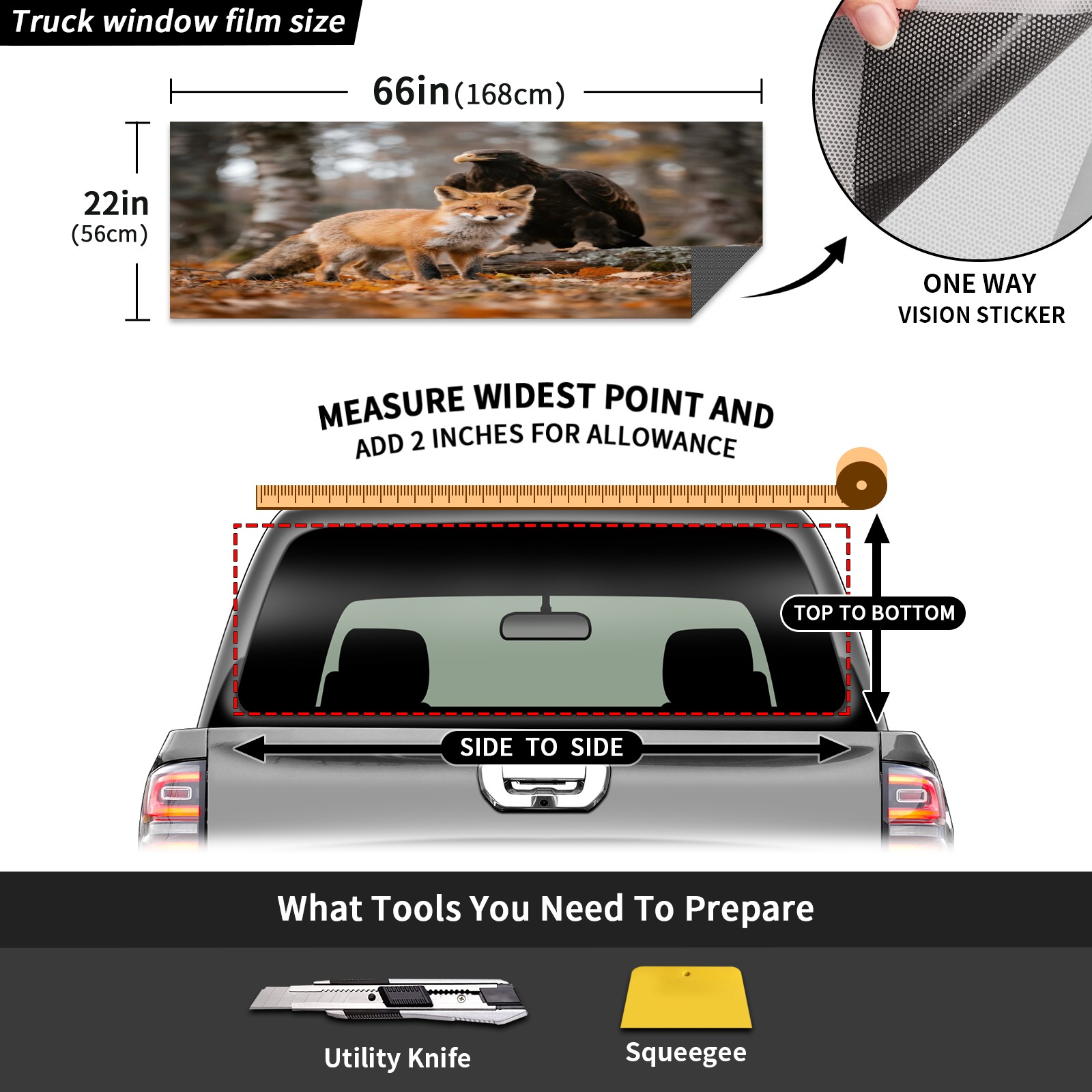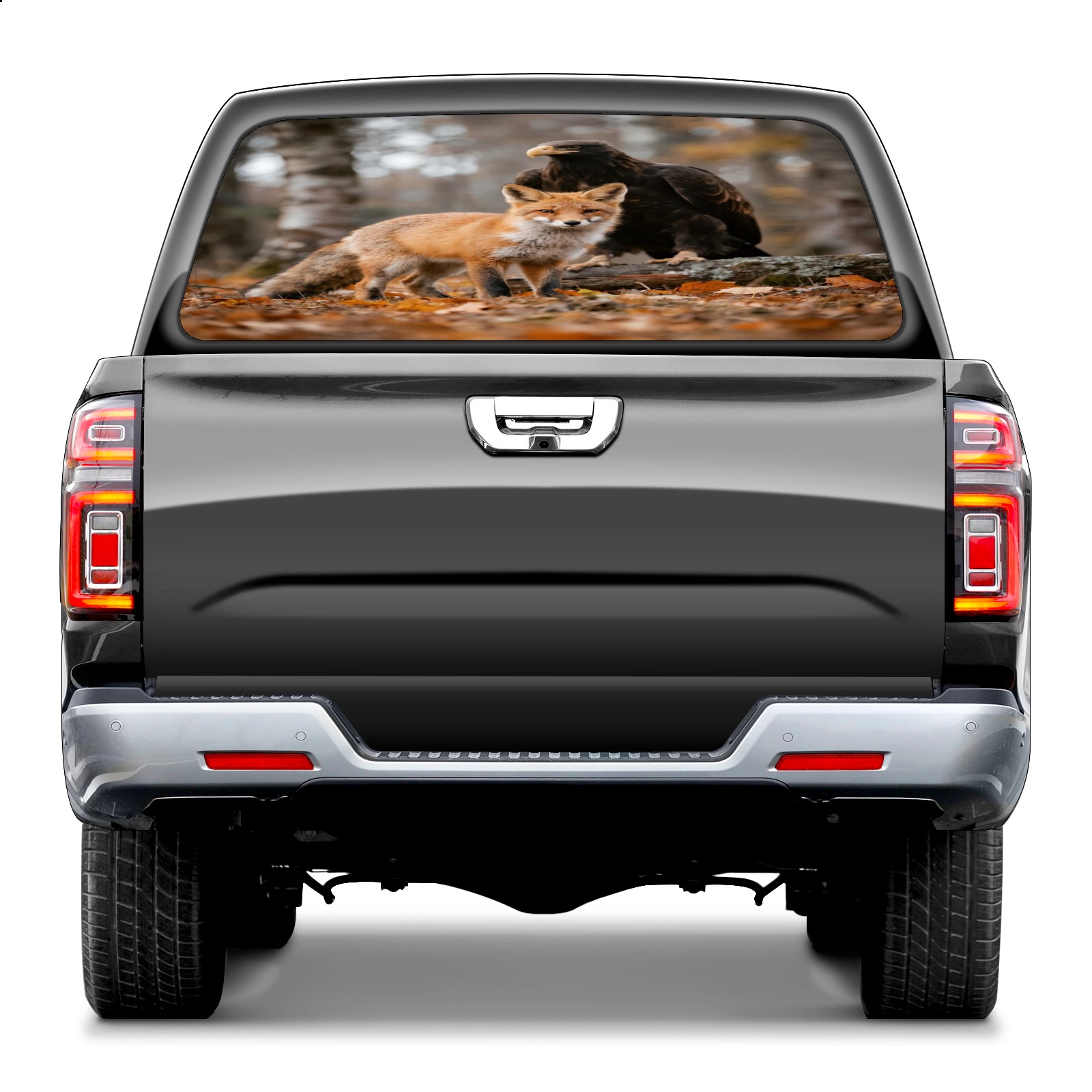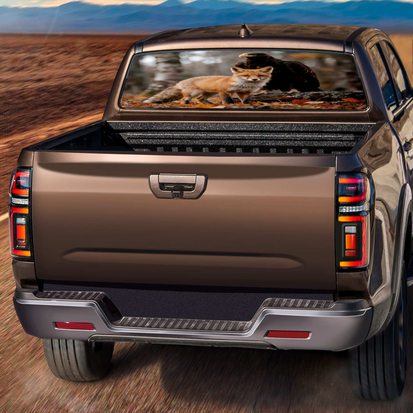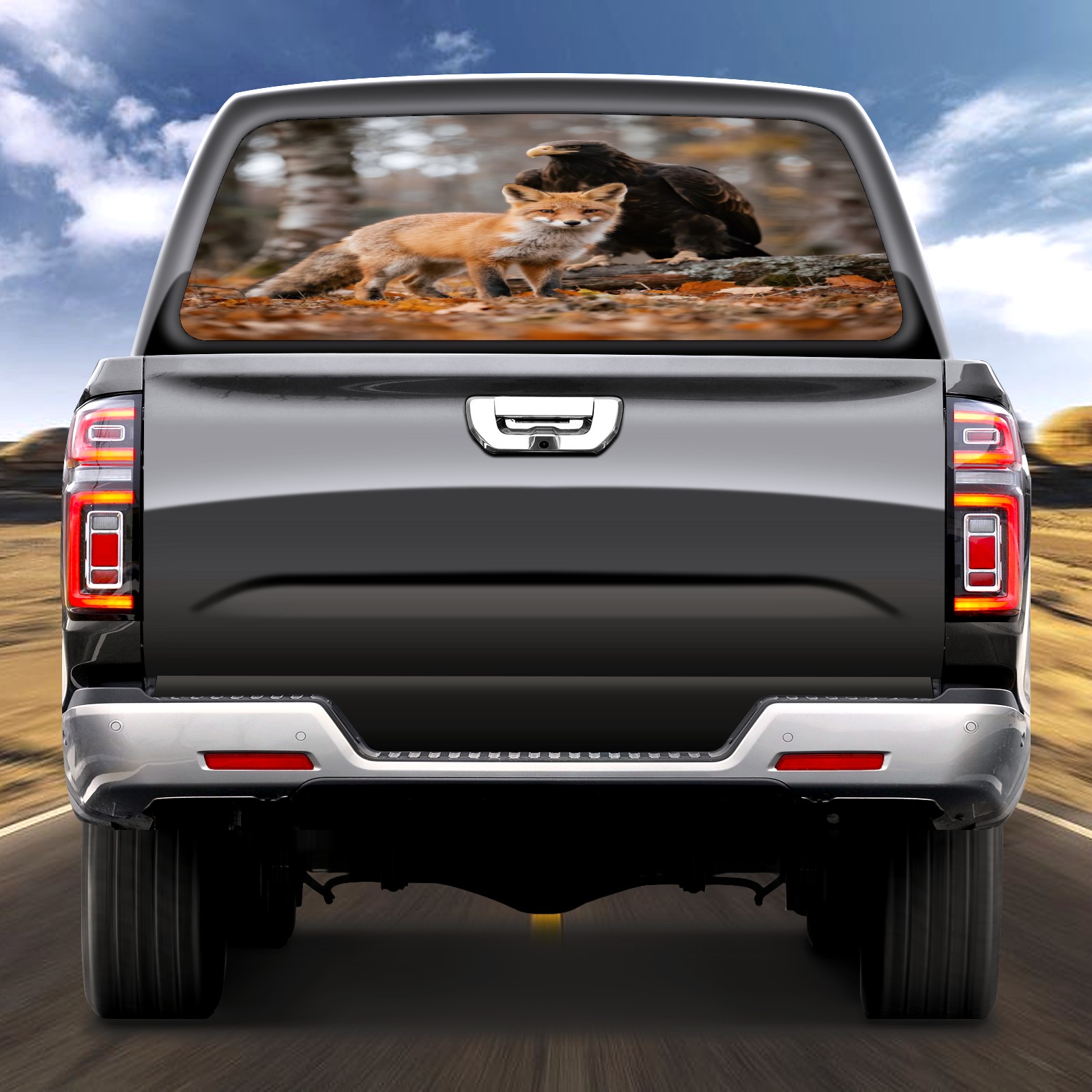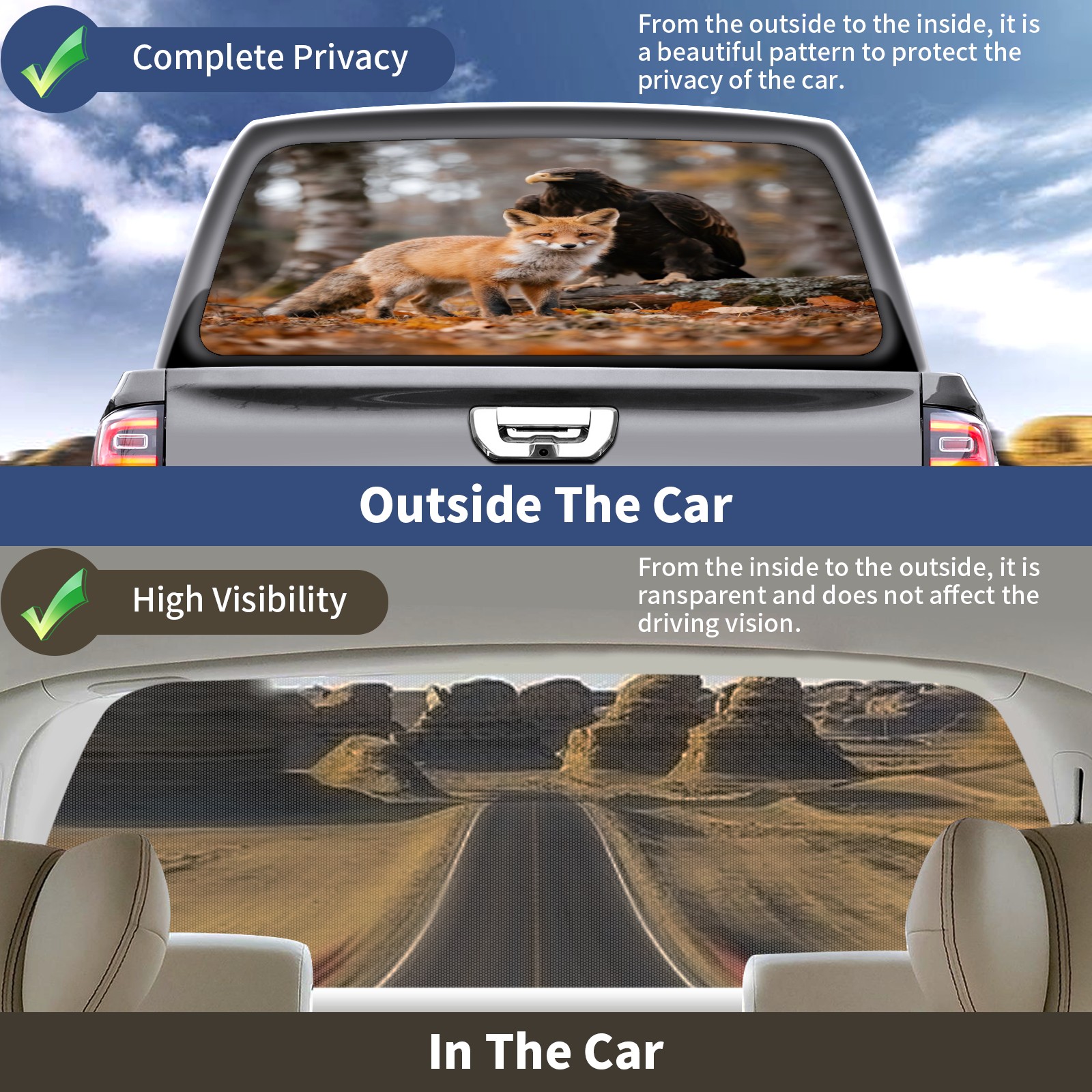 Pickup Car Window Stickers Decal Rear Window Decals for Trucks One Way Visual Waterproof Truck Back Window Tint Decal Graphic Perforated Vinyl Truck Stickers 66X 22inch Fox And Bird