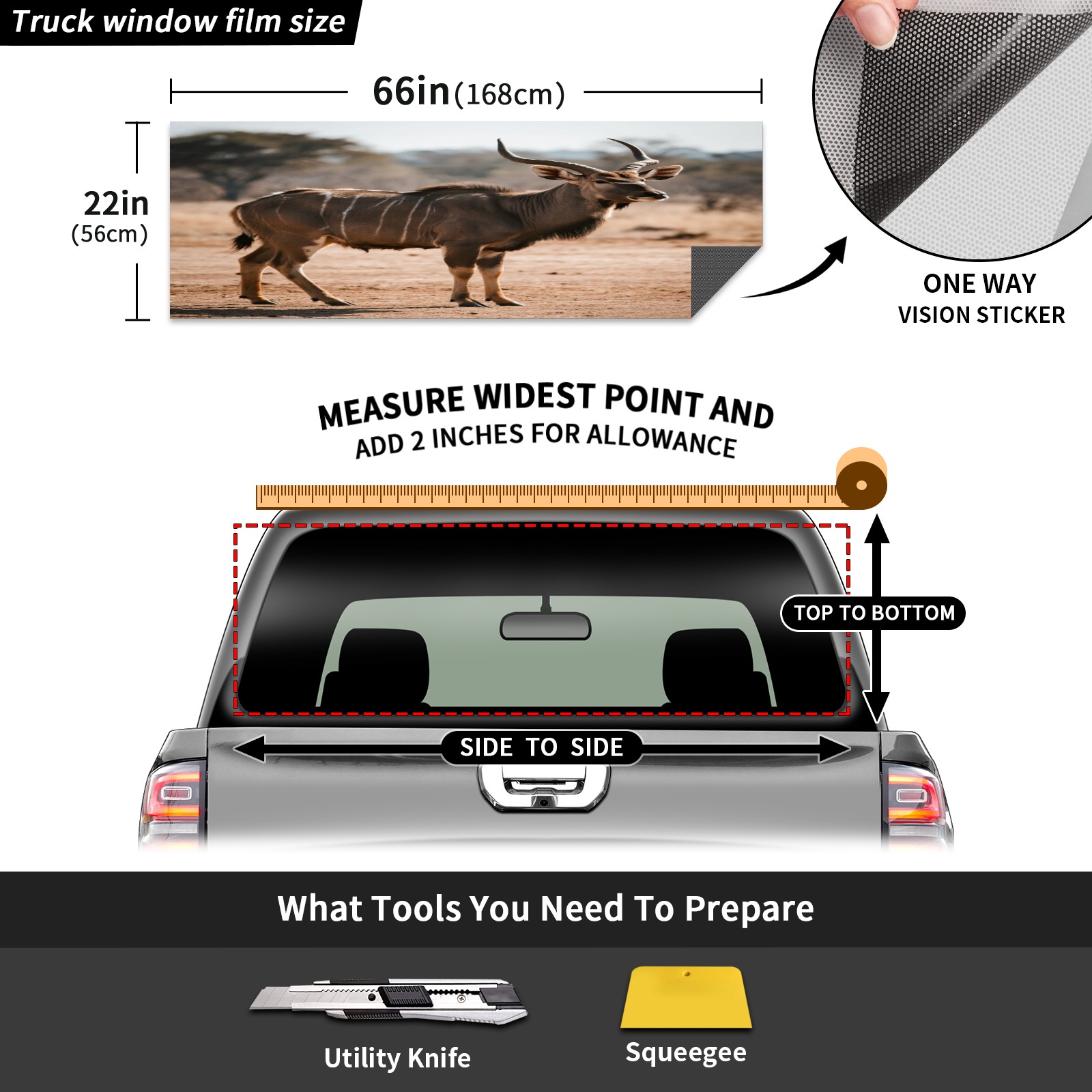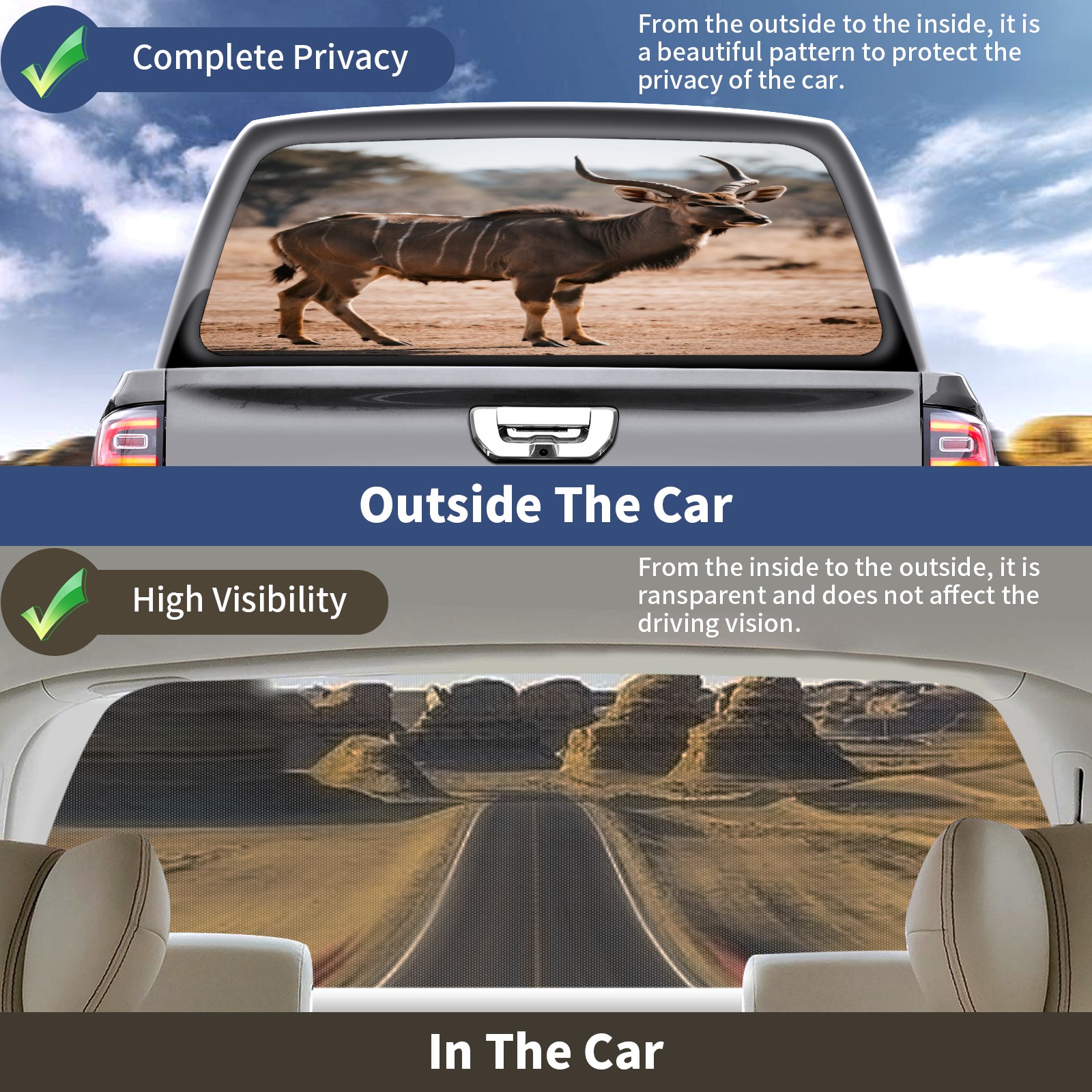 Pickup Car Window Stickers Decal Rear Window Decals for Trucks One Way Visual Waterproof Truck Back Window Tint Decal Graphic Perforated Vinyl Truck Stickers 66X 22inch Antelope In Wild