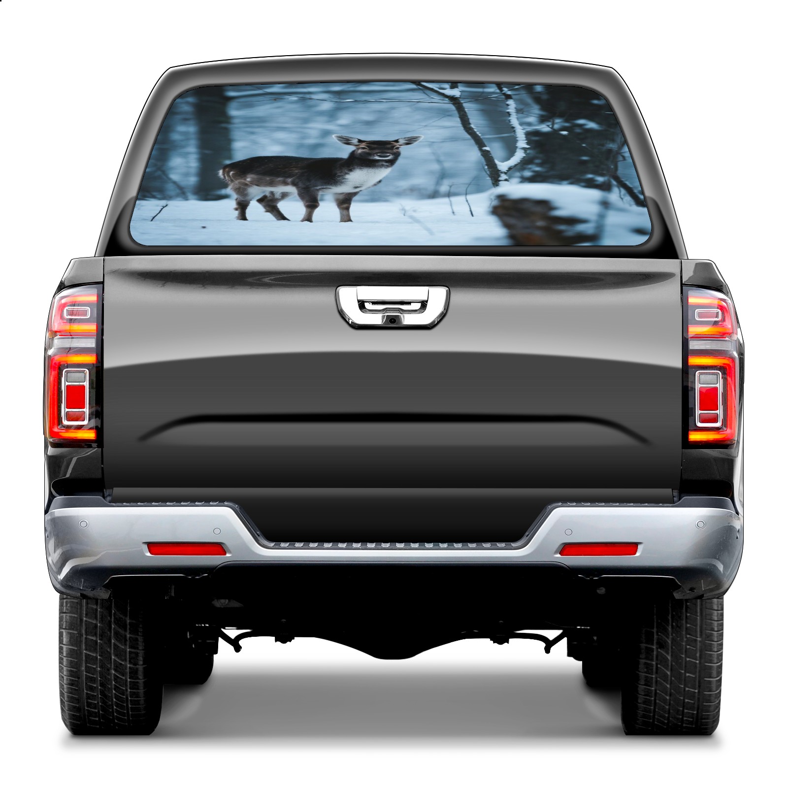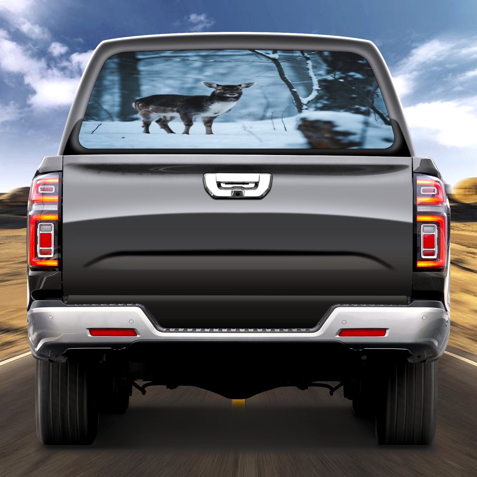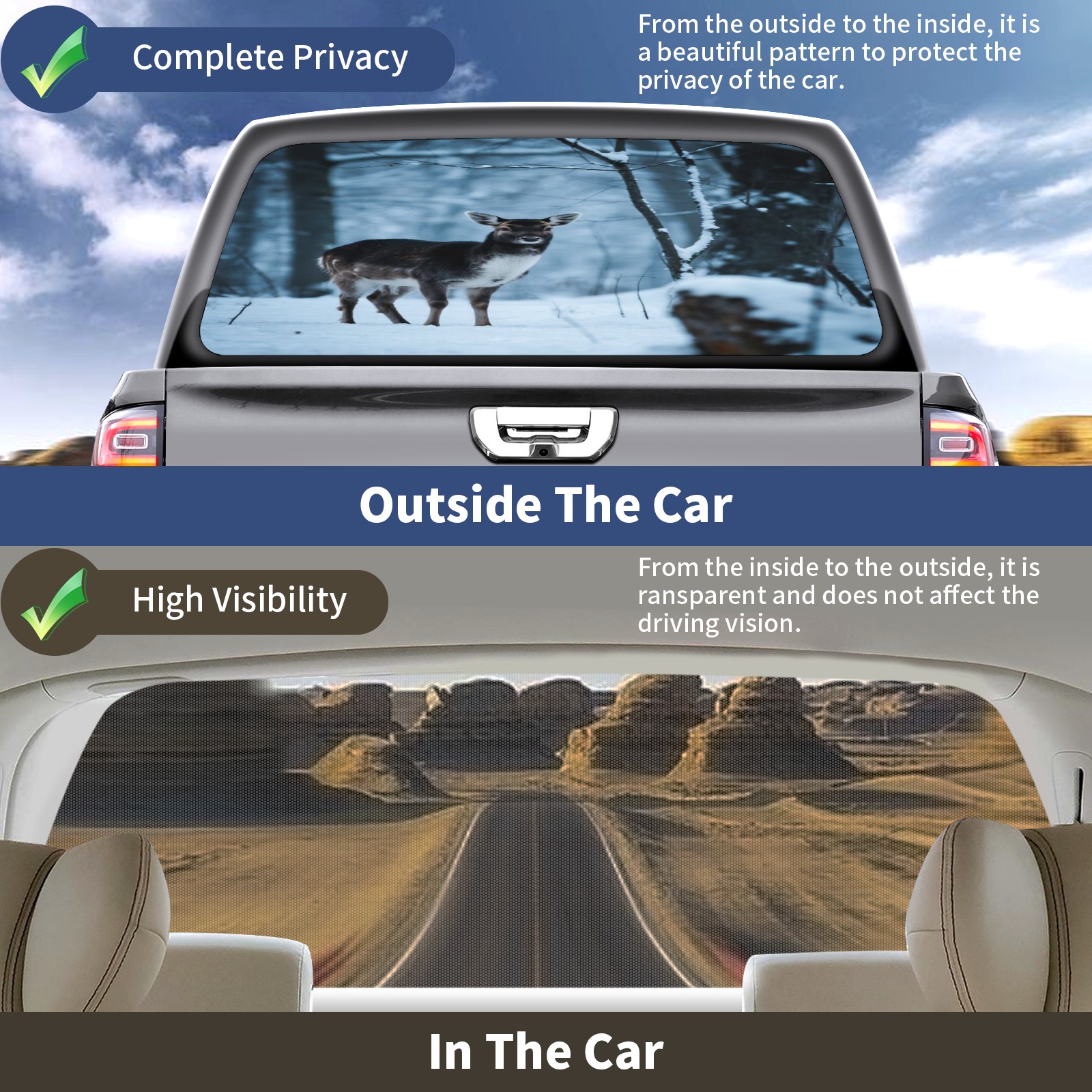 Pickup Car Window Stickers Decal Rear Window Decals for Trucks One Way Visual Waterproof Truck Back Window Tint Decal Graphic Perforated Vinyl Truck Stickers 66X 22inch Deer In Winter