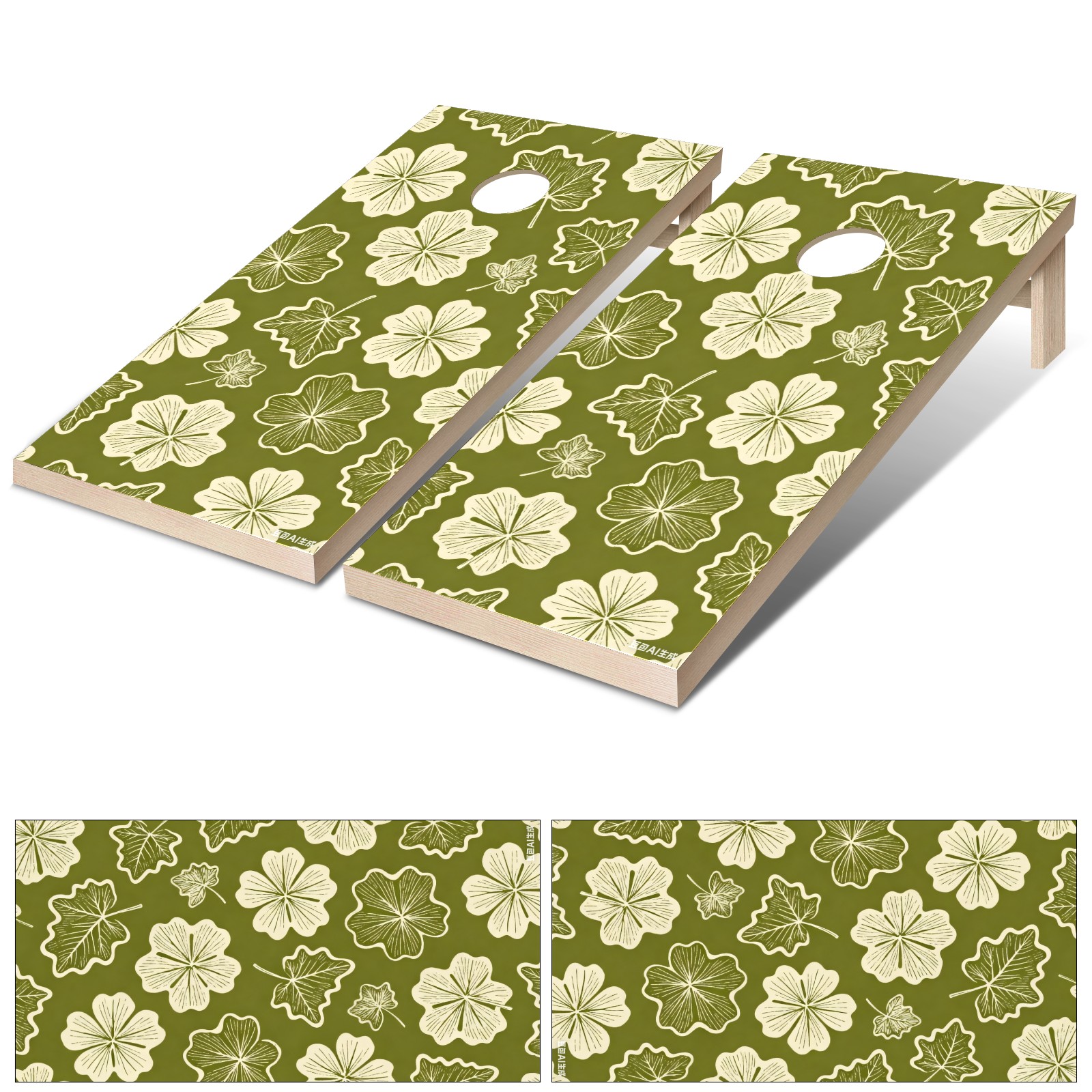 Portable 4x2 Cornhole Set with Two-piece Pack Boards - Cornhole Game Sticker Included - Yard Travel Outdoor Toss Board for Adults Outside Activities Beige Leaves