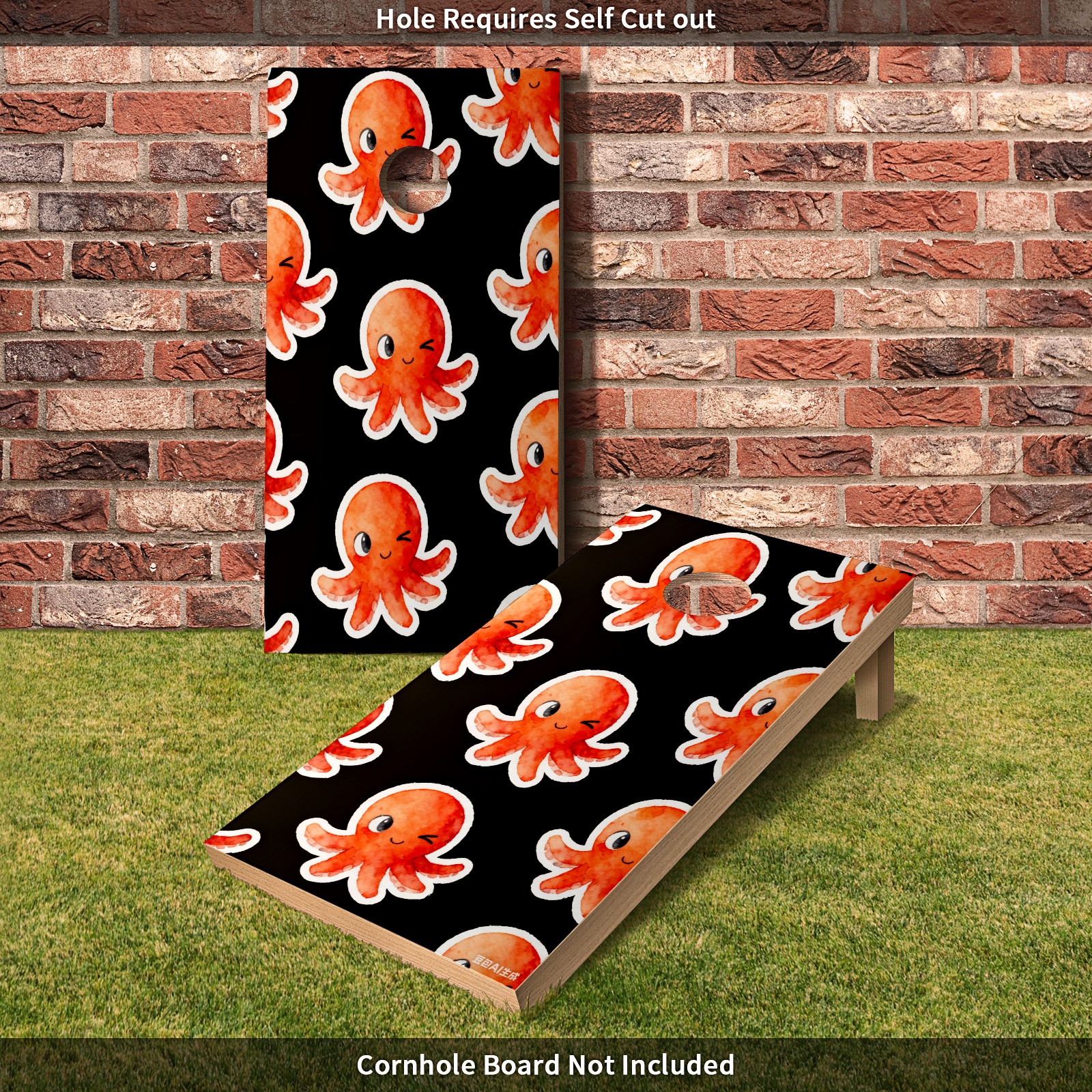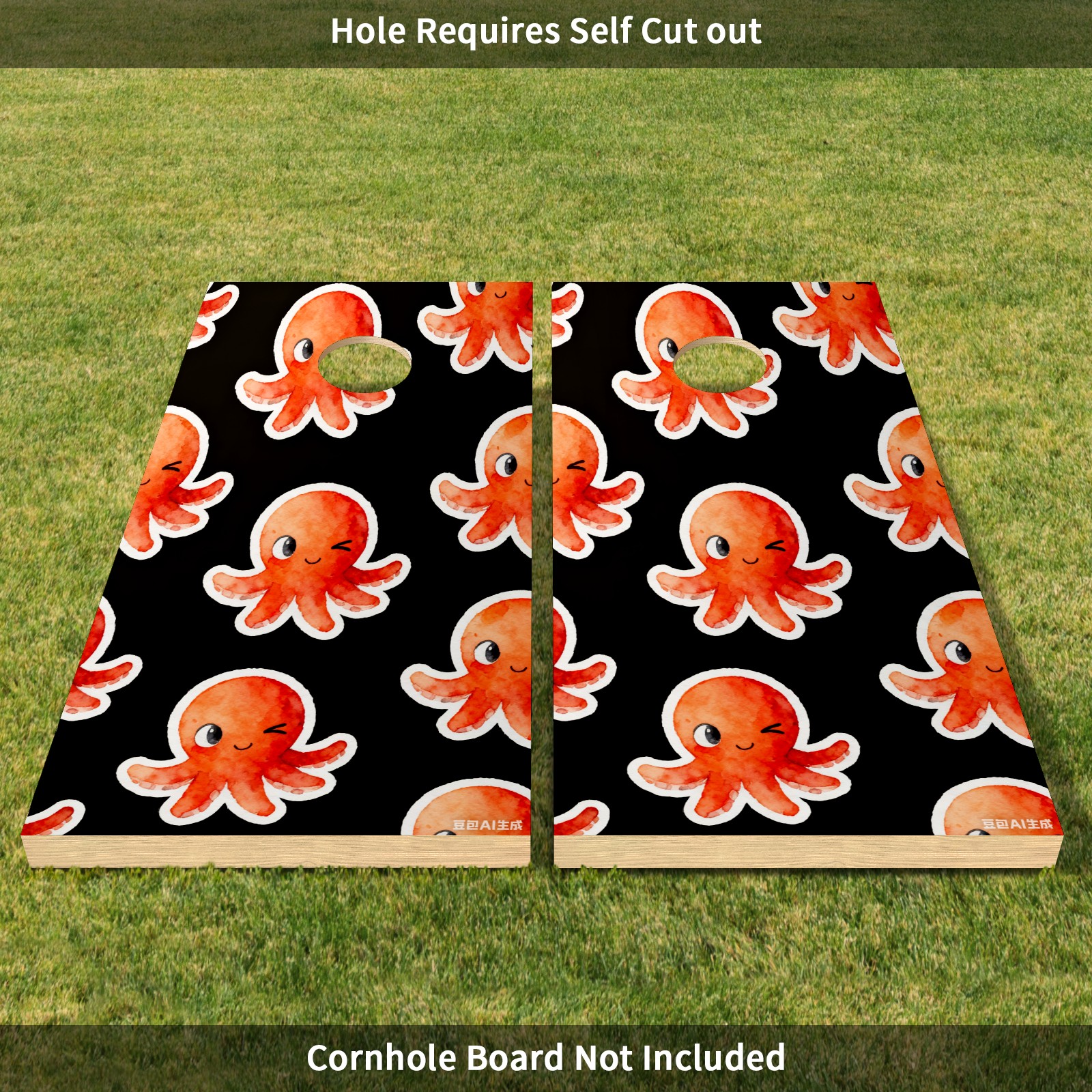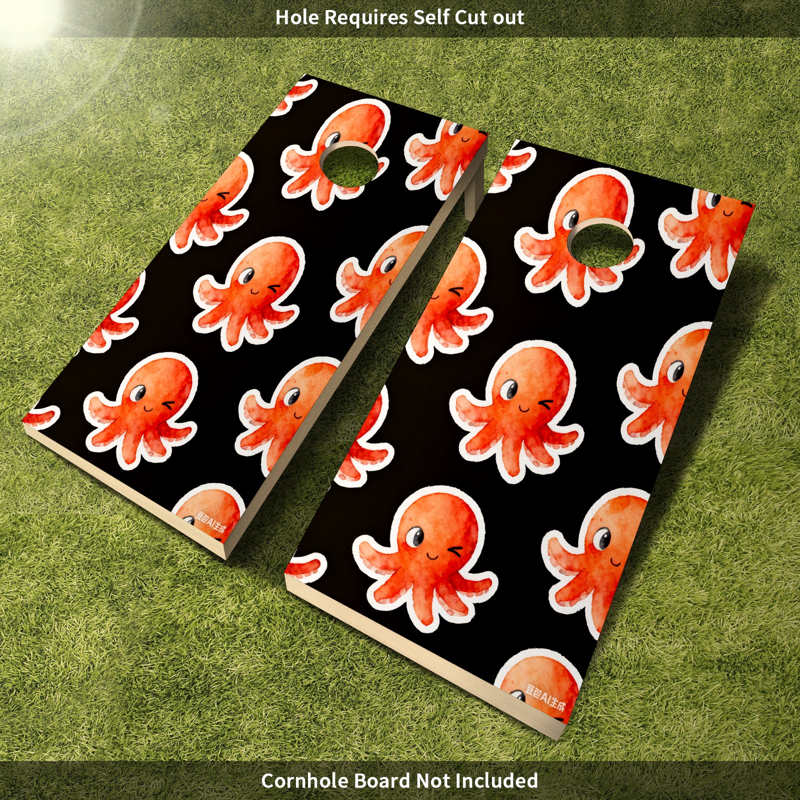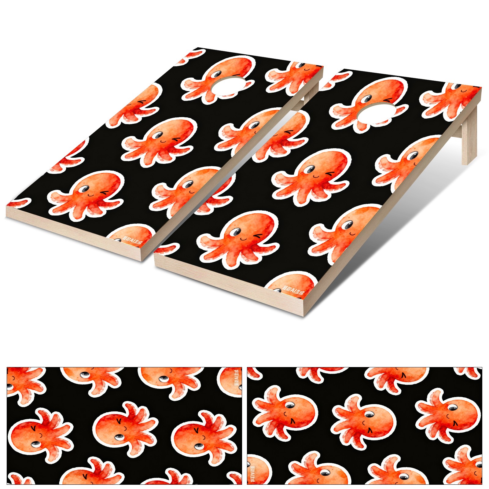 Portable 4x2 Cornhole Set with Two-piece Pack Boards - Cornhole Game Sticker Included - Yard Travel Outdoor Toss Board for Adults Outside Activities Cartoon Octopus