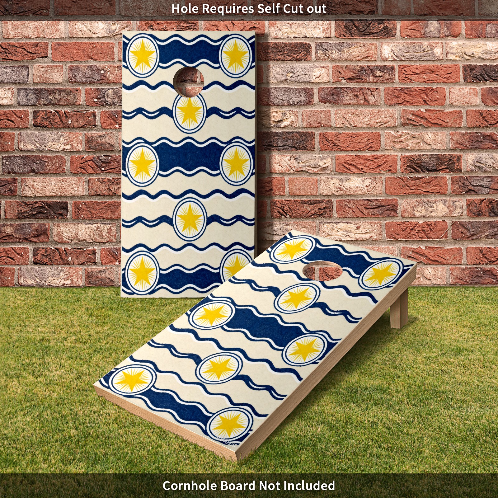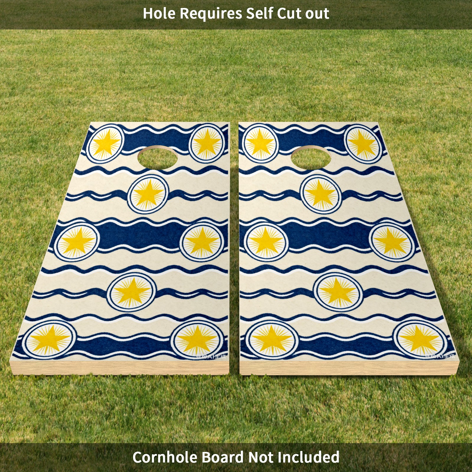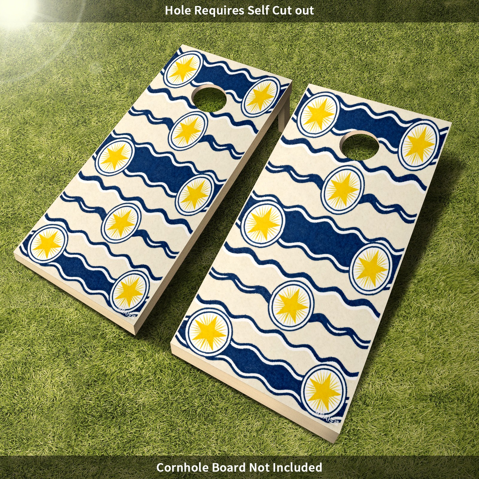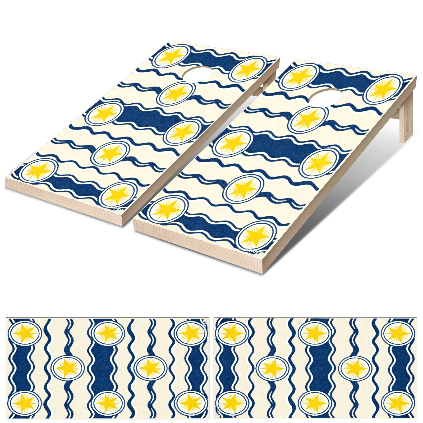 Portable 4x2 Cornhole Set with Two-piece Pack Boards - Cornhole Game Sticker Included - Yard Travel Outdoor Toss Board for Adults Outside Activities Blue And White Waves And Stars
