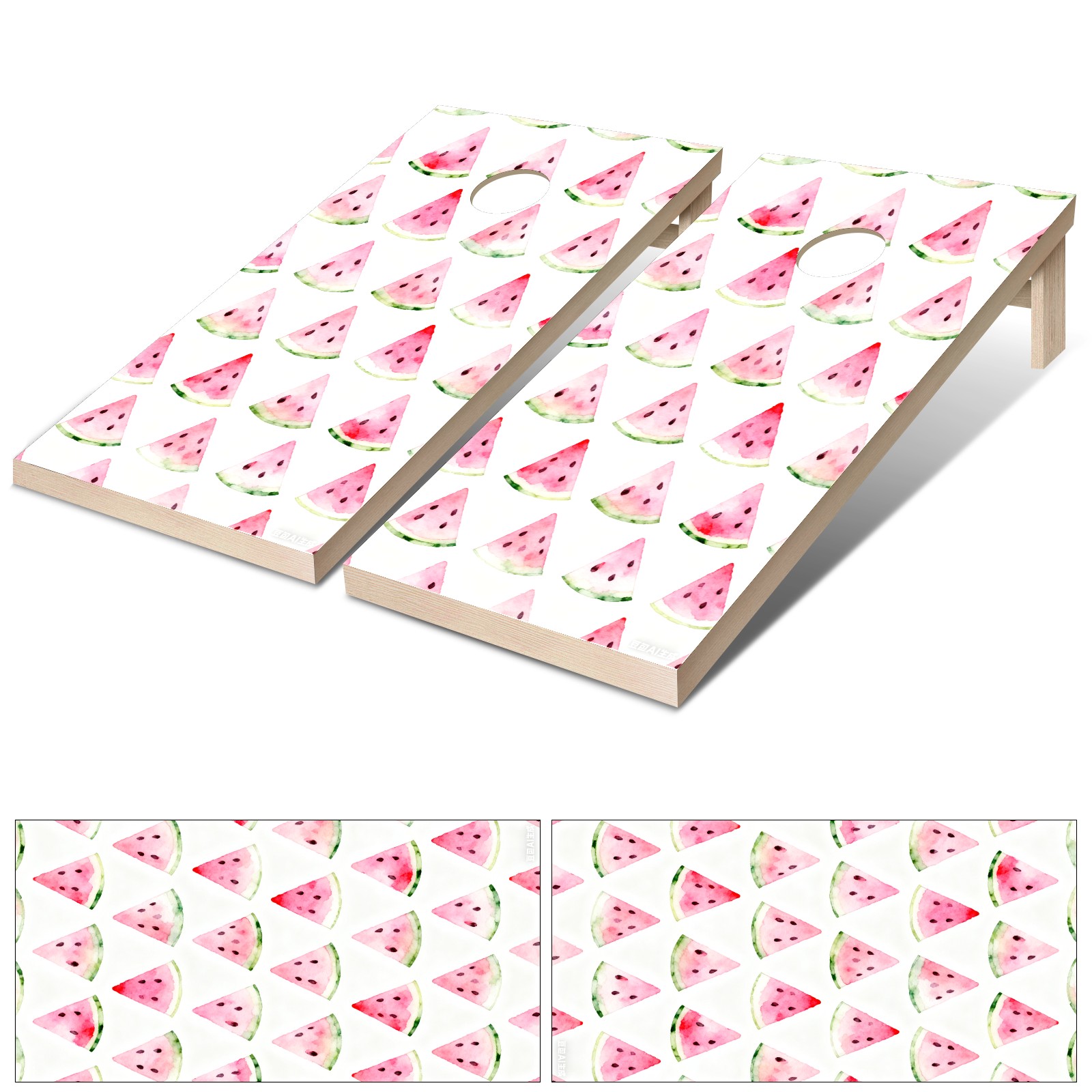 Portable 4x2 Cornhole Set with Two-piece Pack Boards - Cornhole Game Sticker Included - Yard Travel Outdoor Toss Board for Adults Outside Activities Pink Watermelon Slices