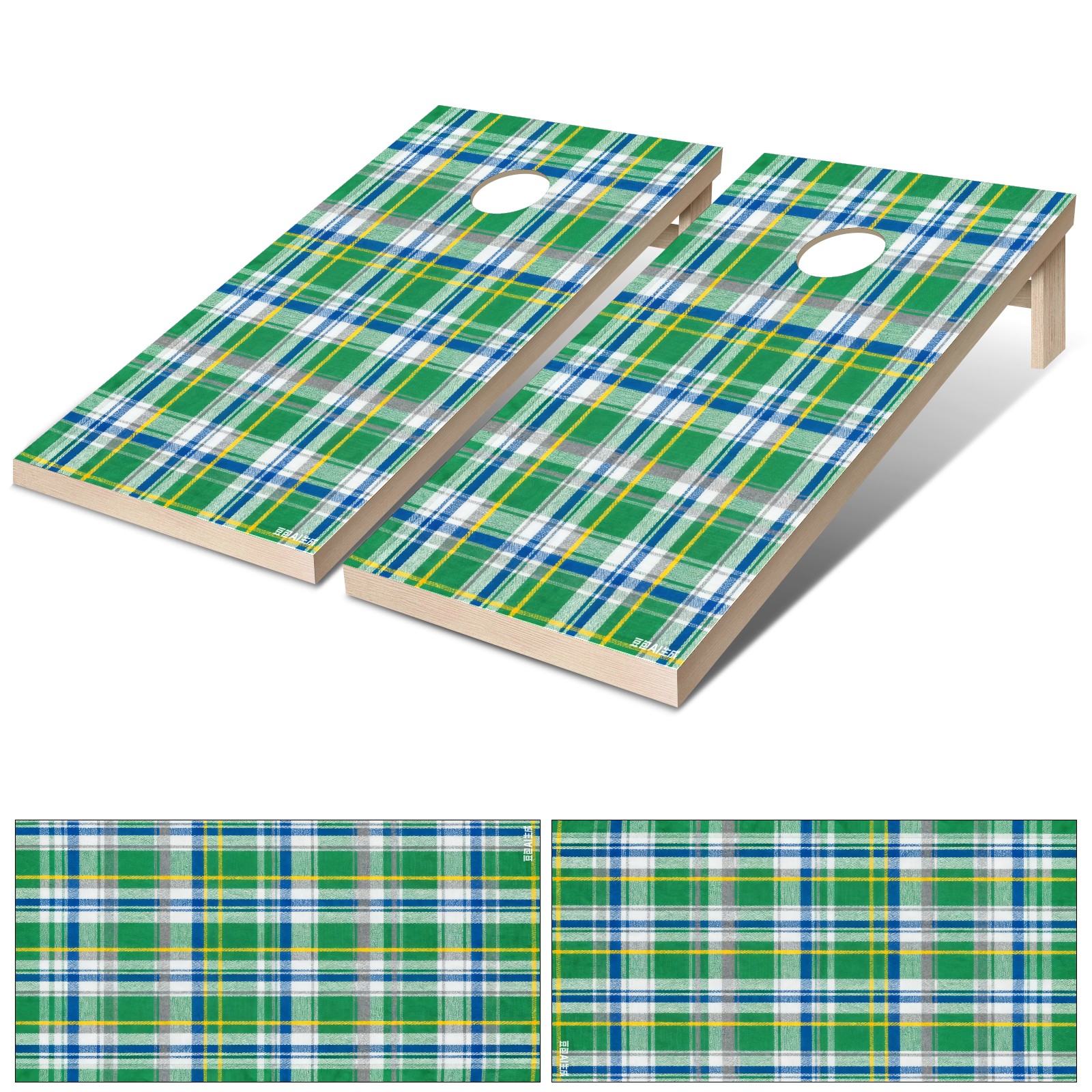 Portable 4x2 Cornhole Set with Two-piece Pack Boards - Cornhole Game Sticker Included - Yard Travel Outdoor Toss Board for Adults Outside Activities Green Checkered Fabric