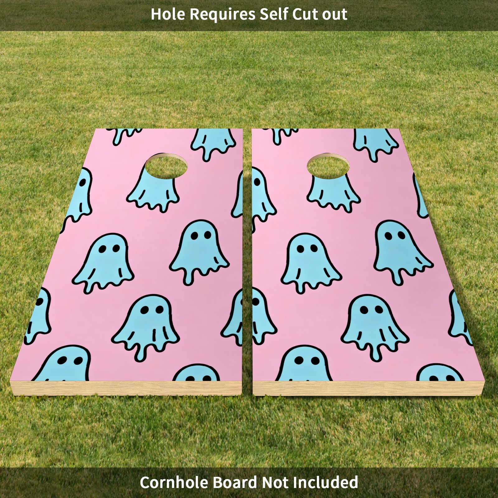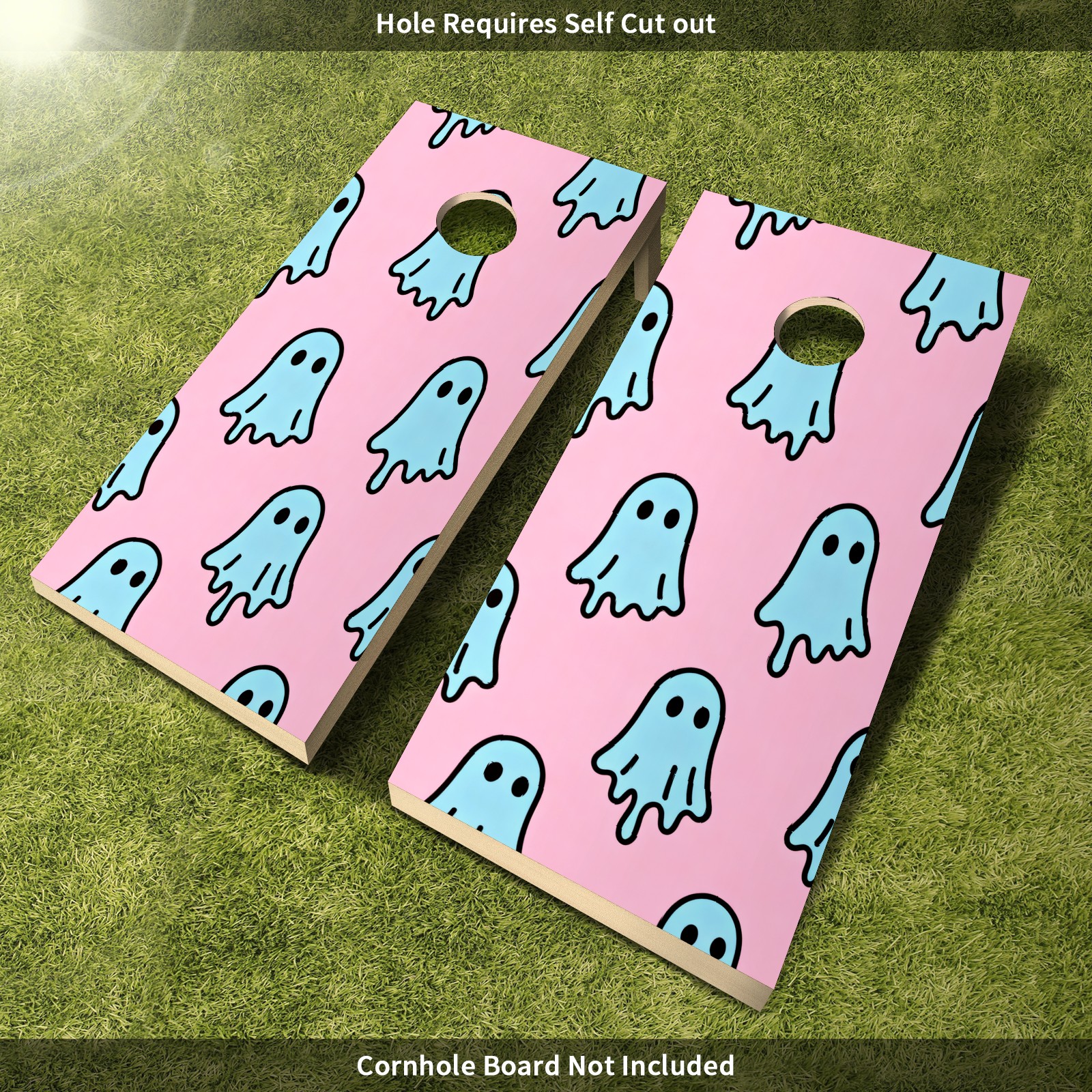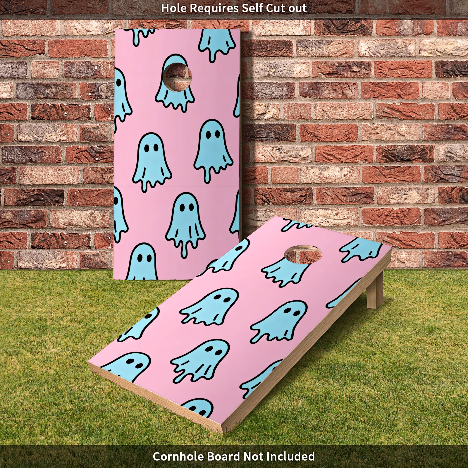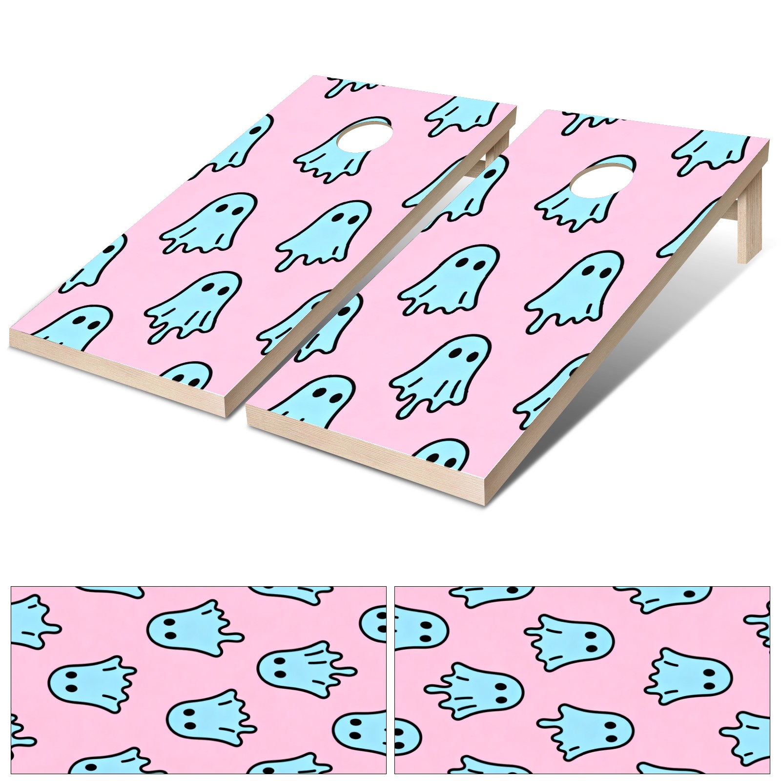 Portable 4x2 Cornhole Set with Two-piece Pack Boards - Cornhole Game Sticker Included - Yard Travel Outdoor Toss Board for Adults Outside Activities Light Blue Ghost